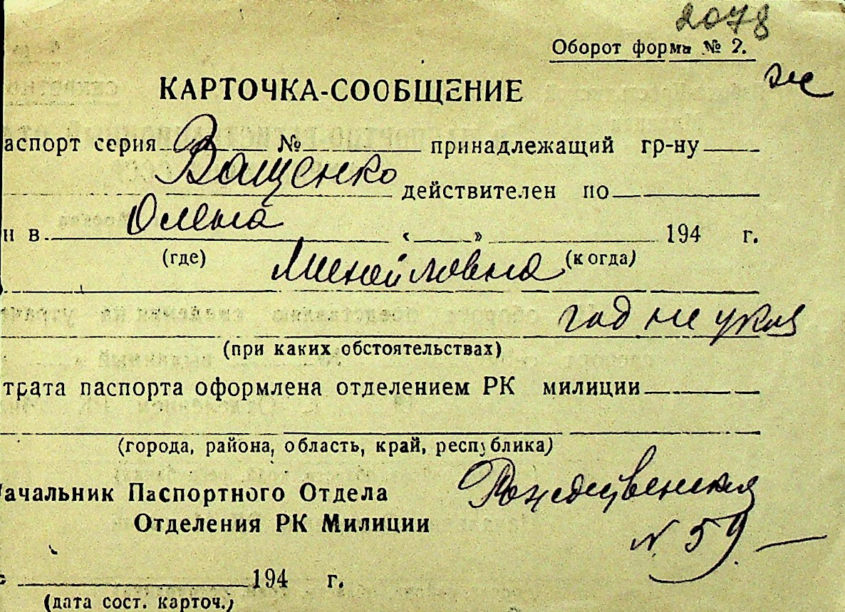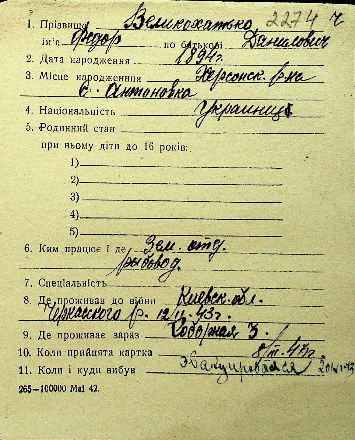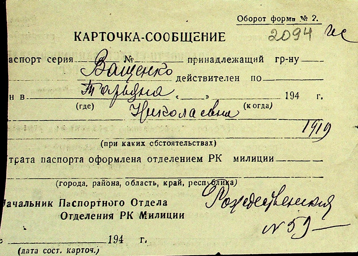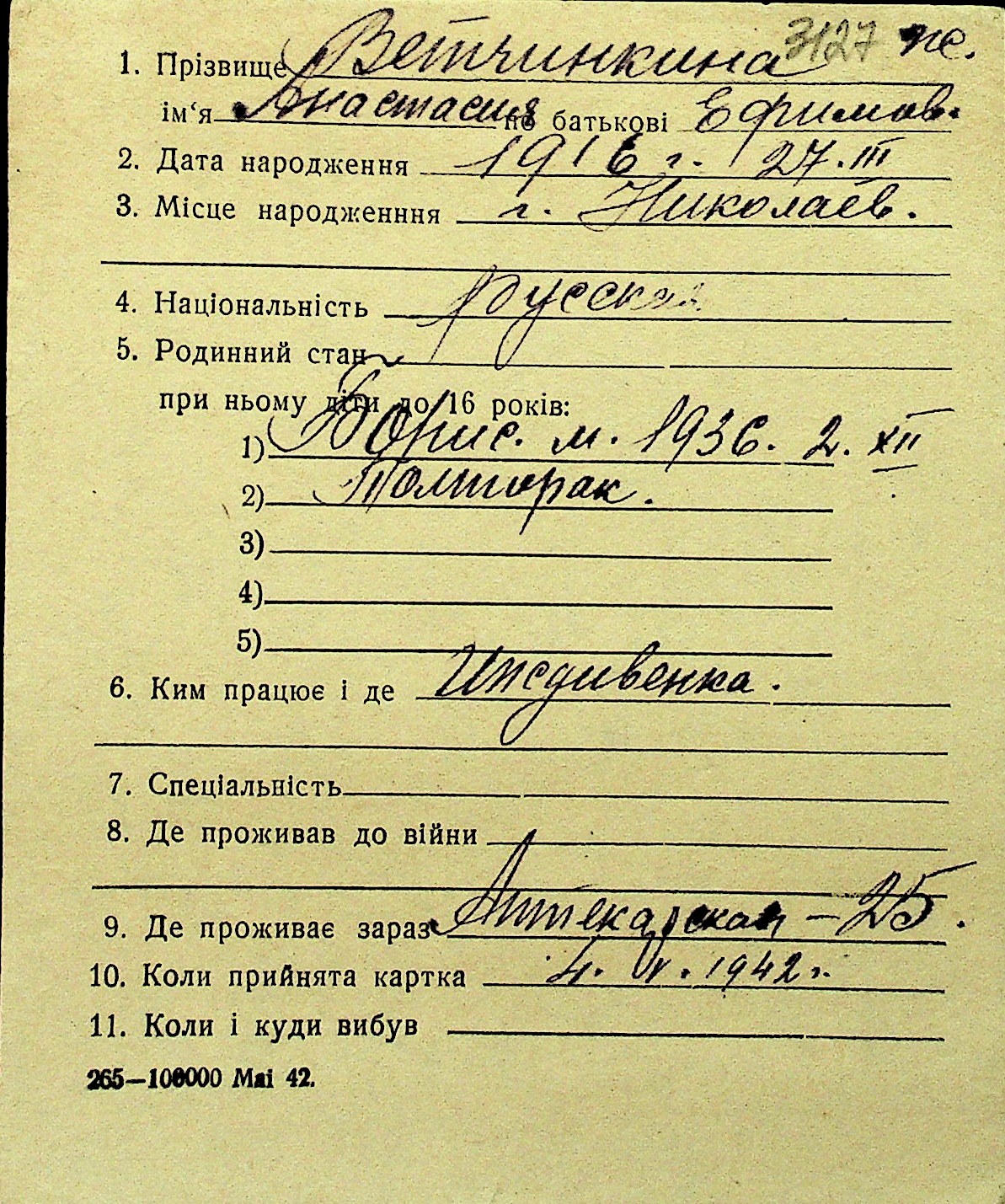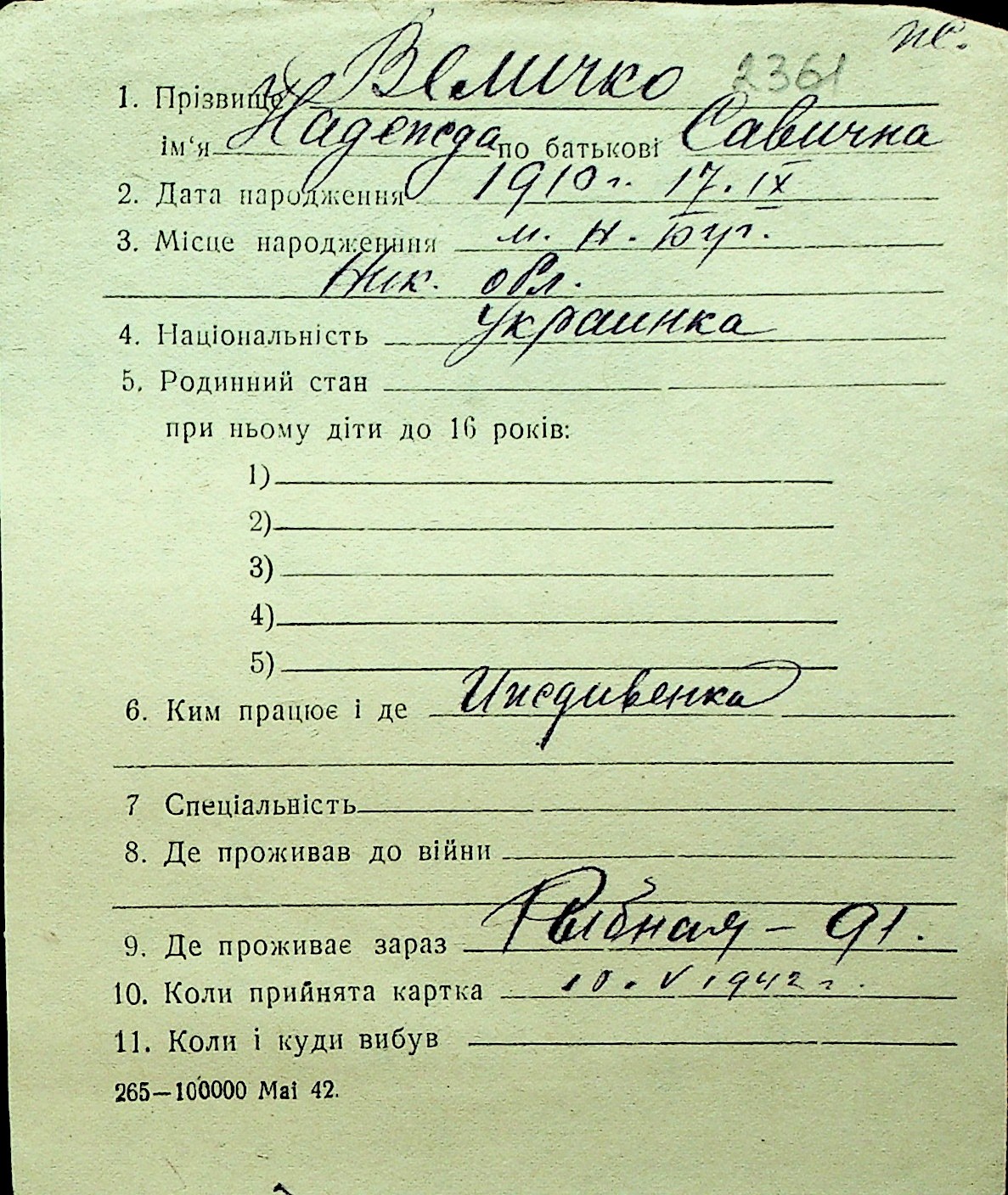 • • Перелік карток до фонду № Н-1016