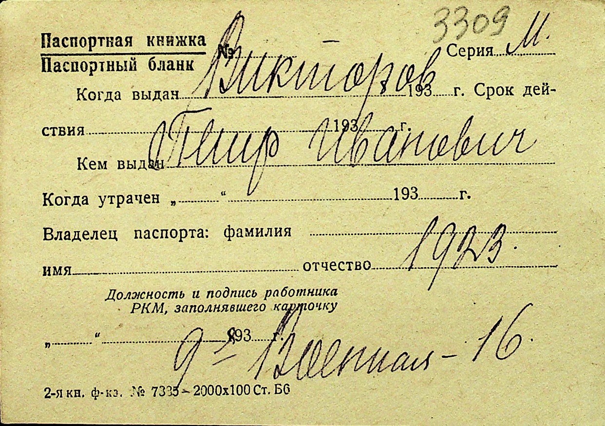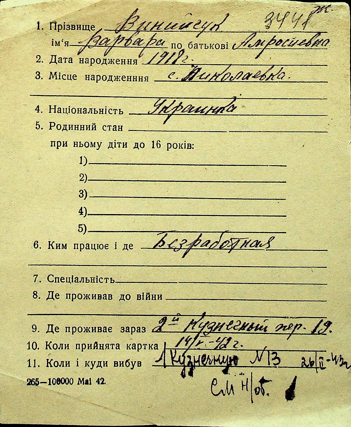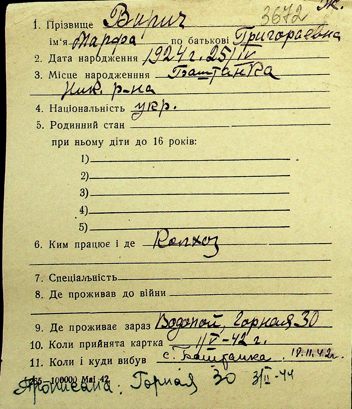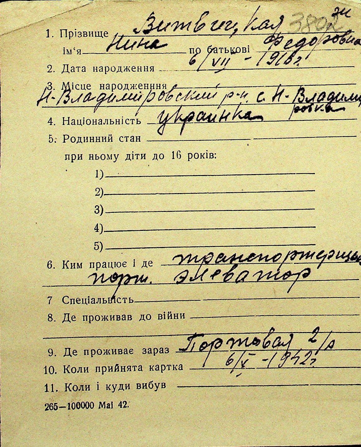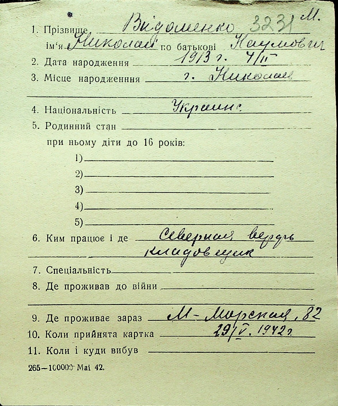 • • Перелік карток до фонду № Н-1016