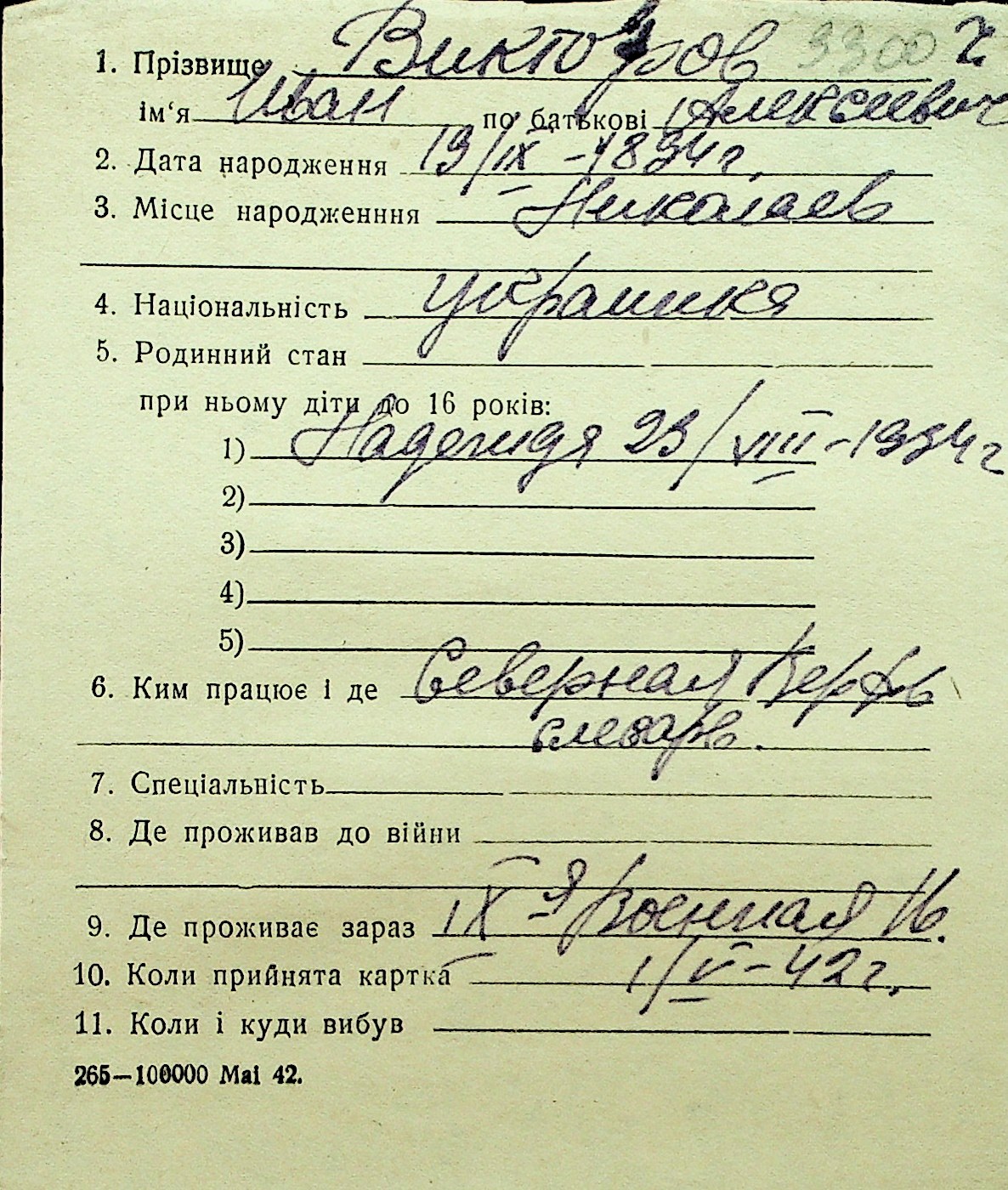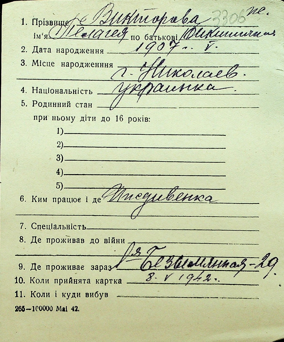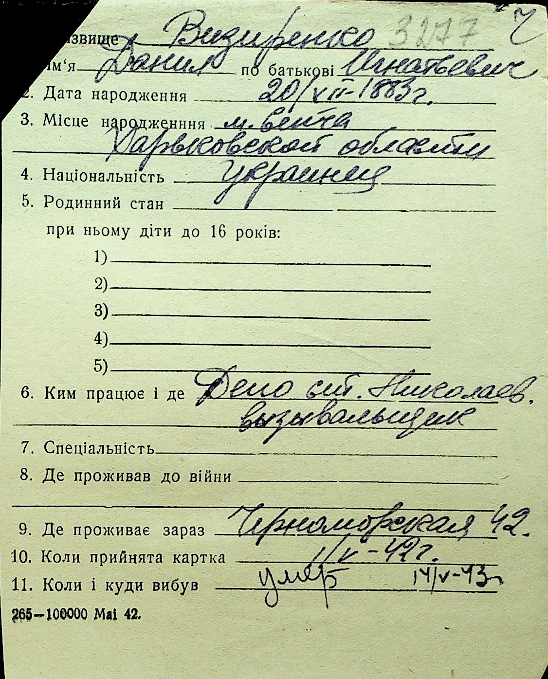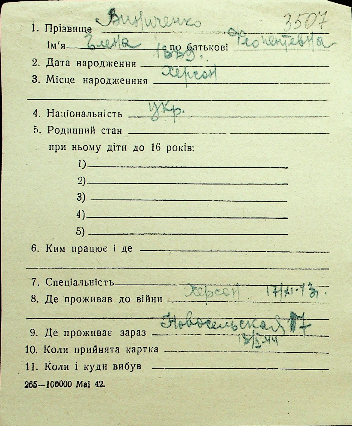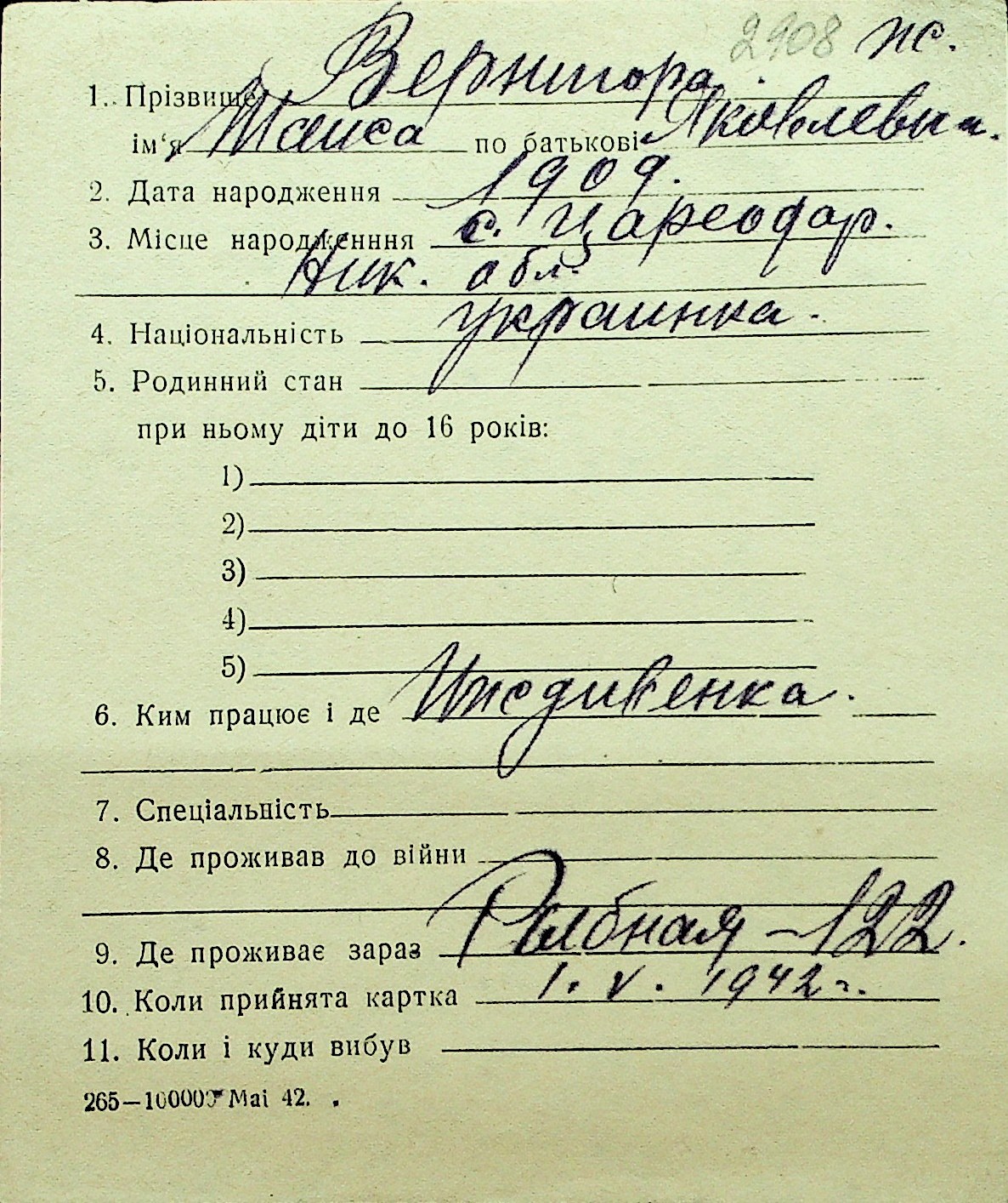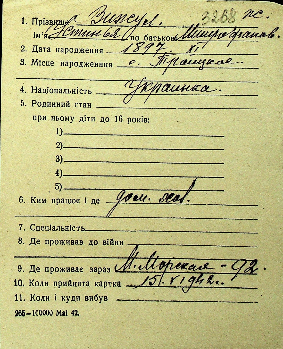 • • Перелік карток до фонду № Н-1016