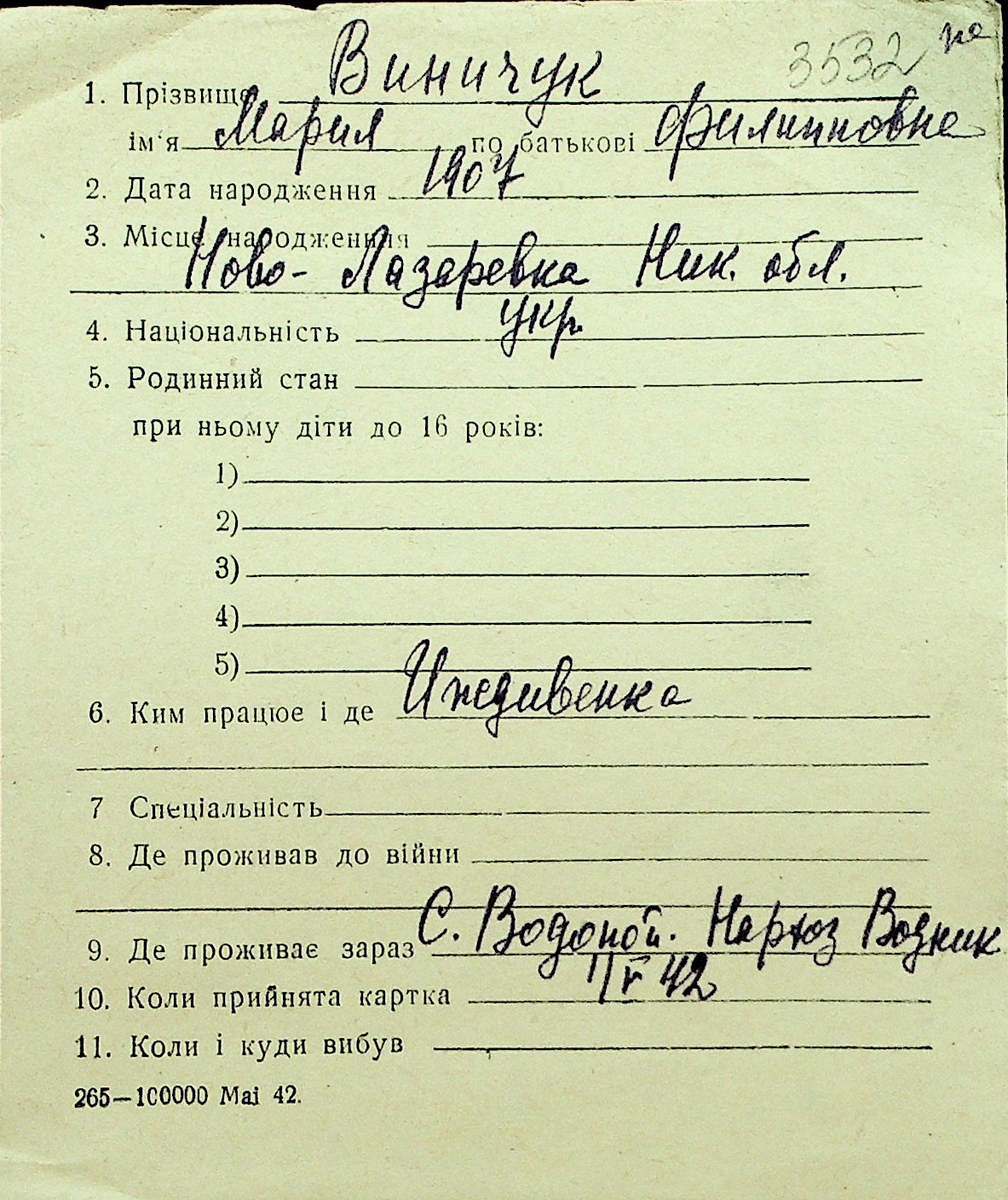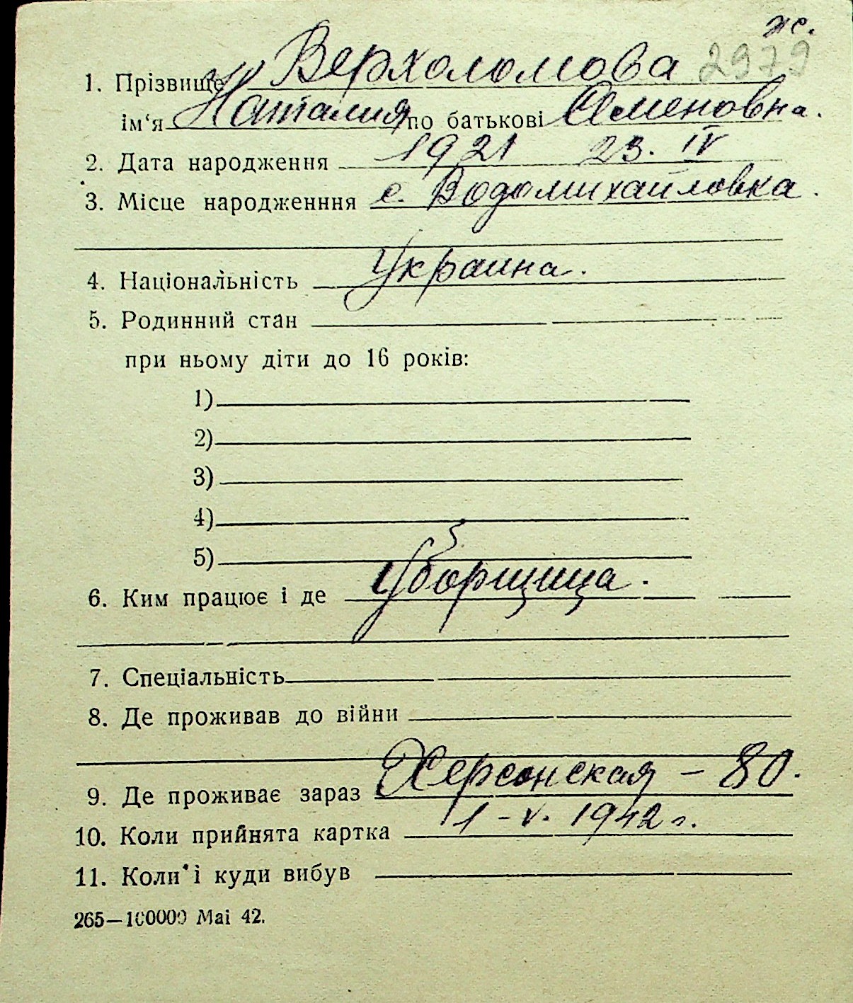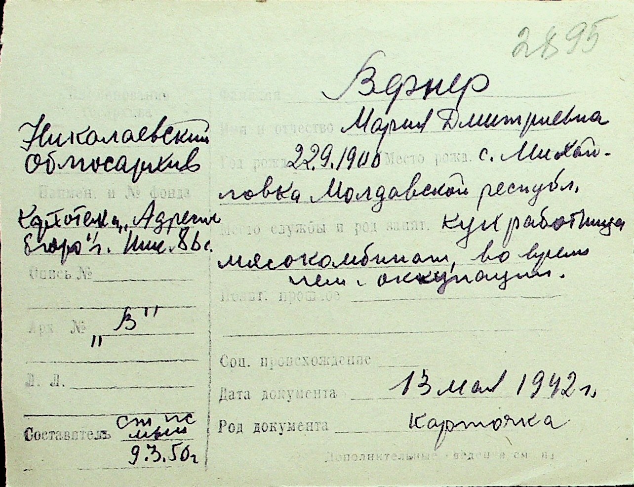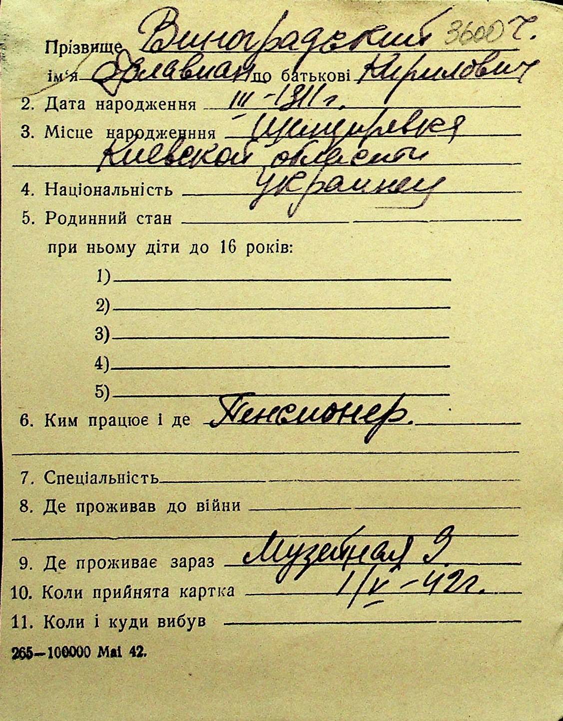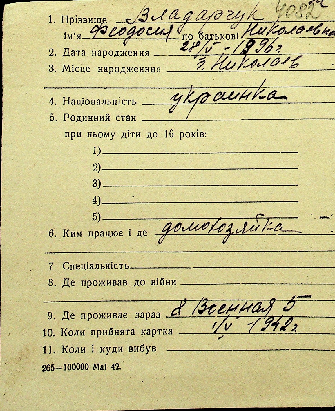 • • Перелік карток до фонду № Н-1016