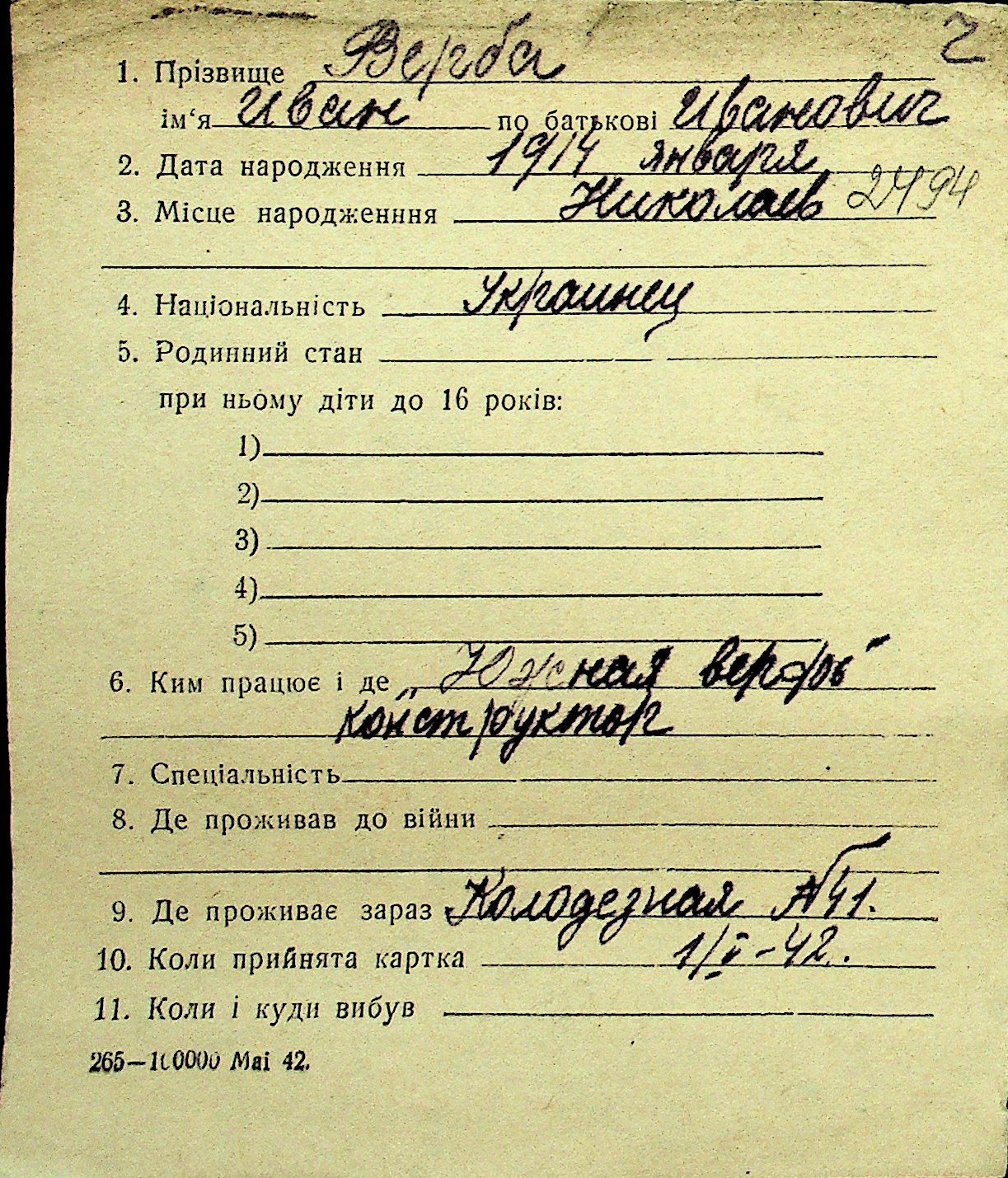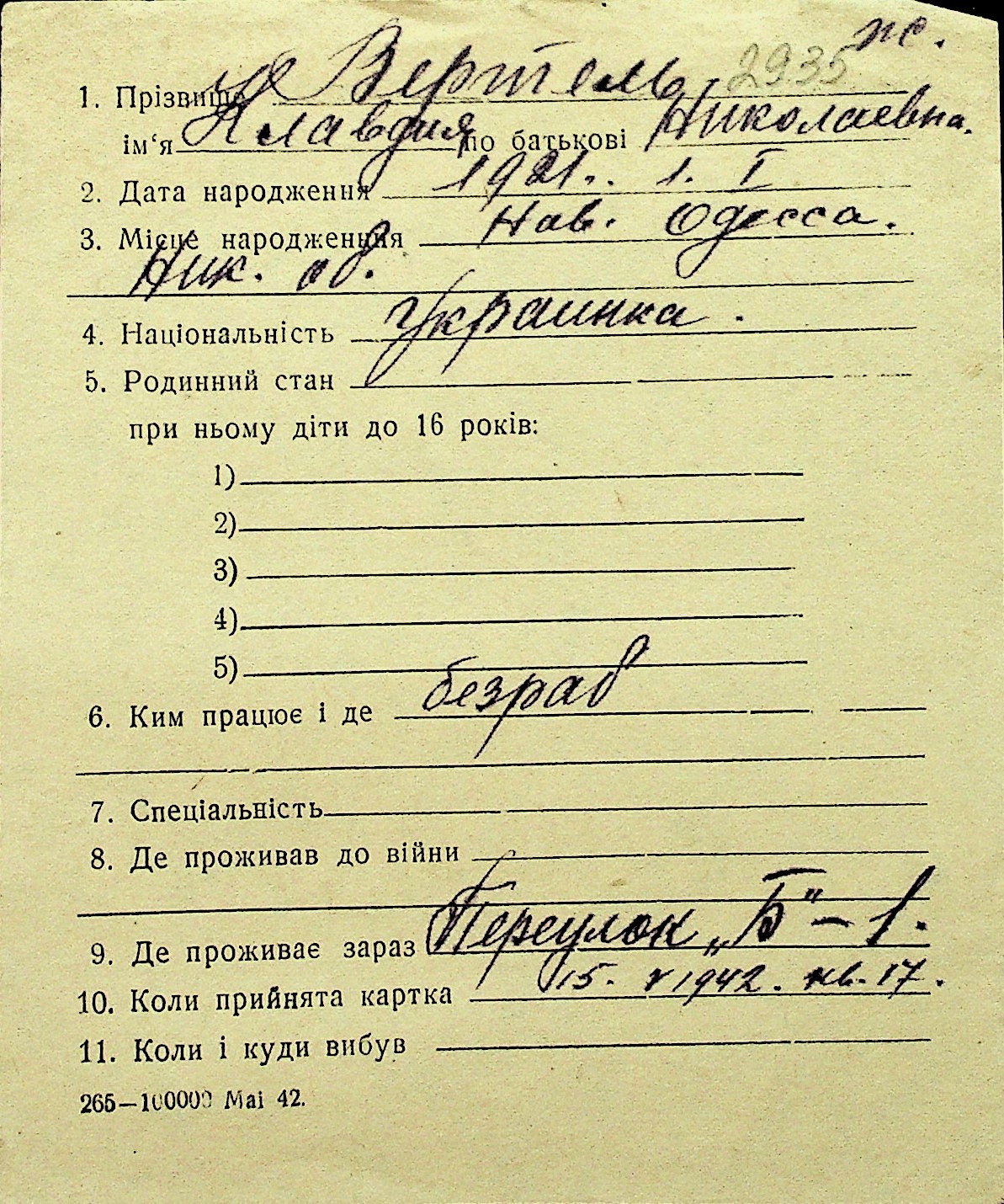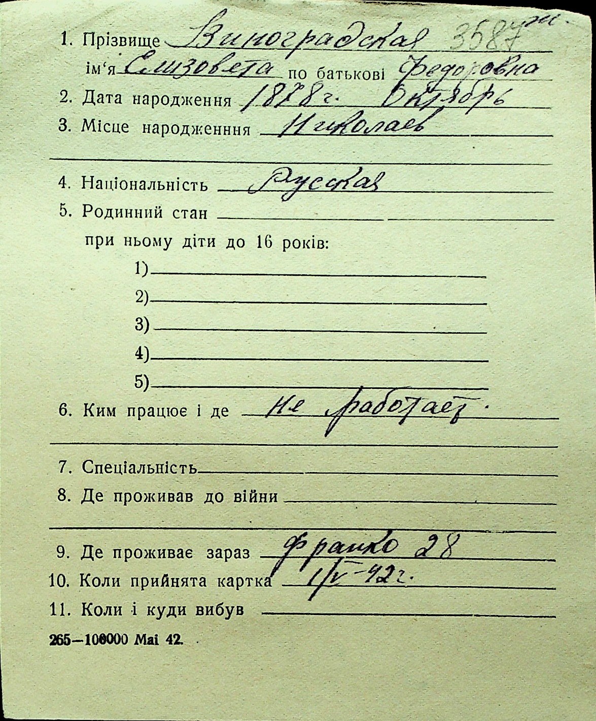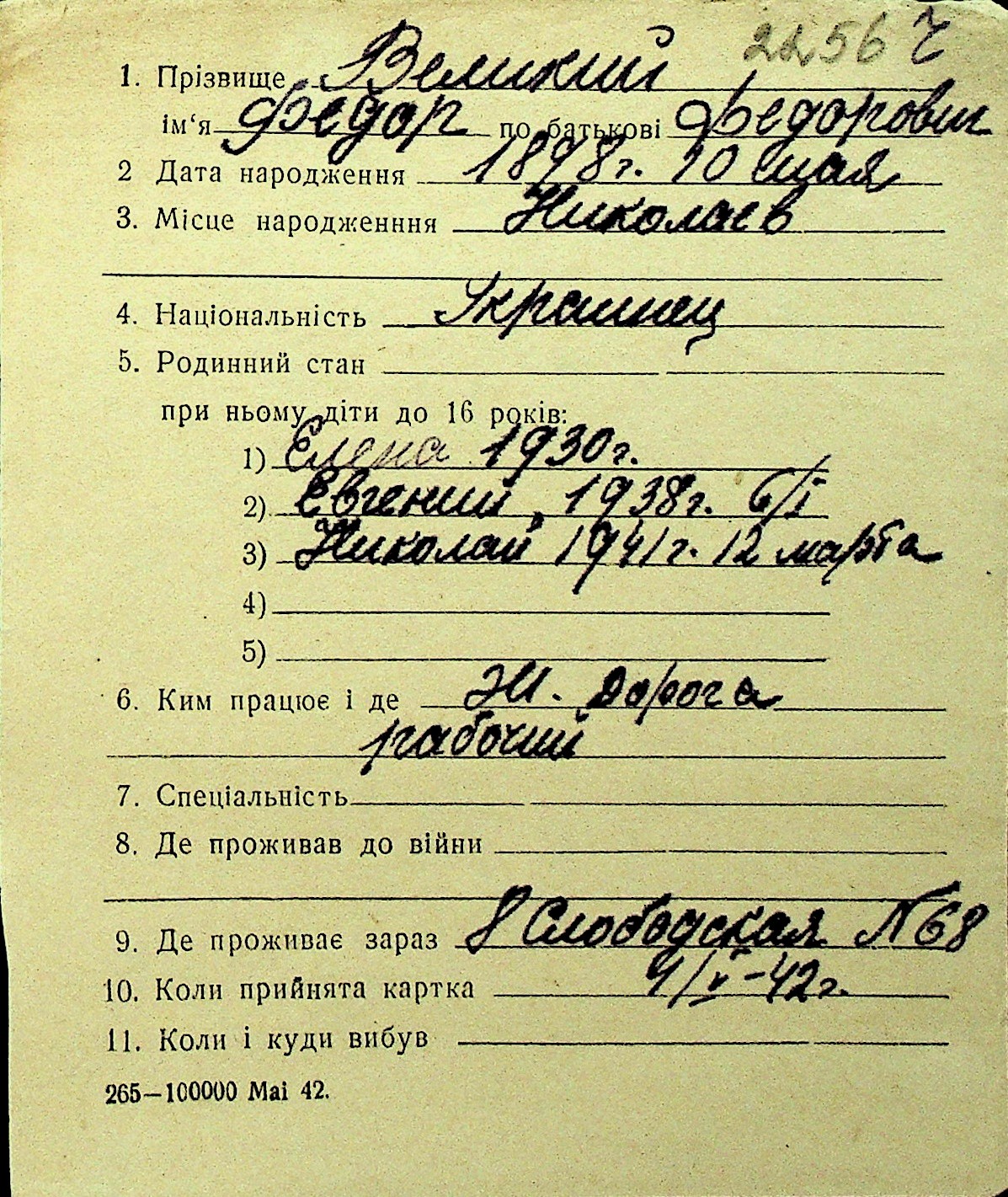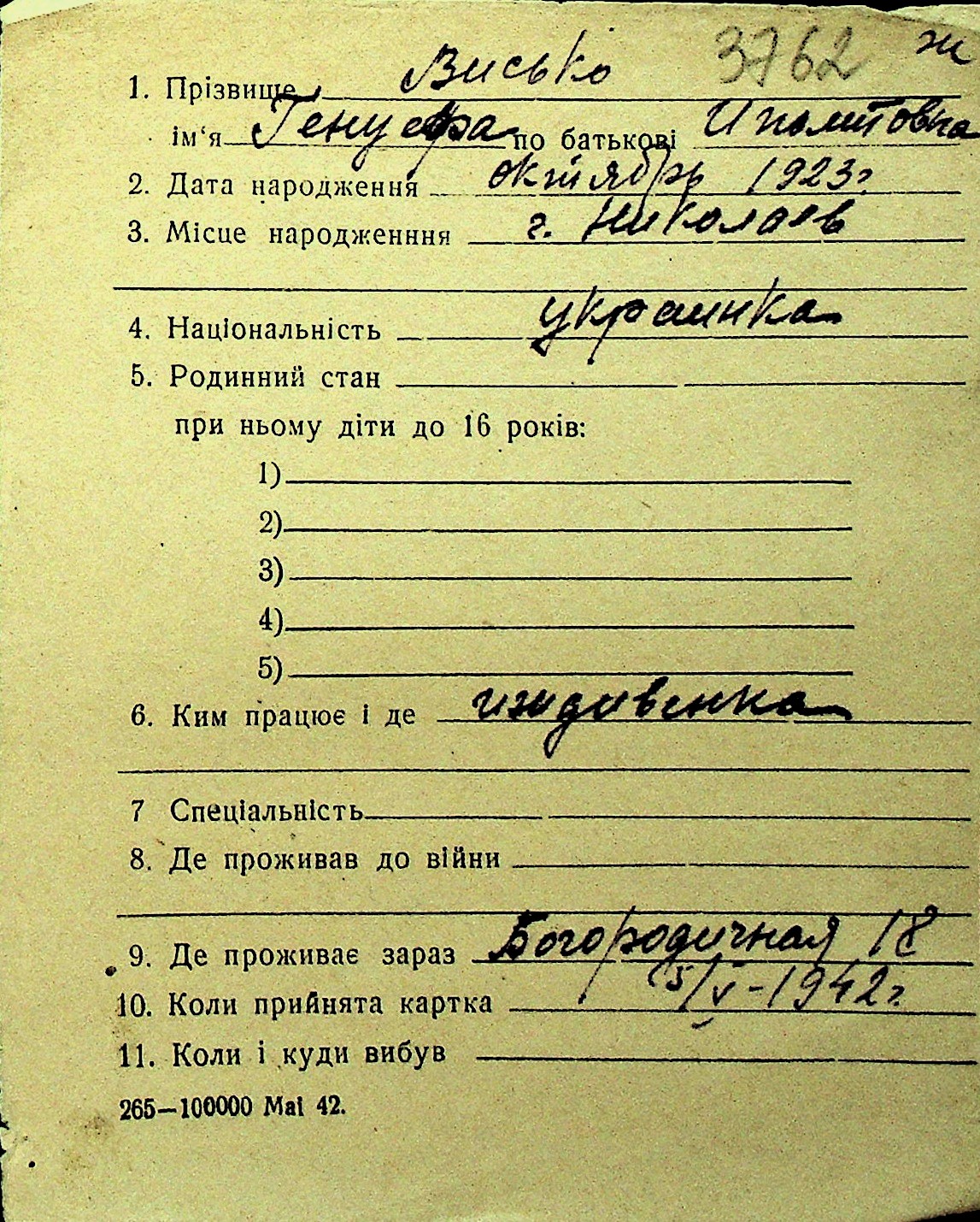 • • Перелік карток до фонду № Н-1016