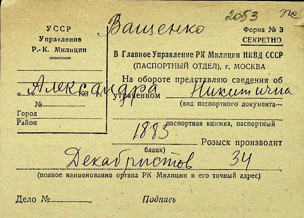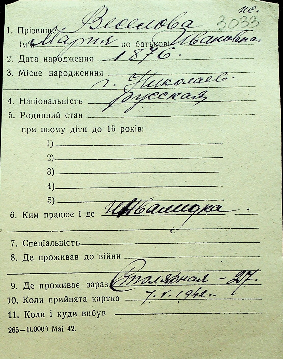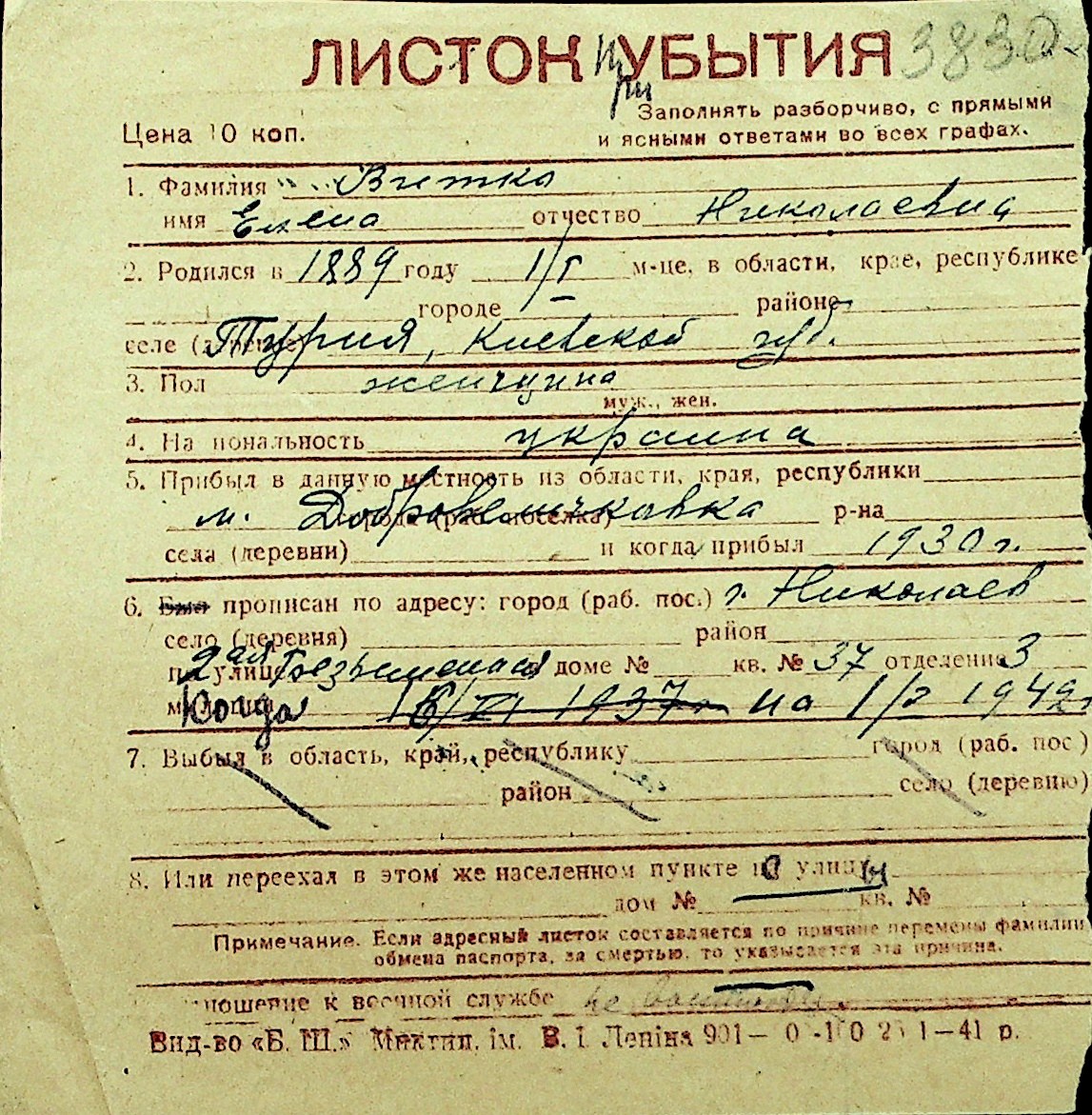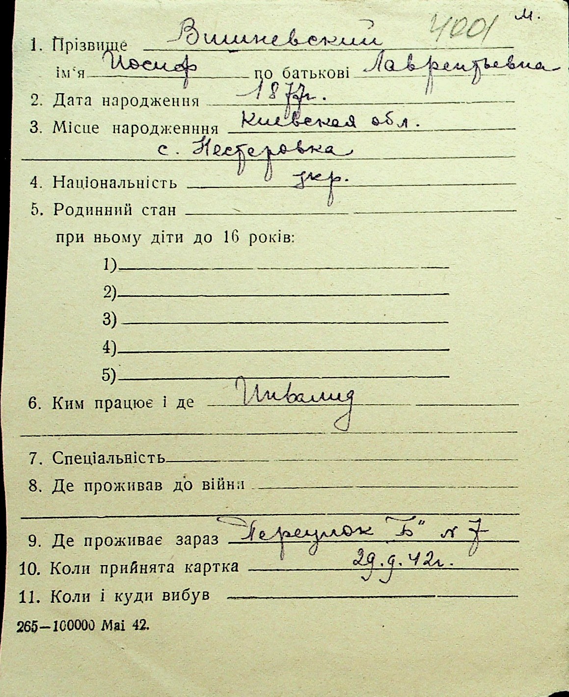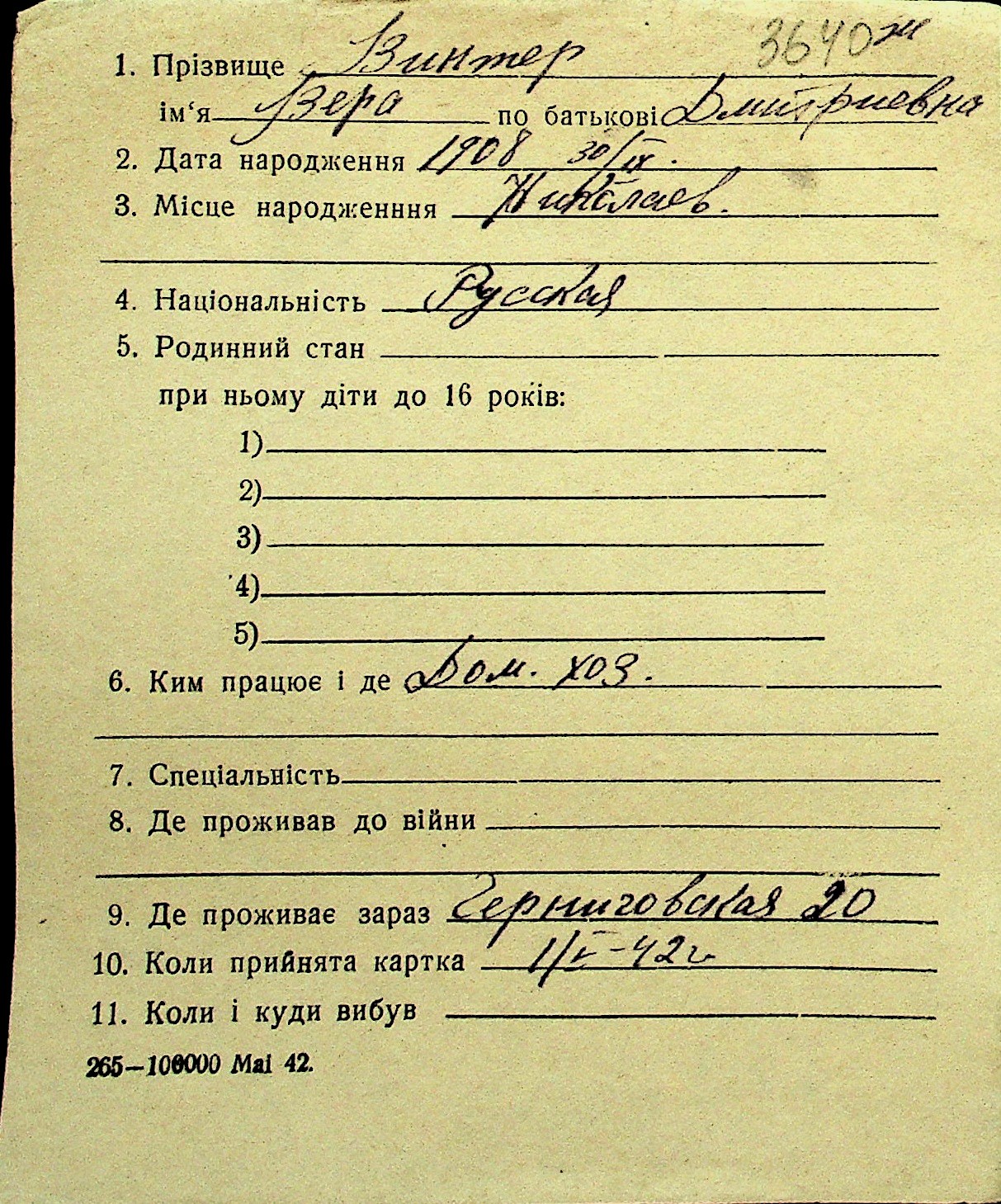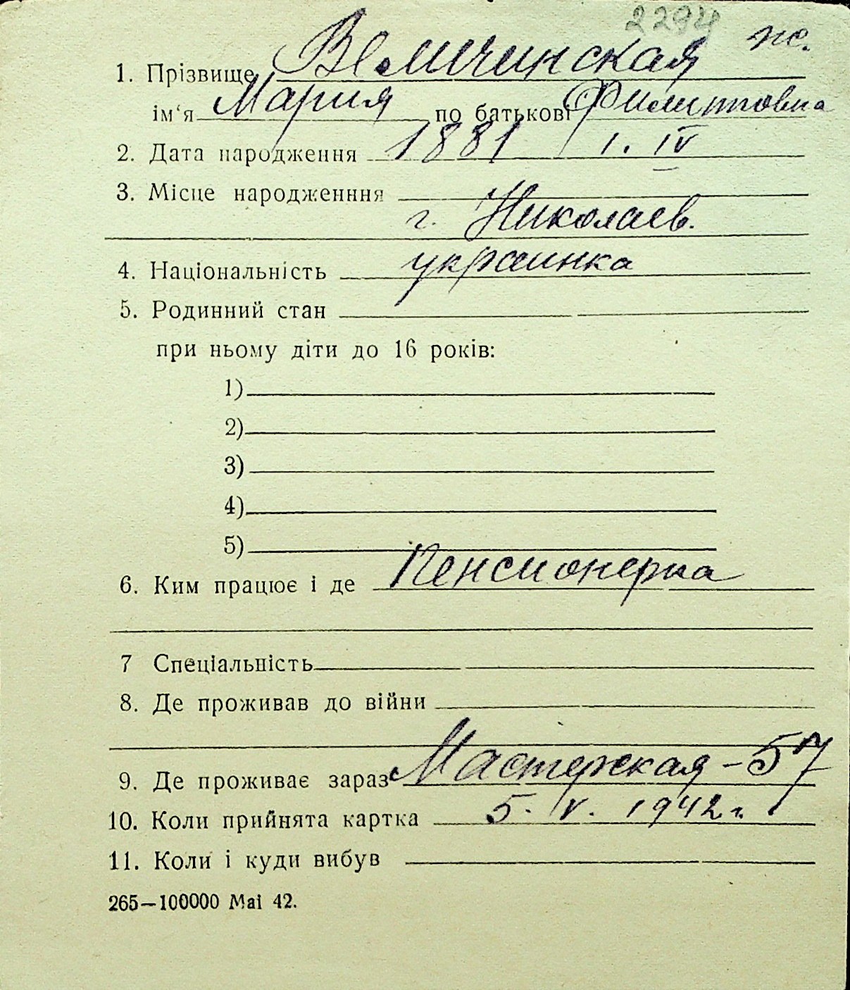 • • Перелік карток до фонду № Н-1016