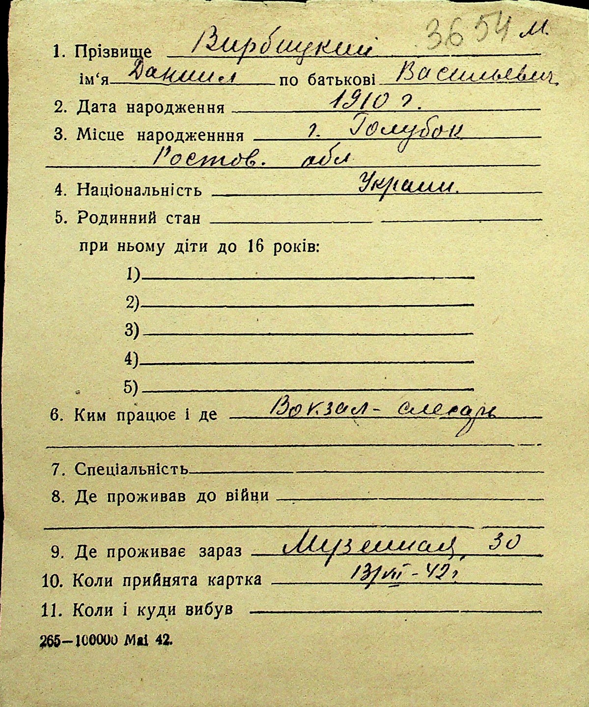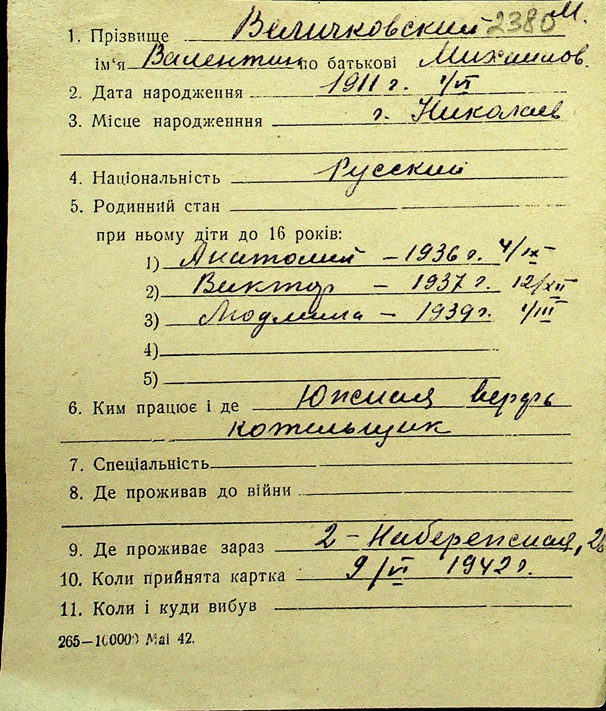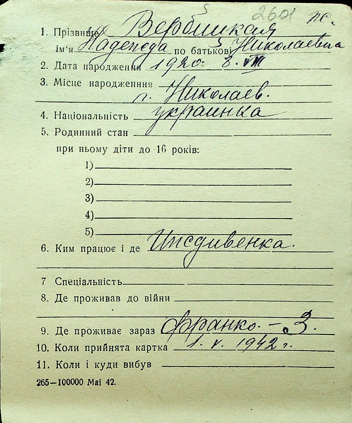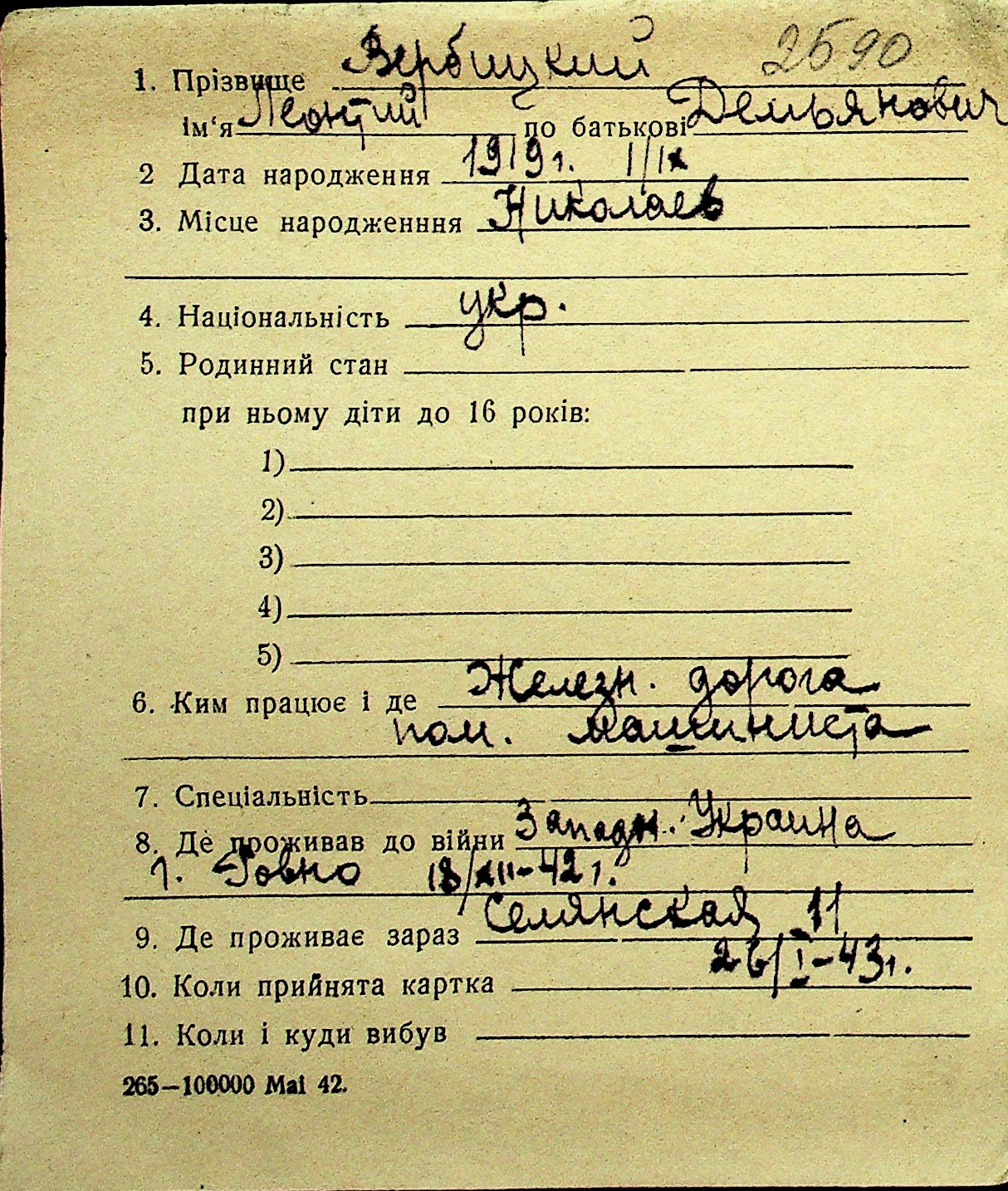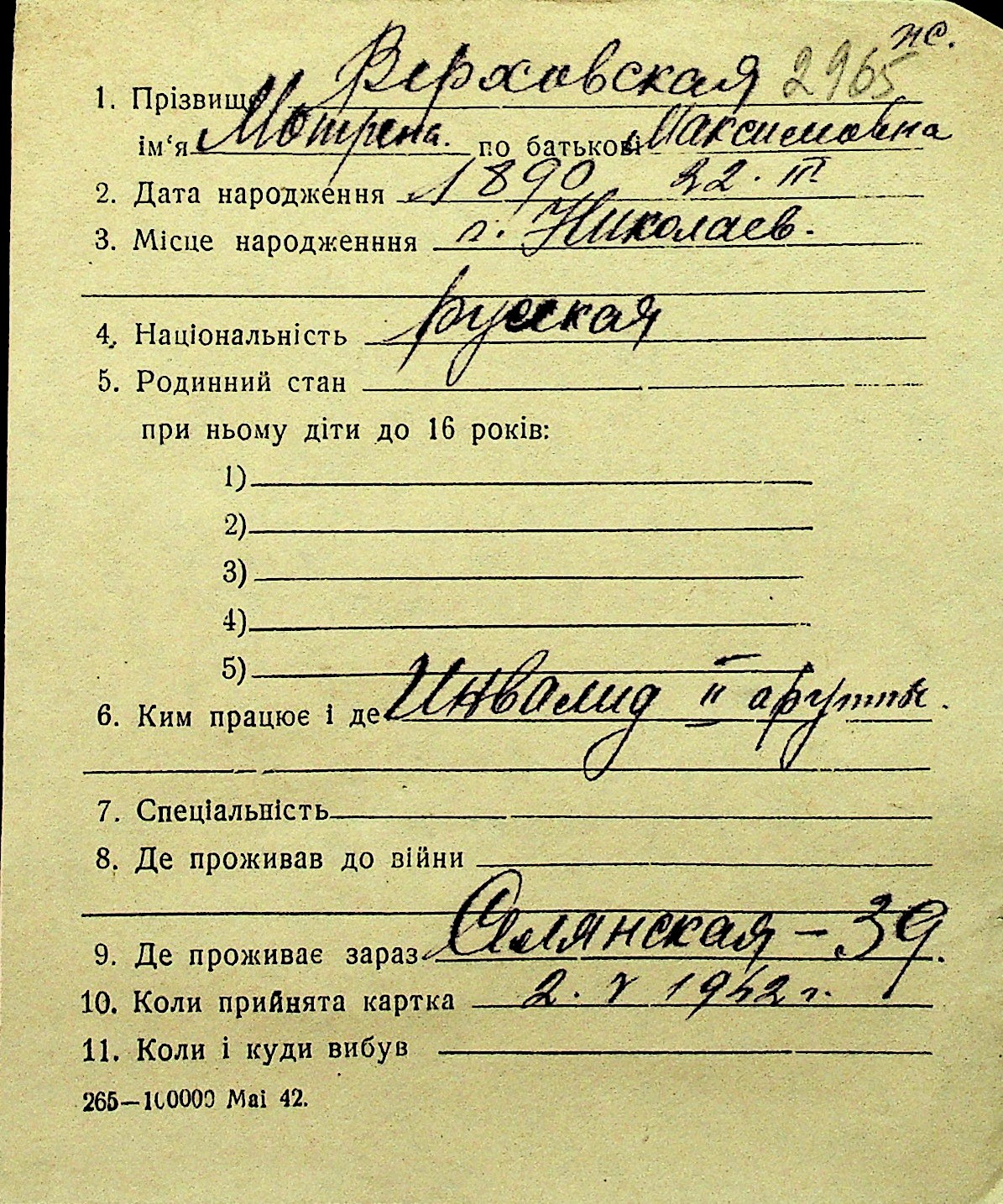 • • Перелік карток до фонду № Н-1016