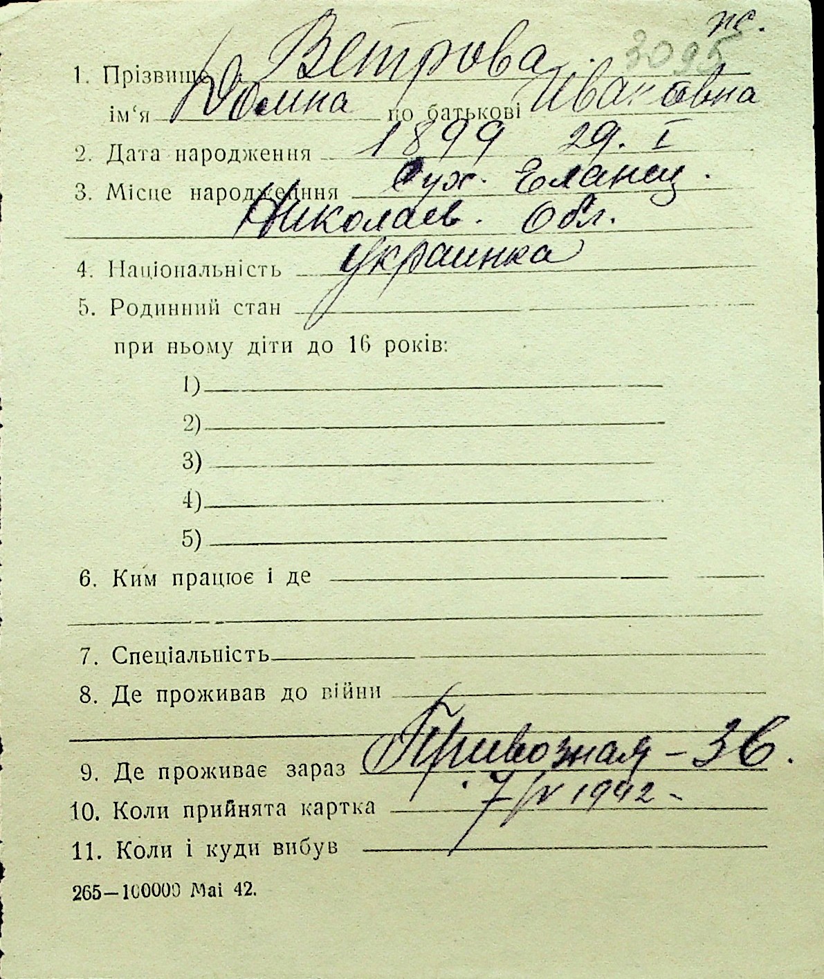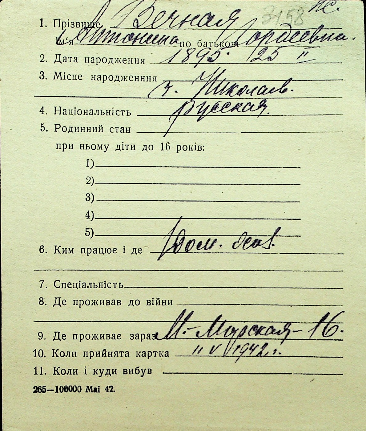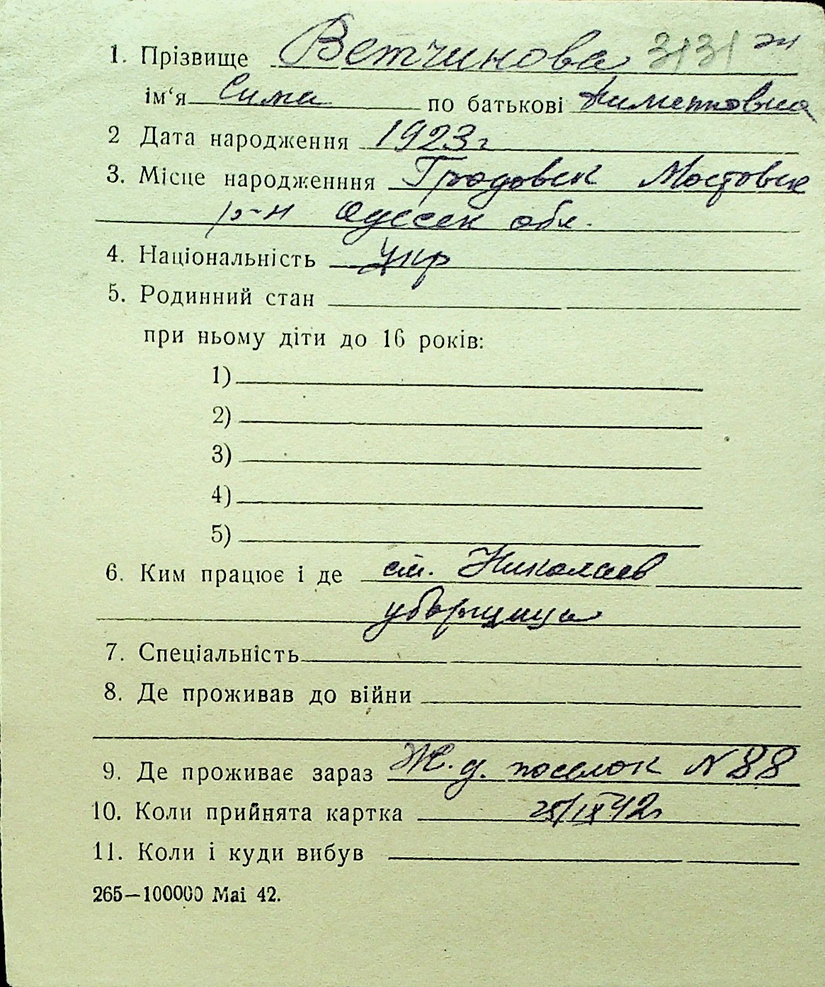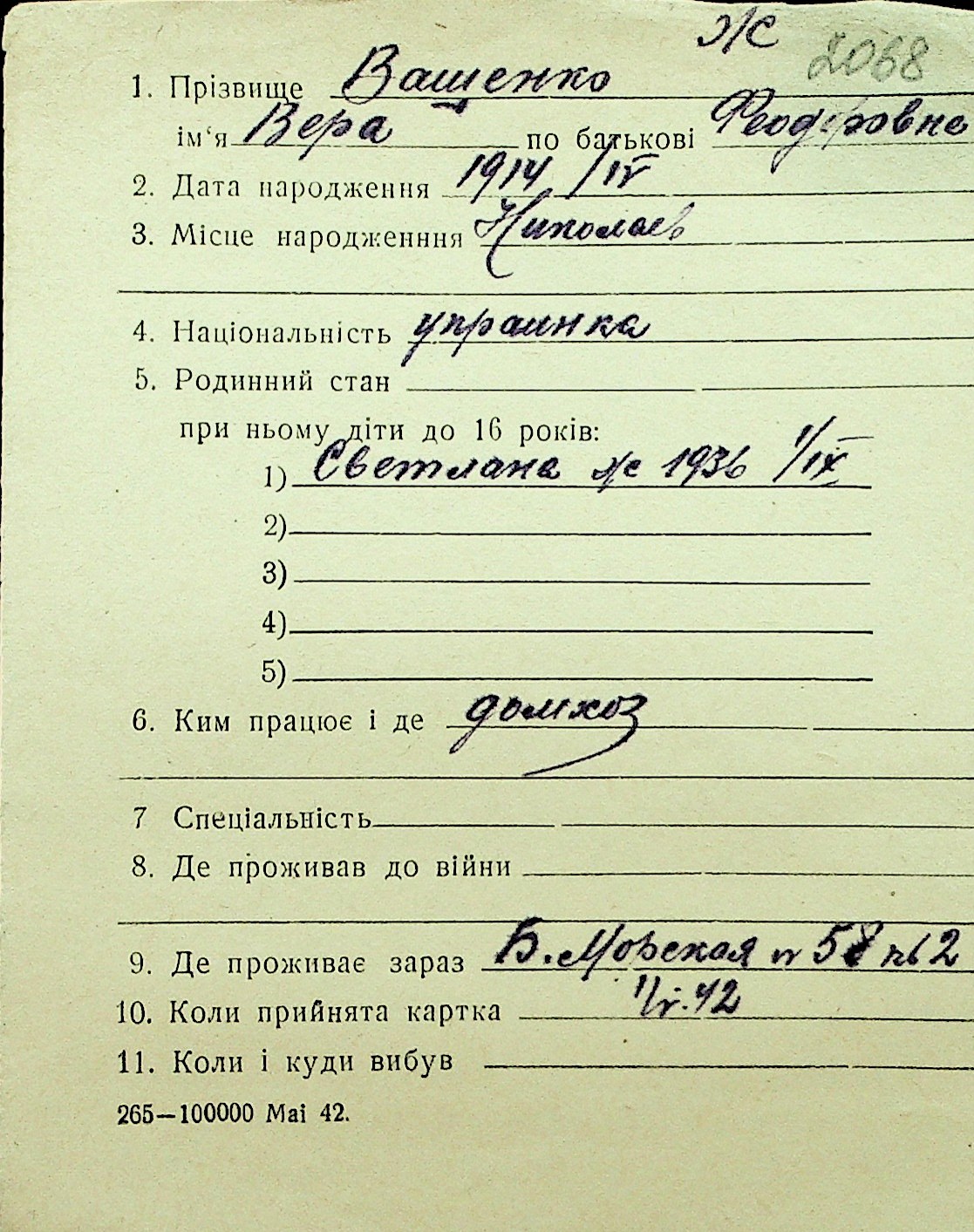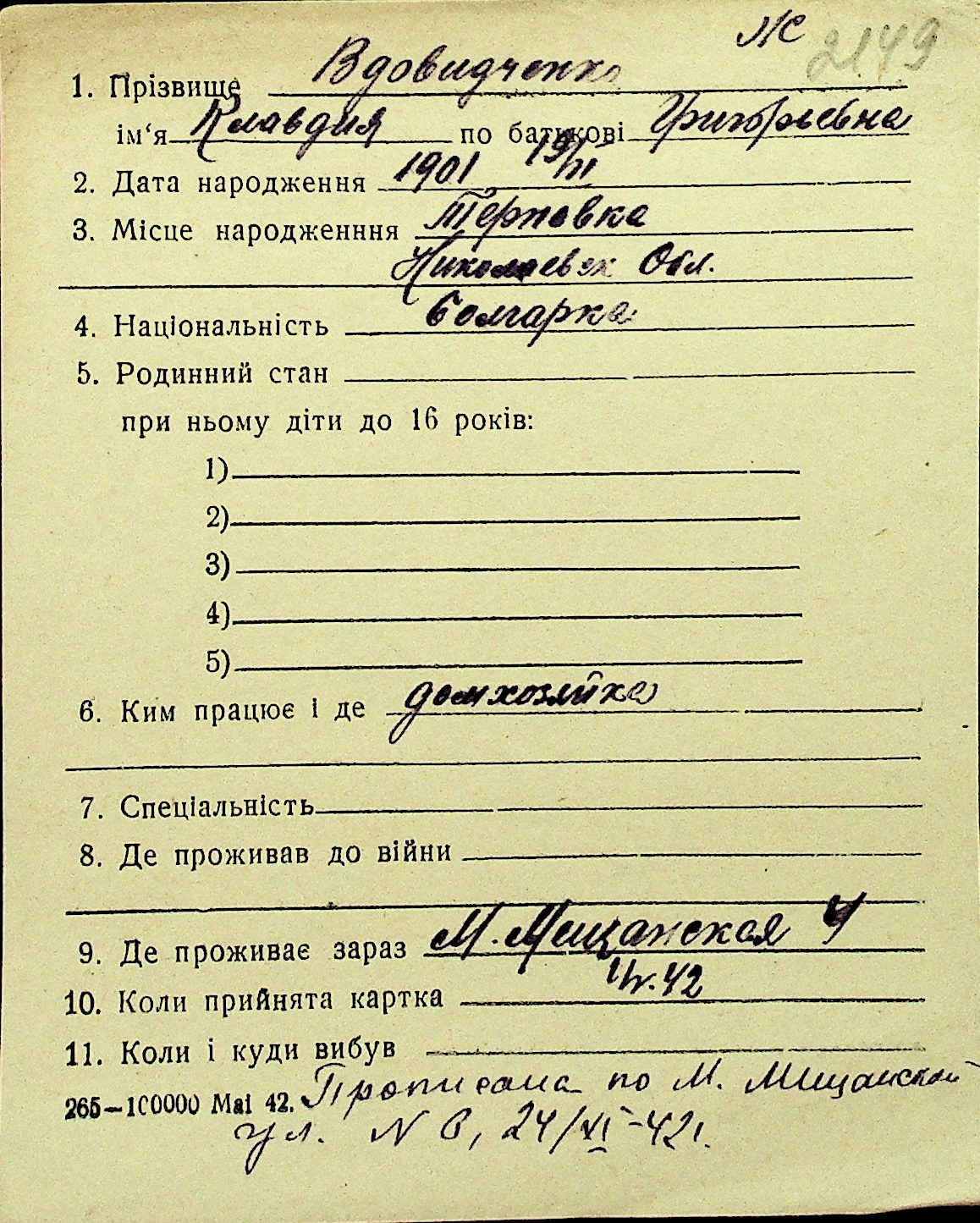 • • Перелік карток до фонду № Н-1016