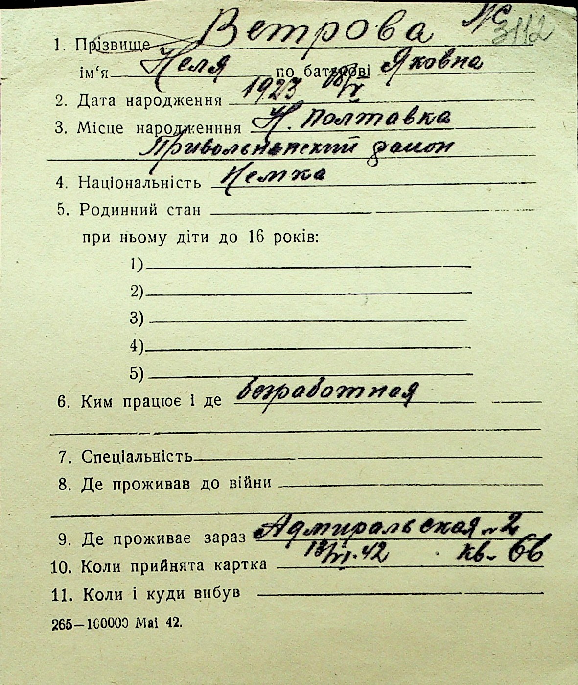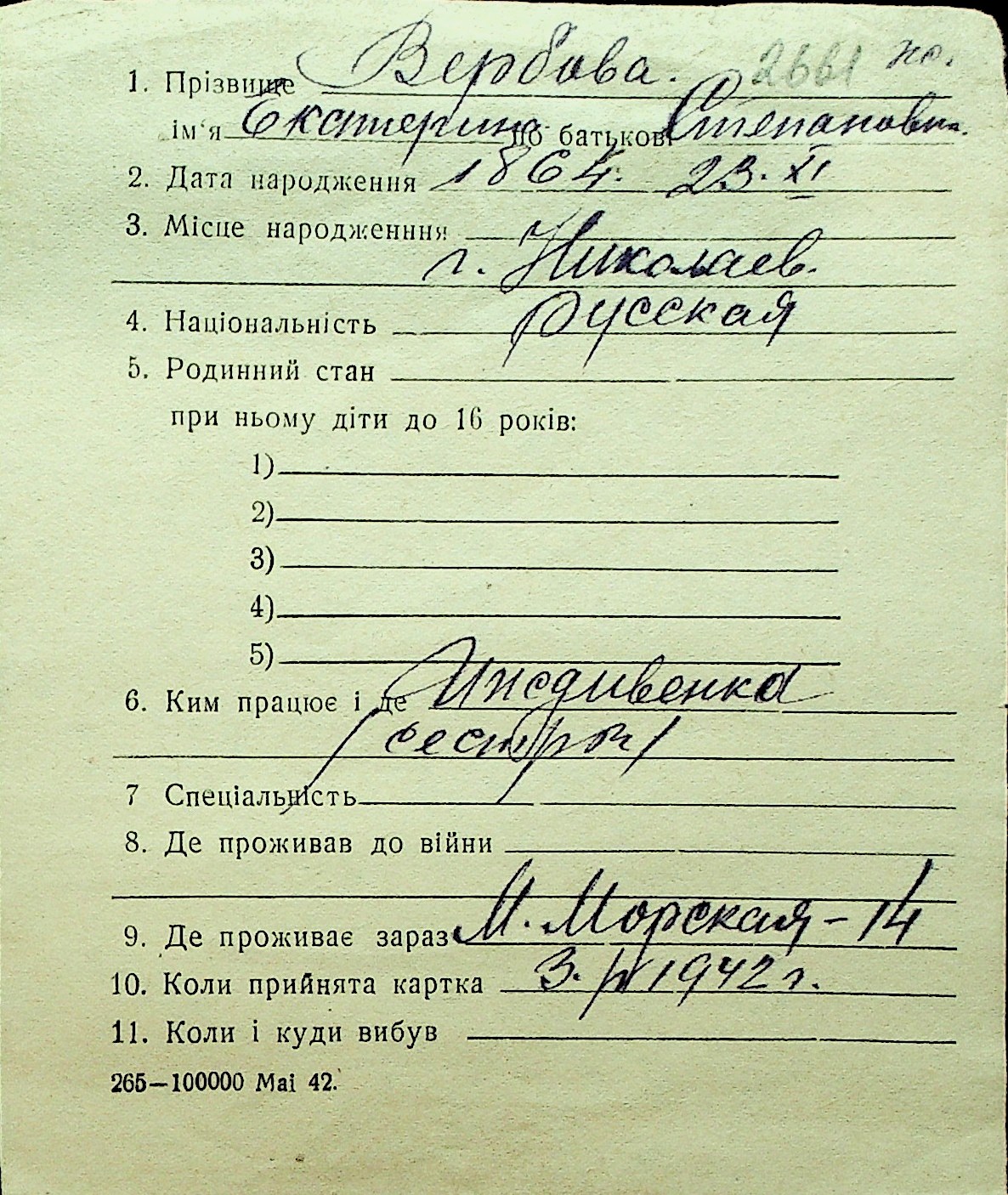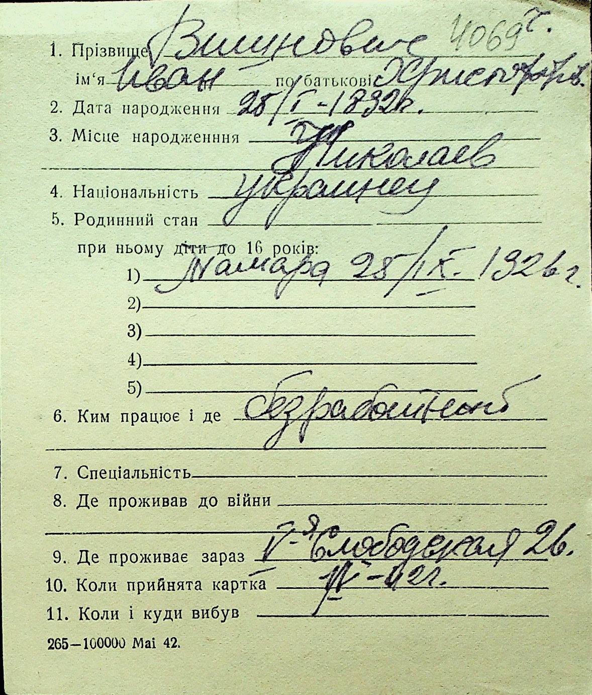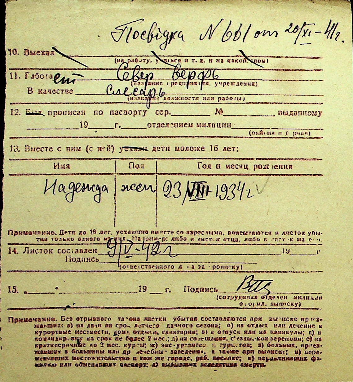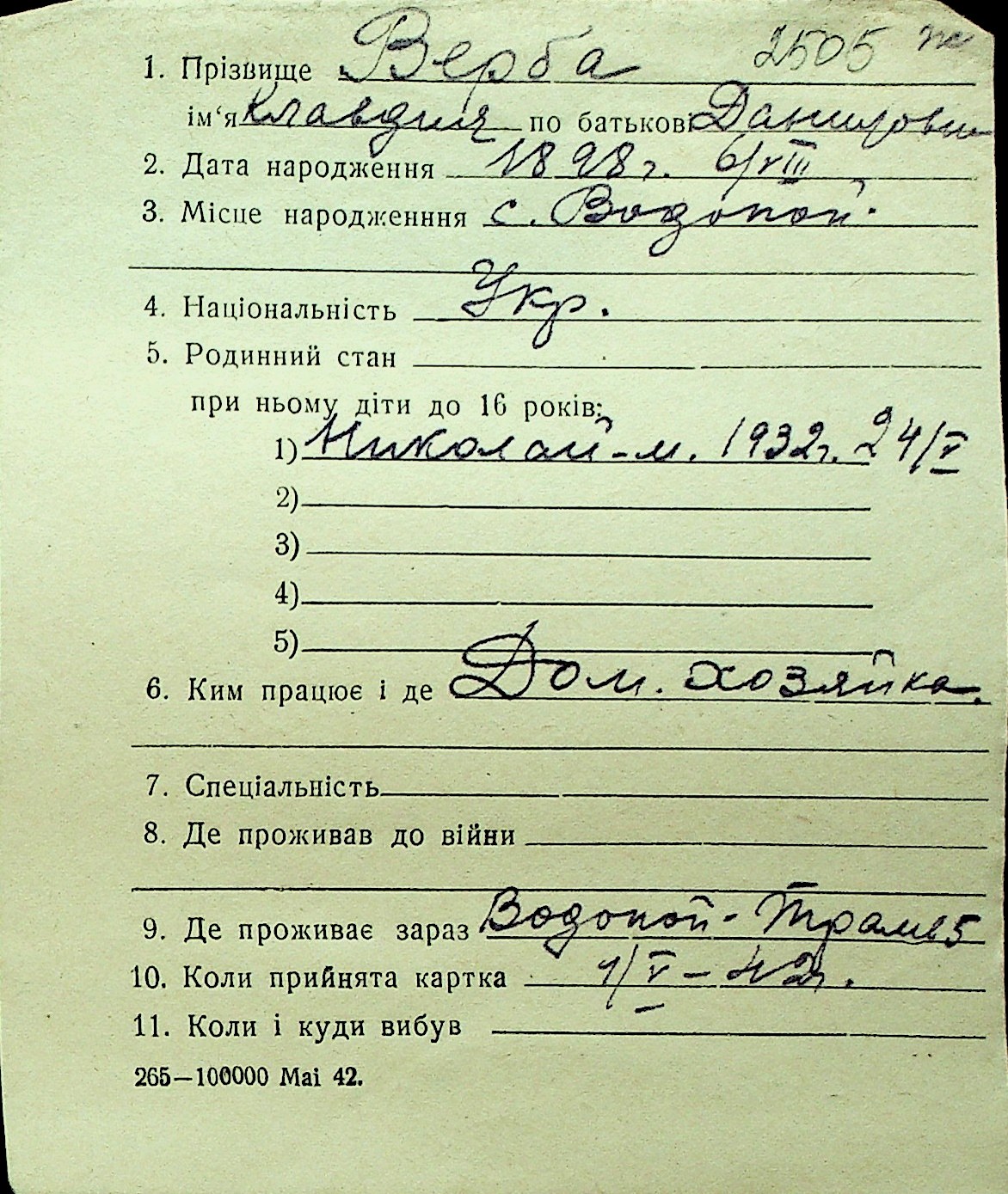 • • Перелік карток до фонду № Н-1016