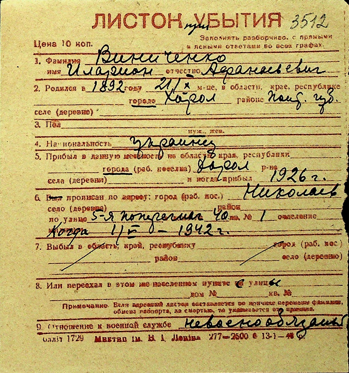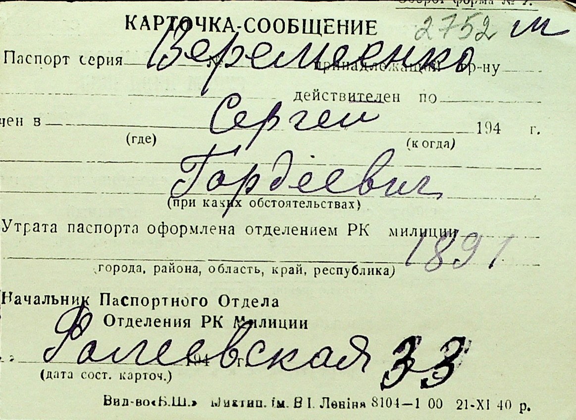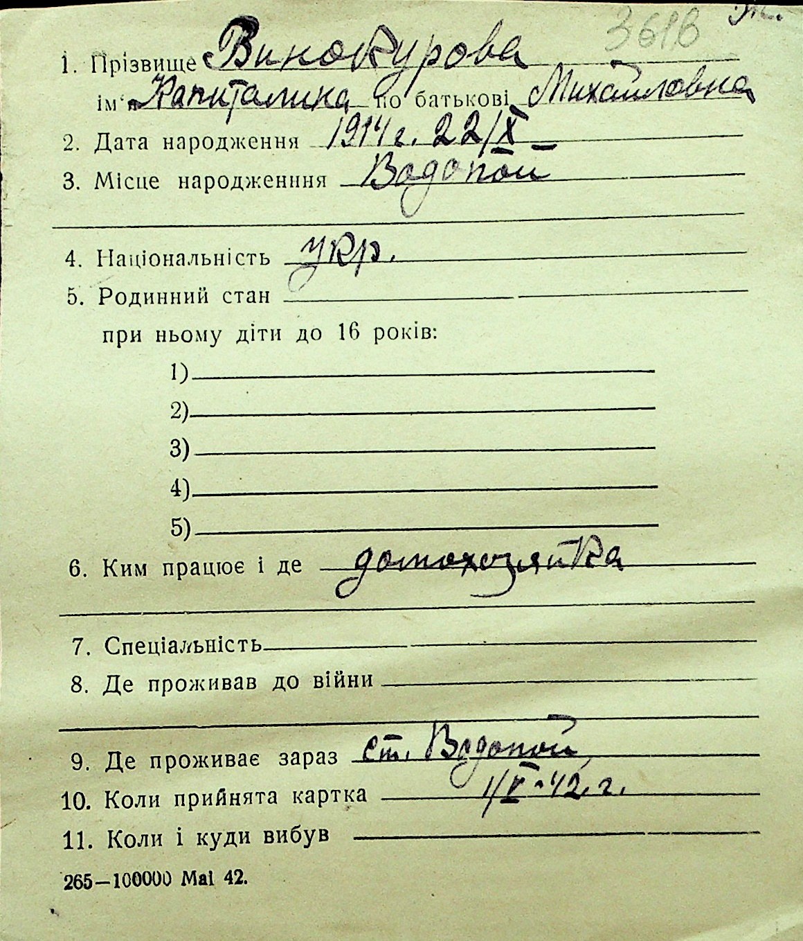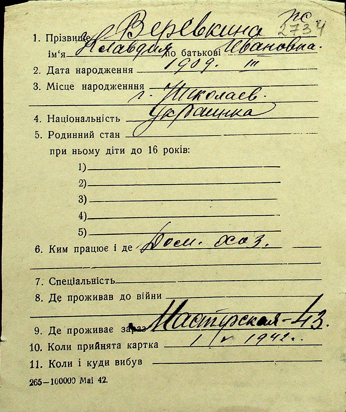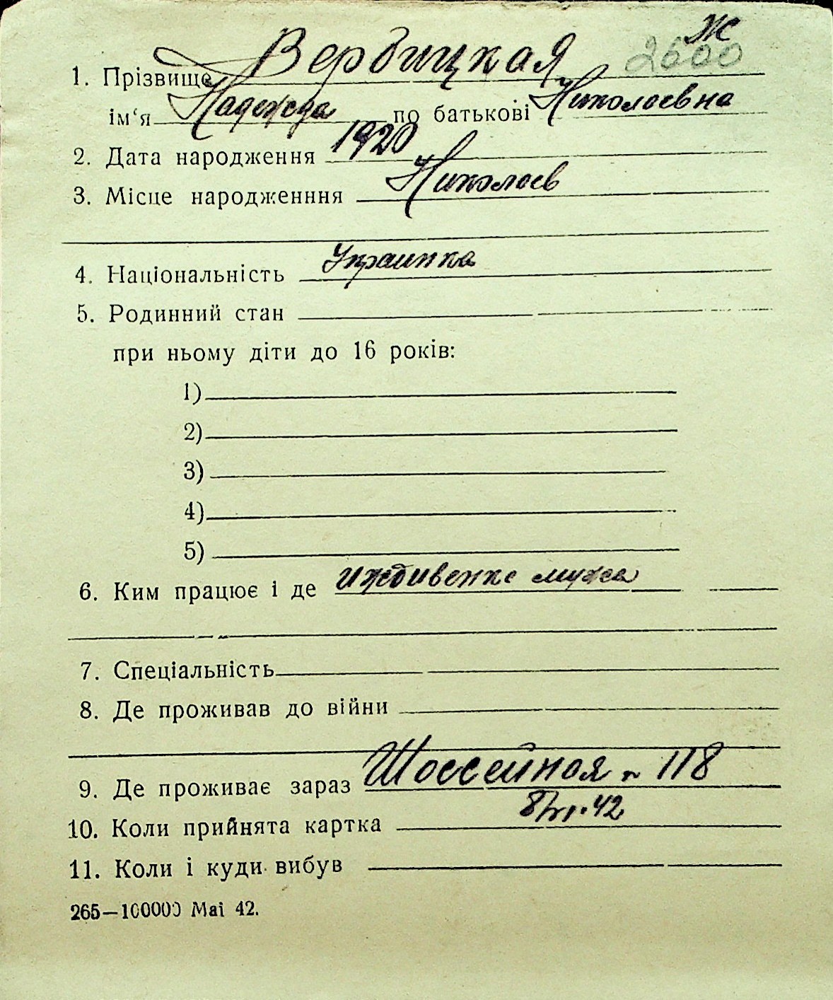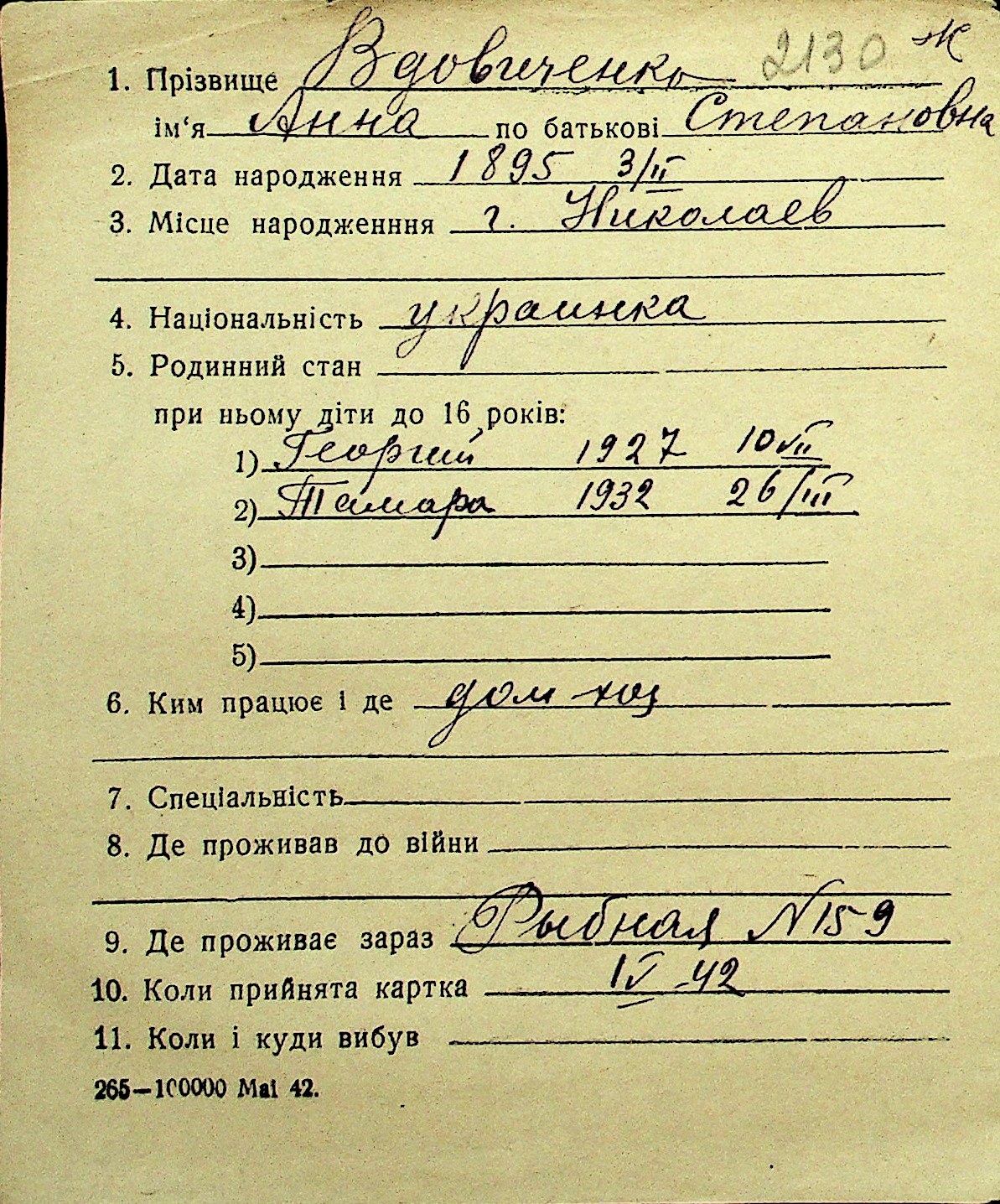 • • Перелік карток до фонду № Н-1016