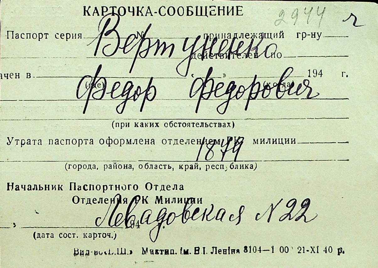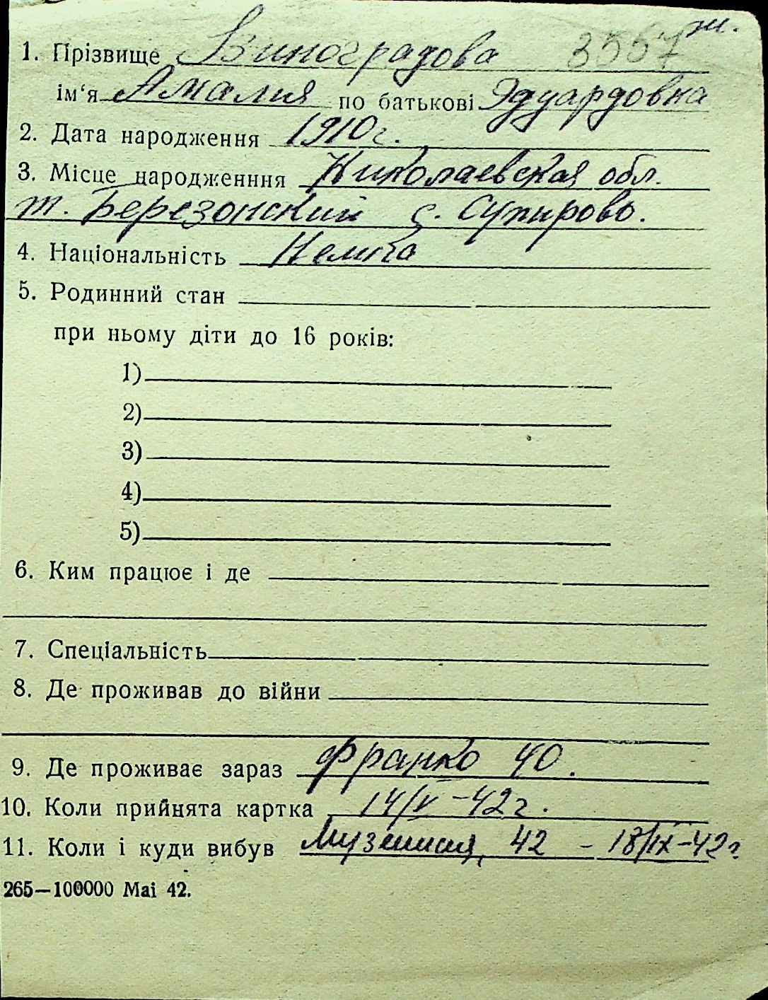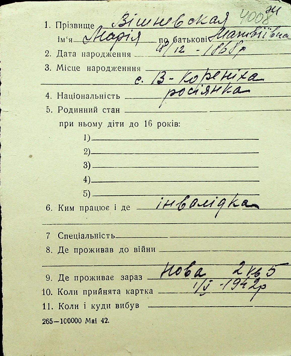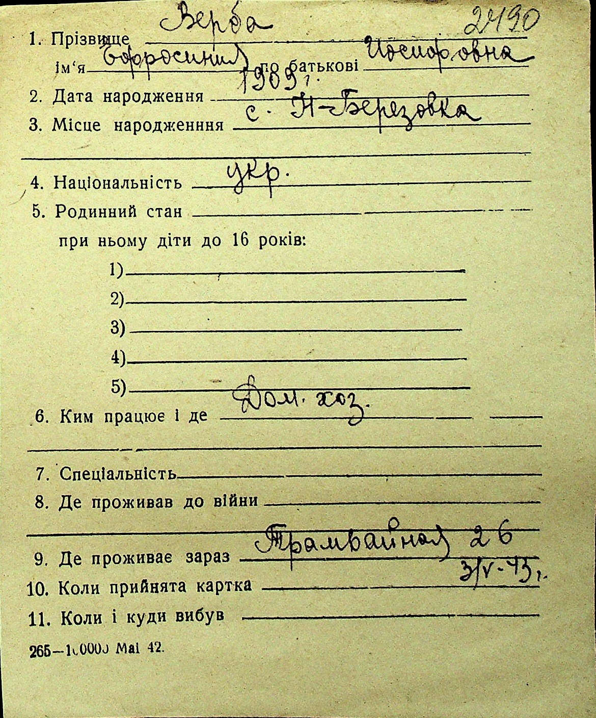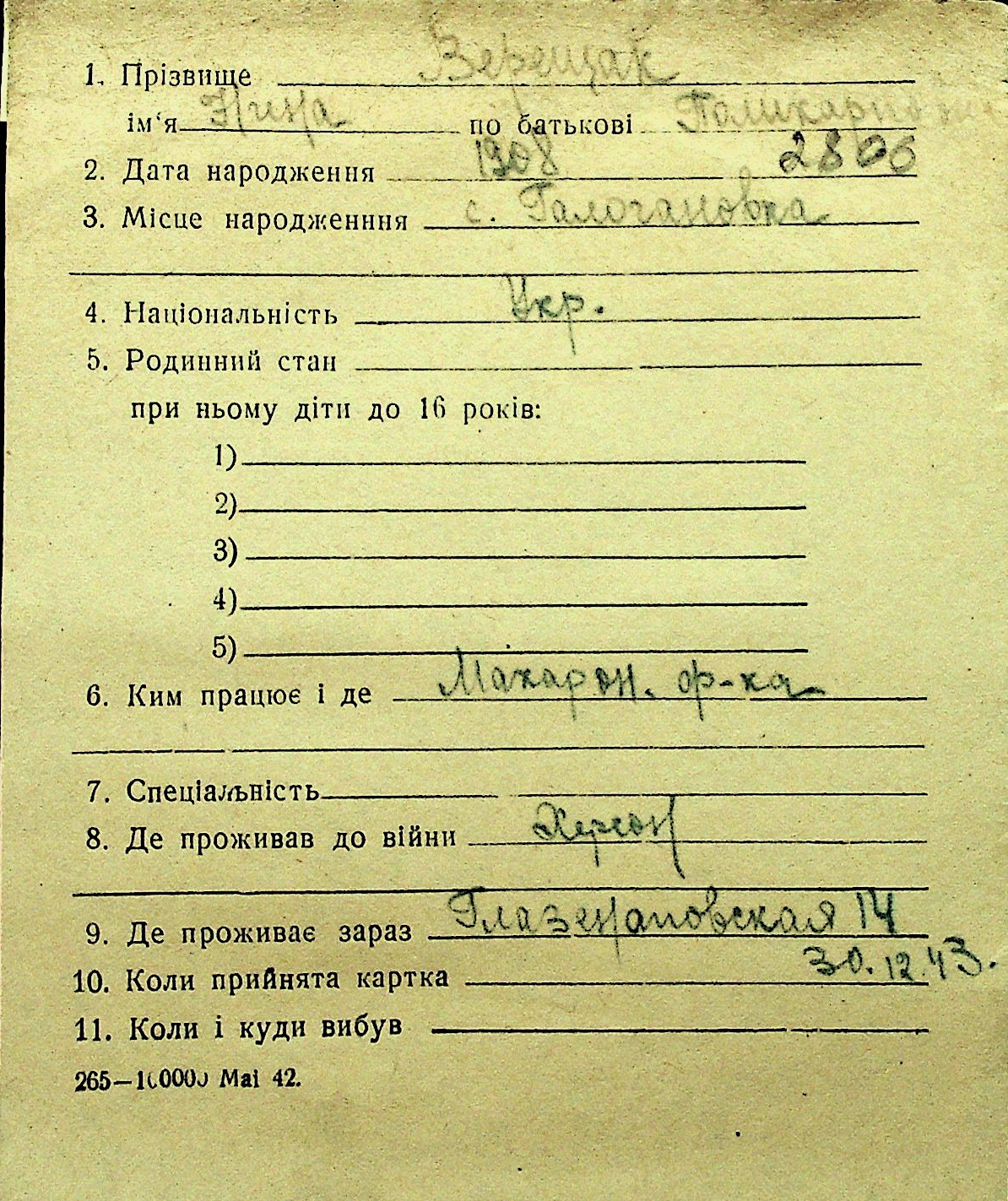 • • Перелік карток до фонду № Н-1016