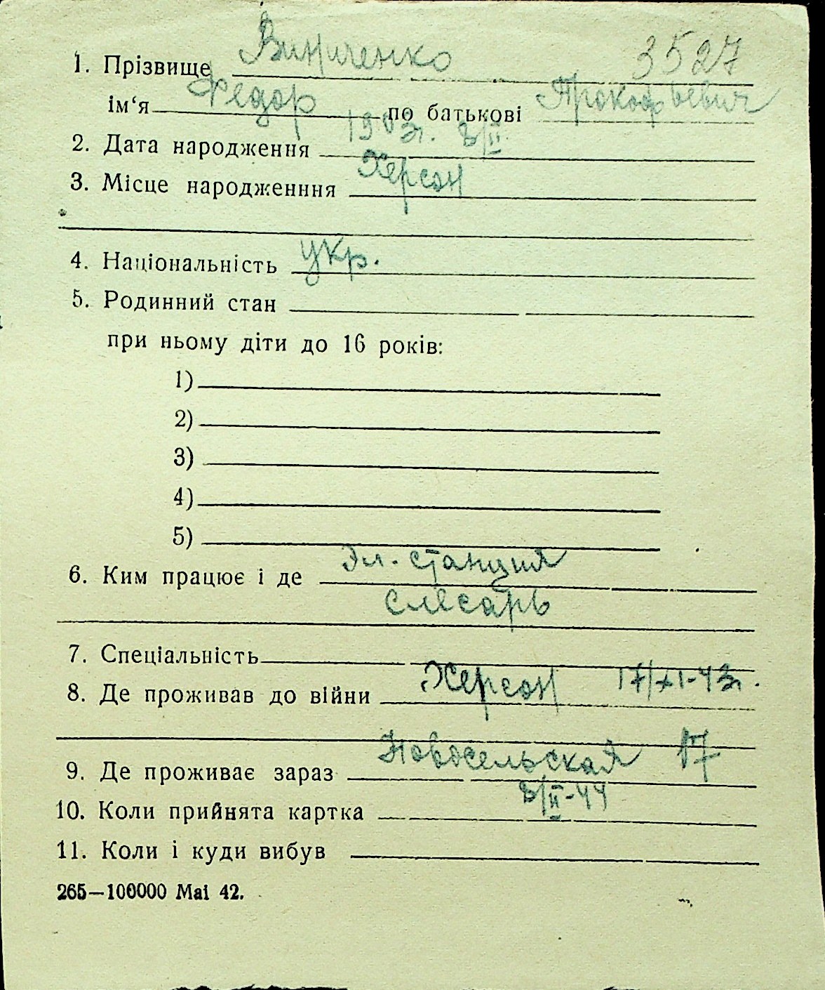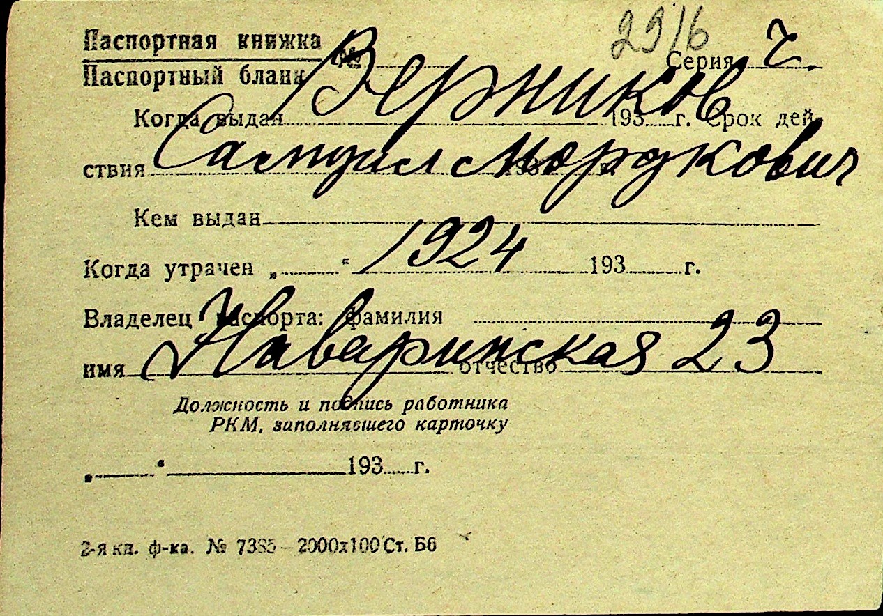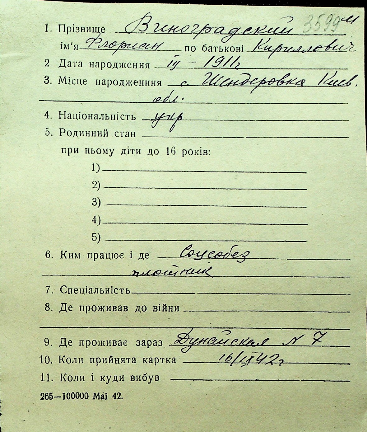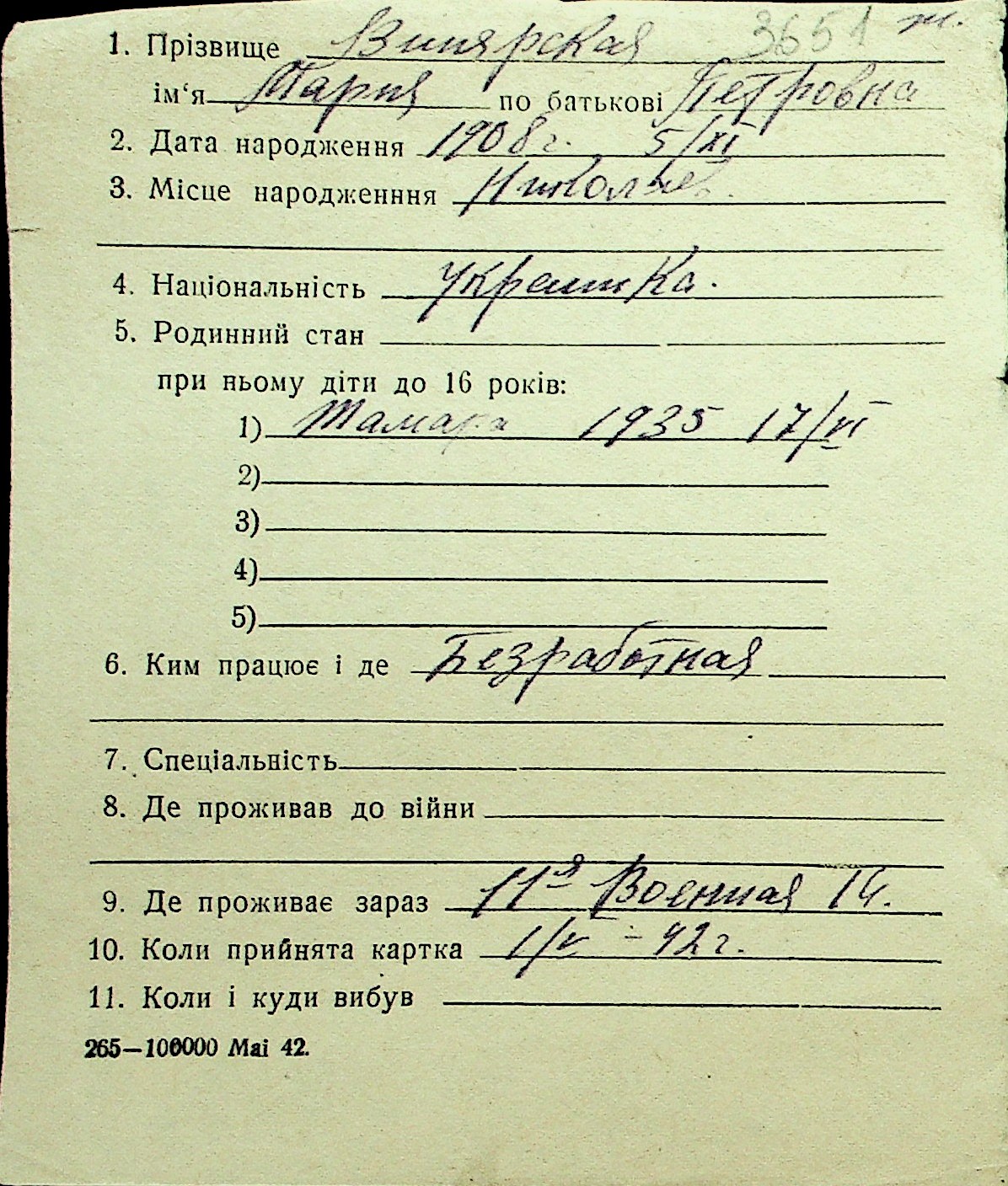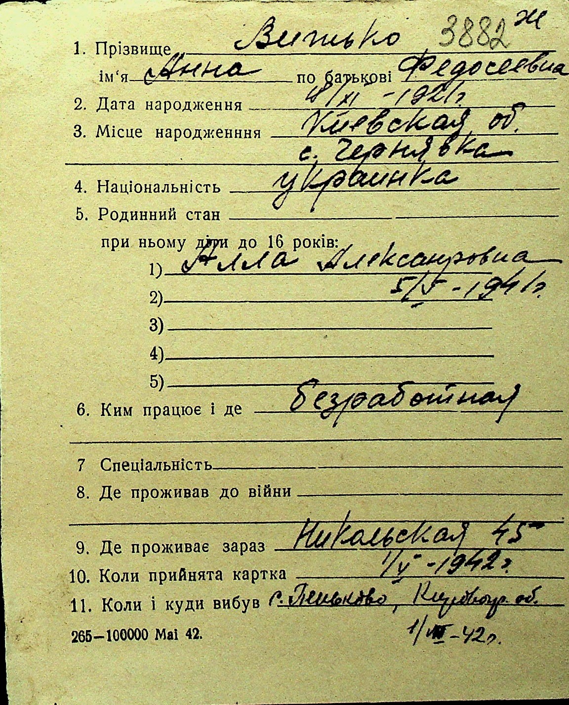 • • Перелік карток до фонду № Н-1016