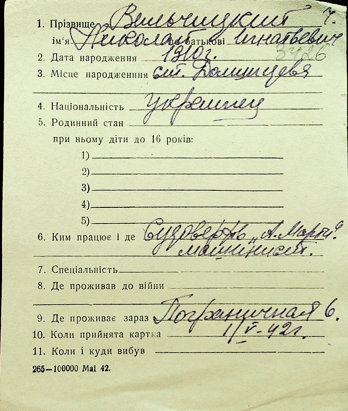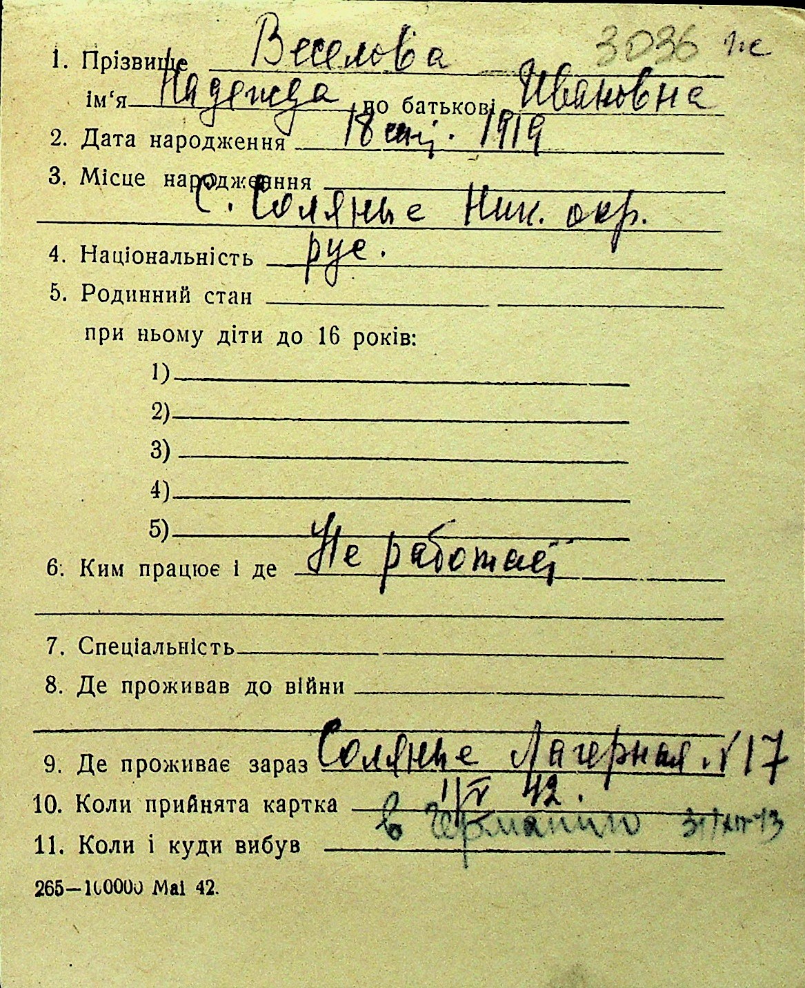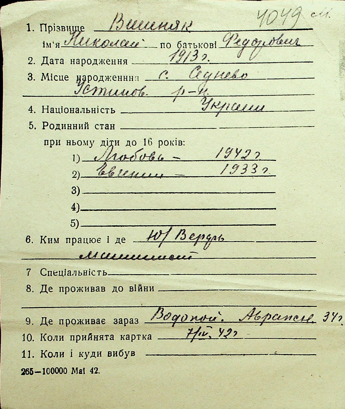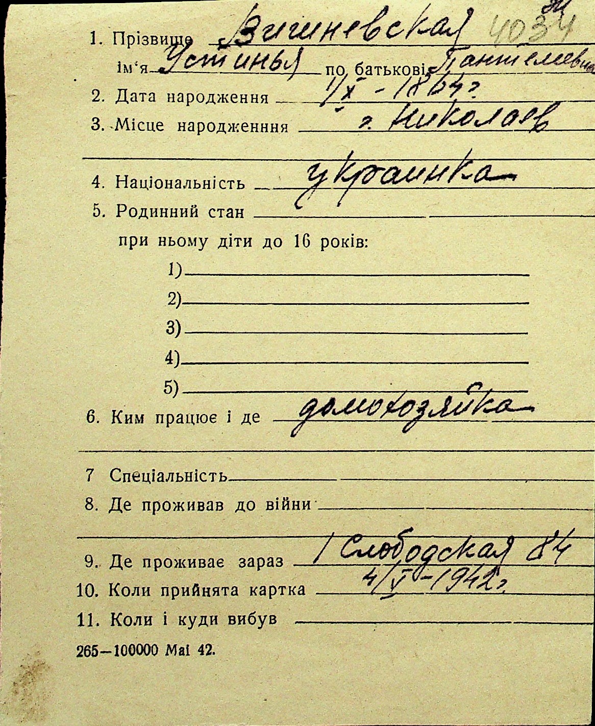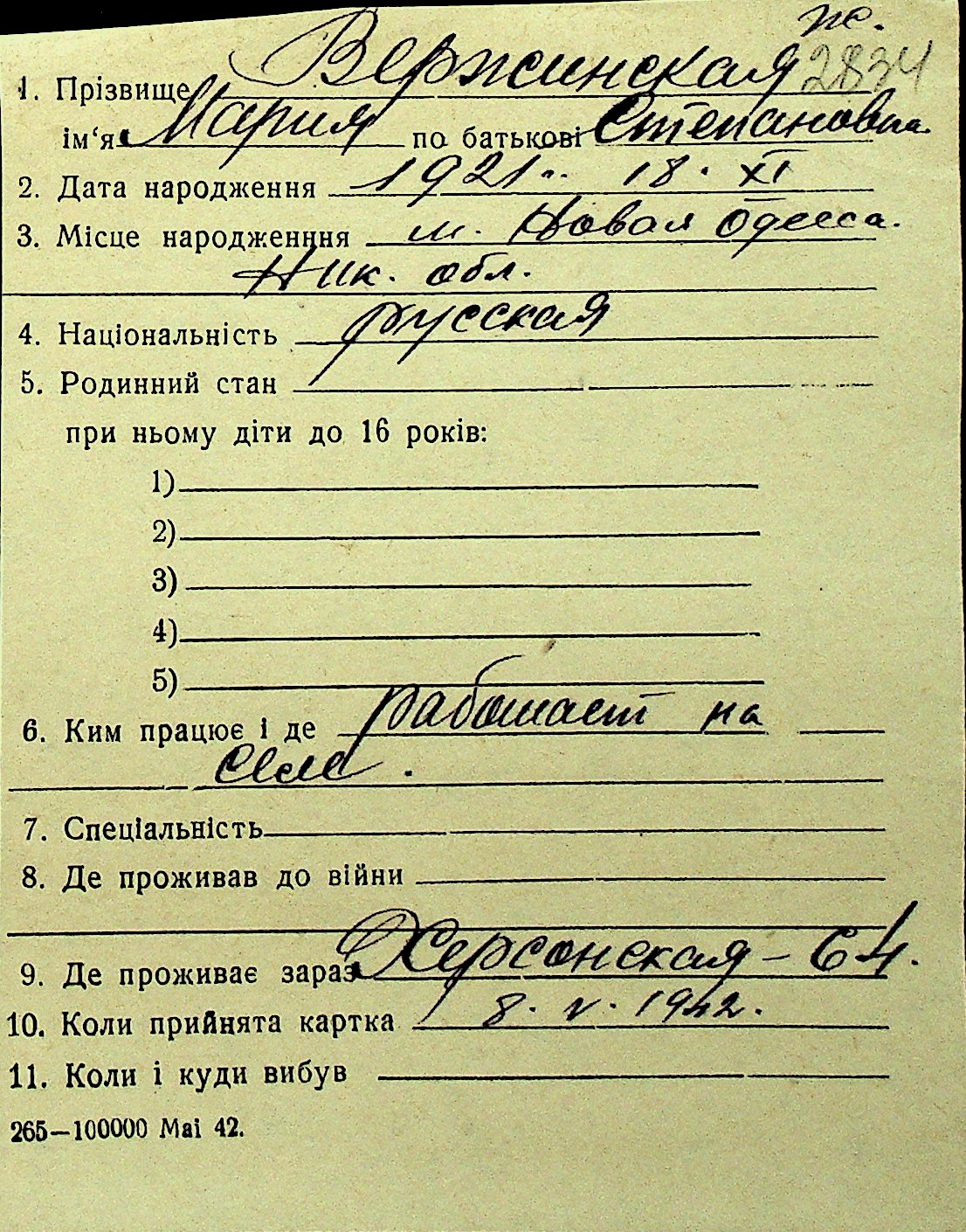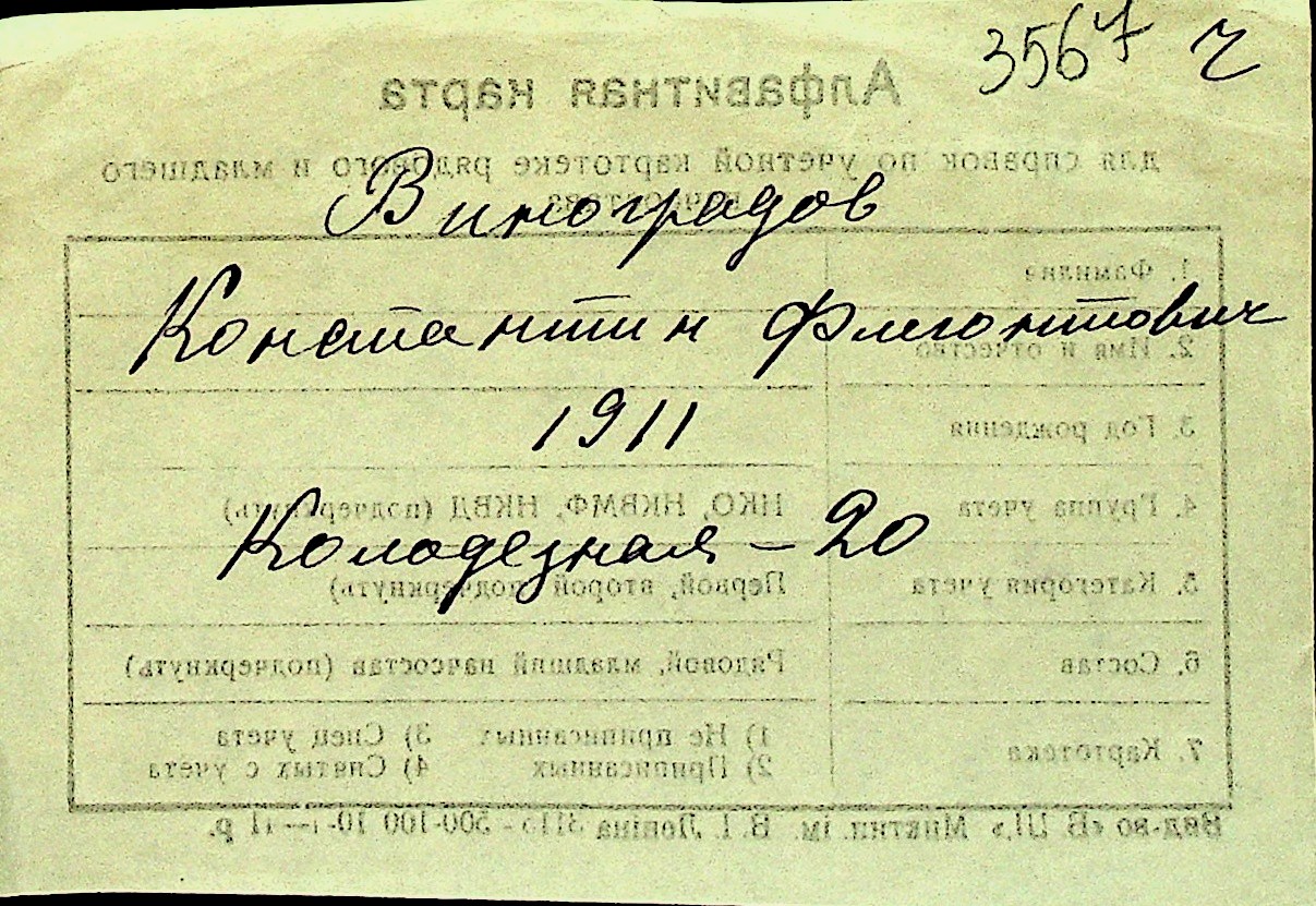 • • Перелік карток до фонду № Н-1016