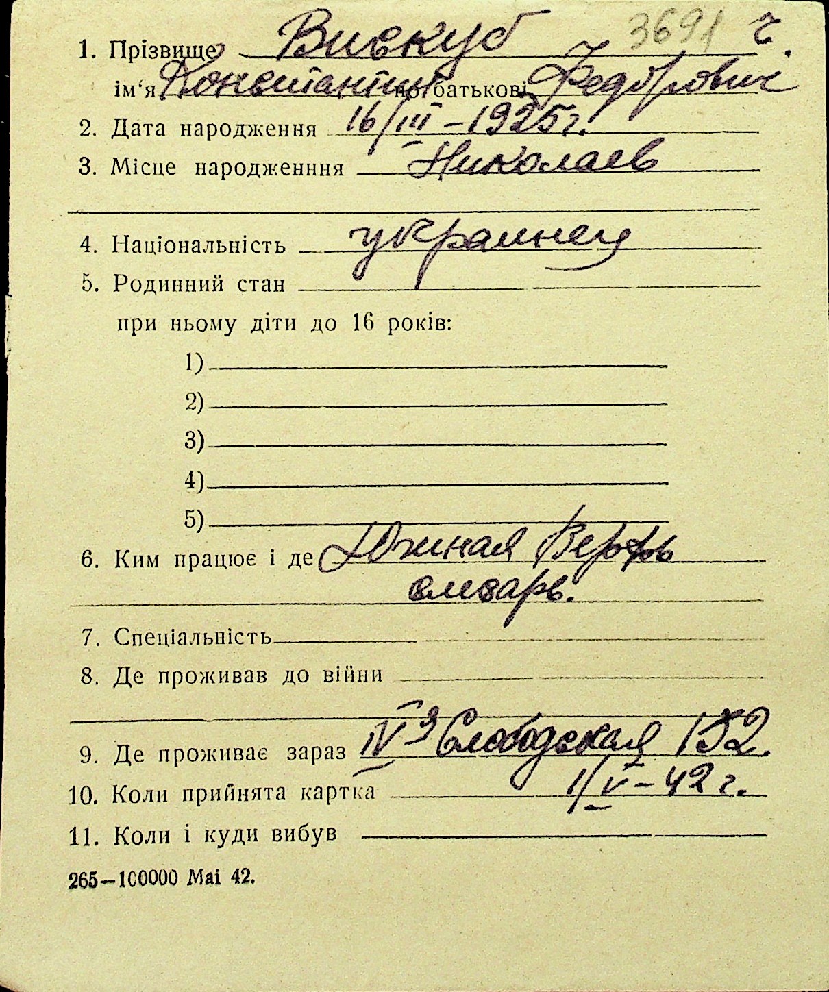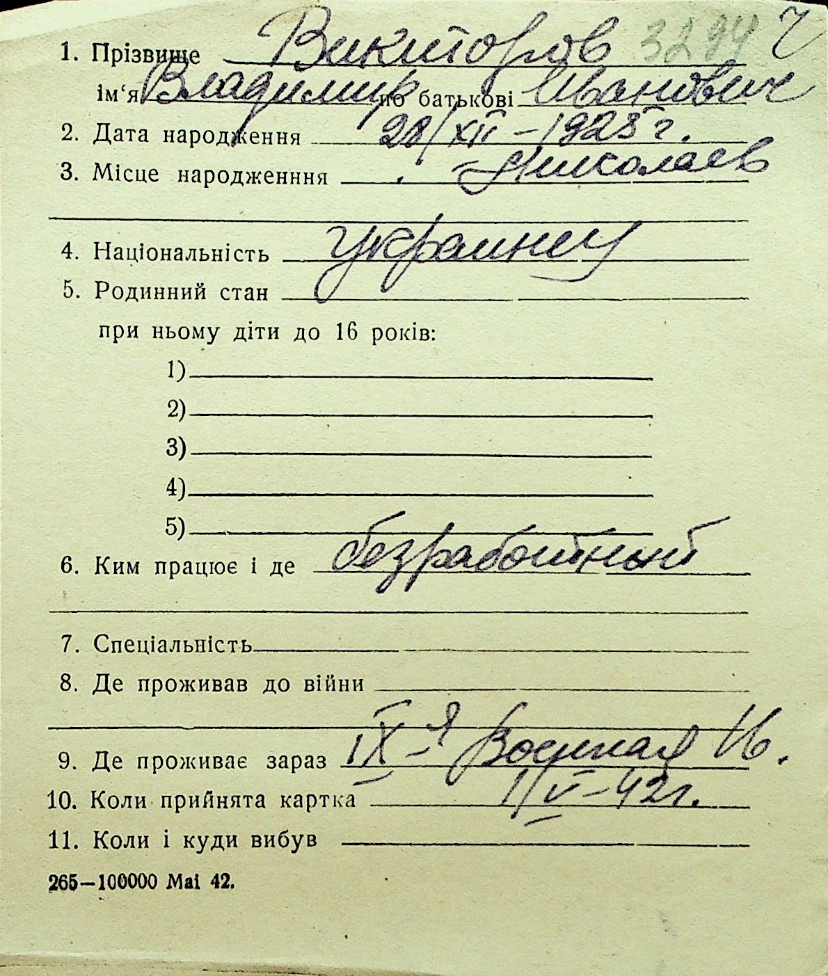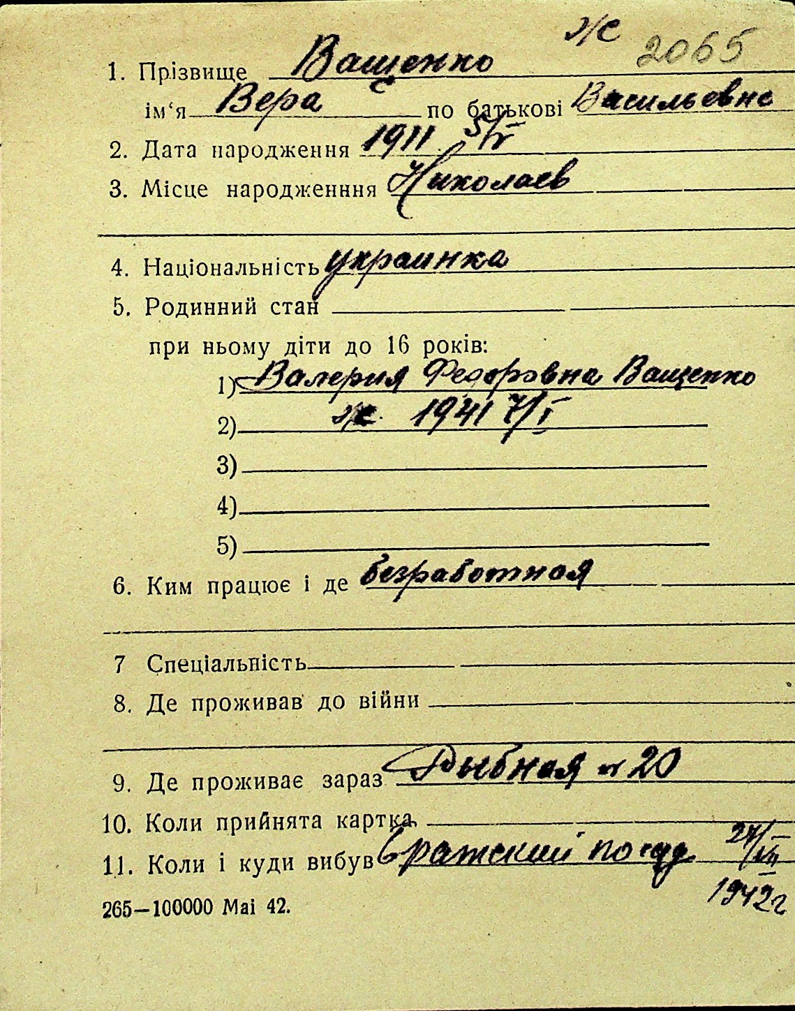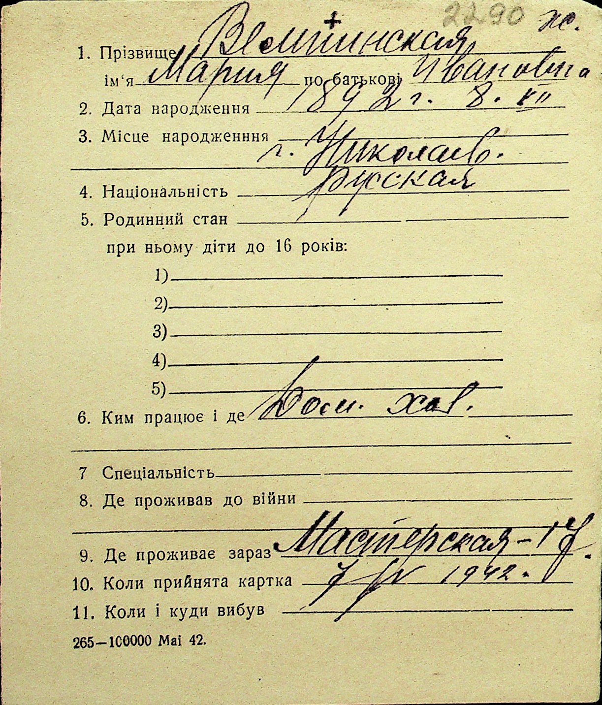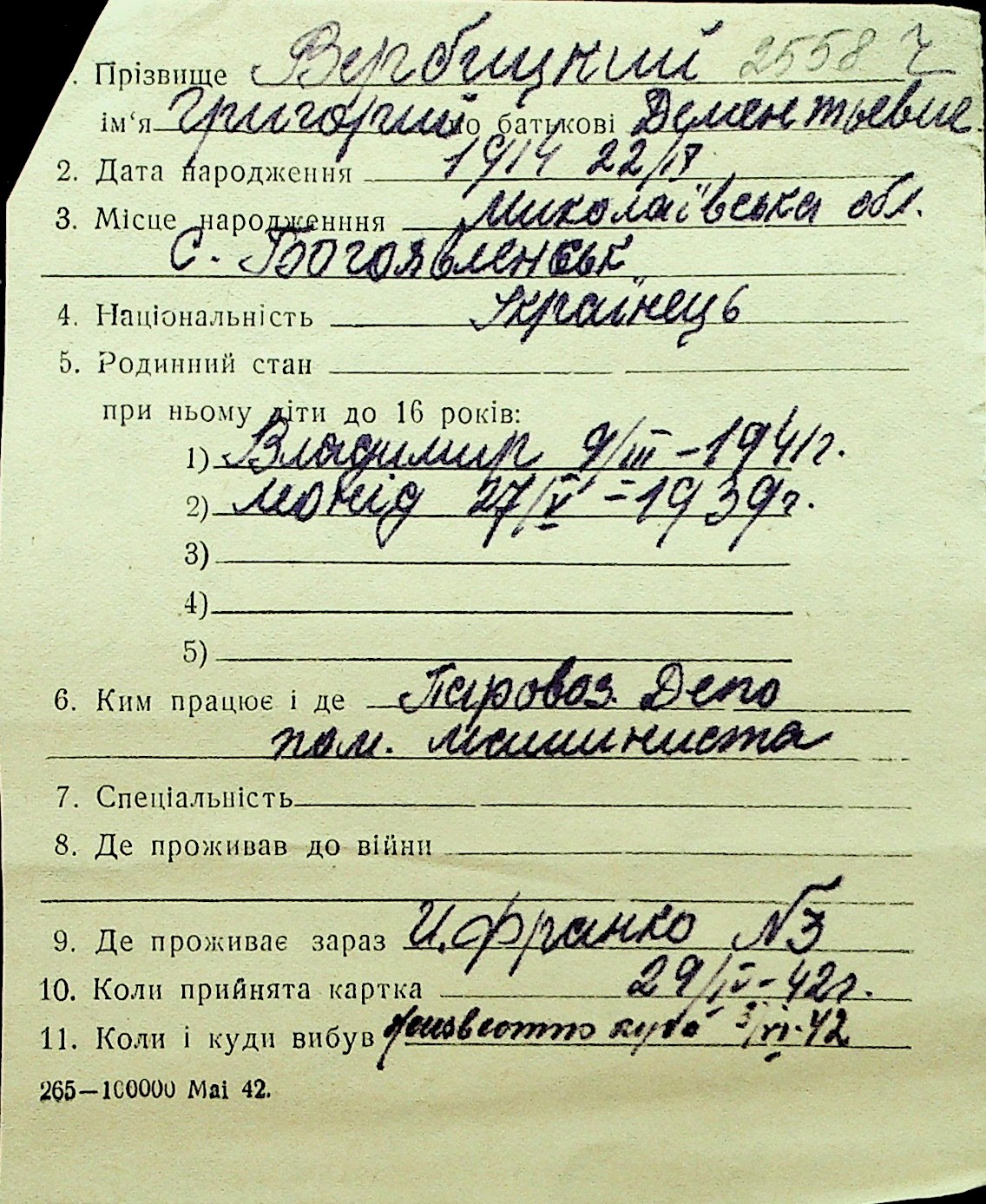 • • Перелік карток до фонду № Н-1016