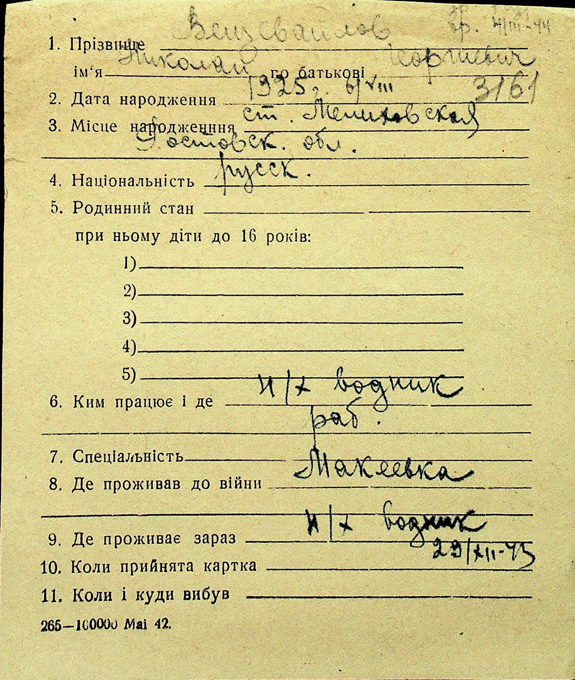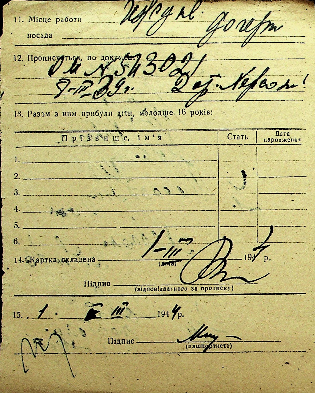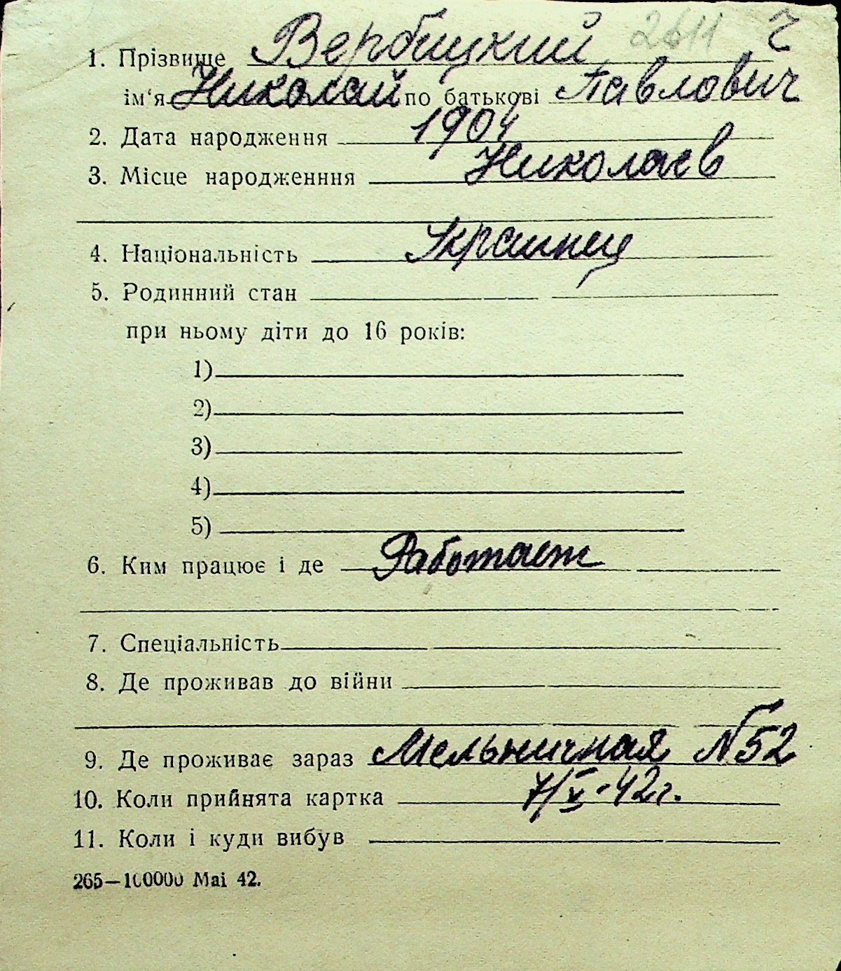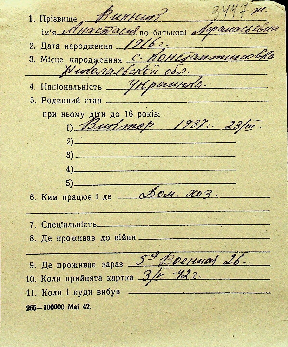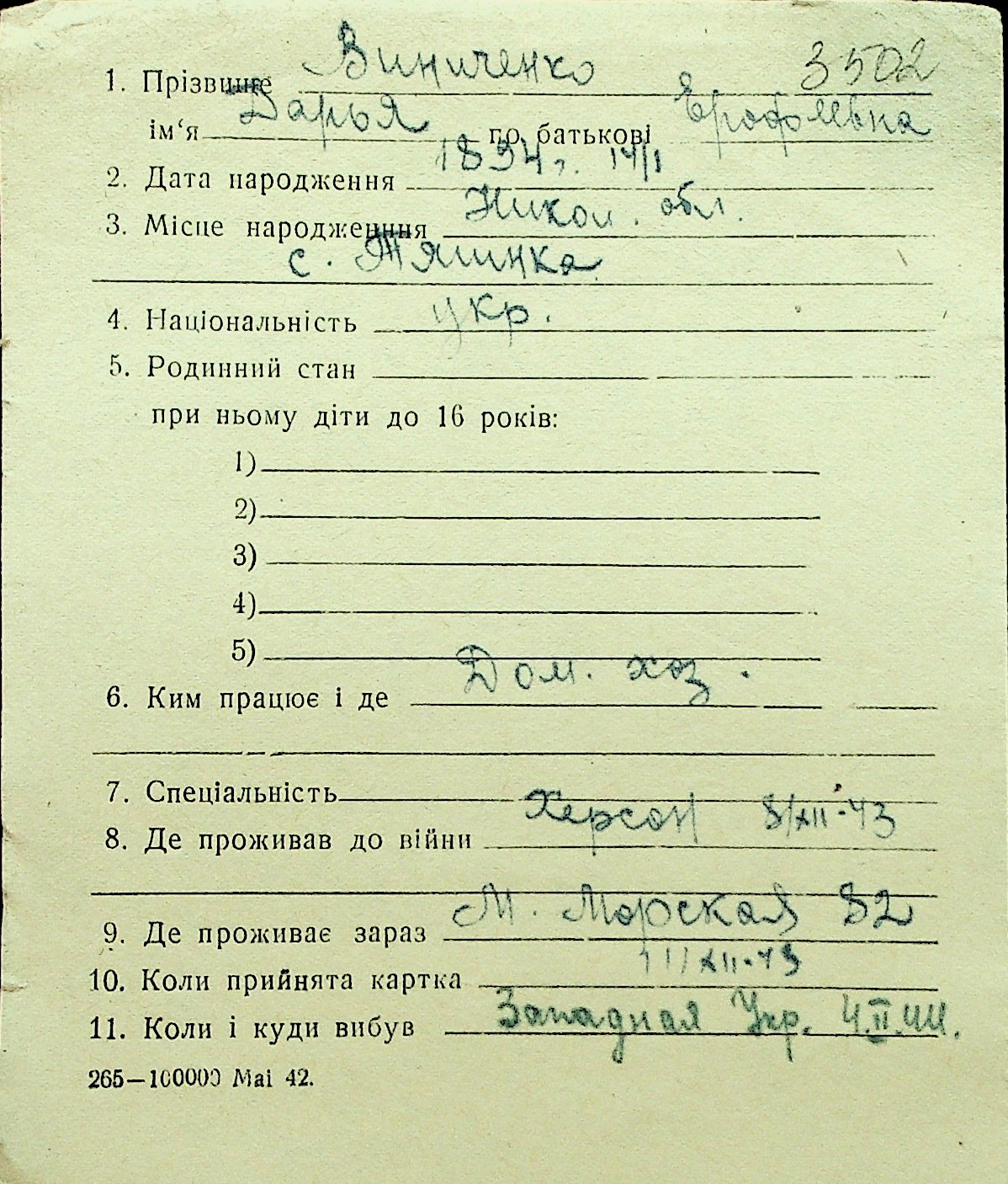 • • Перелік карток до фонду № Н-1016