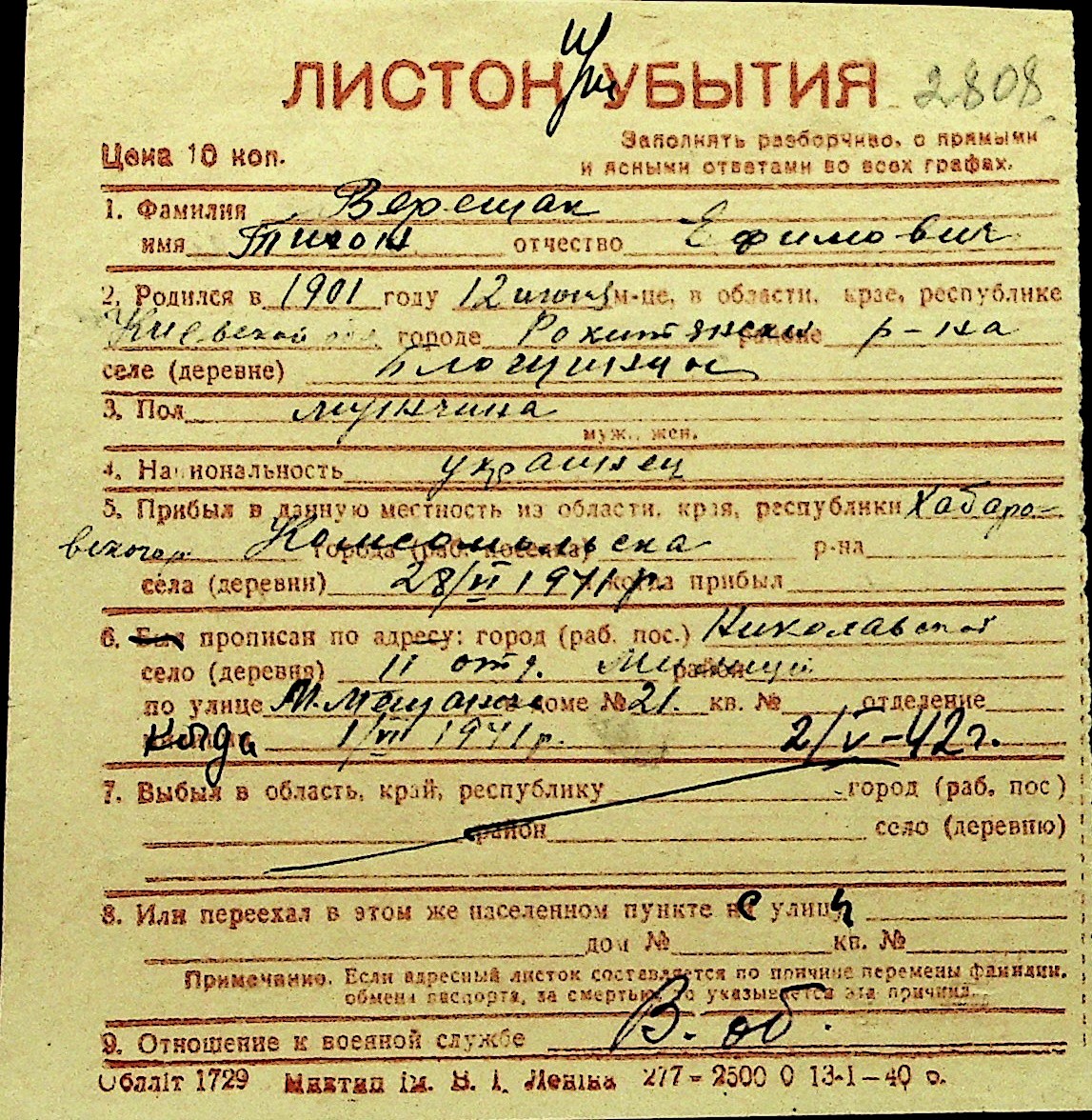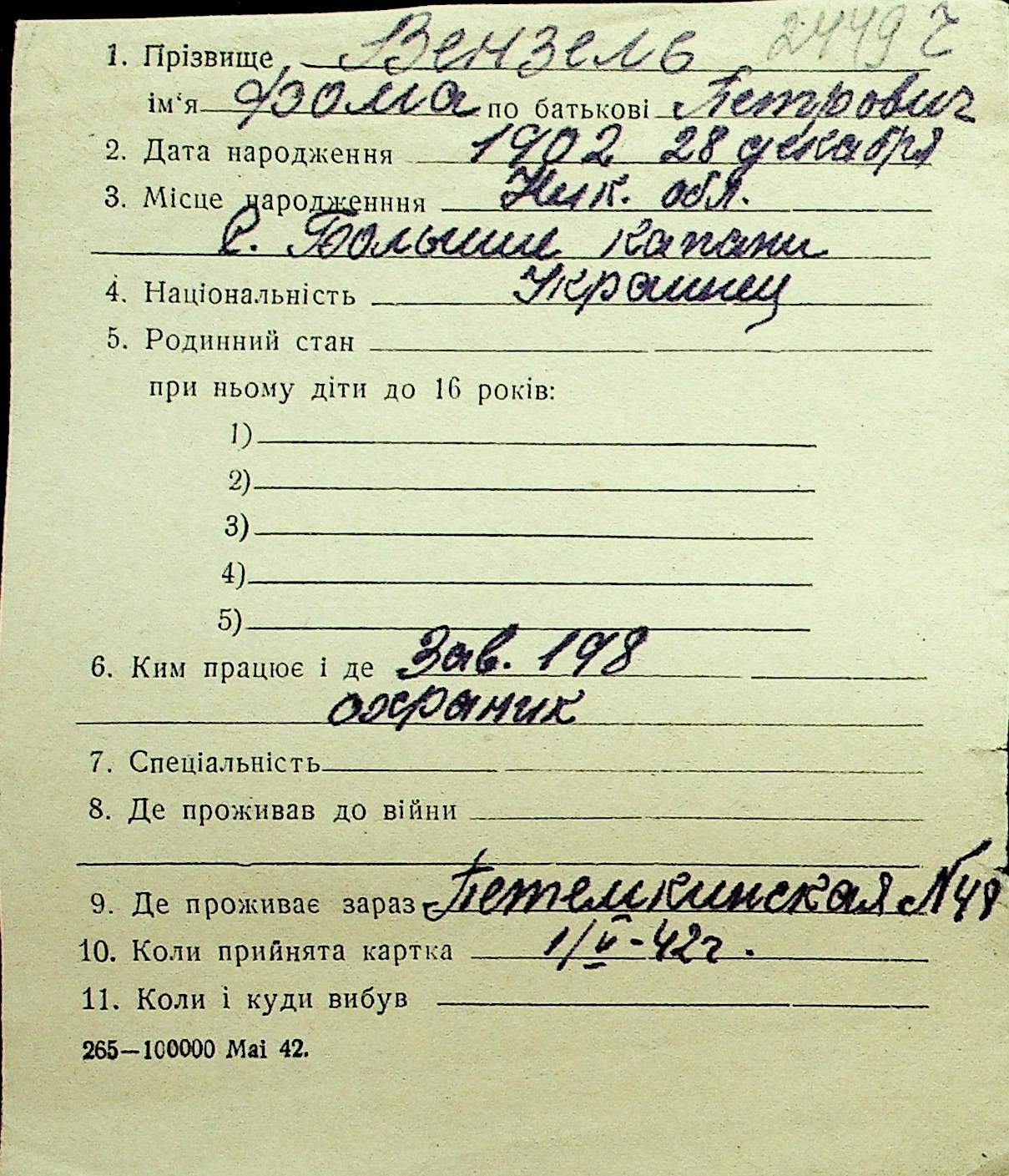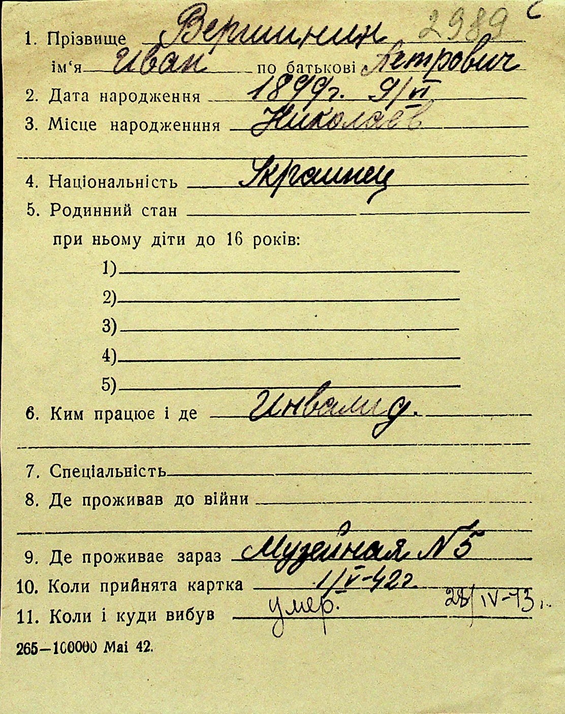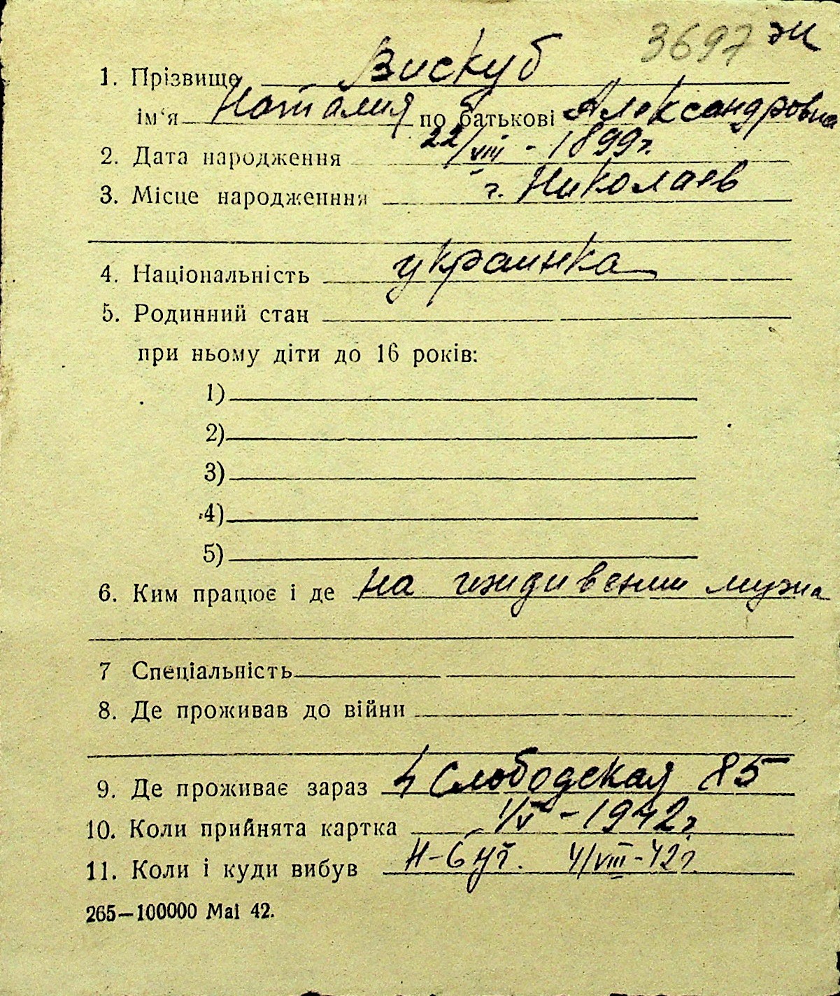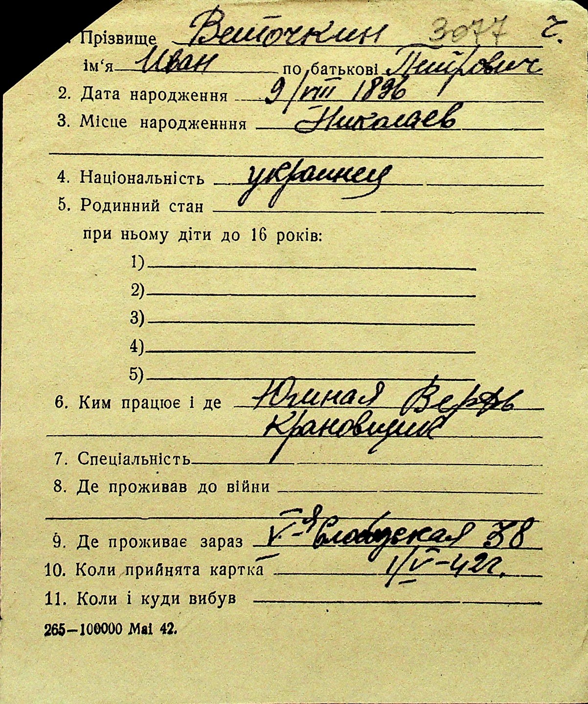 • • Перелік карток до фонду № Н-1016