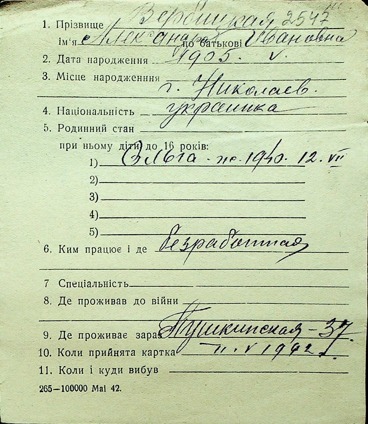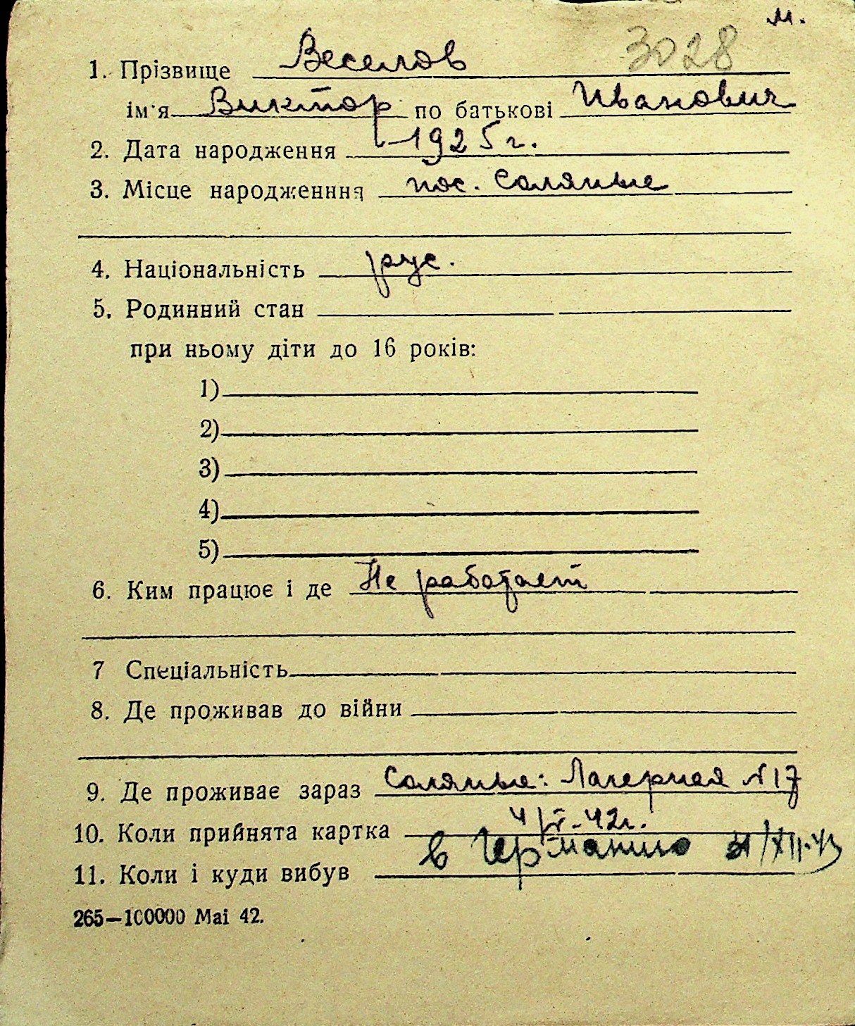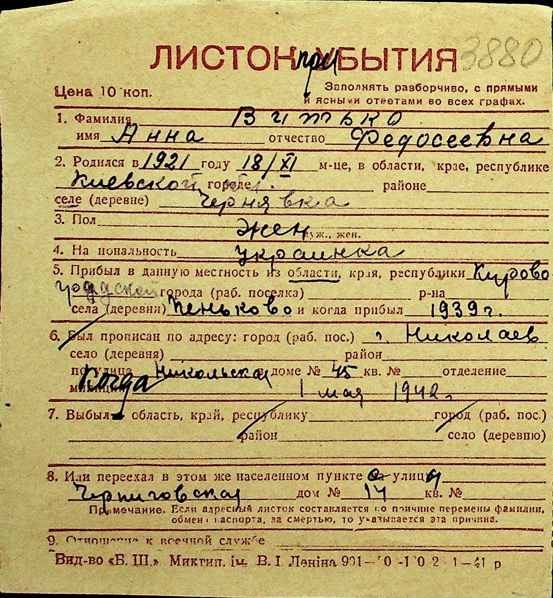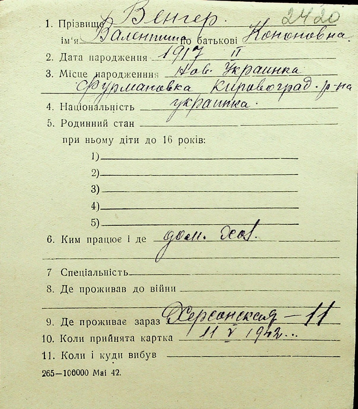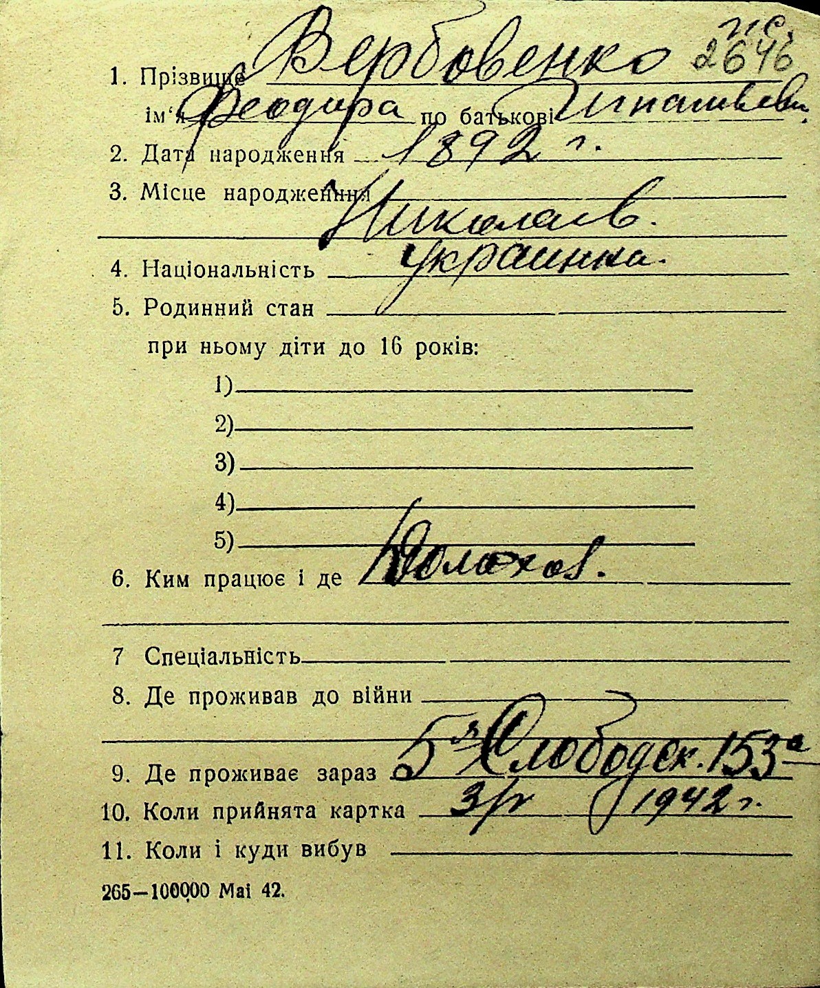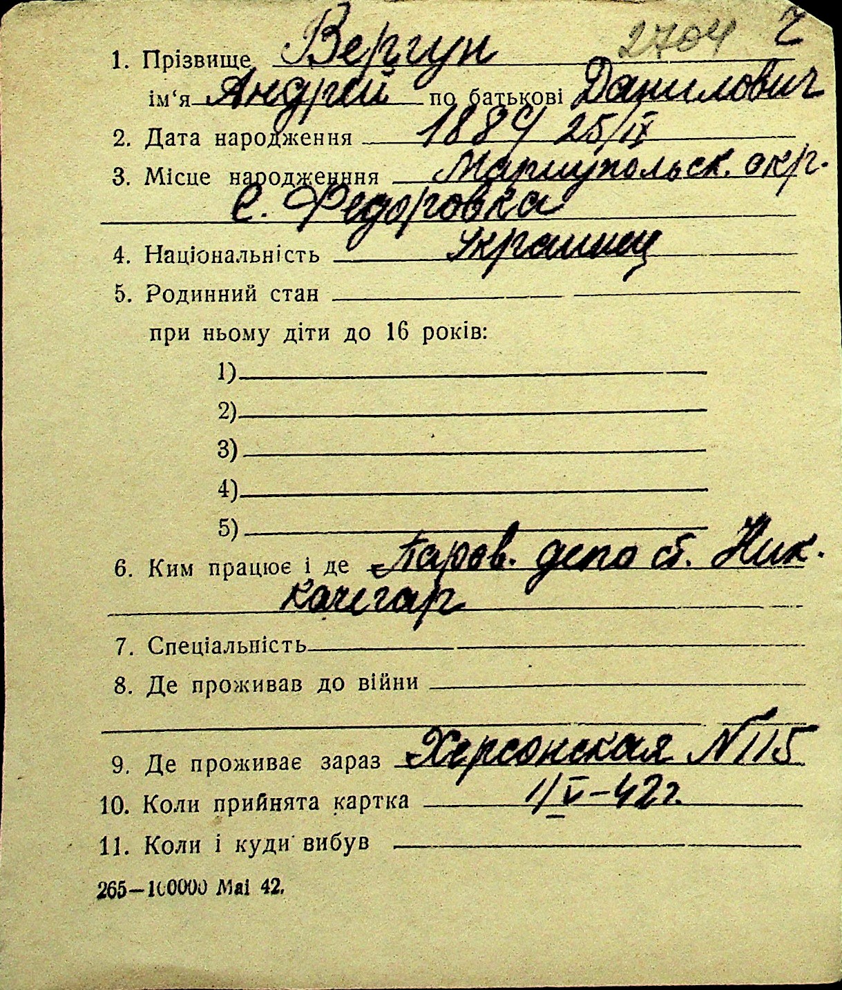 • • Перелік карток до фонду № Н-1016