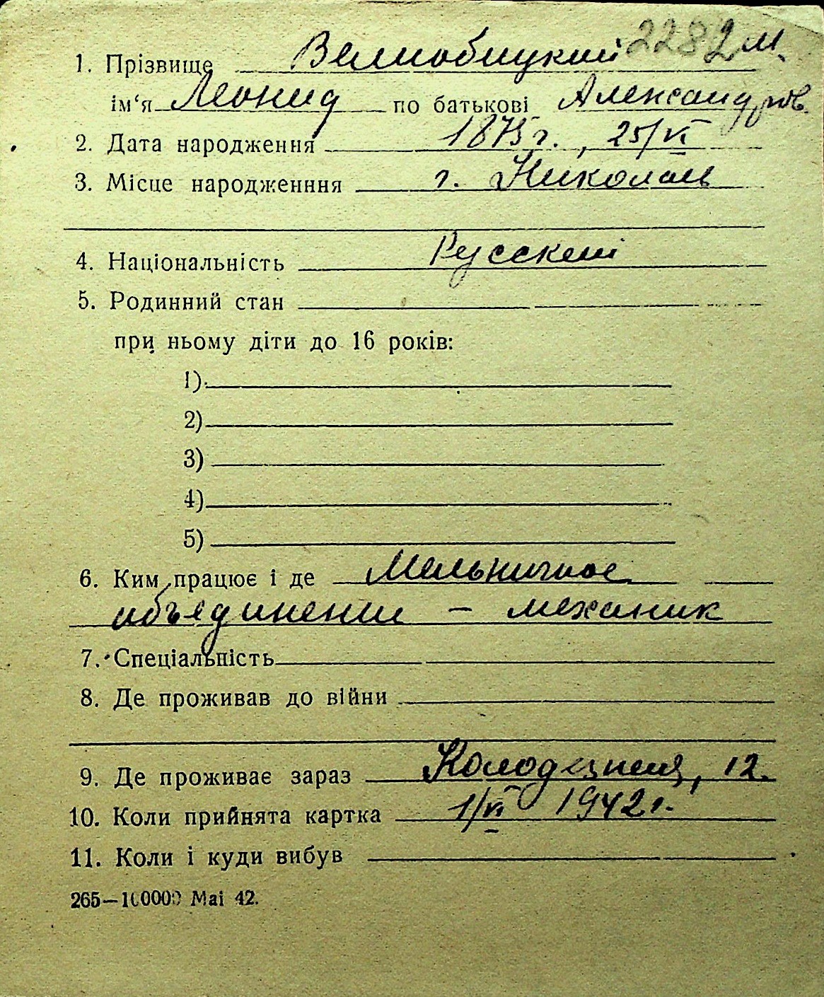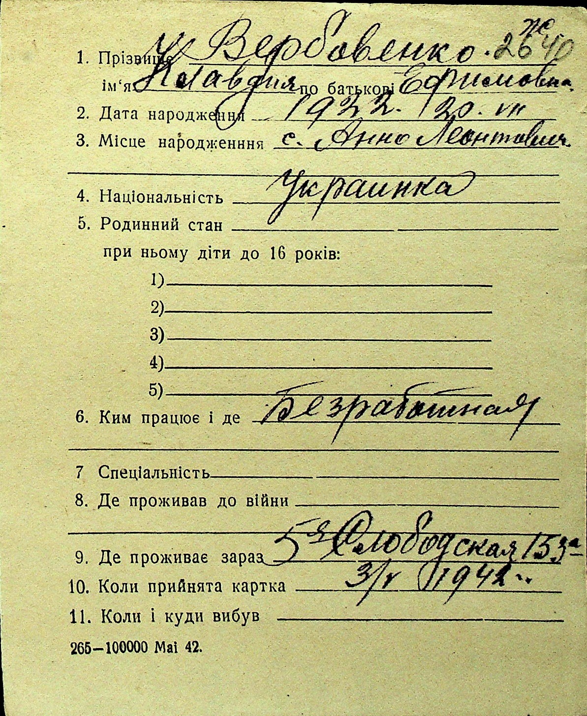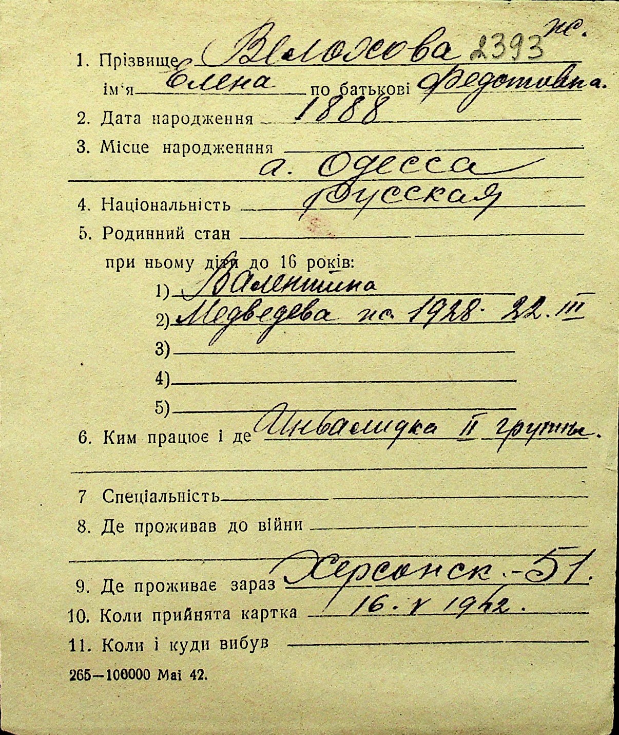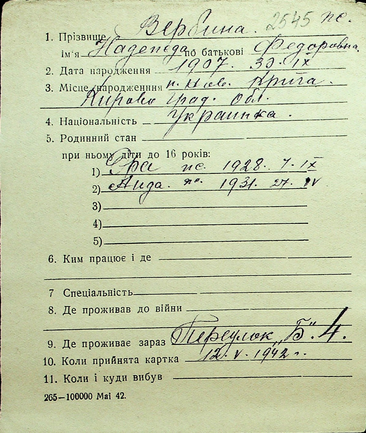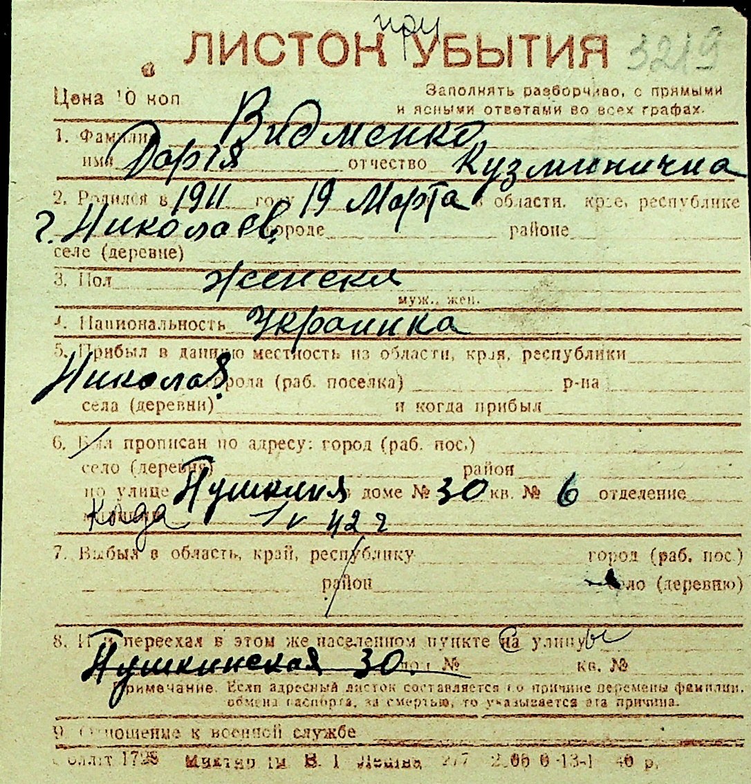 • • Перелік карток до фонду № Н-1016