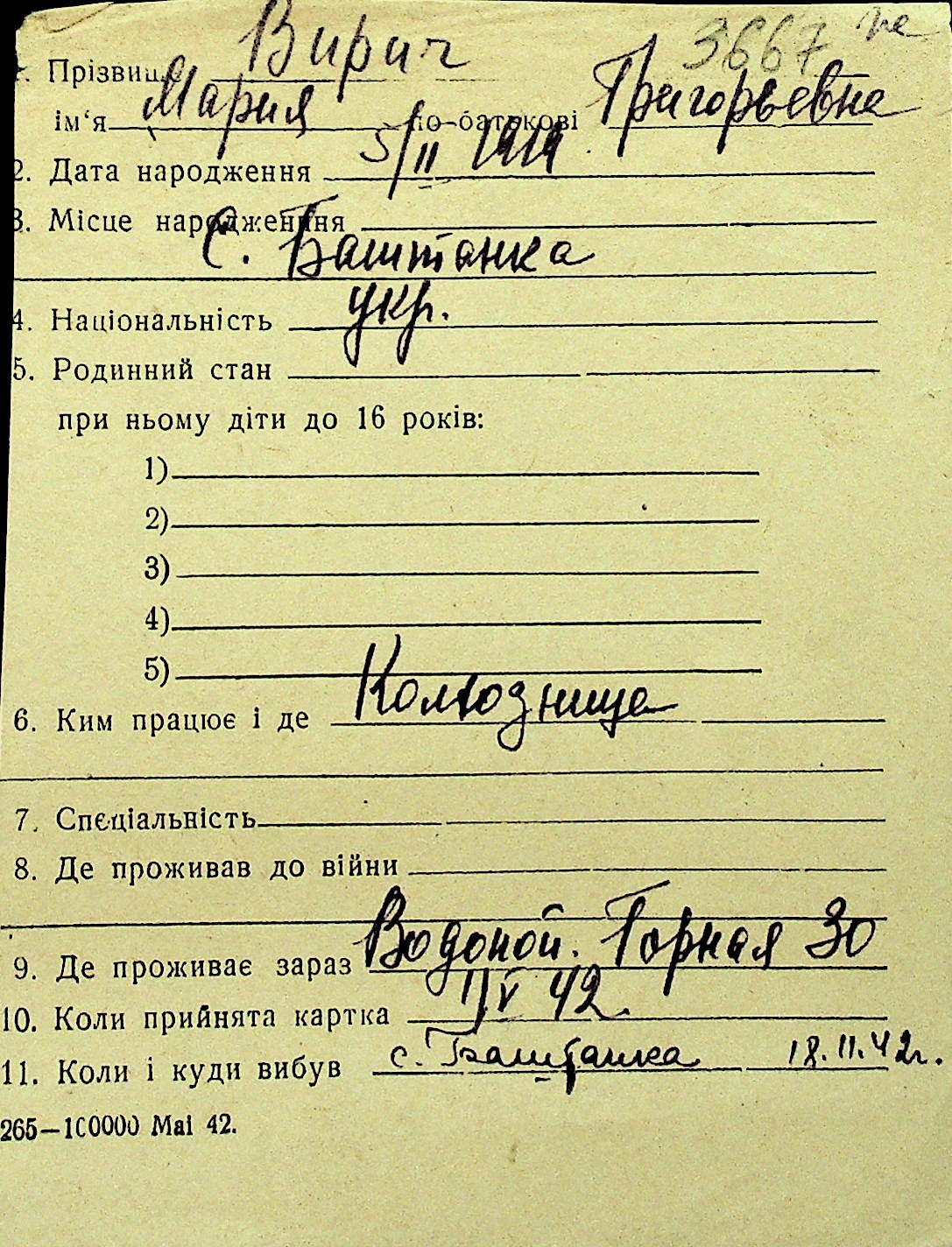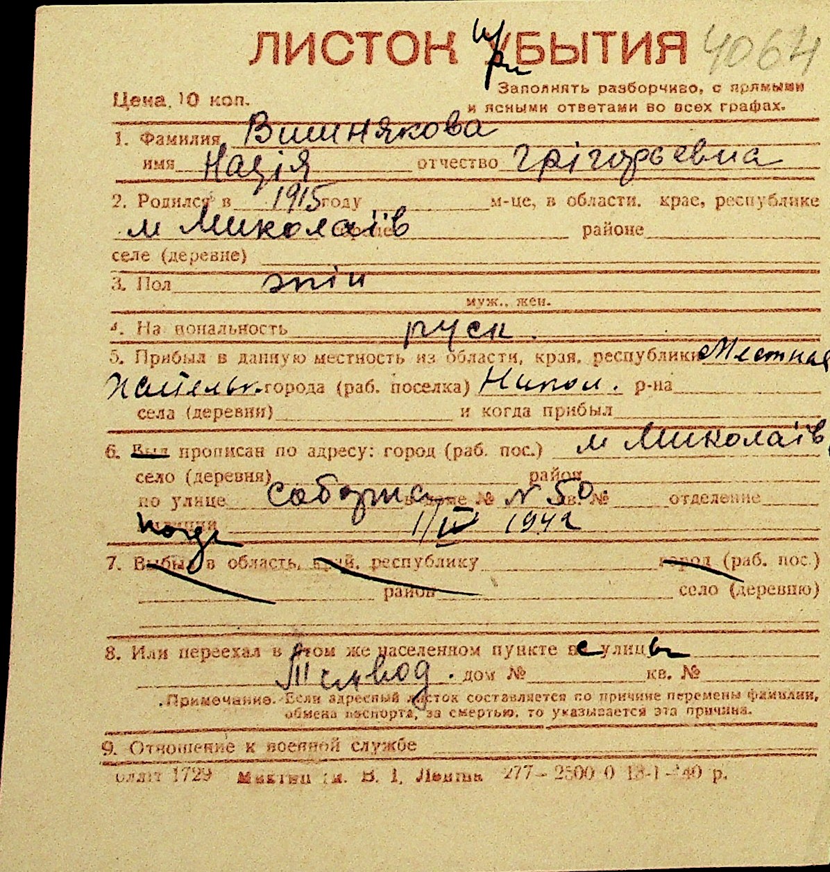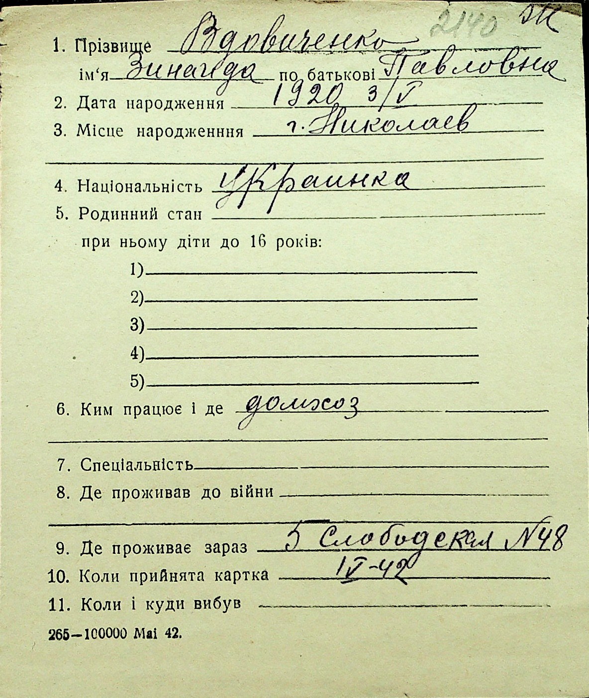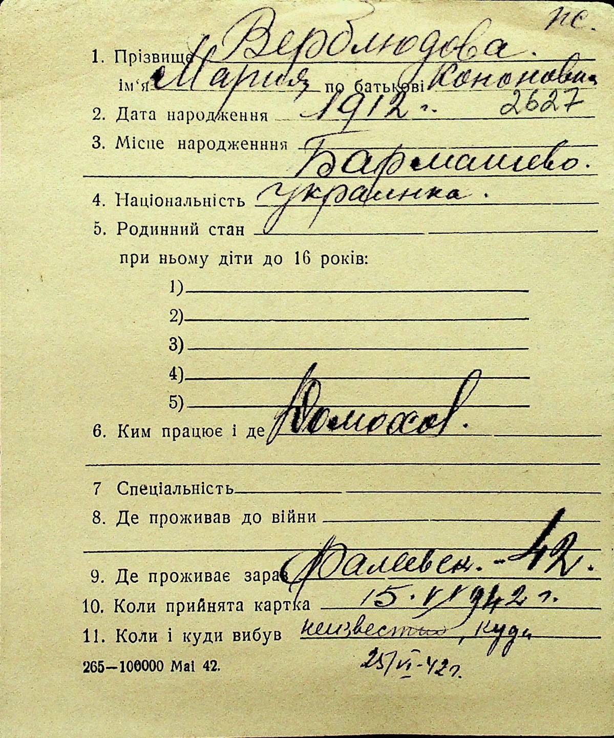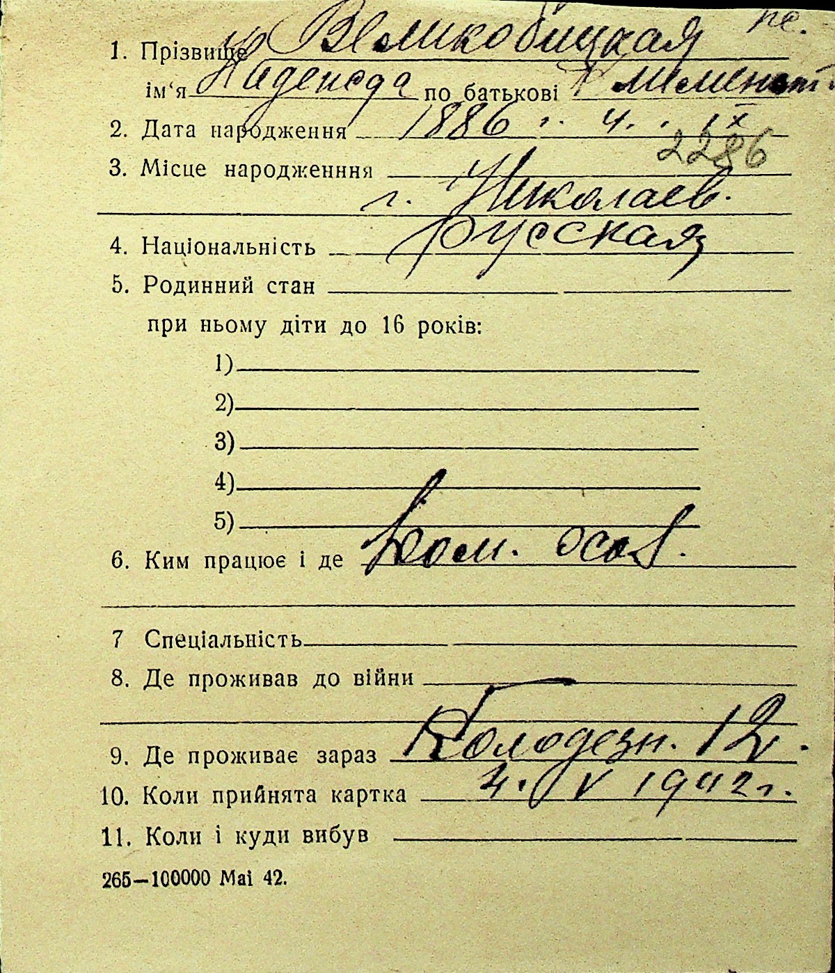 • • Перелік карток до фонду № Н-1016