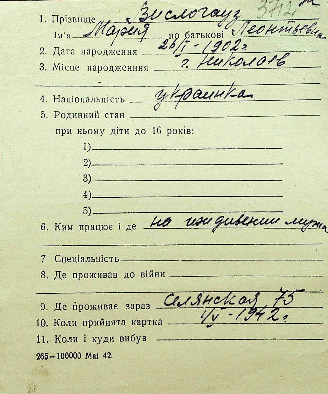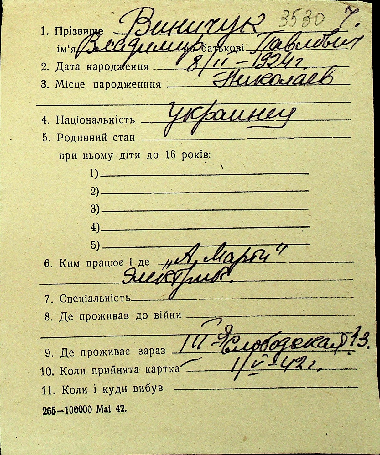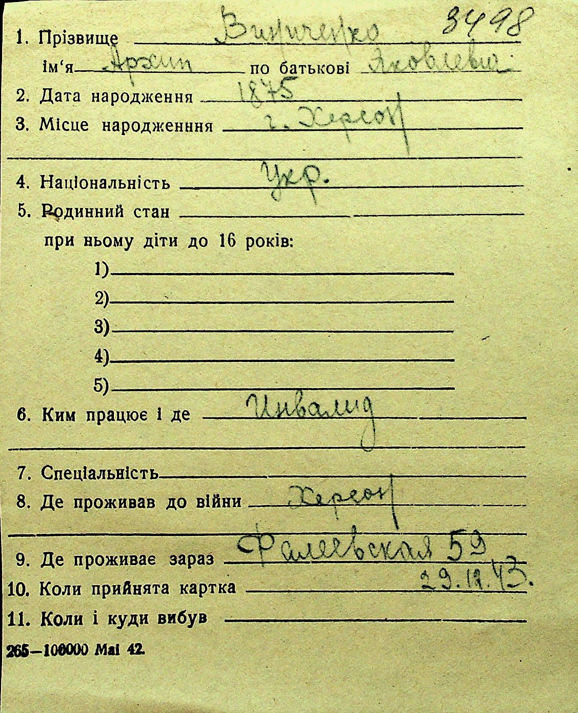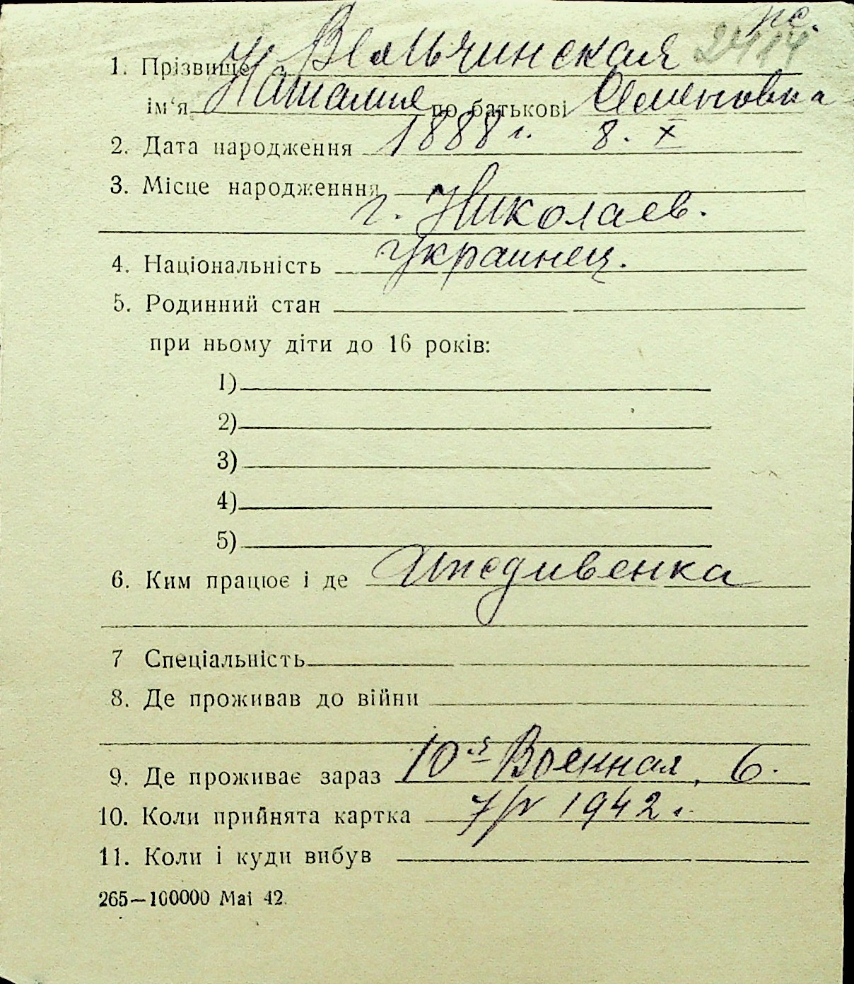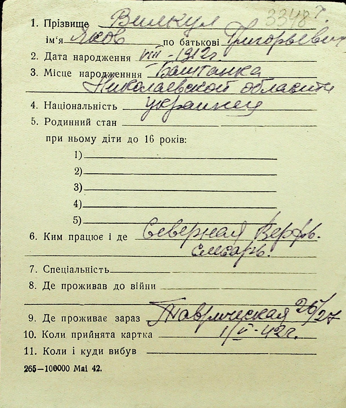 • • Перелік карток до фонду № Н-1016