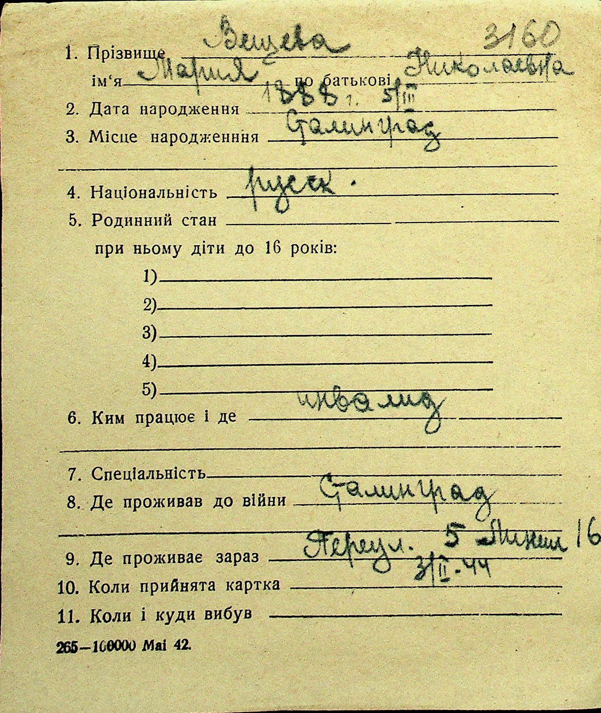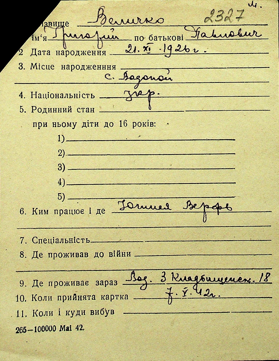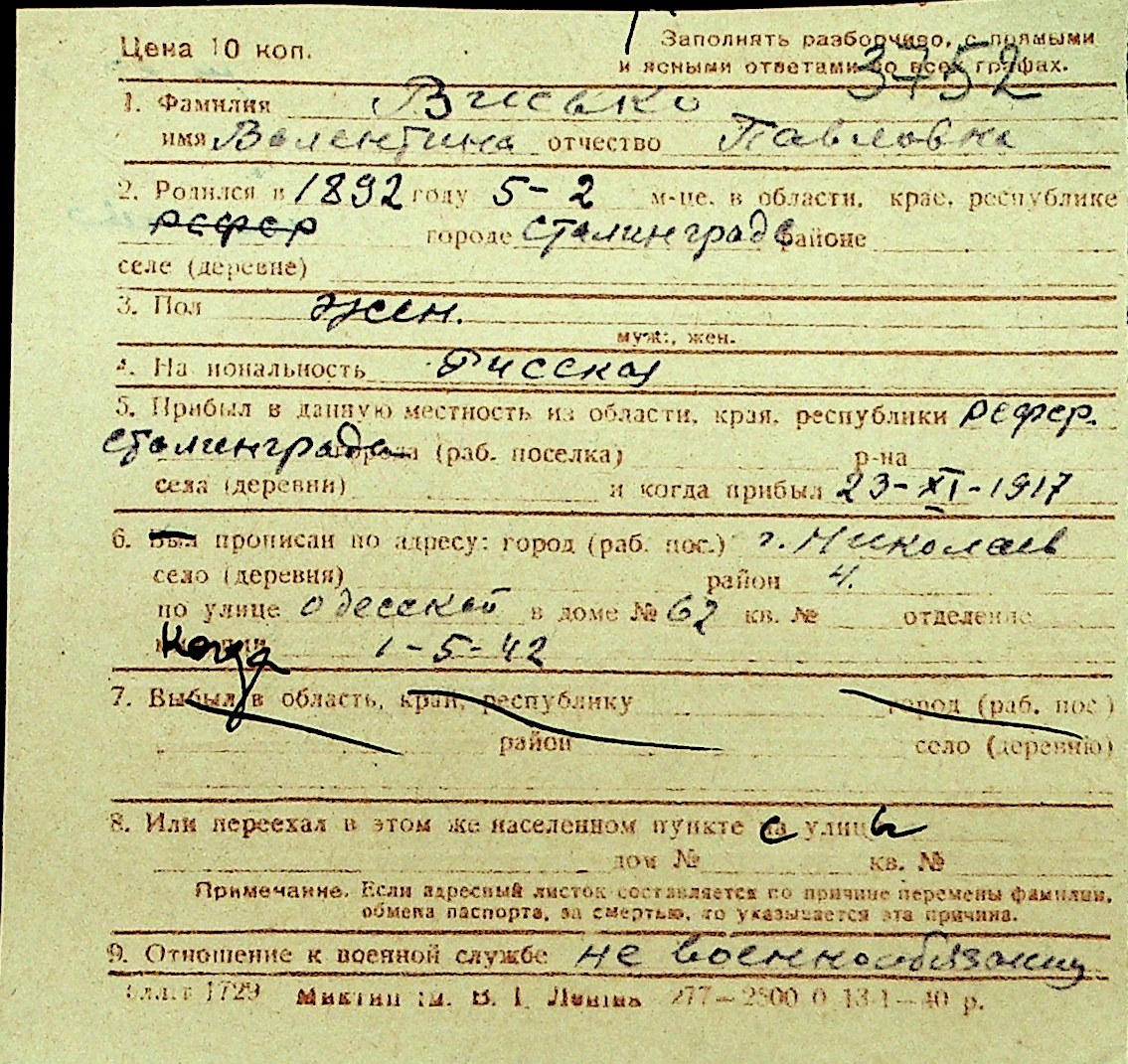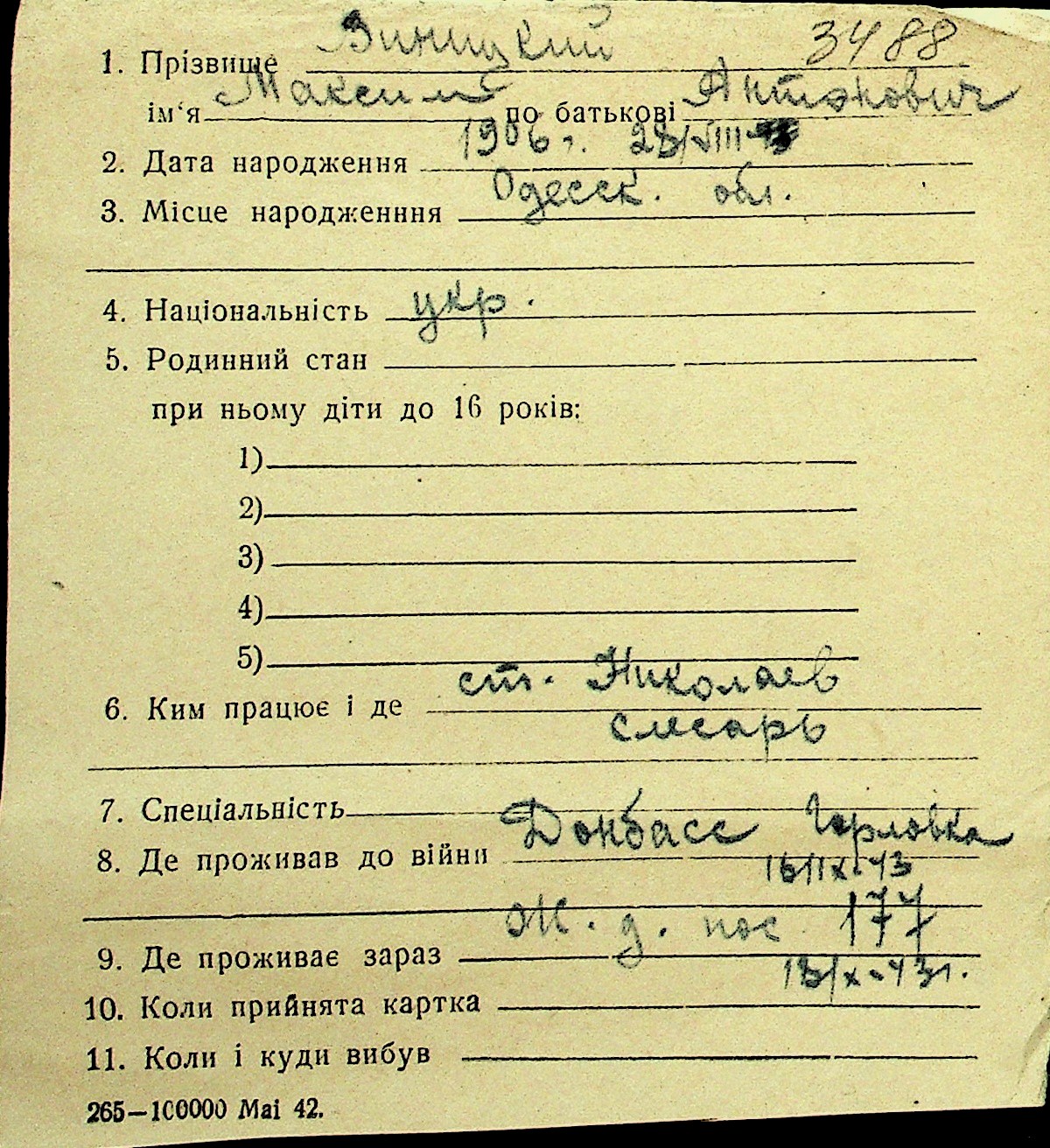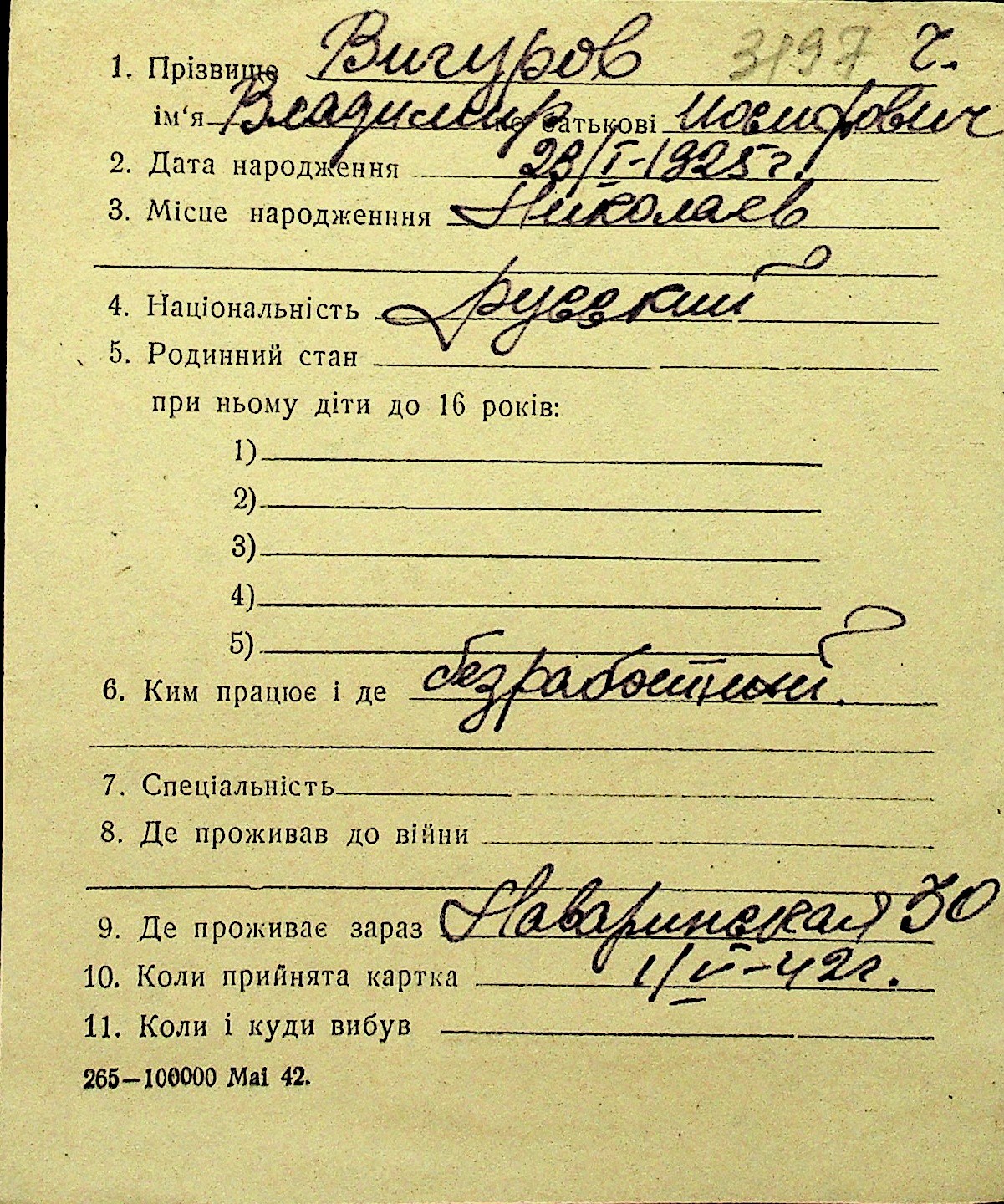• • Перелік карток до фонду № Н-1016