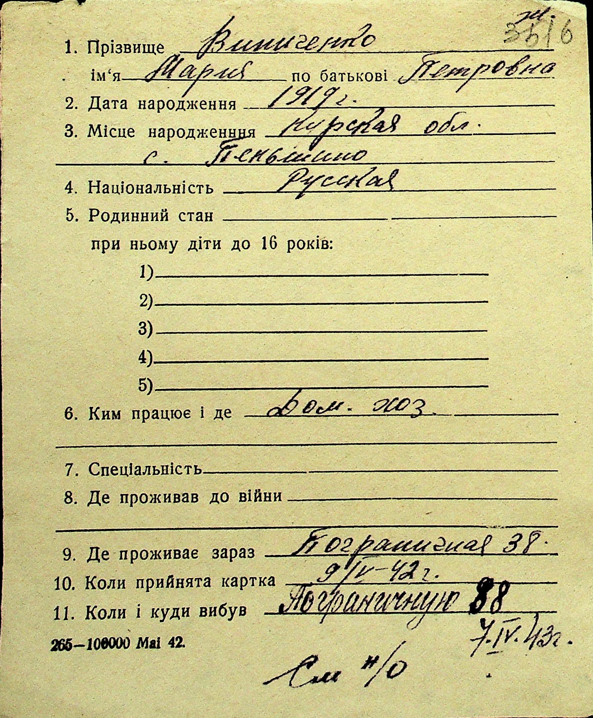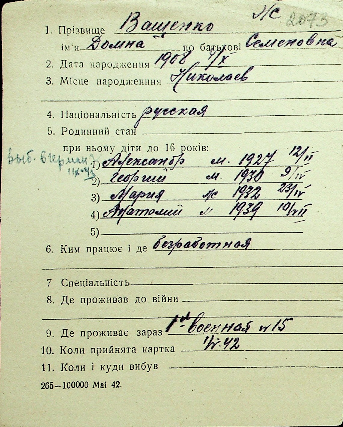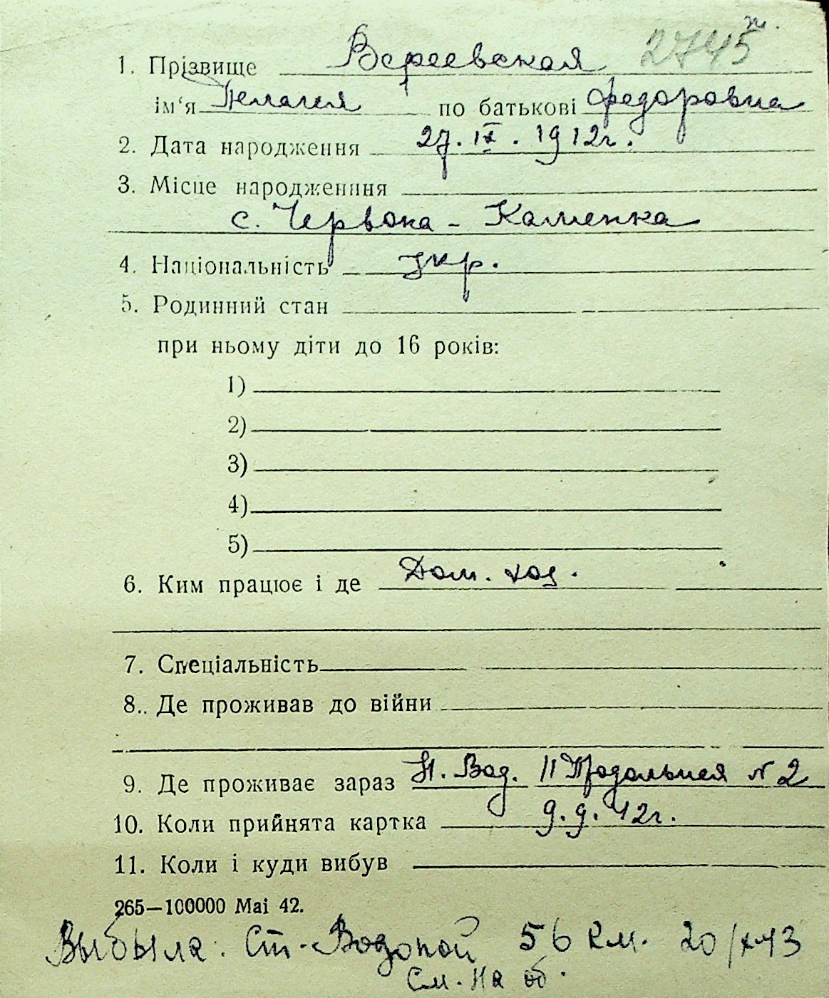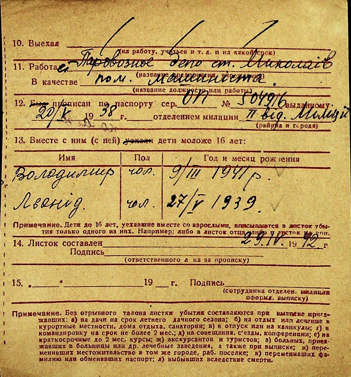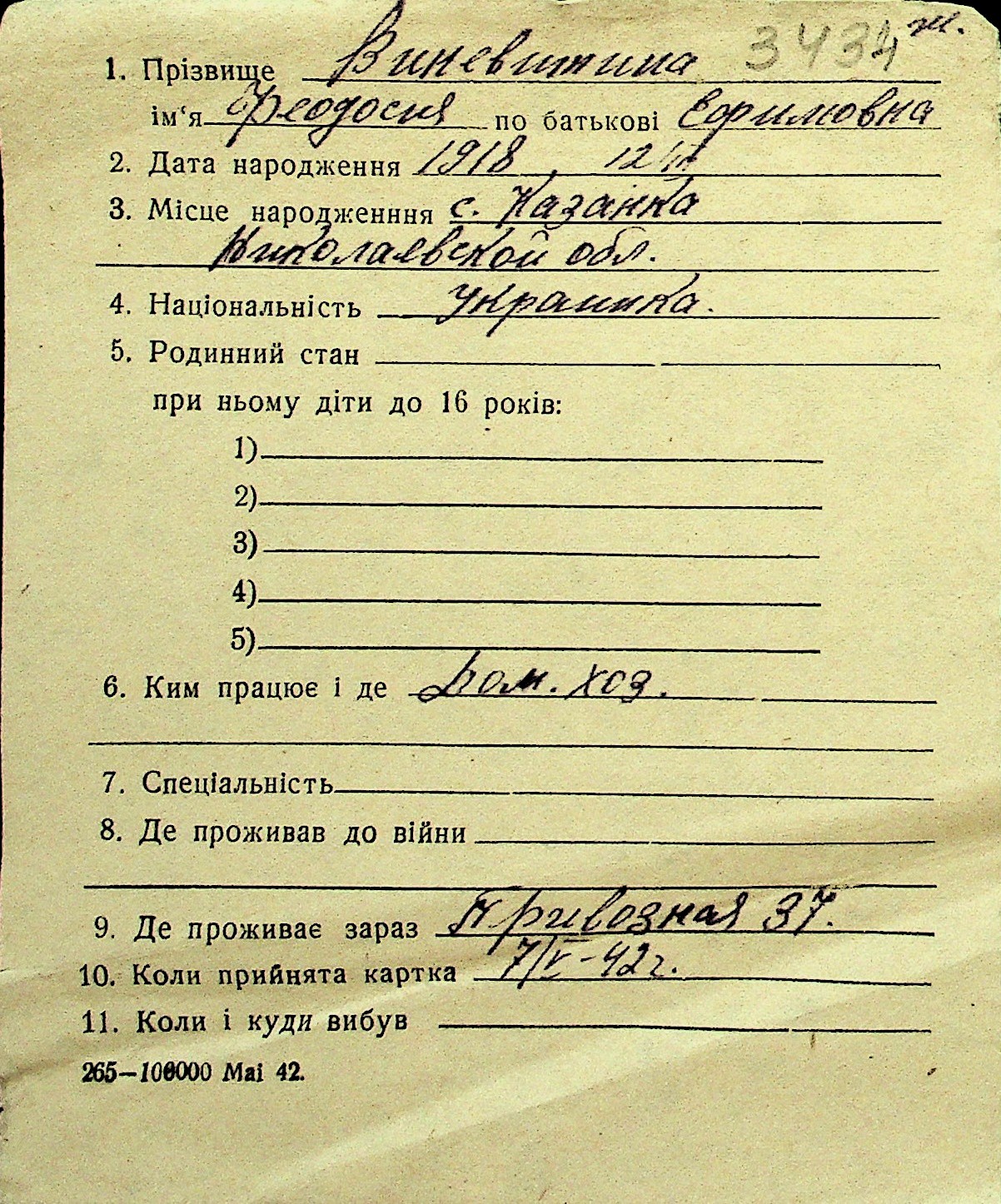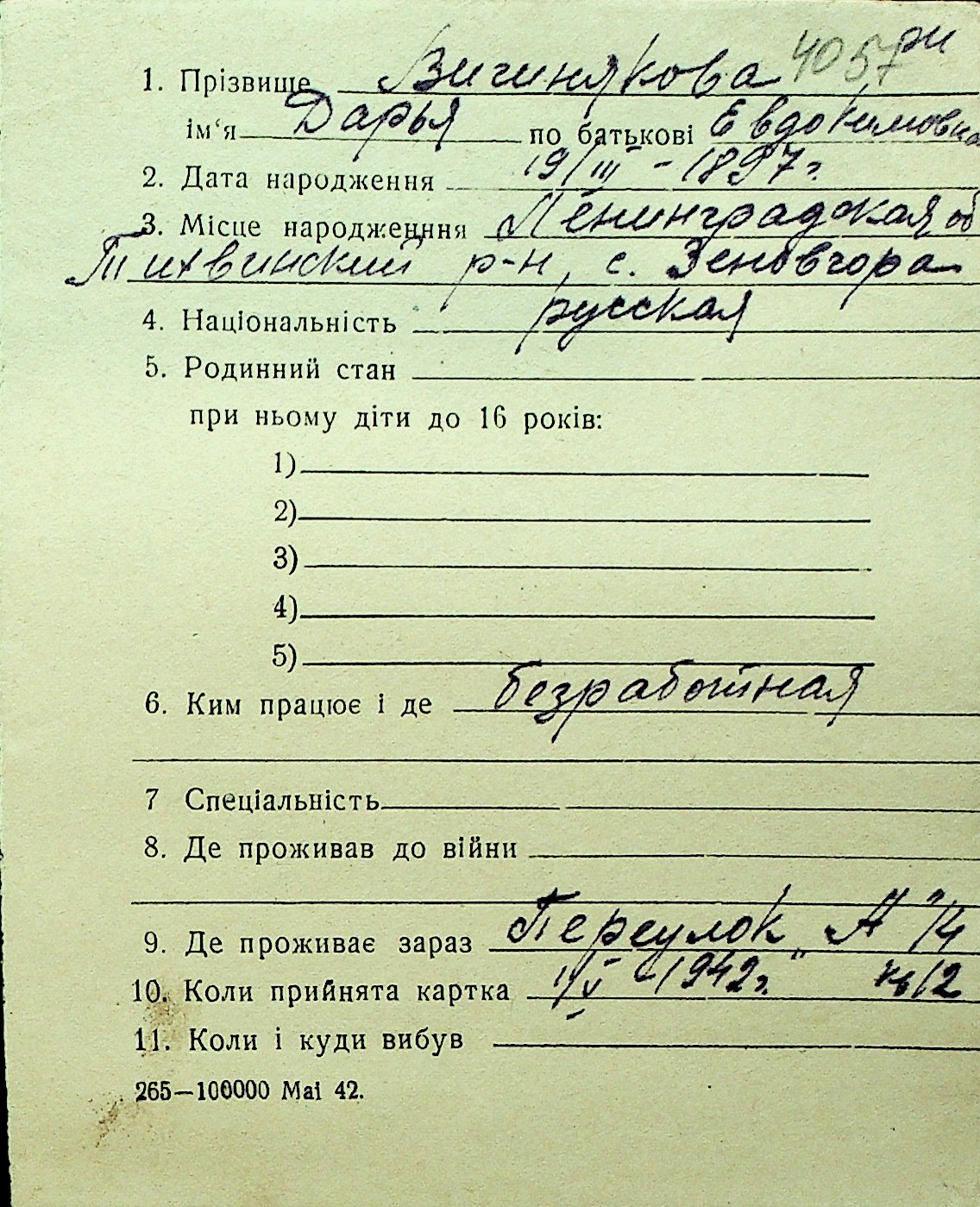 • • Перелік карток до фонду № Н-1016