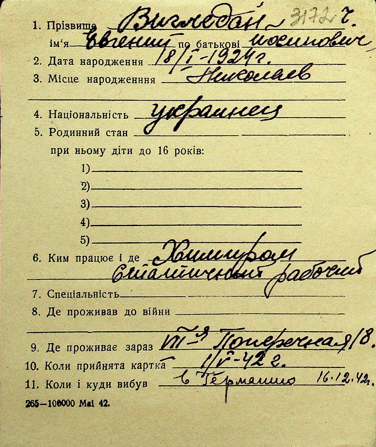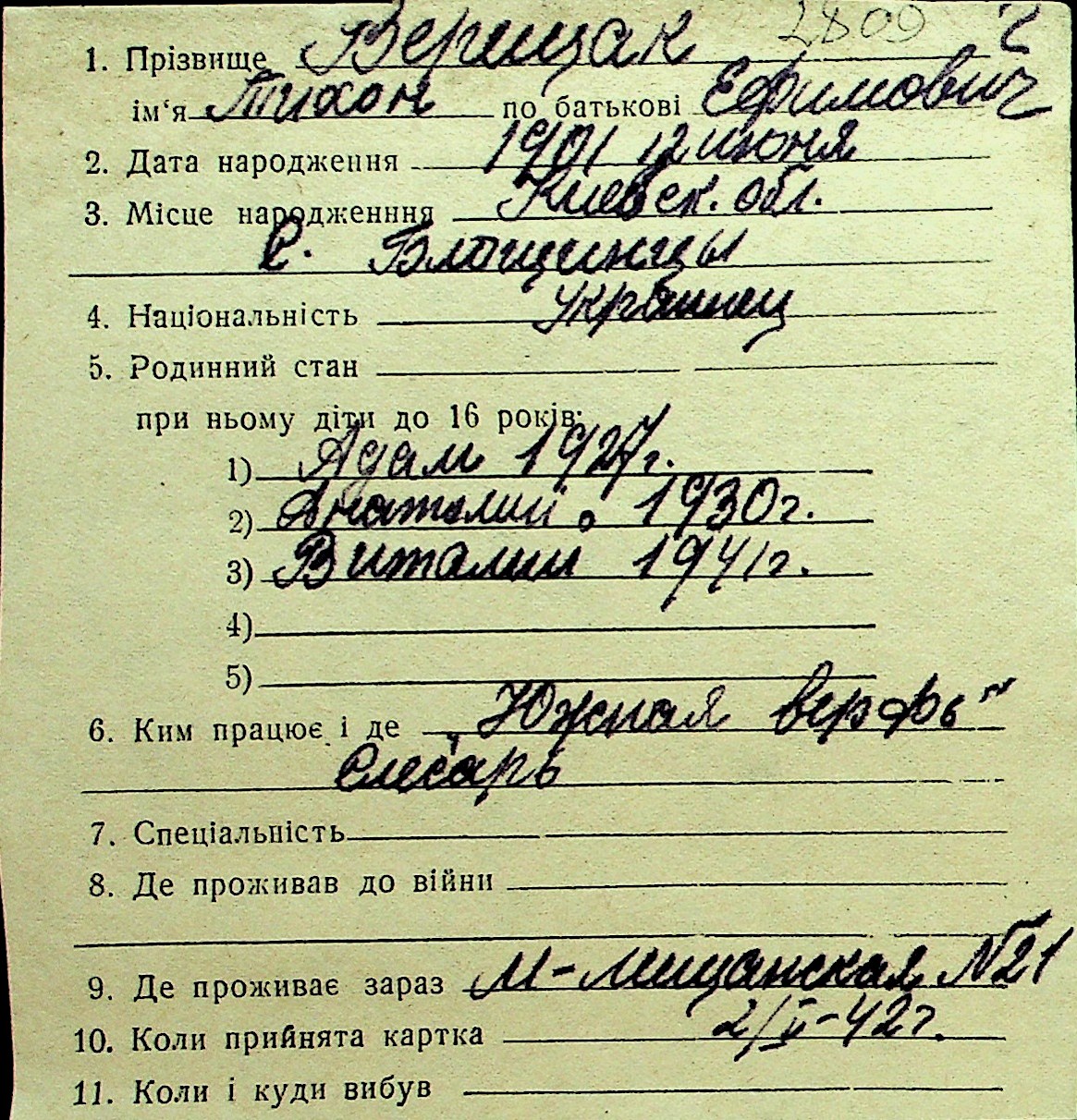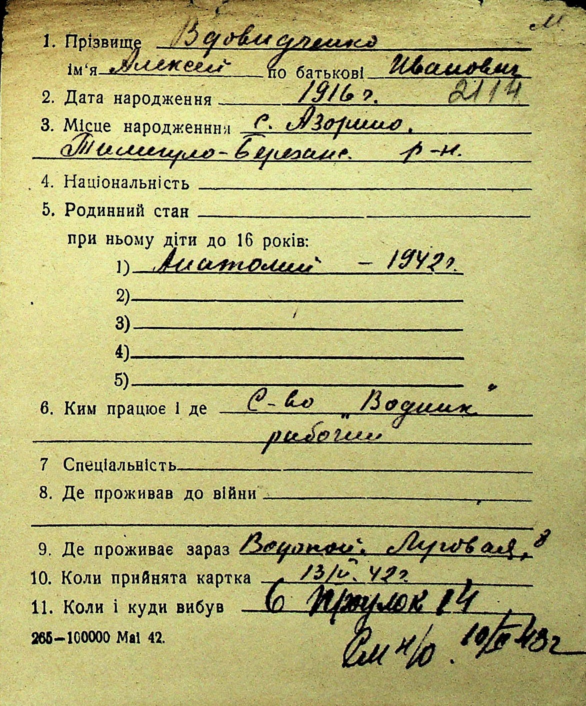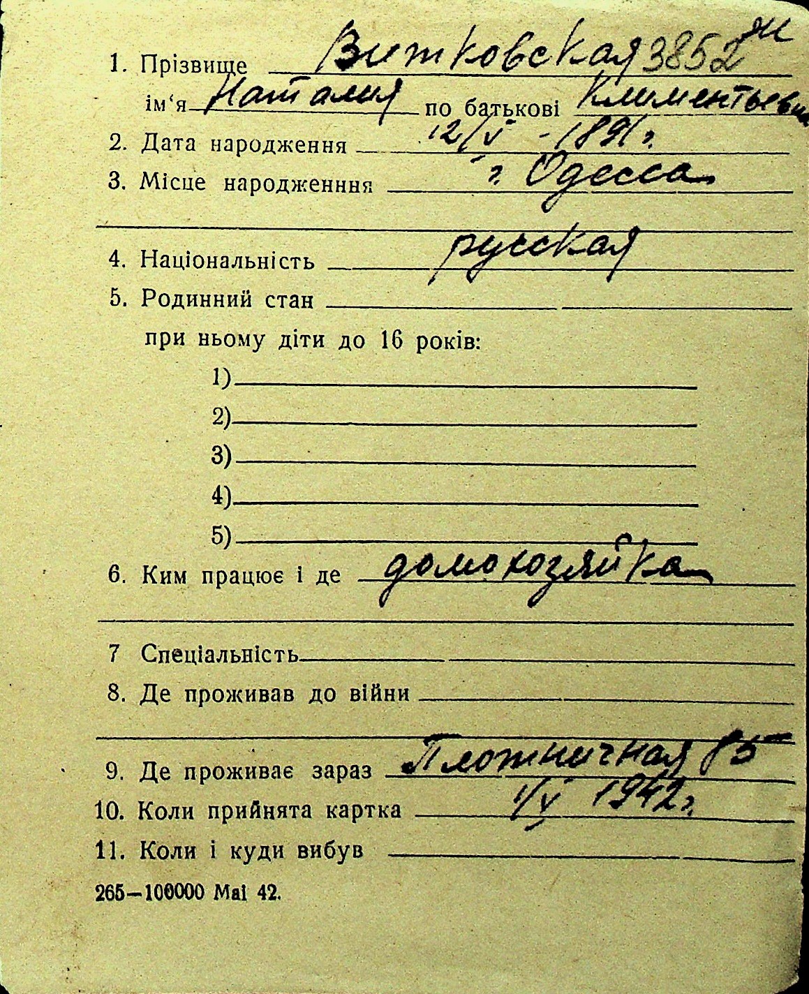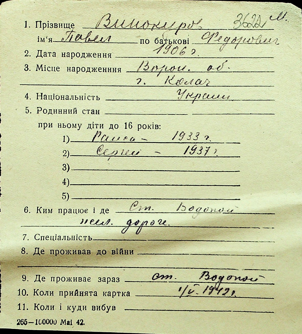 • • Перелік карток до фонду № Н-1016