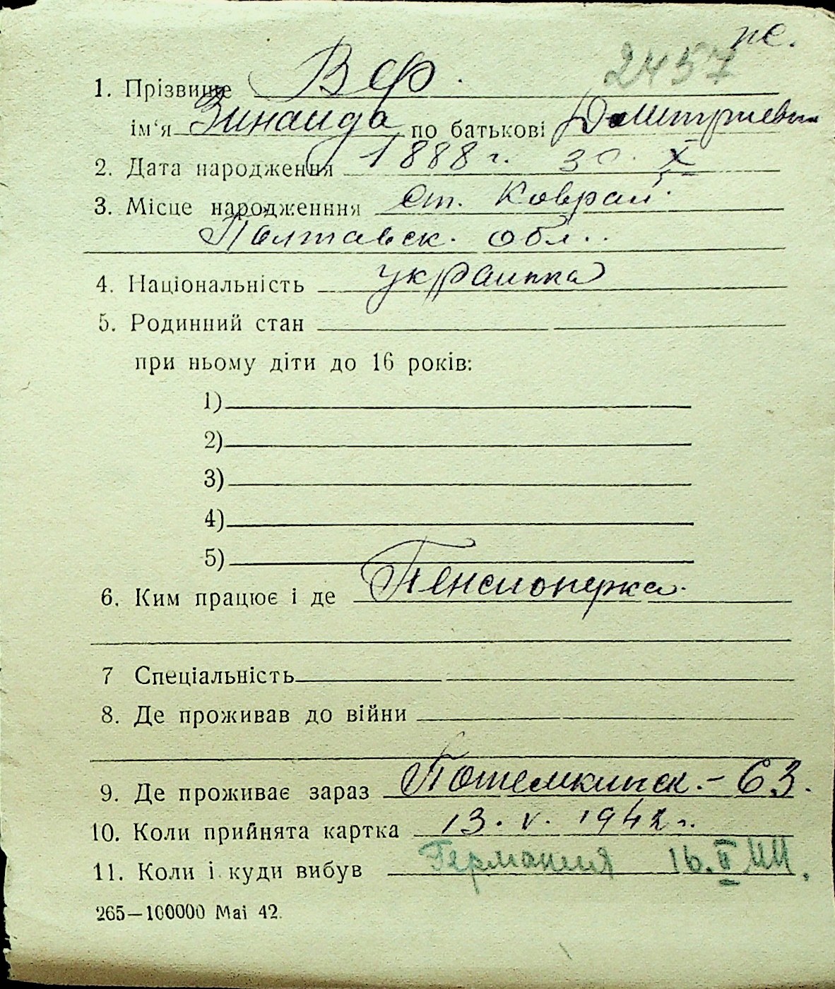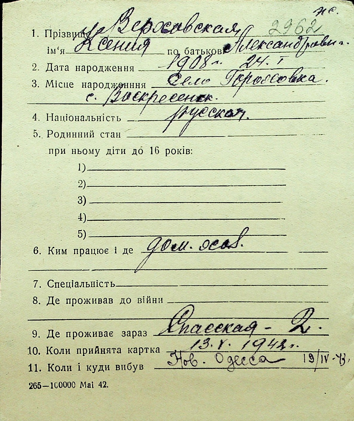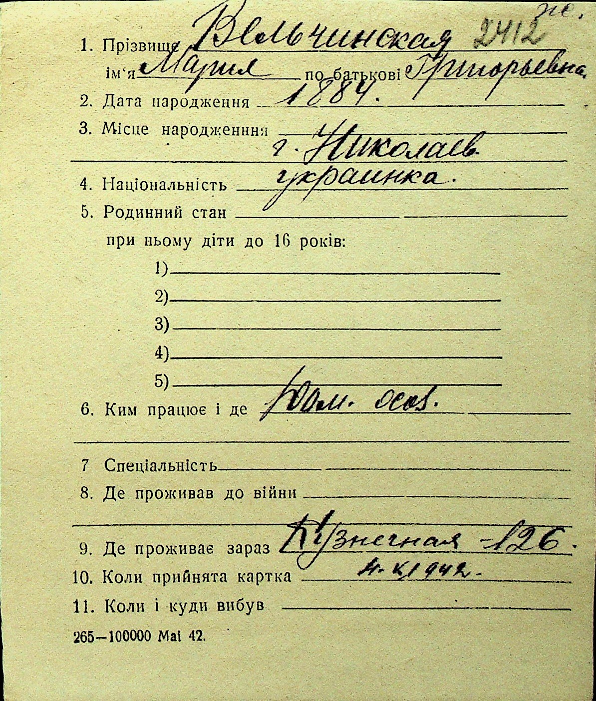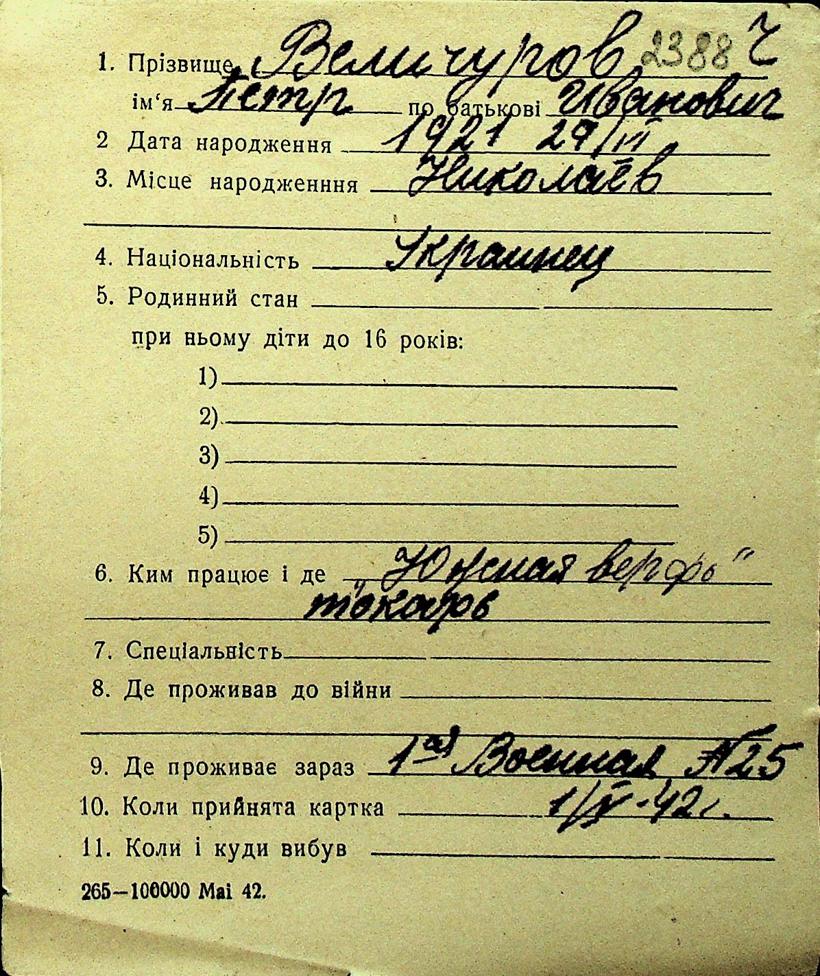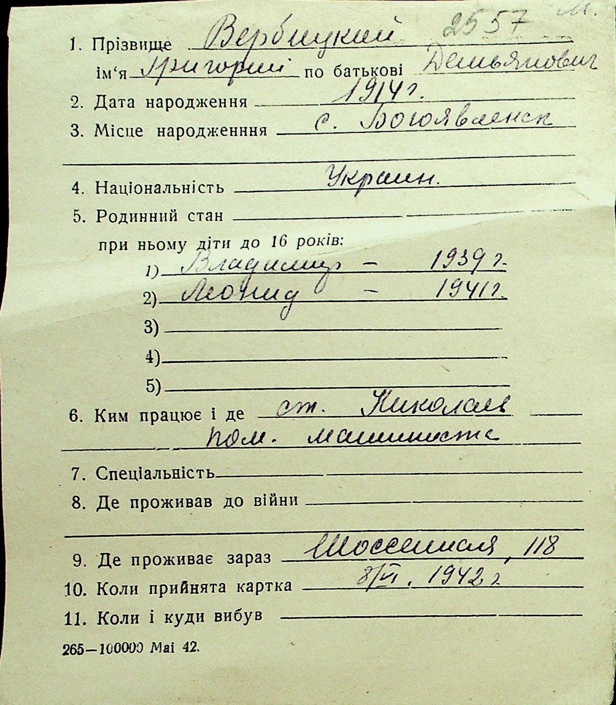 • • Перелік карток до фонду № Н-1016
