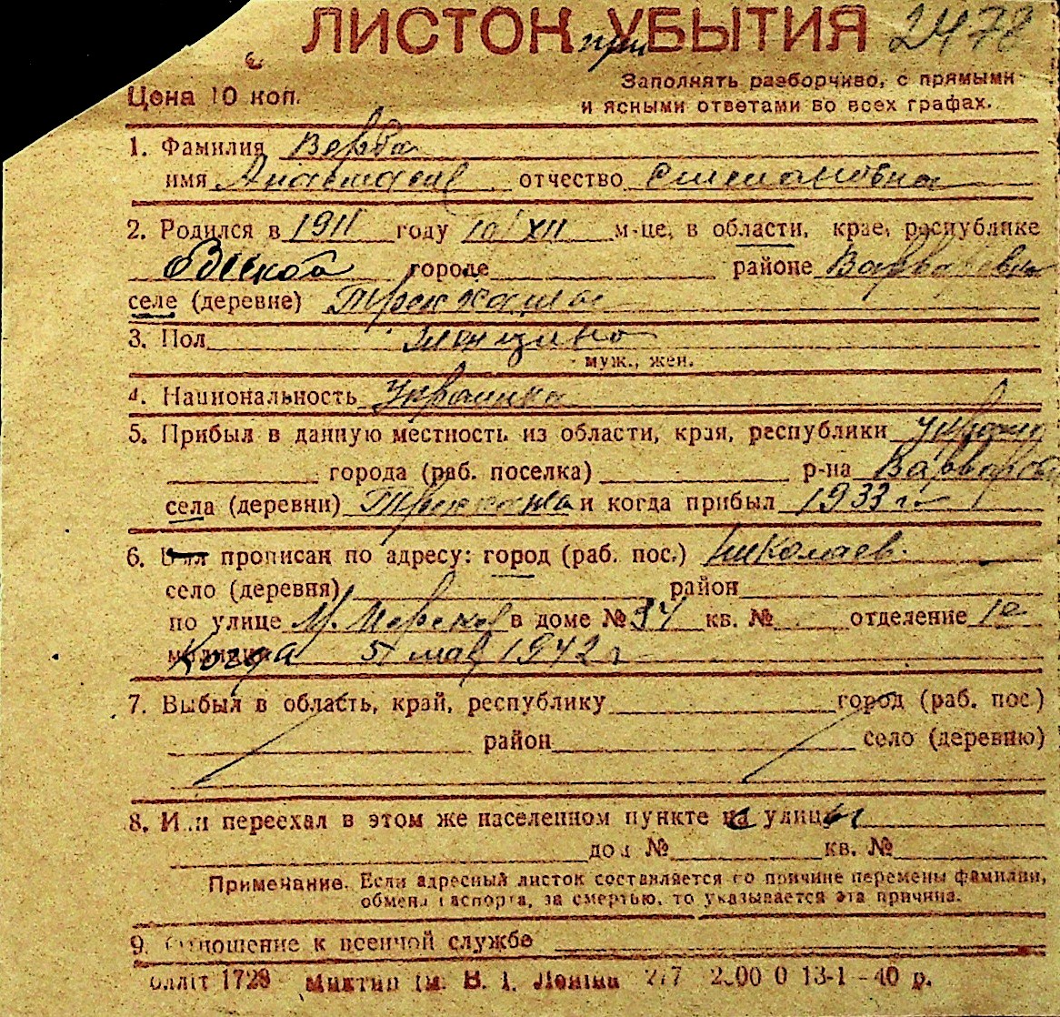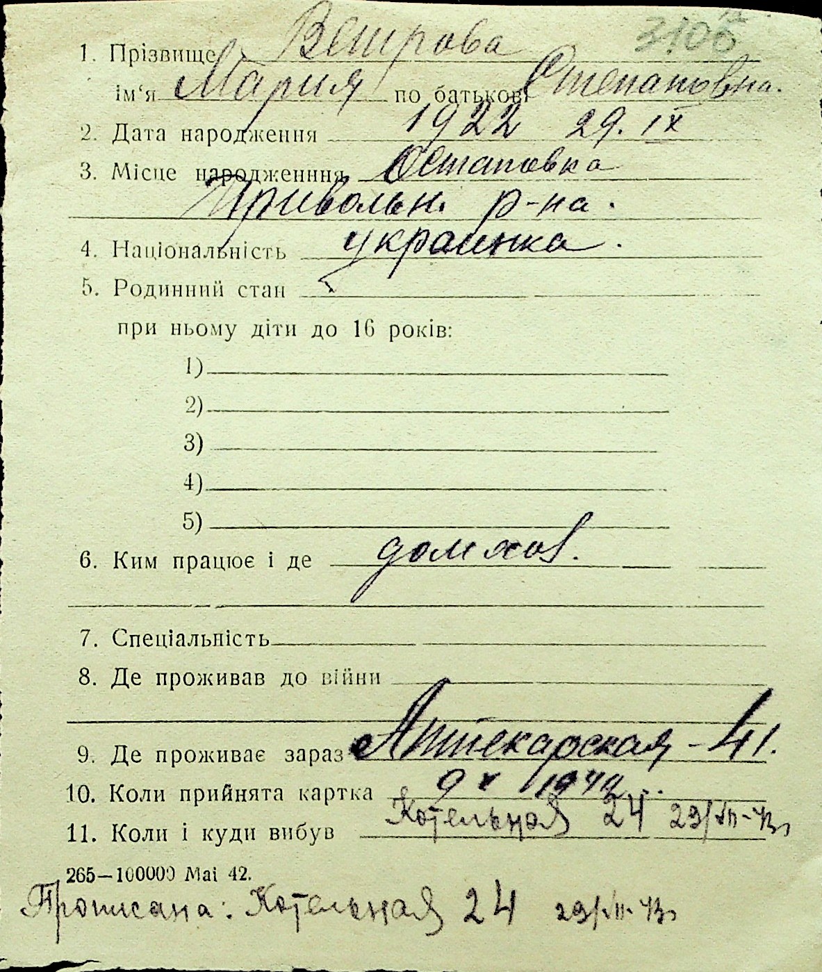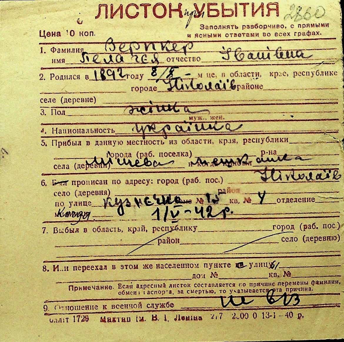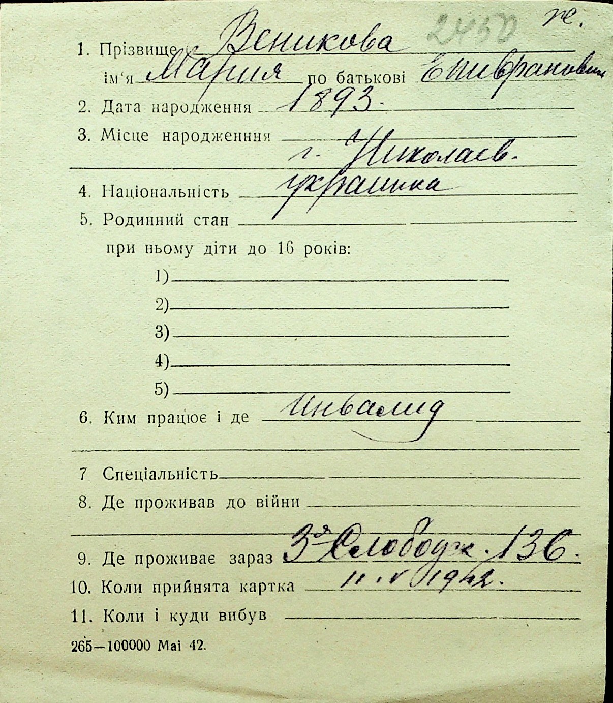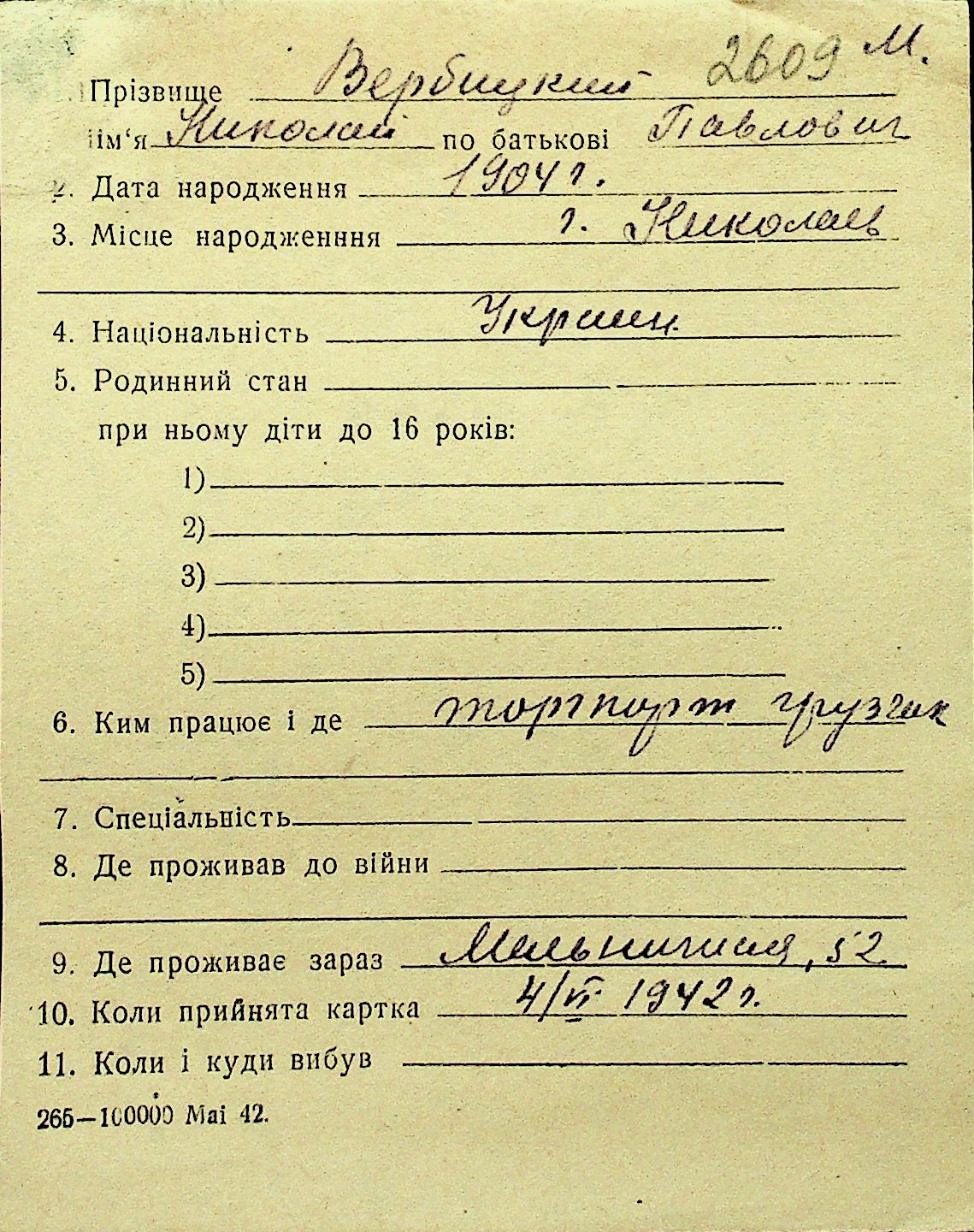 • • Перелік карток до фонду № Н-1016