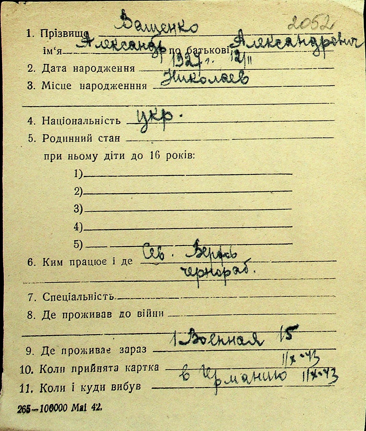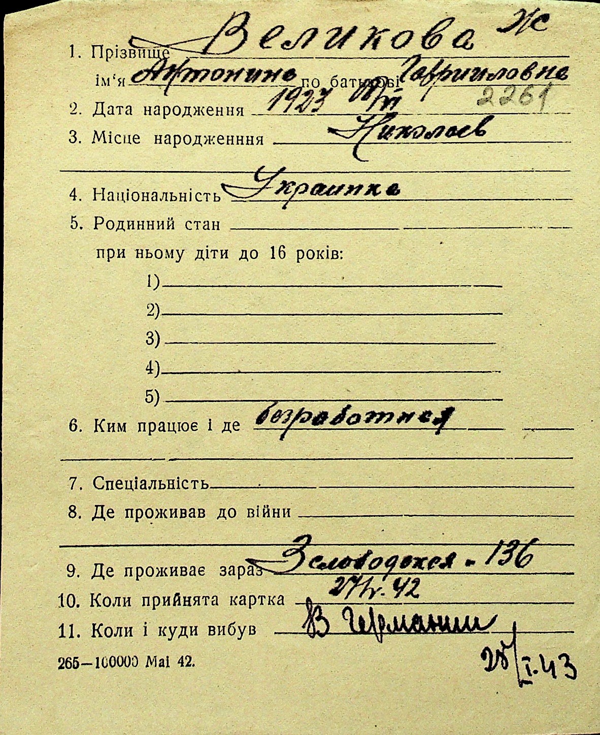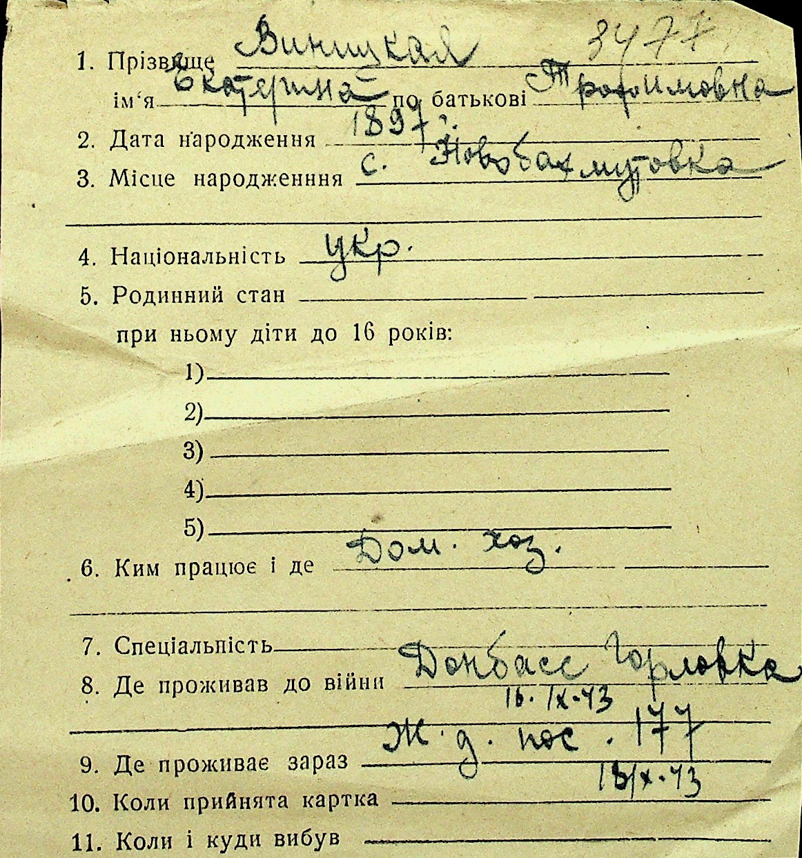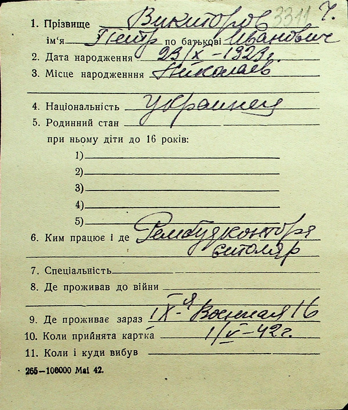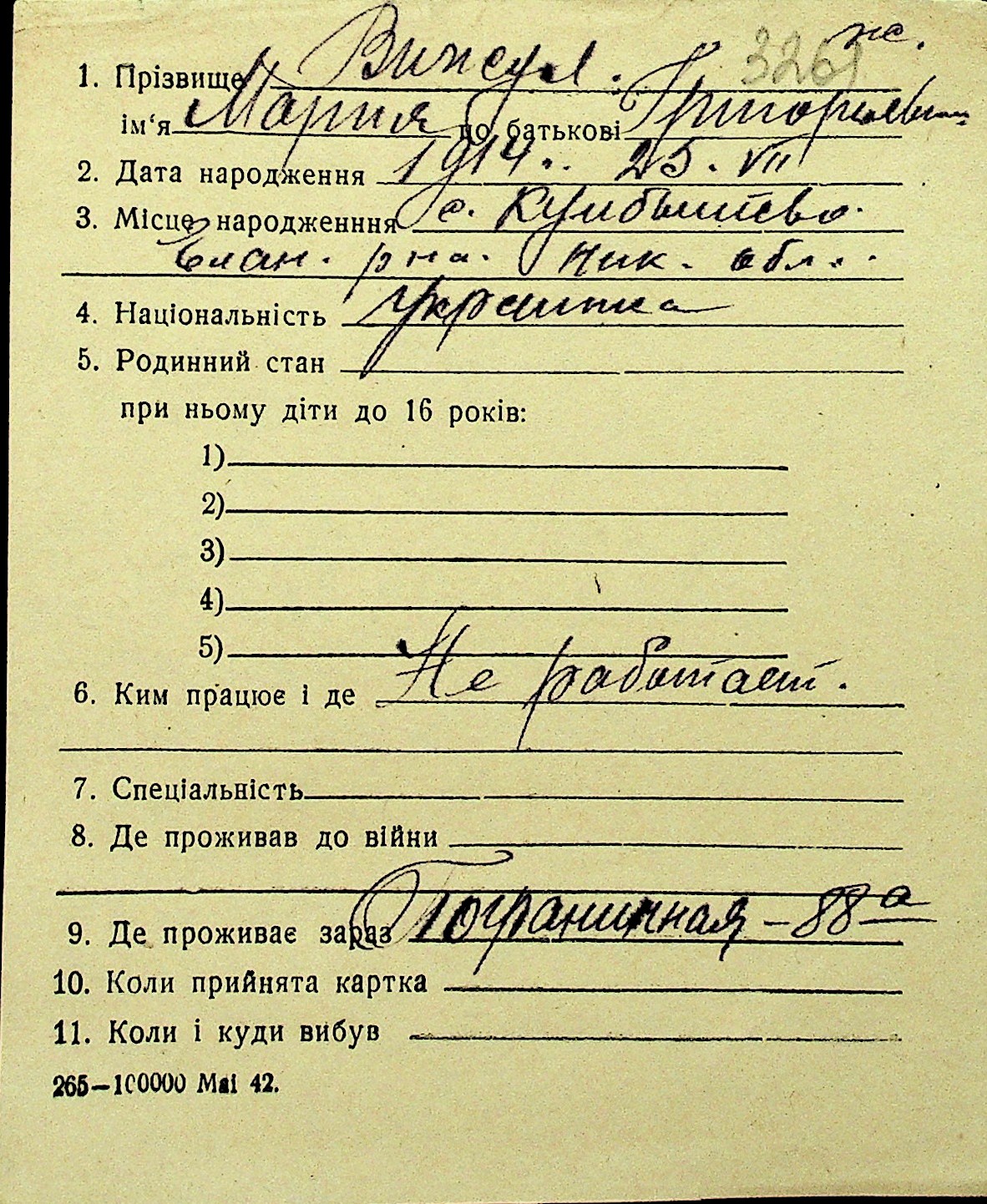 • • Перелік карток до фонду № Н-1016