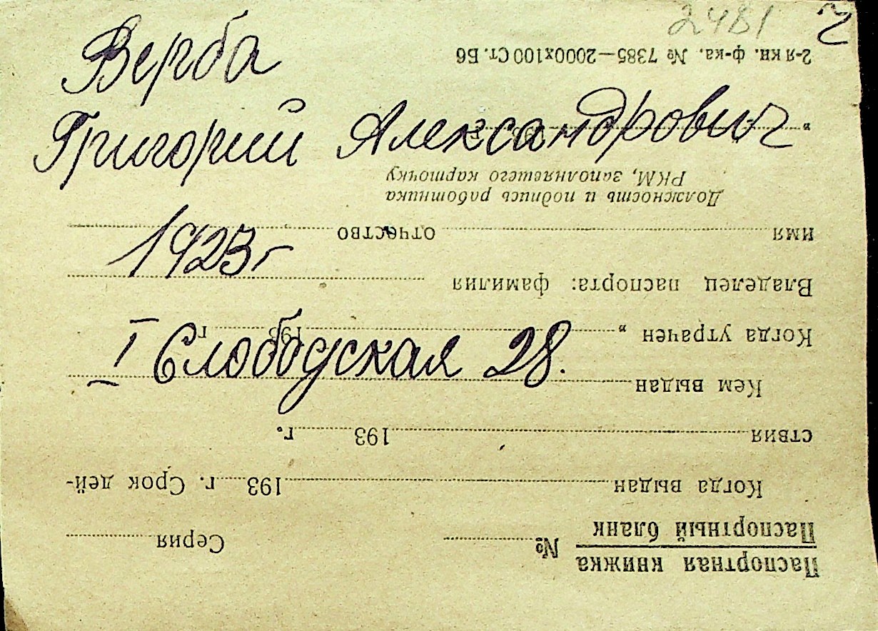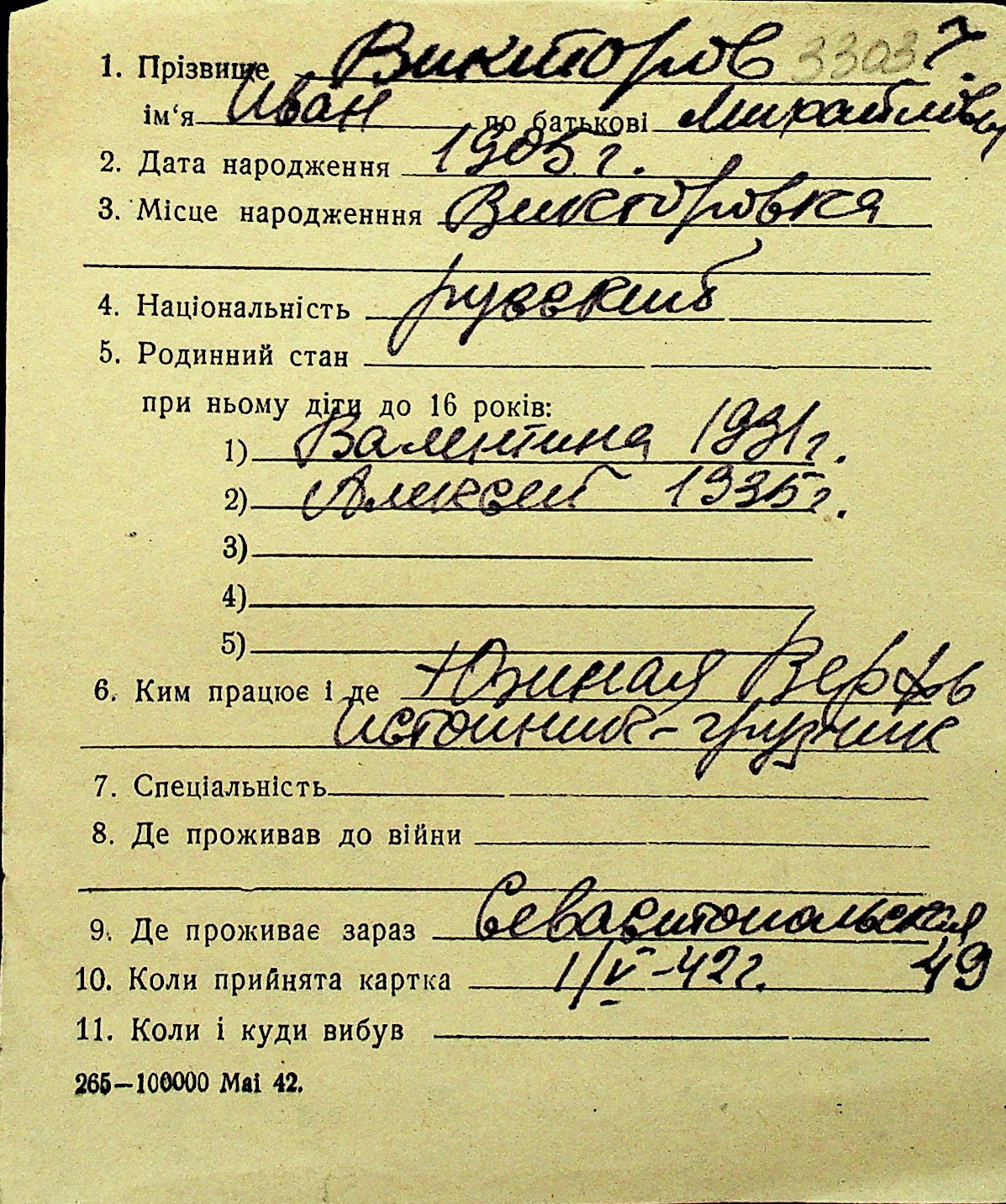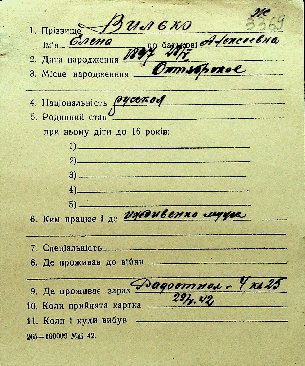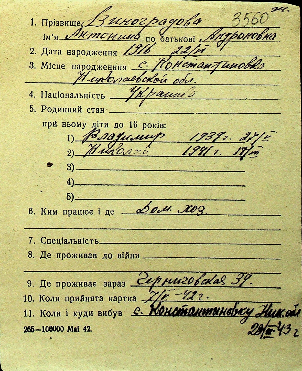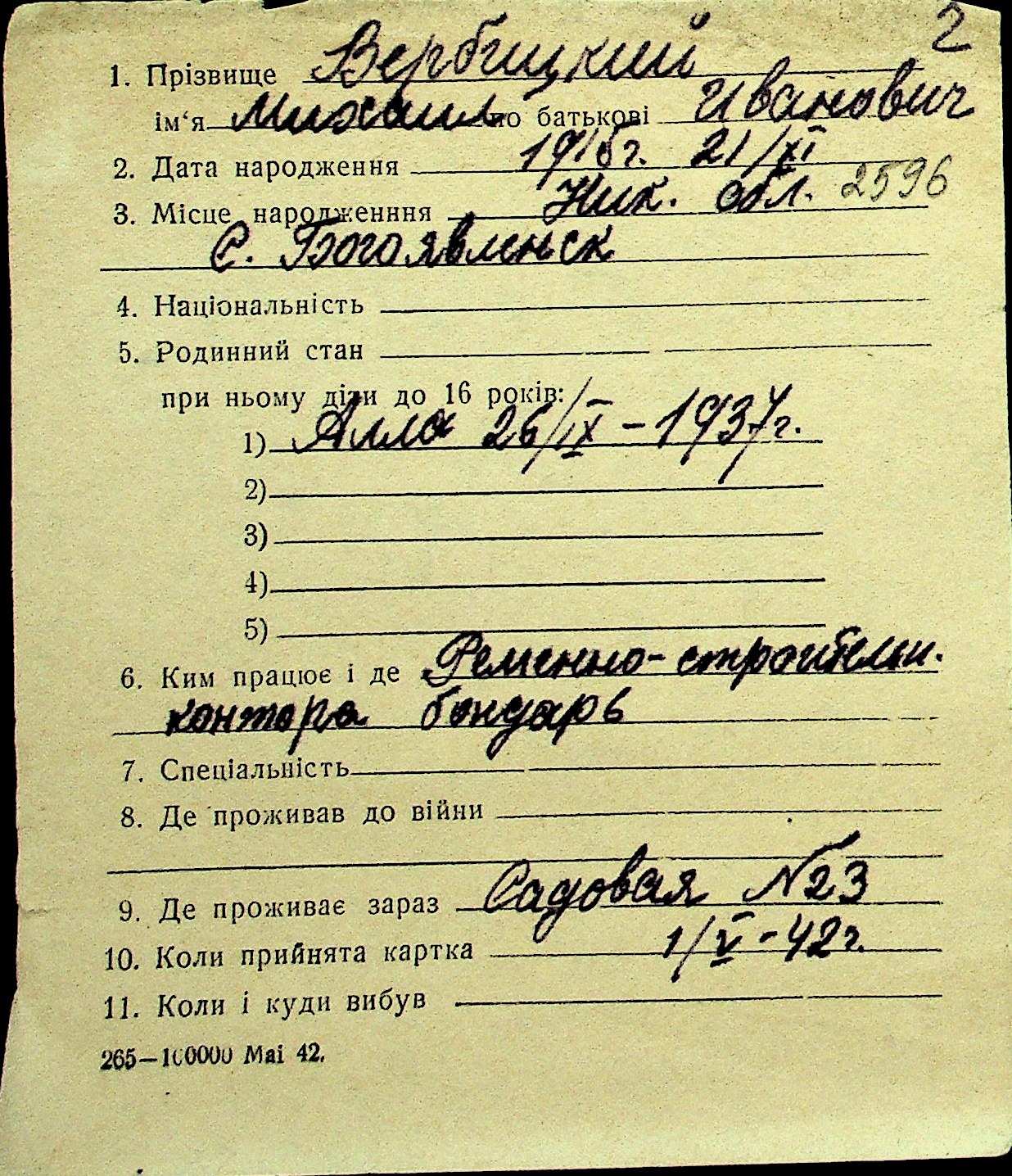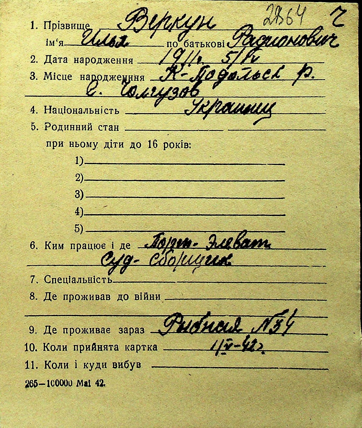 • • Перелік карток до фонду № Н-1016