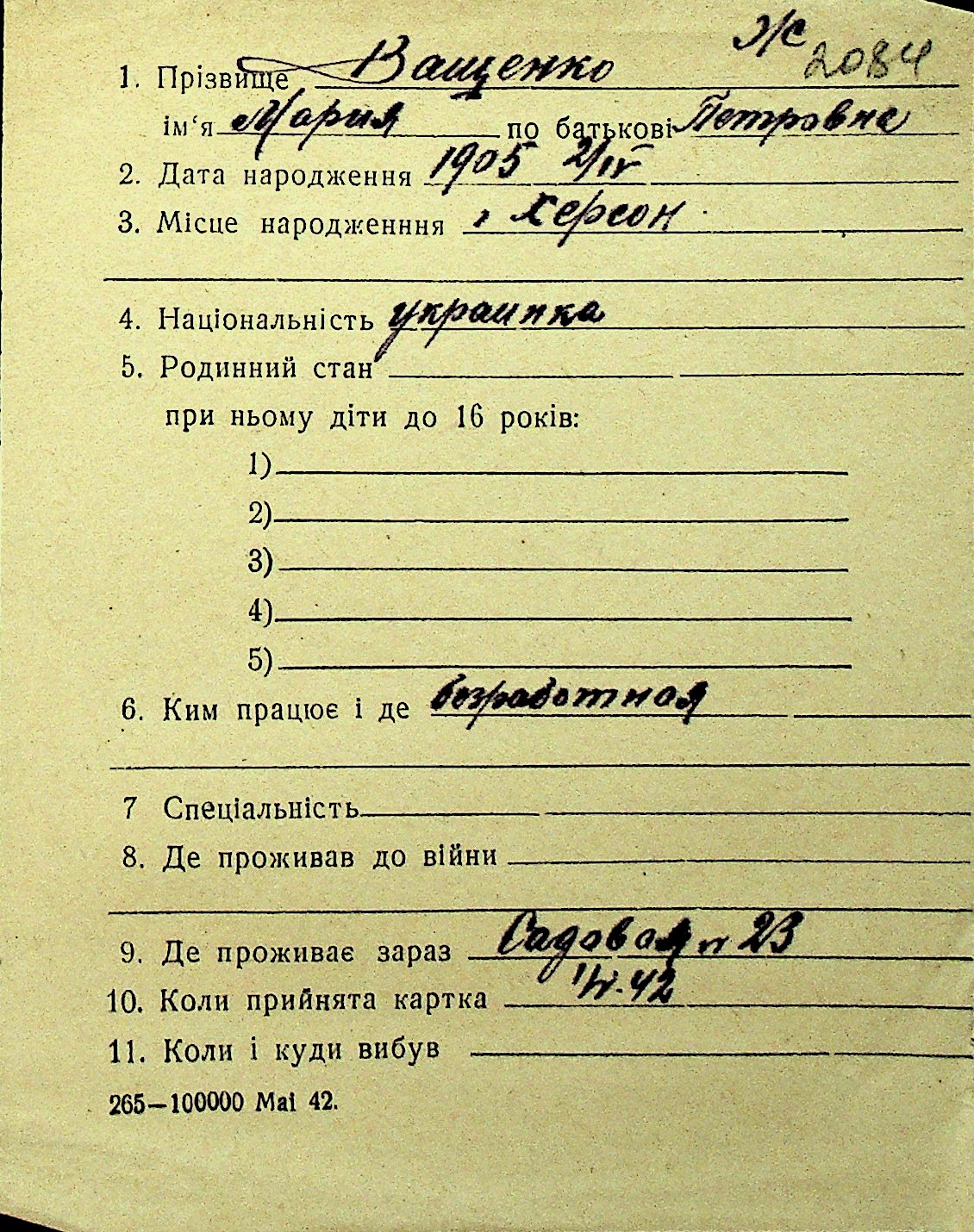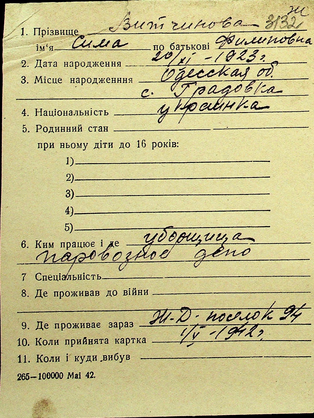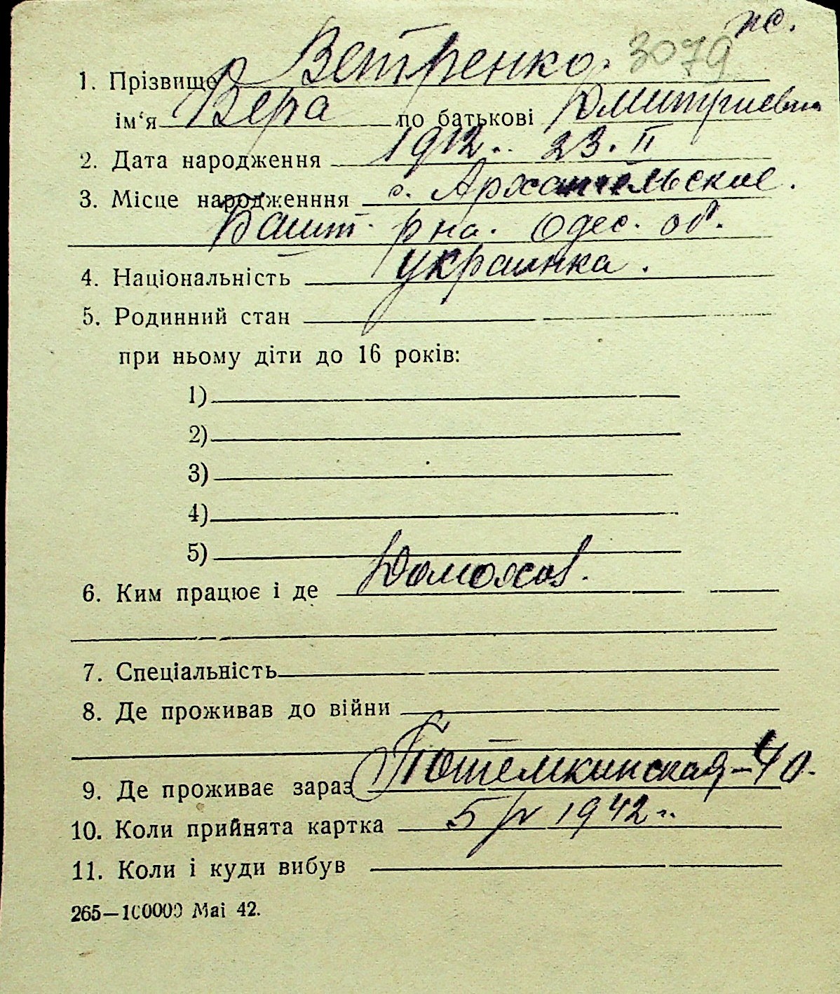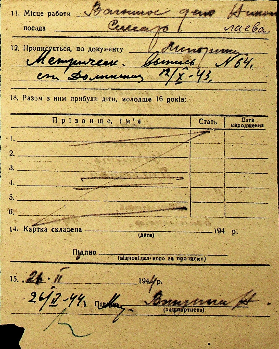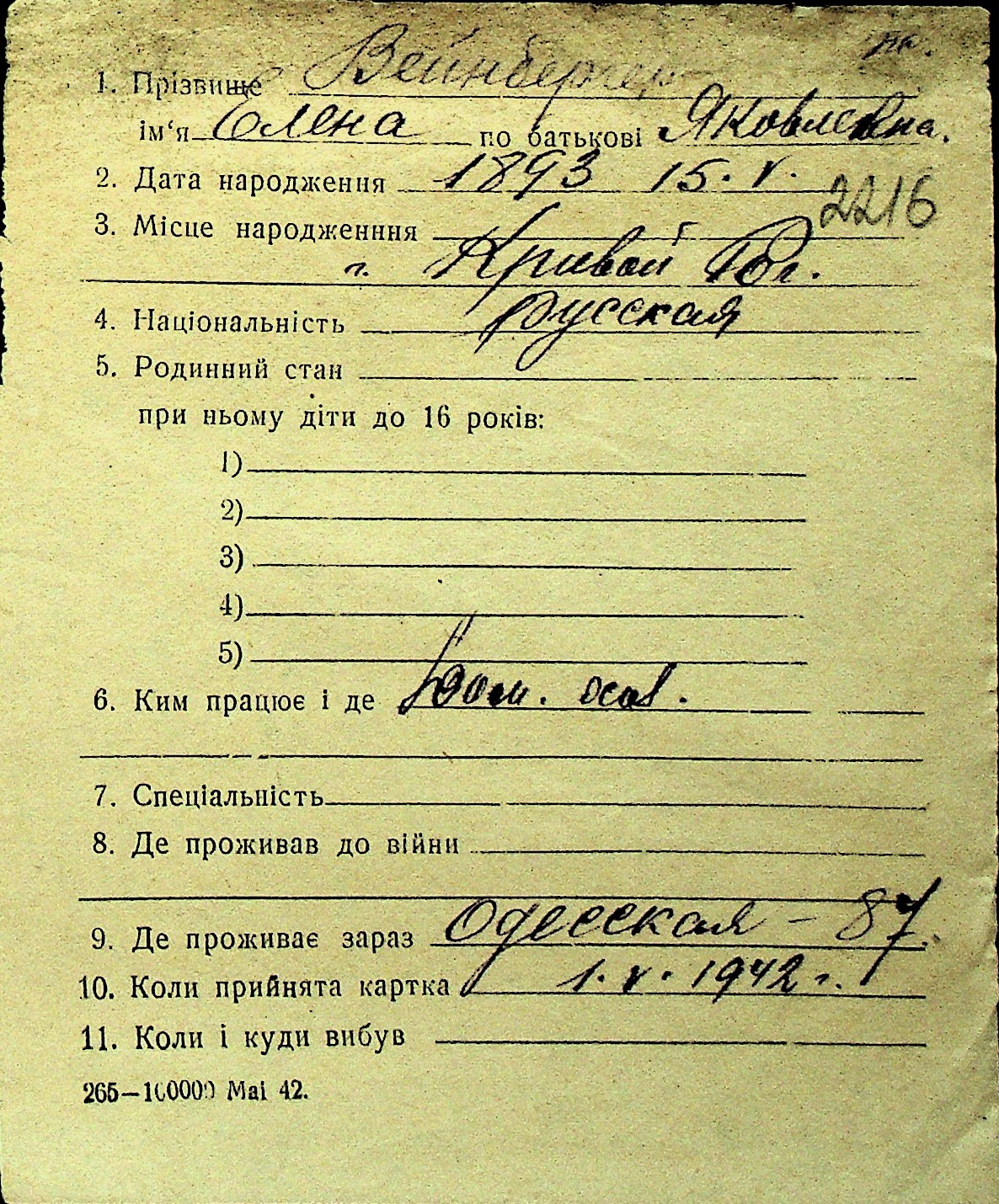 • • Перелік карток до фонду № Н-1016