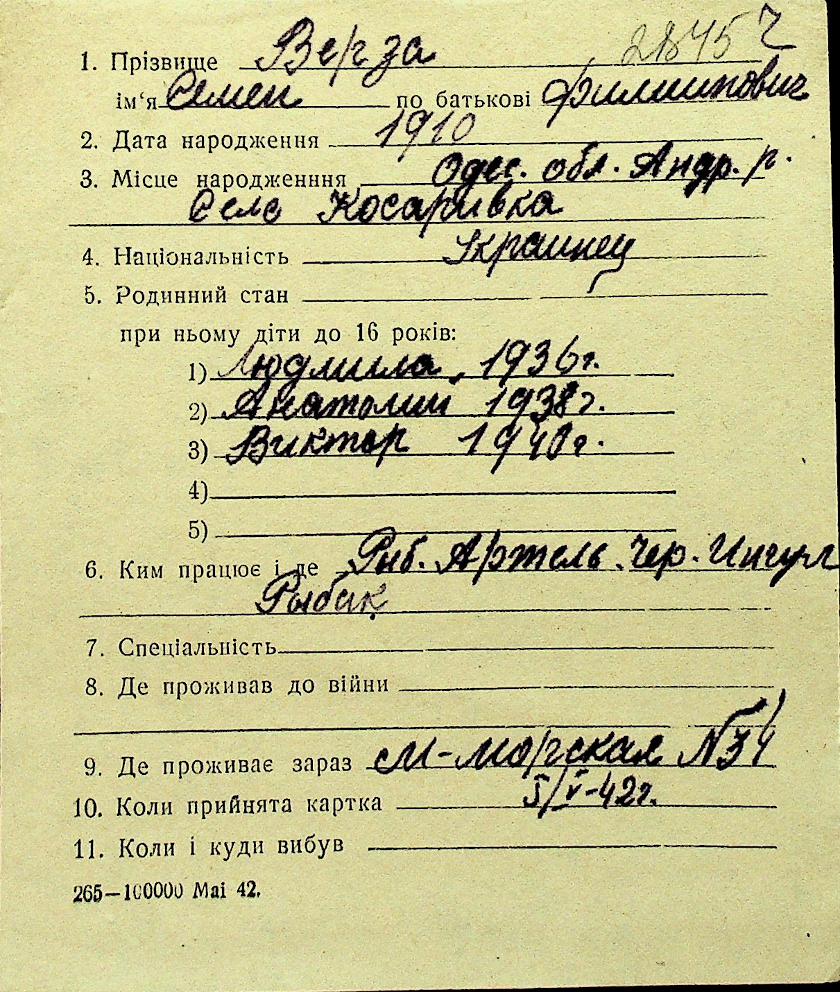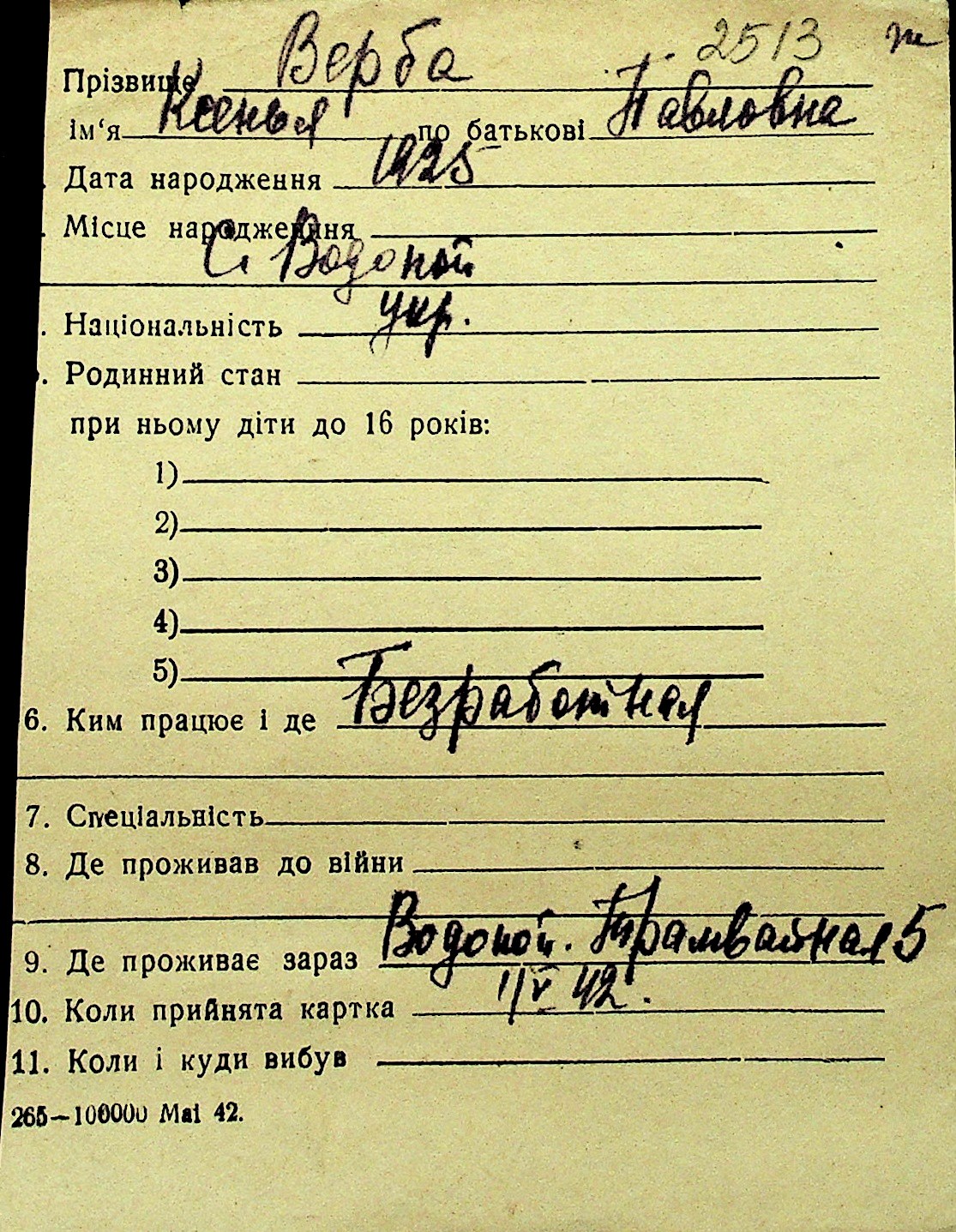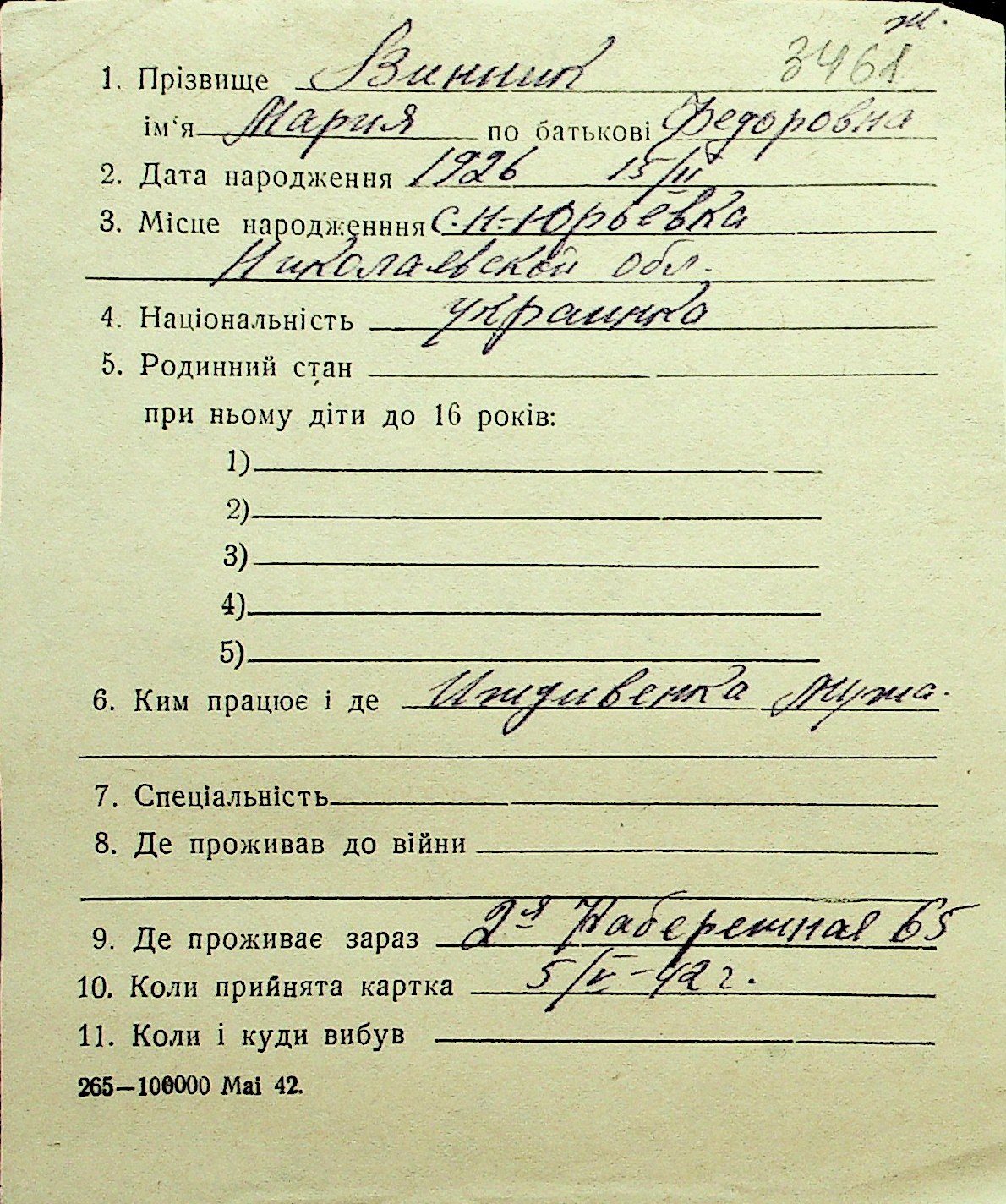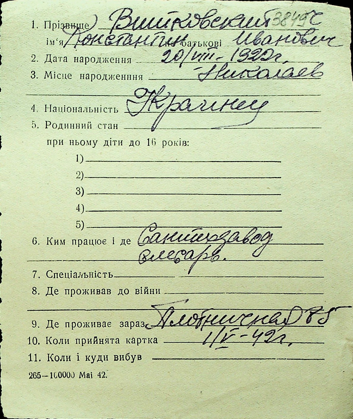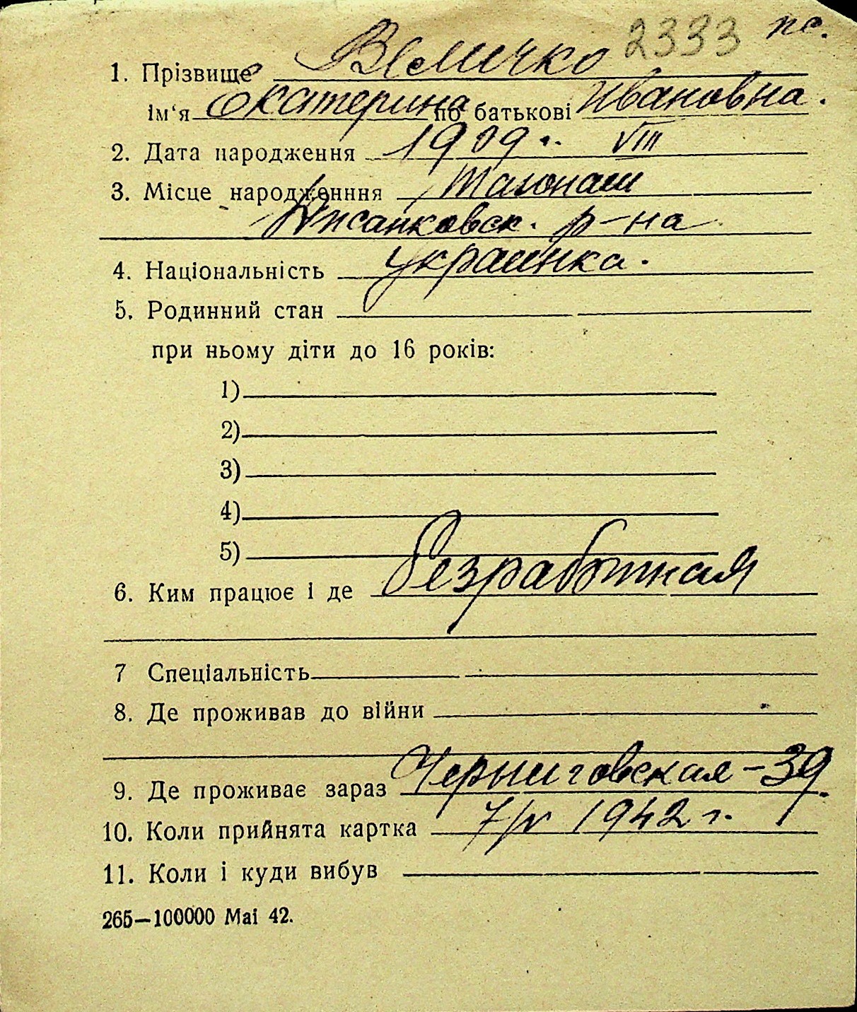 • • Перелік карток до фонду № Н-1016