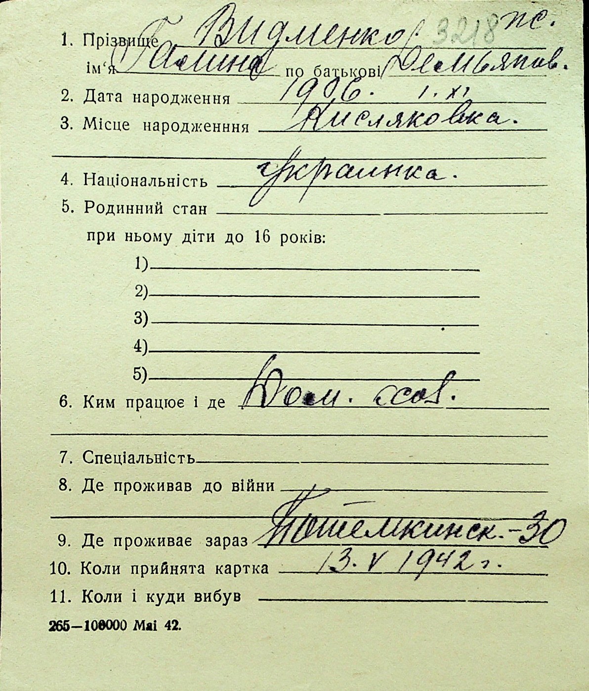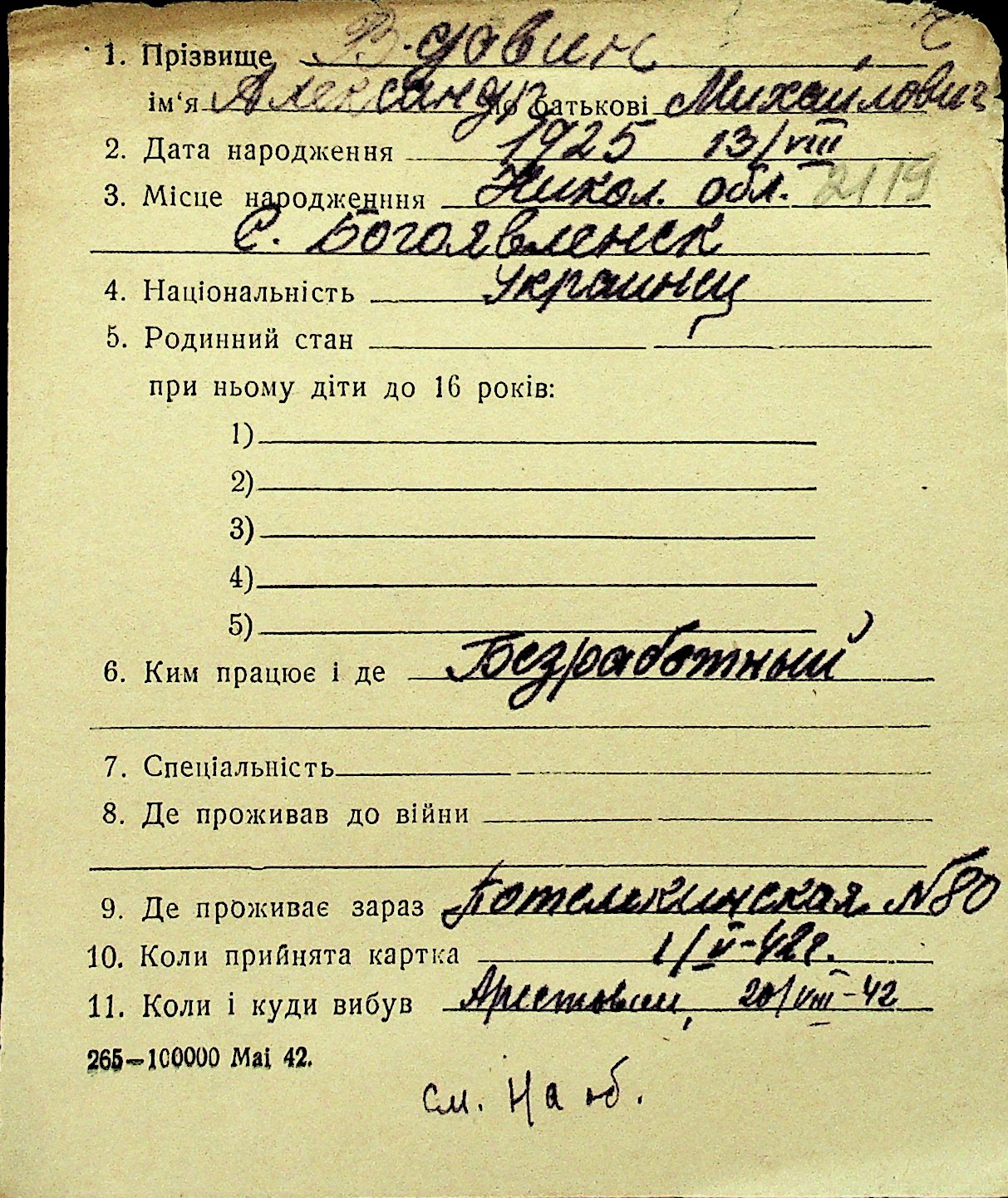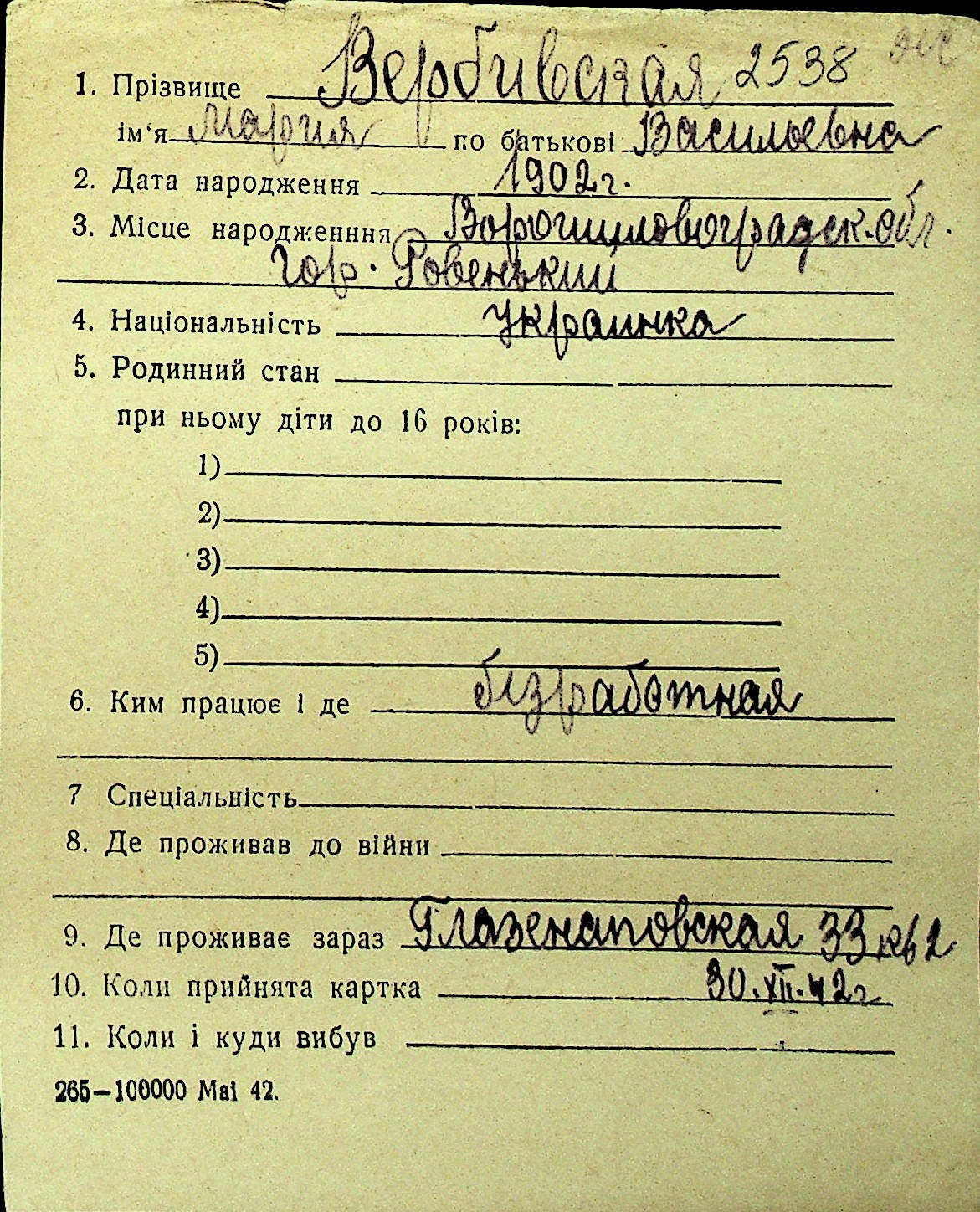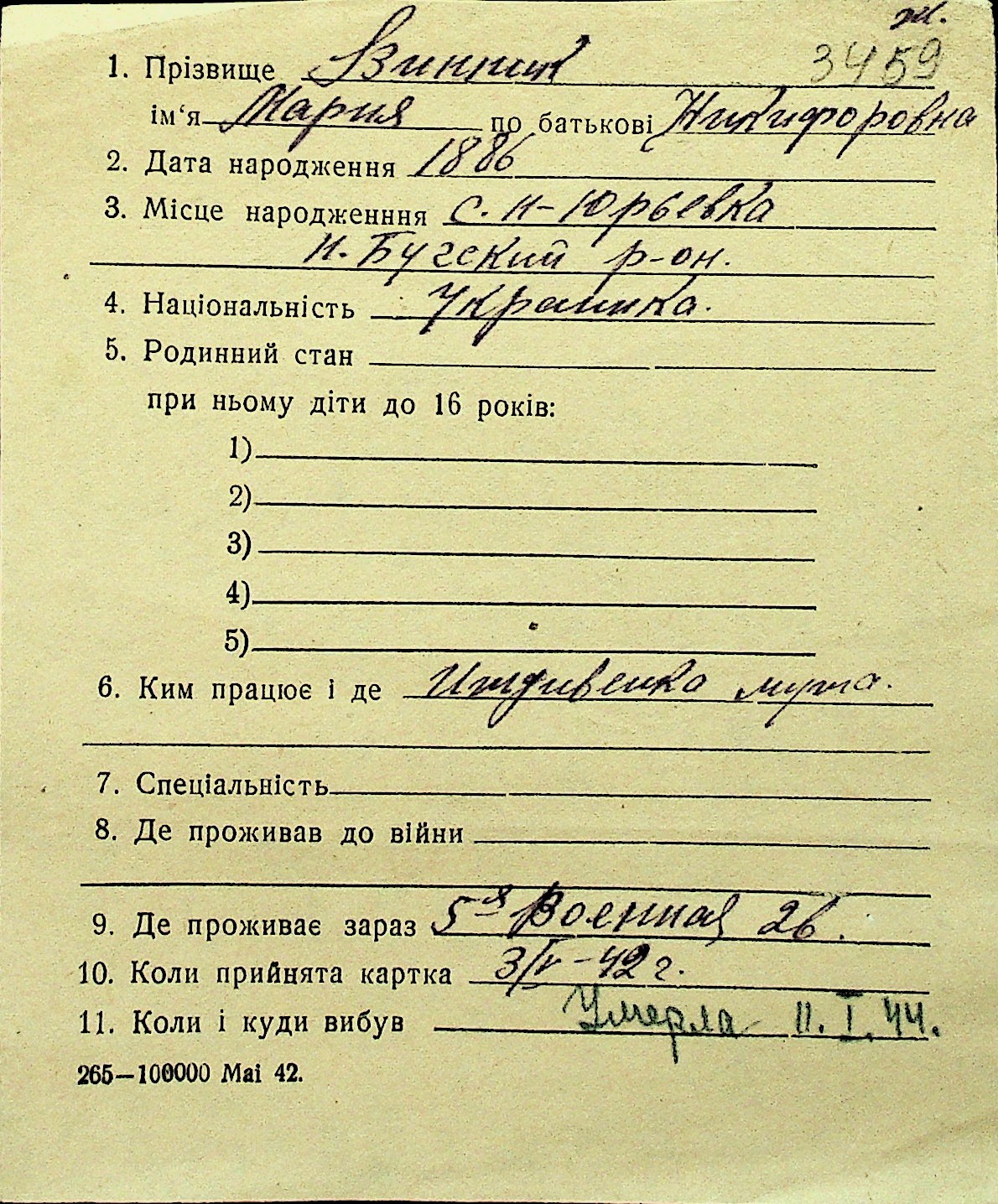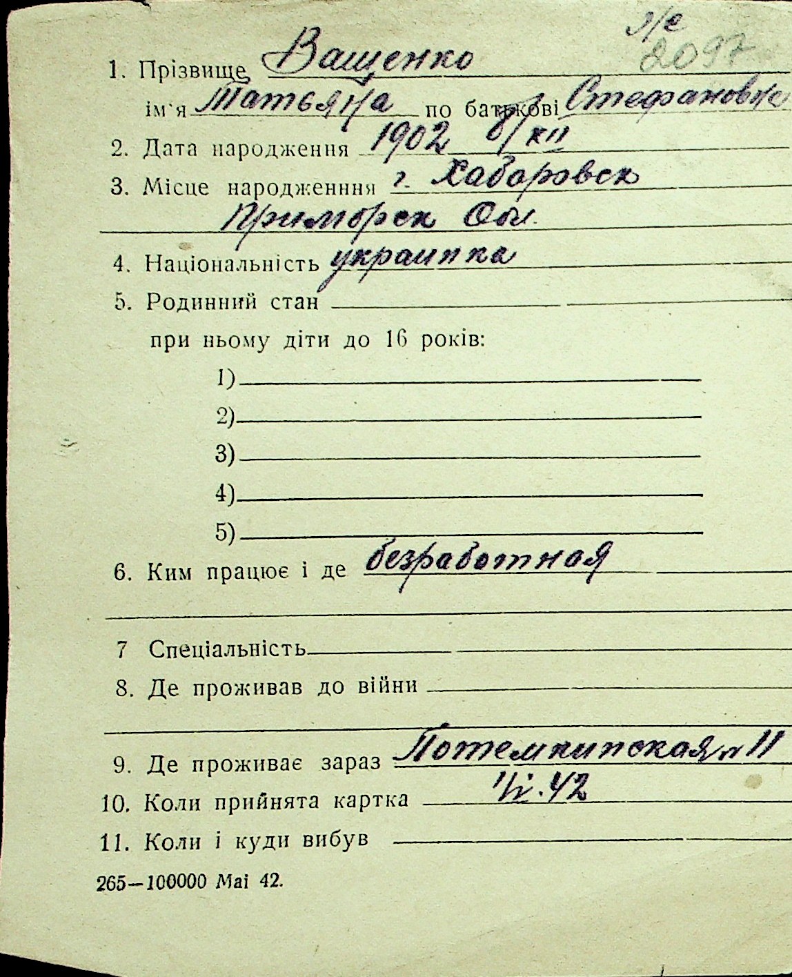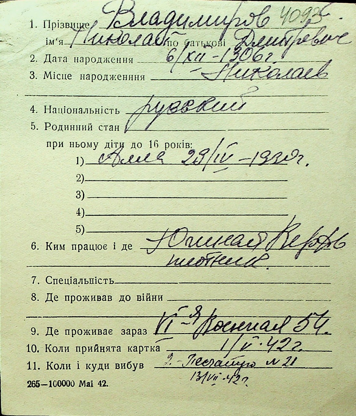 • • Перелік карток до фонду № Н-1016