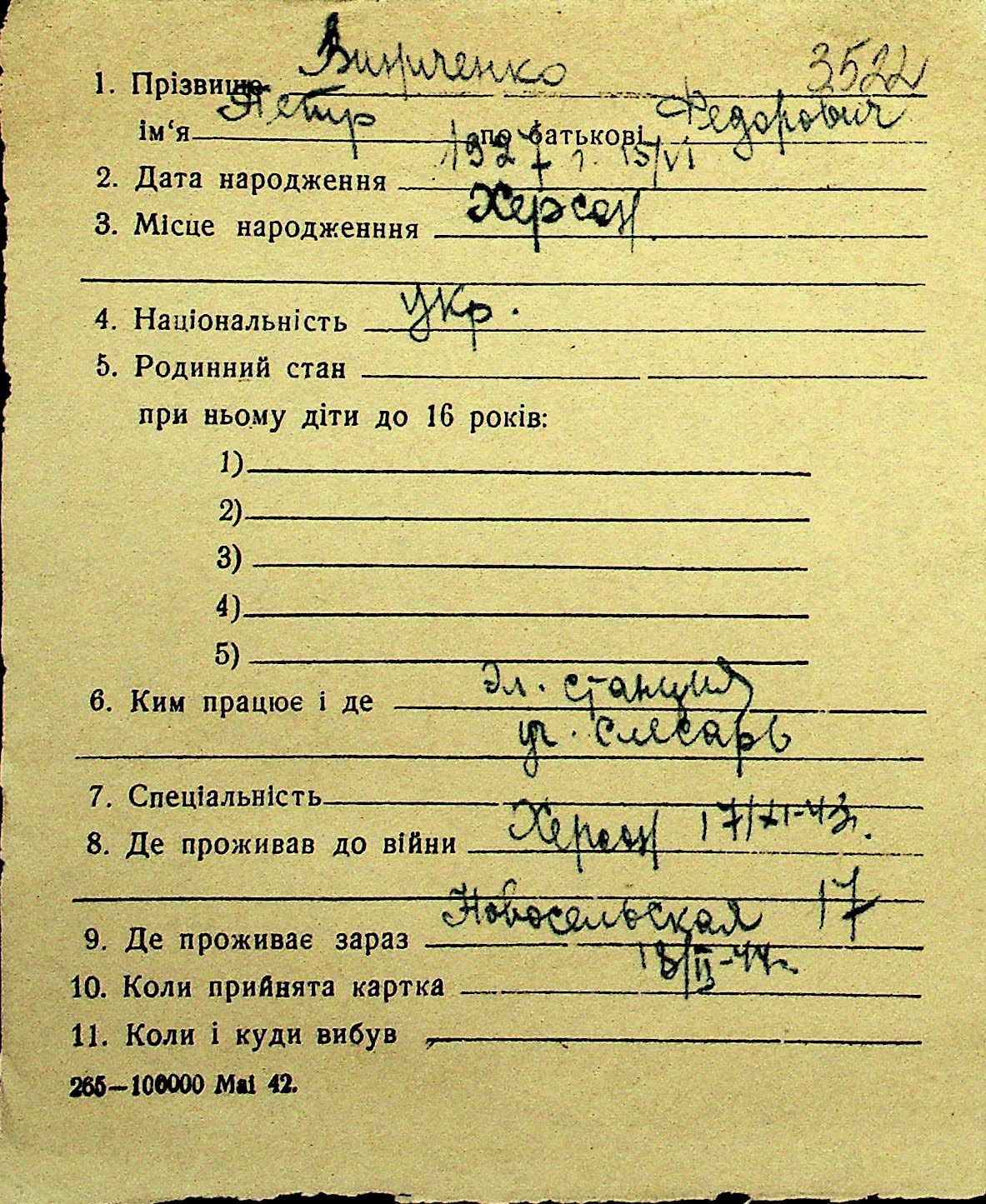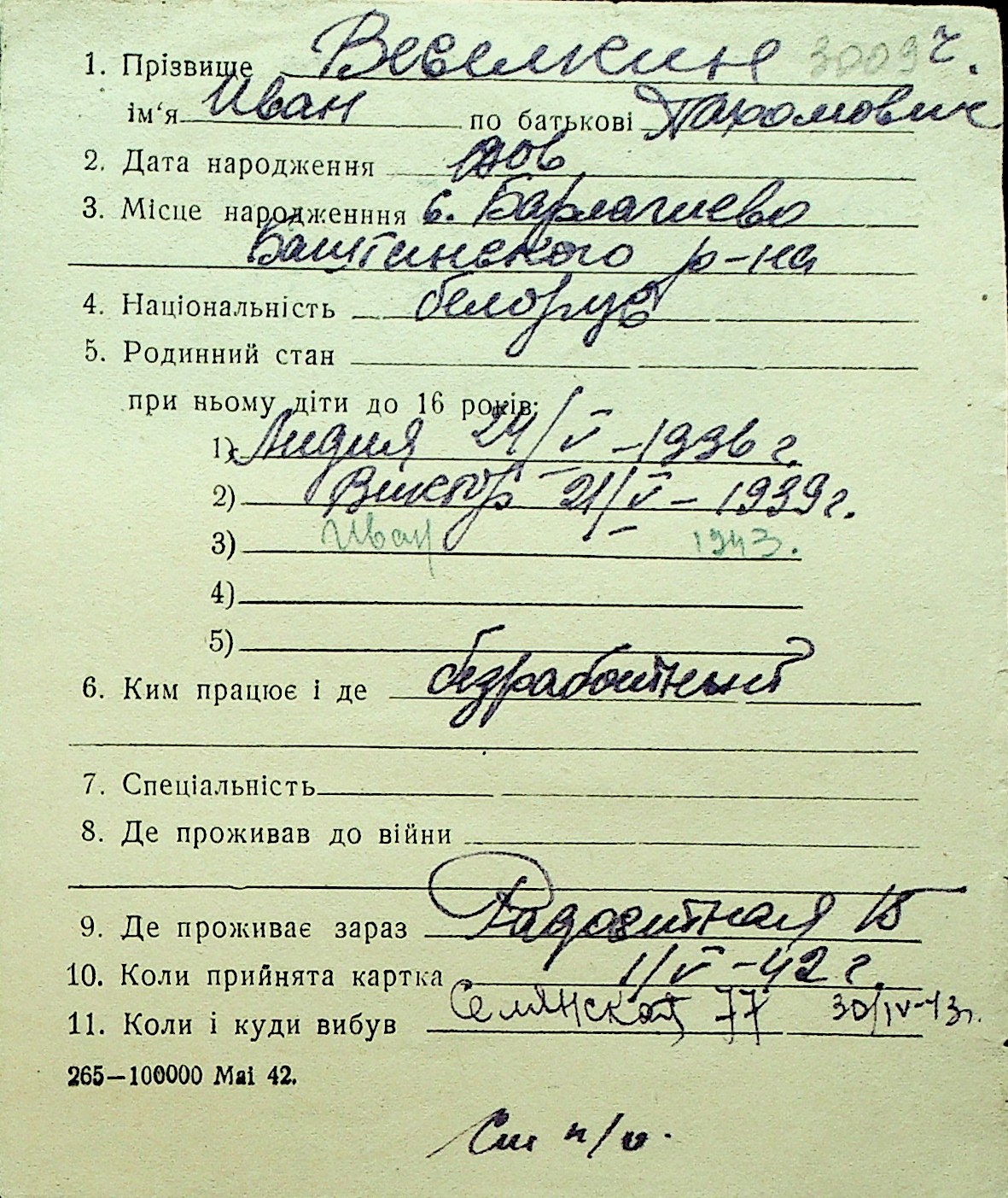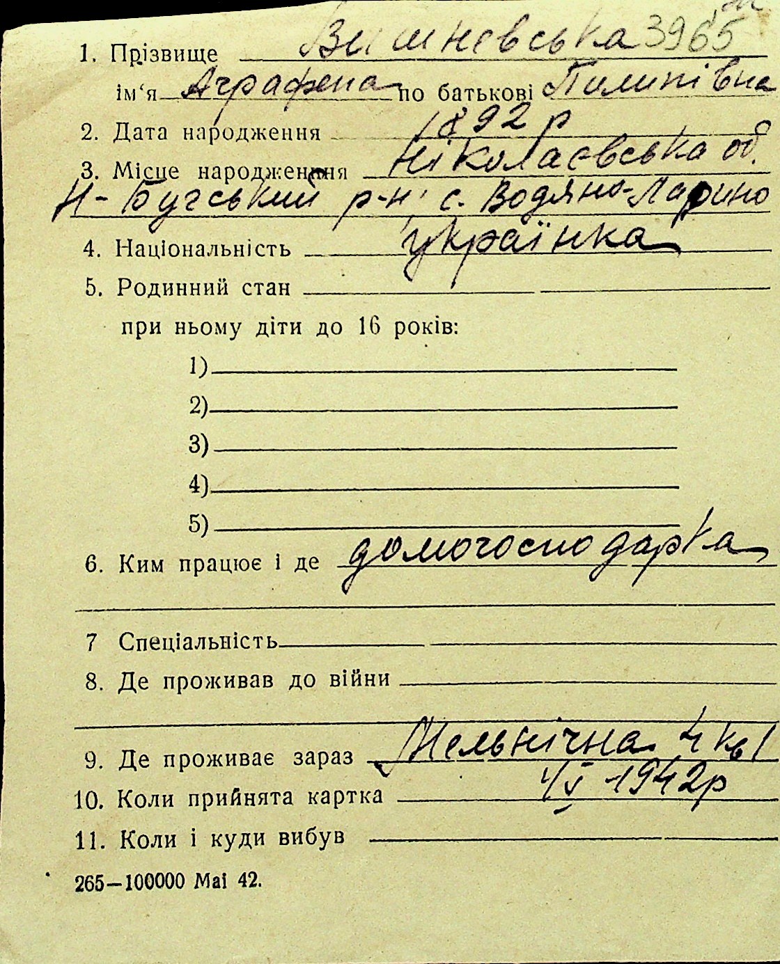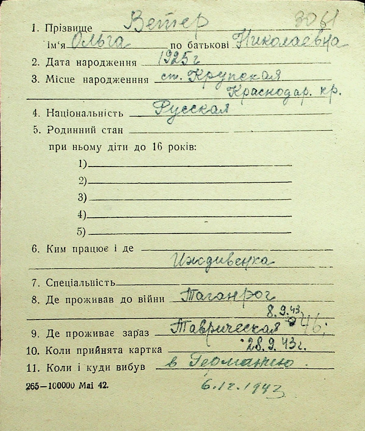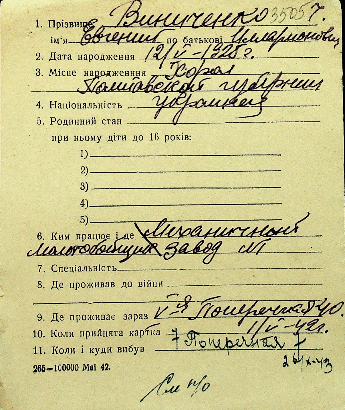 • • Перелік карток до фонду № Н-1016
