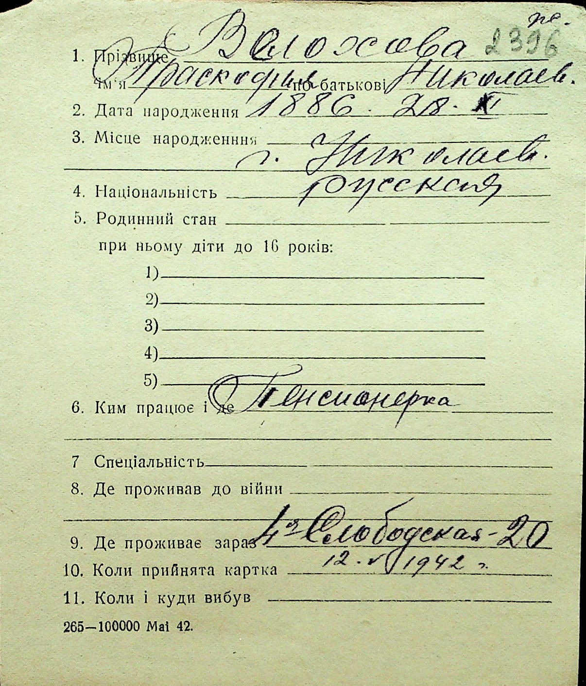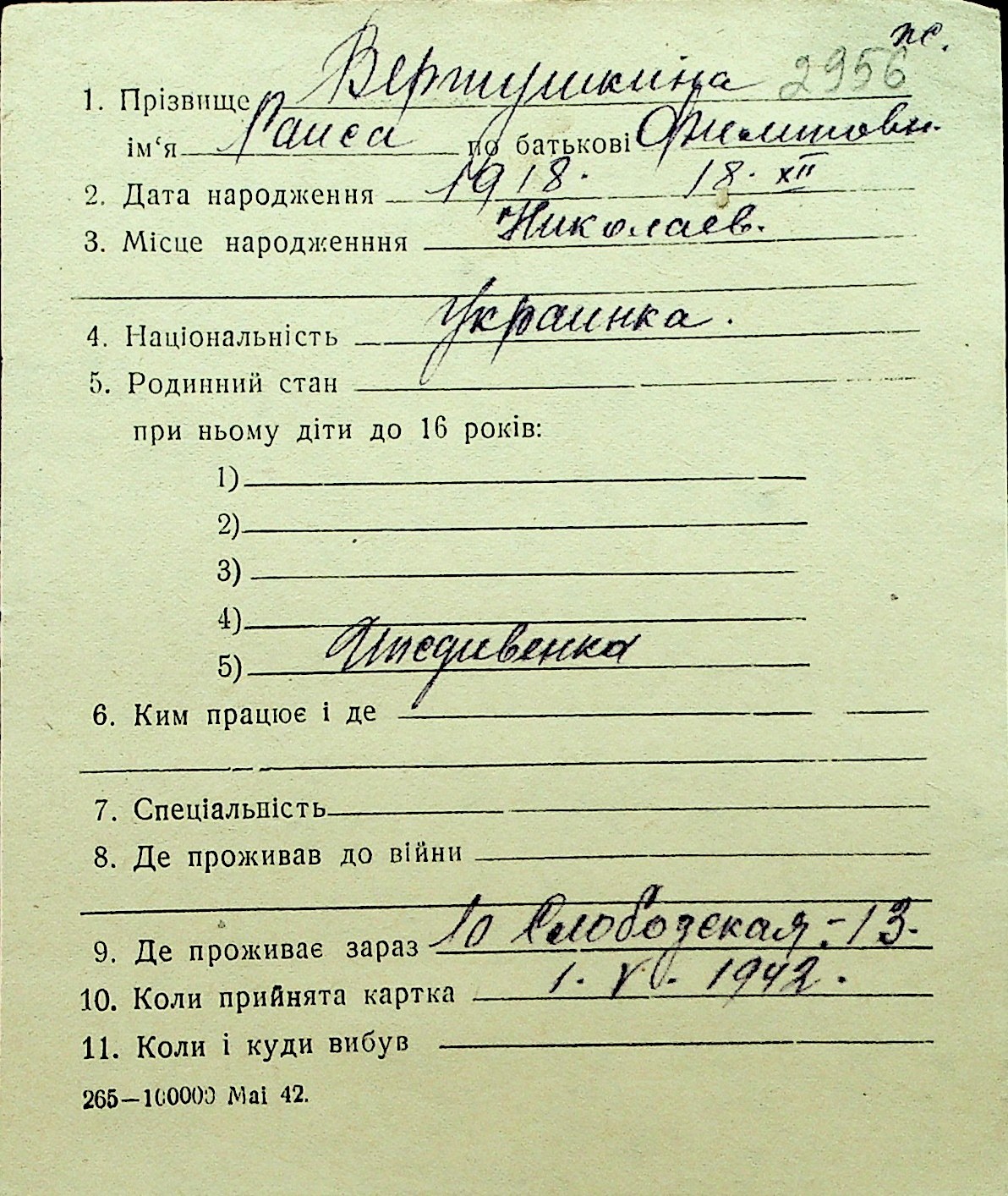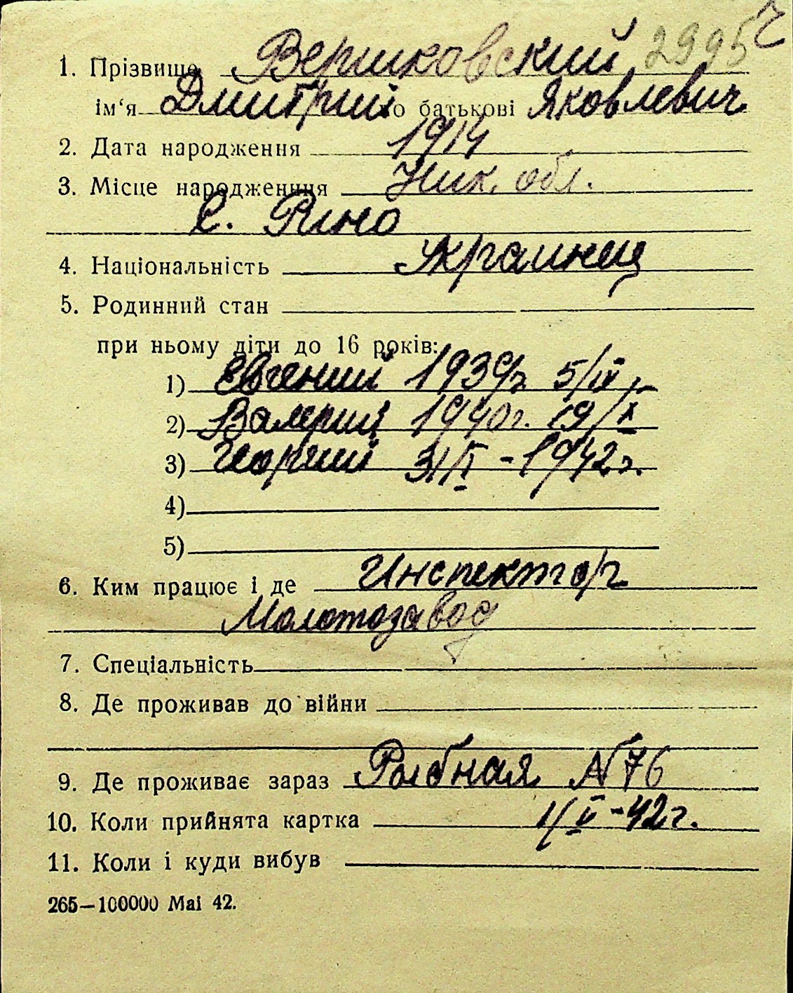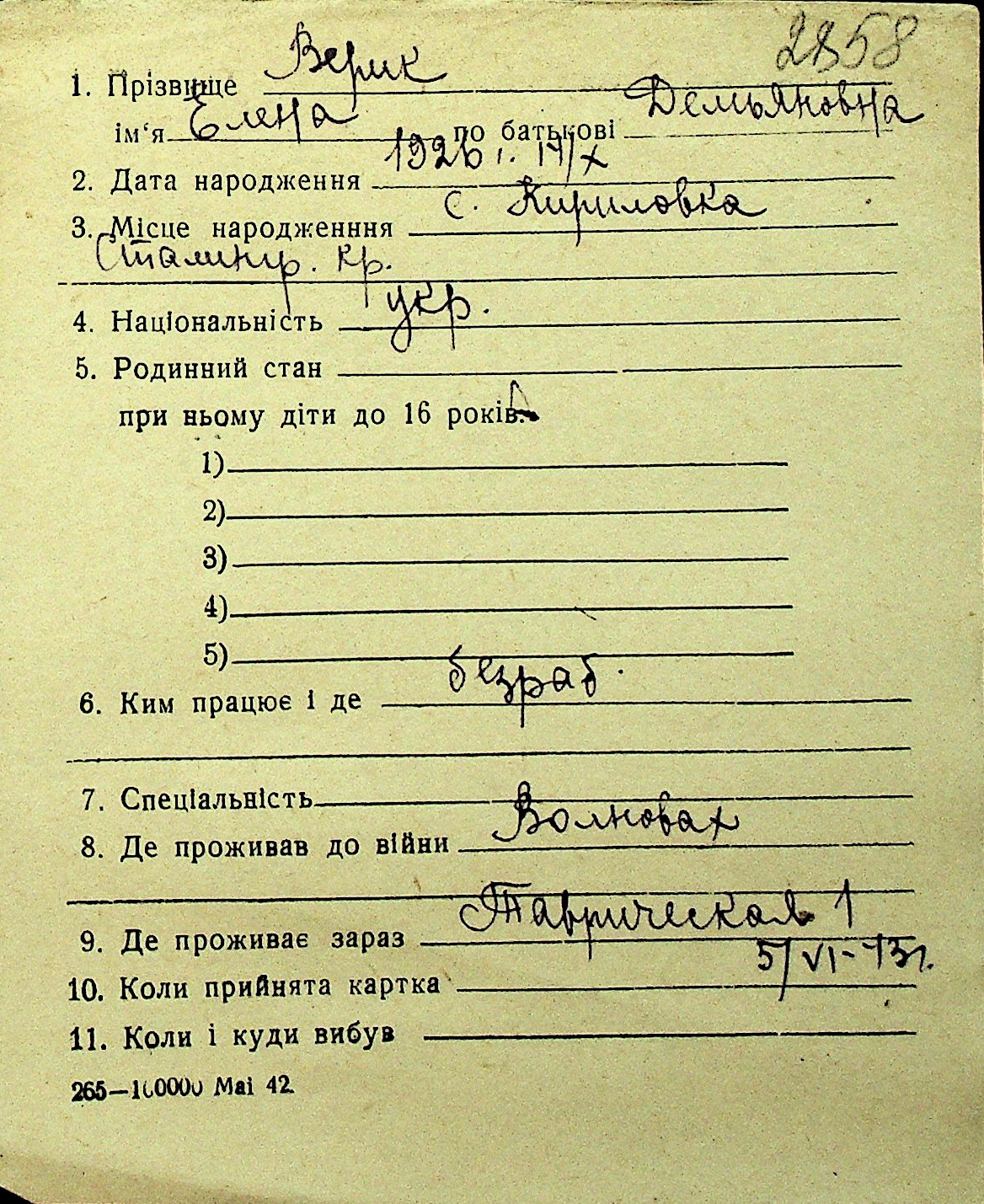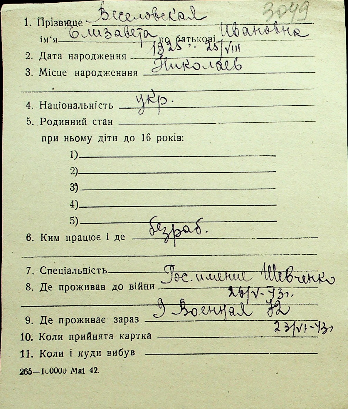 • • Перелік карток до фонду № Н-1016