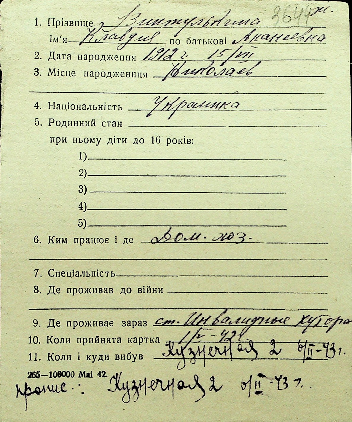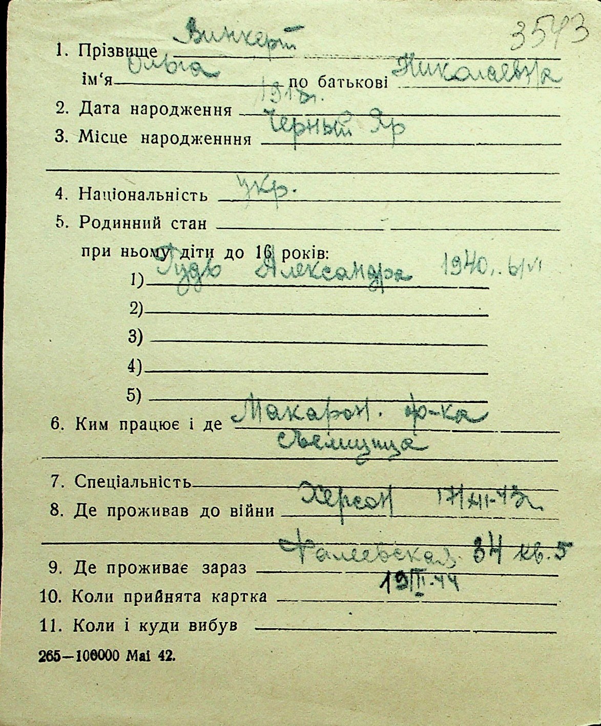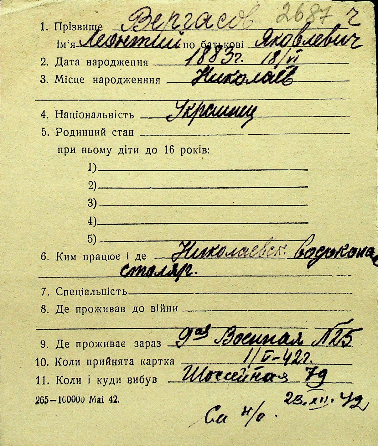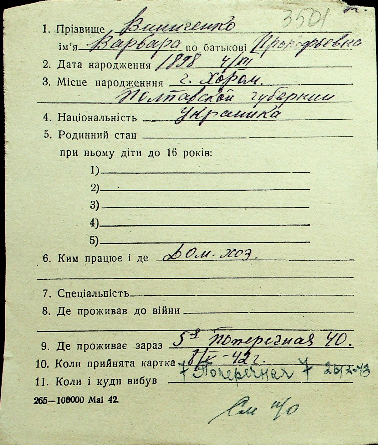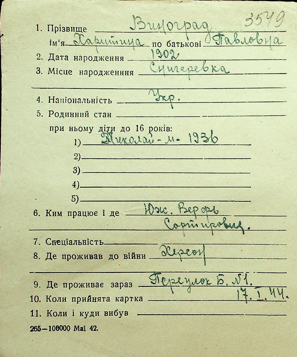 • • Перелік карток до фонду № Н-1016