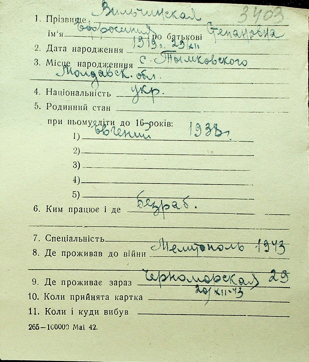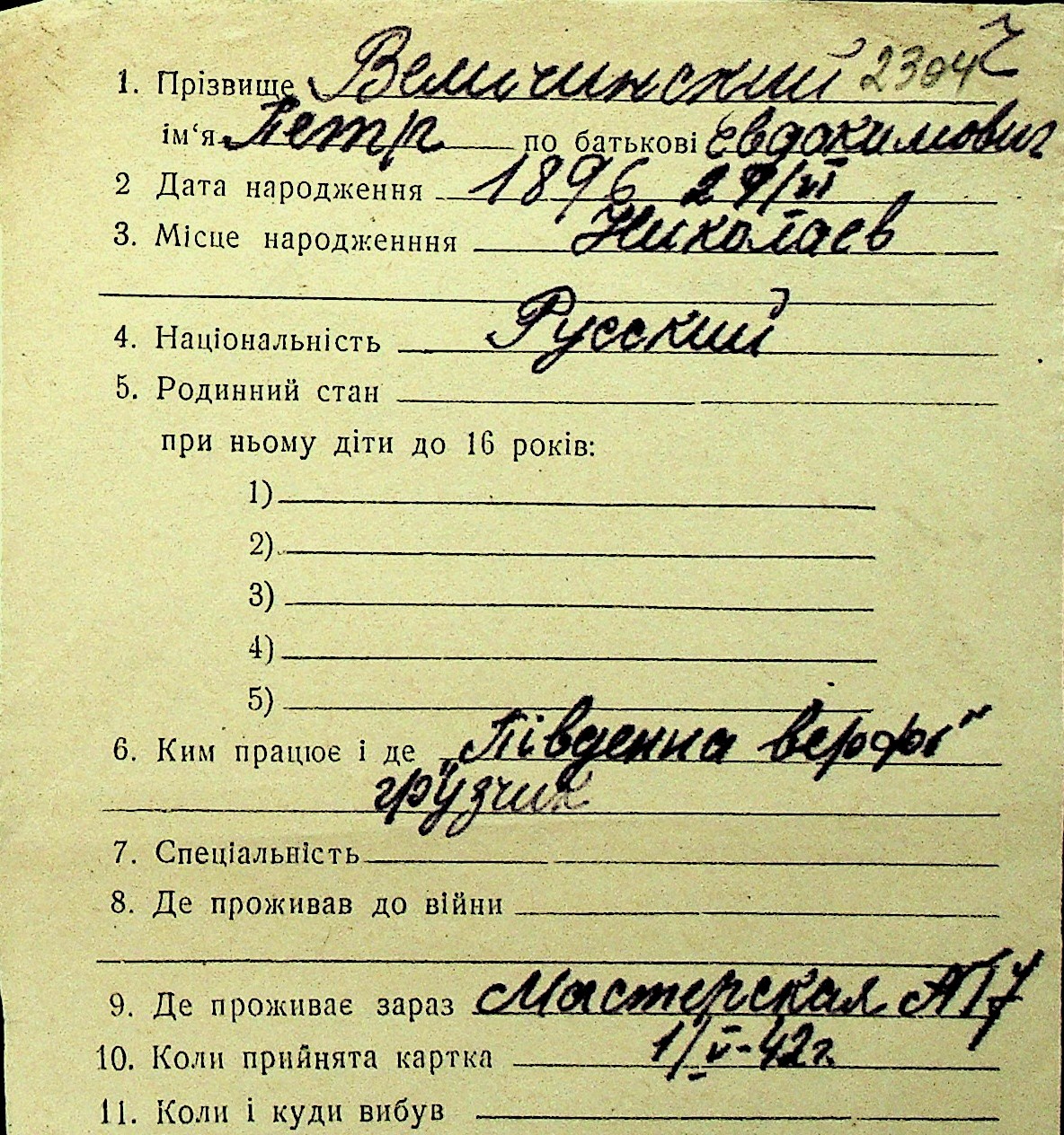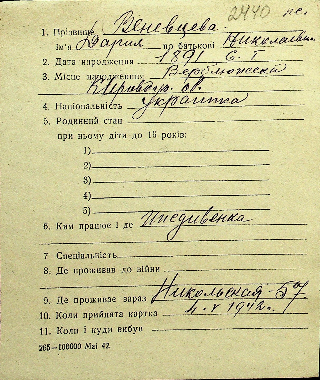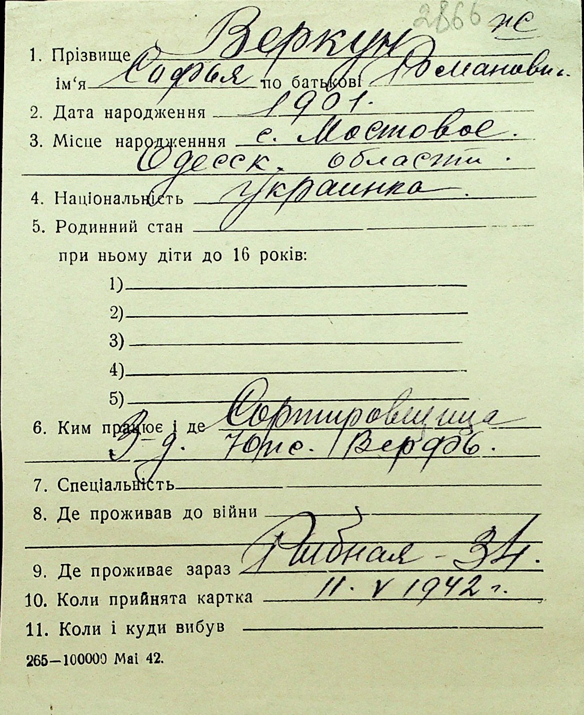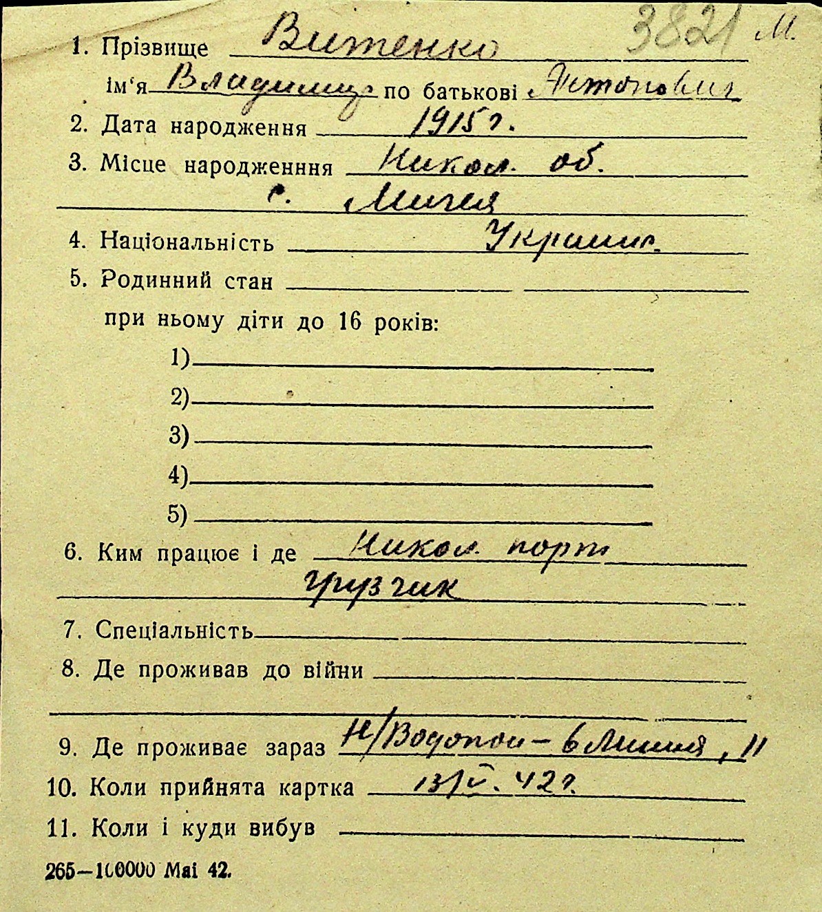 • • Перелік карток до фонду № Н-1016