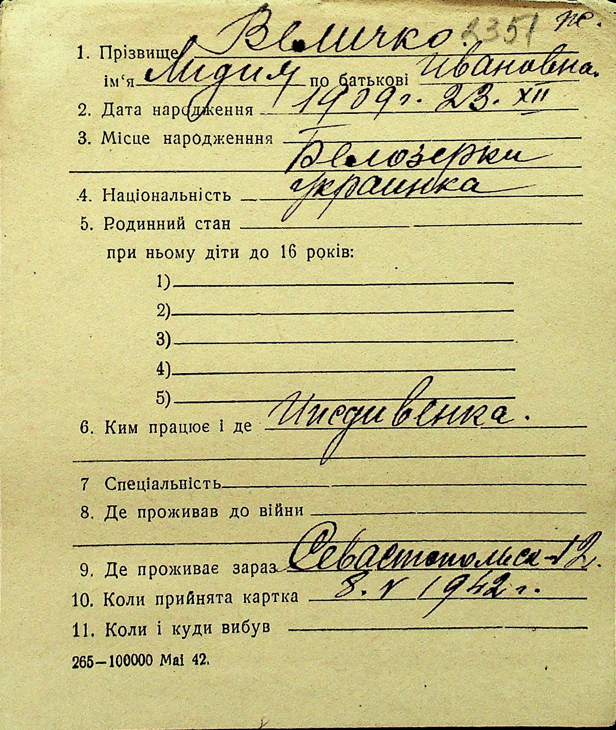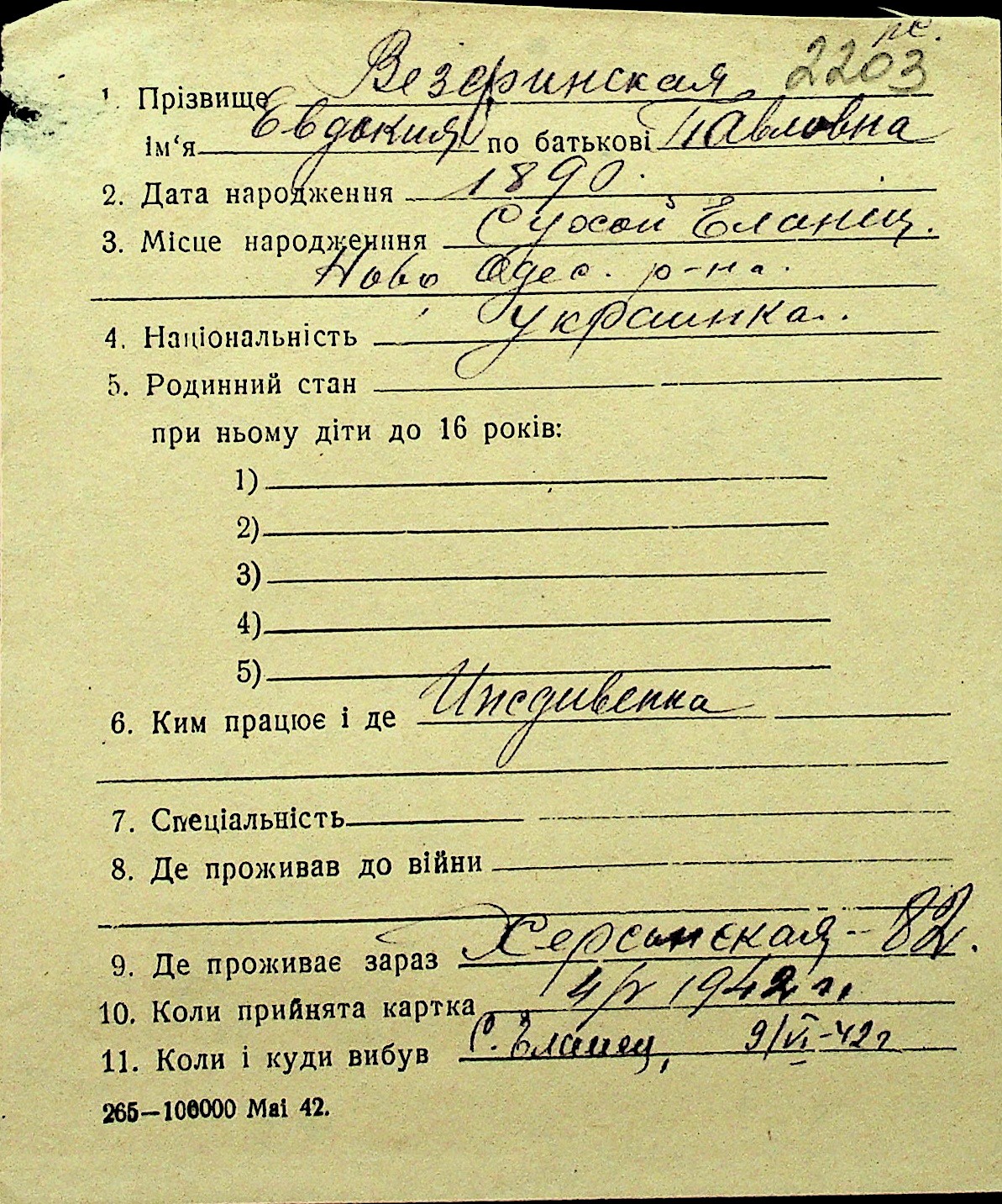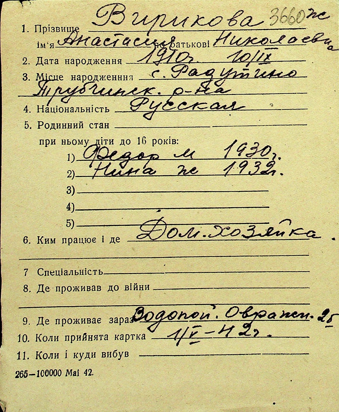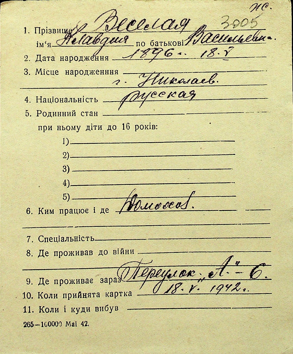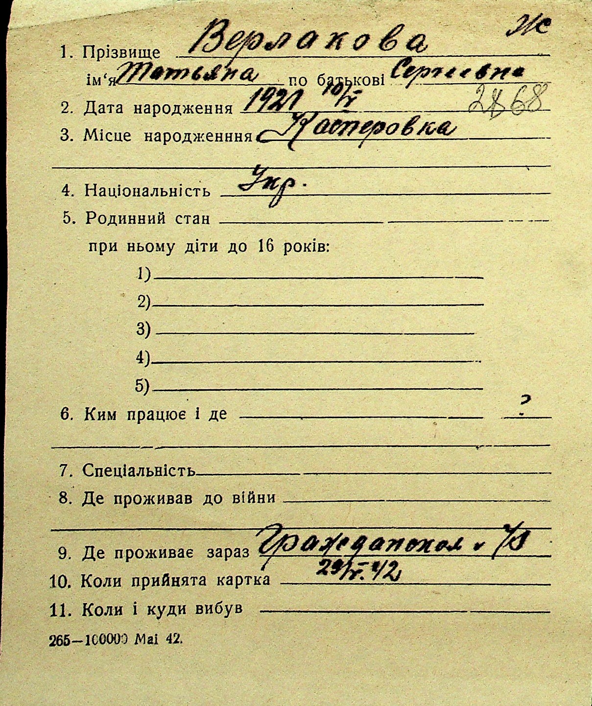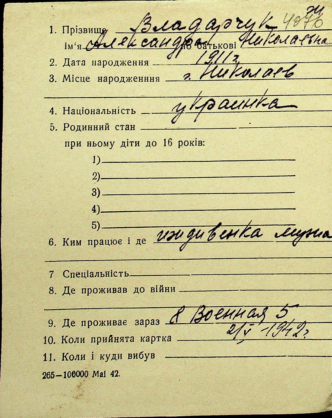 • • Перелік карток до фонду № Н-1016