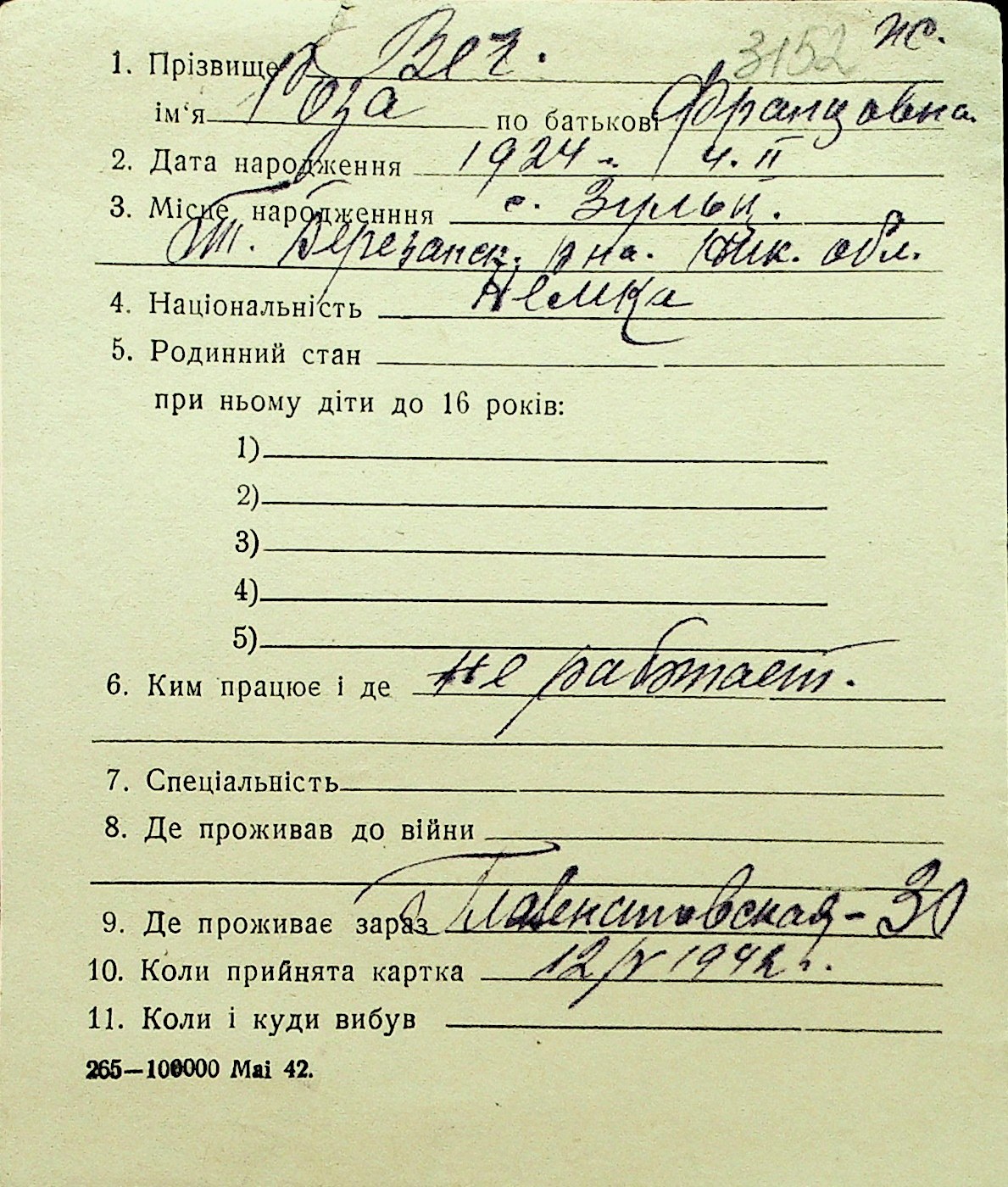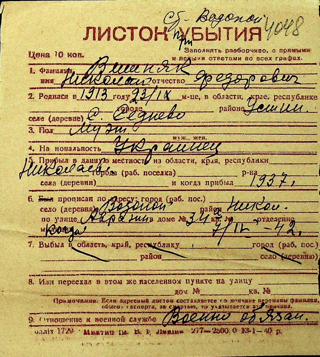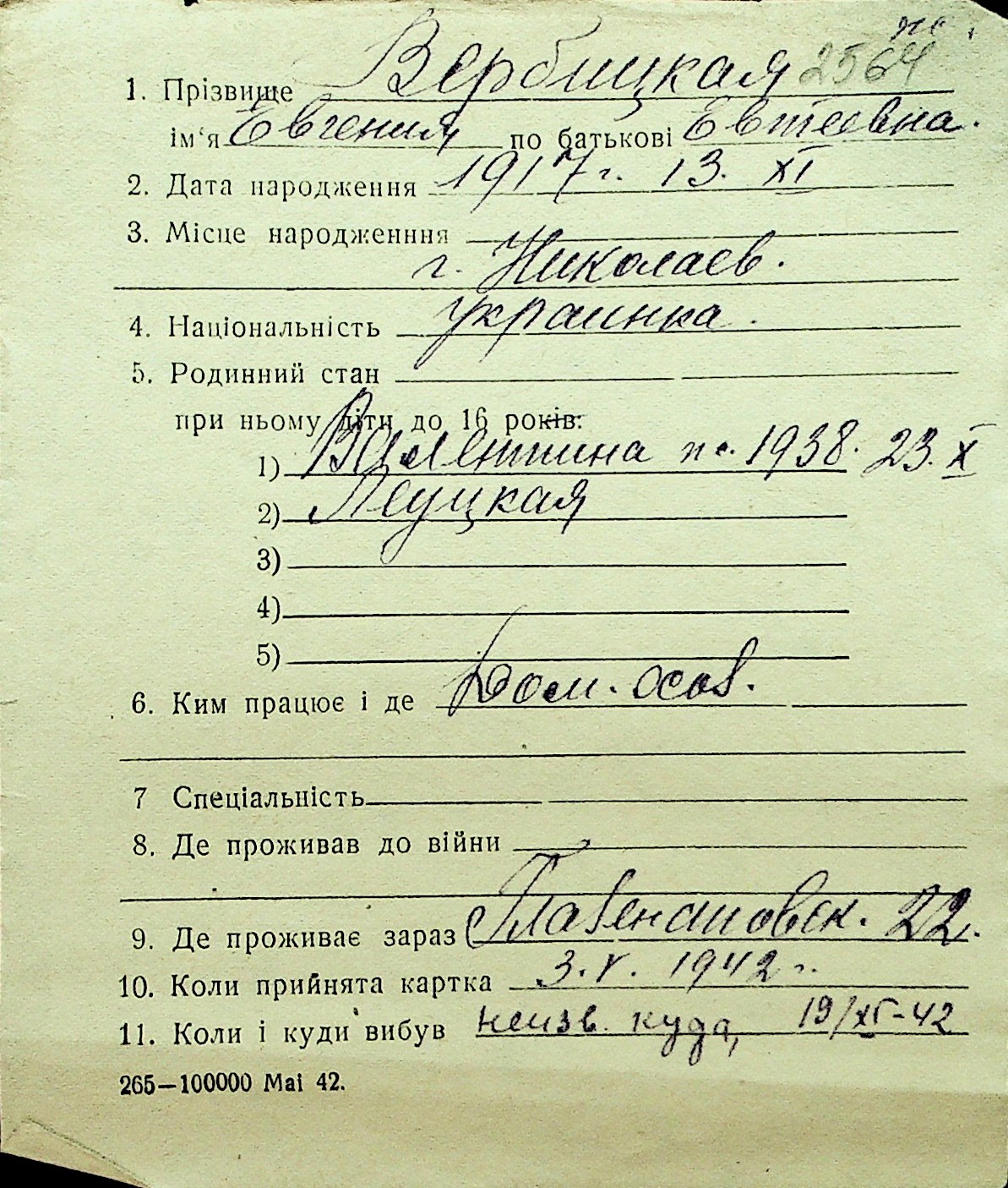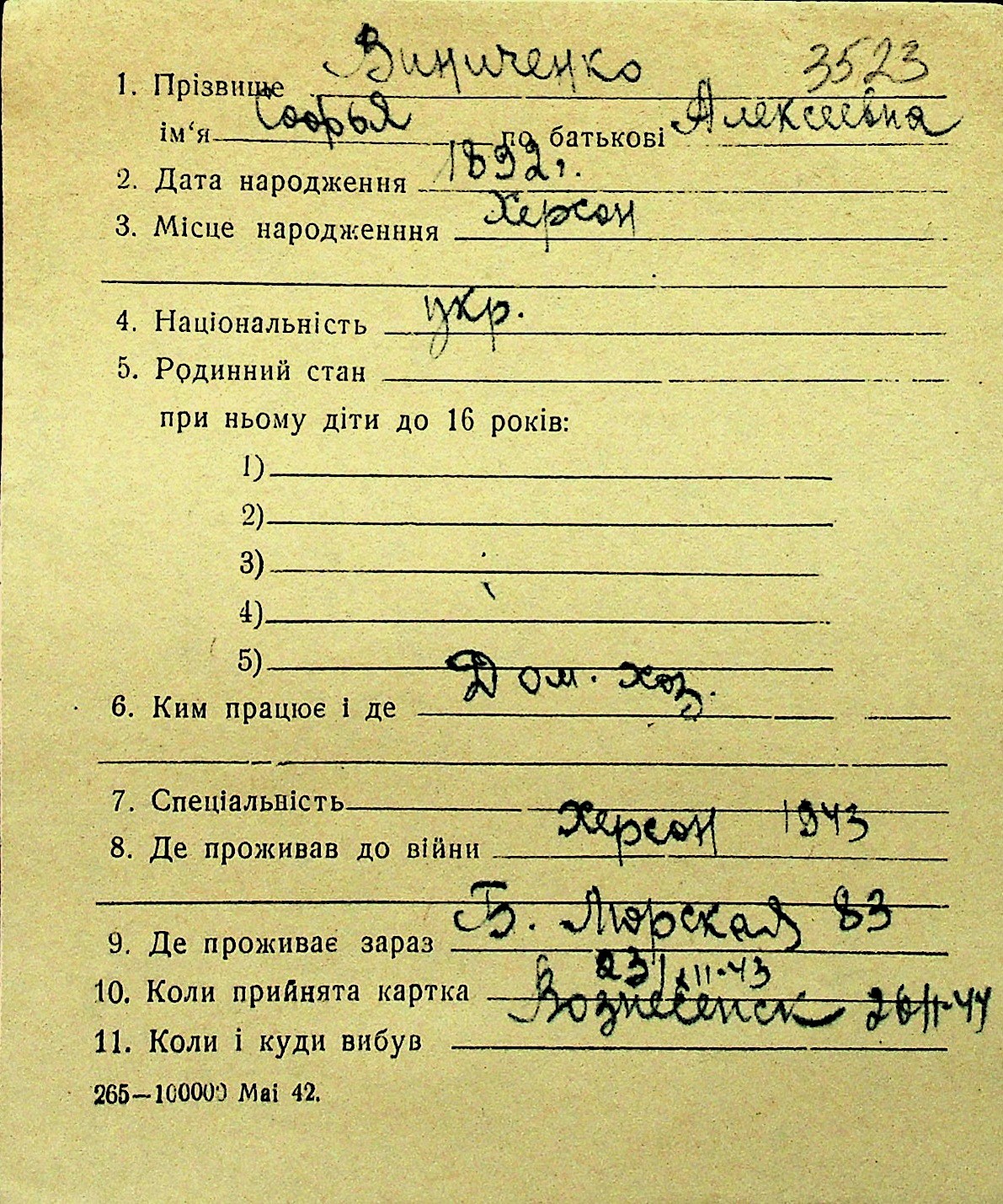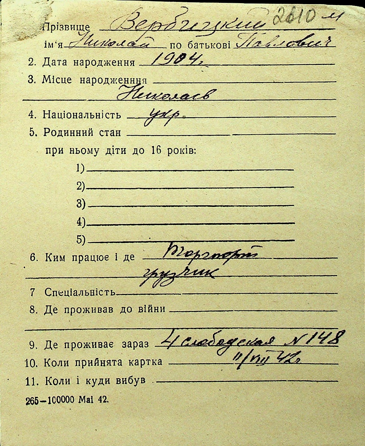 • • Перелік карток до фонду № Н-1016