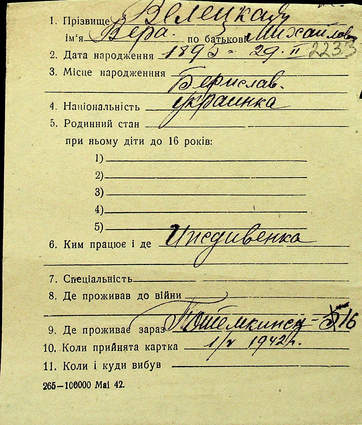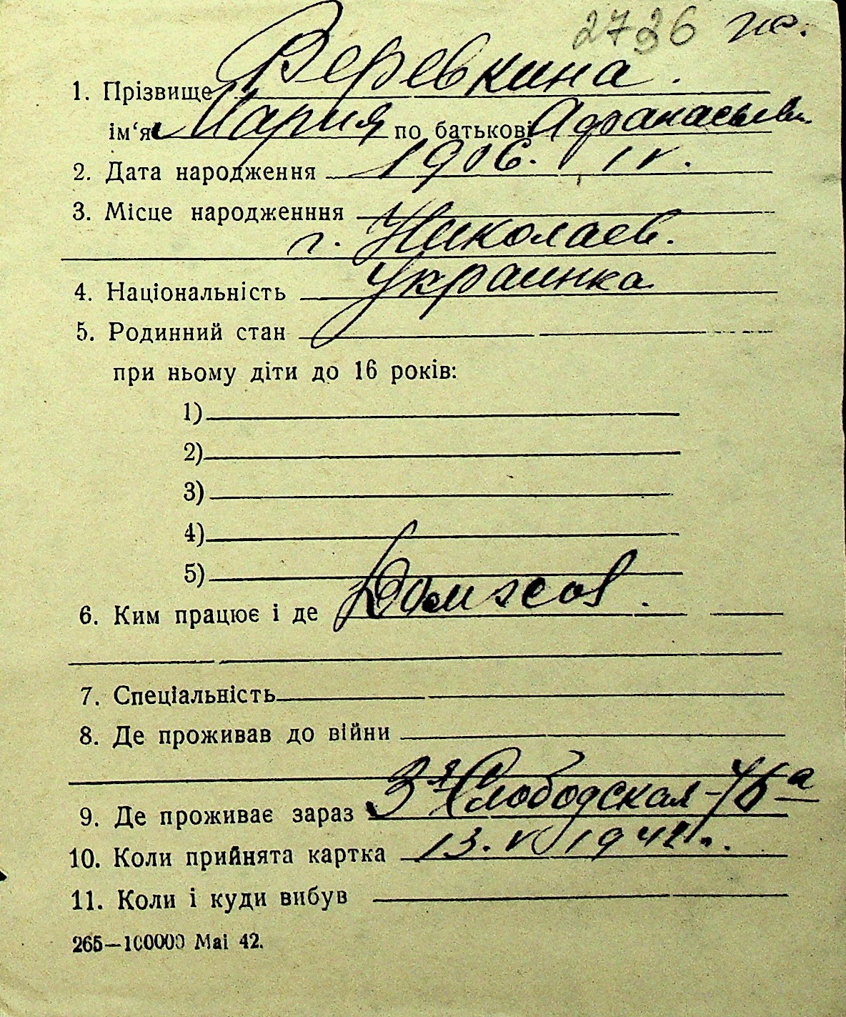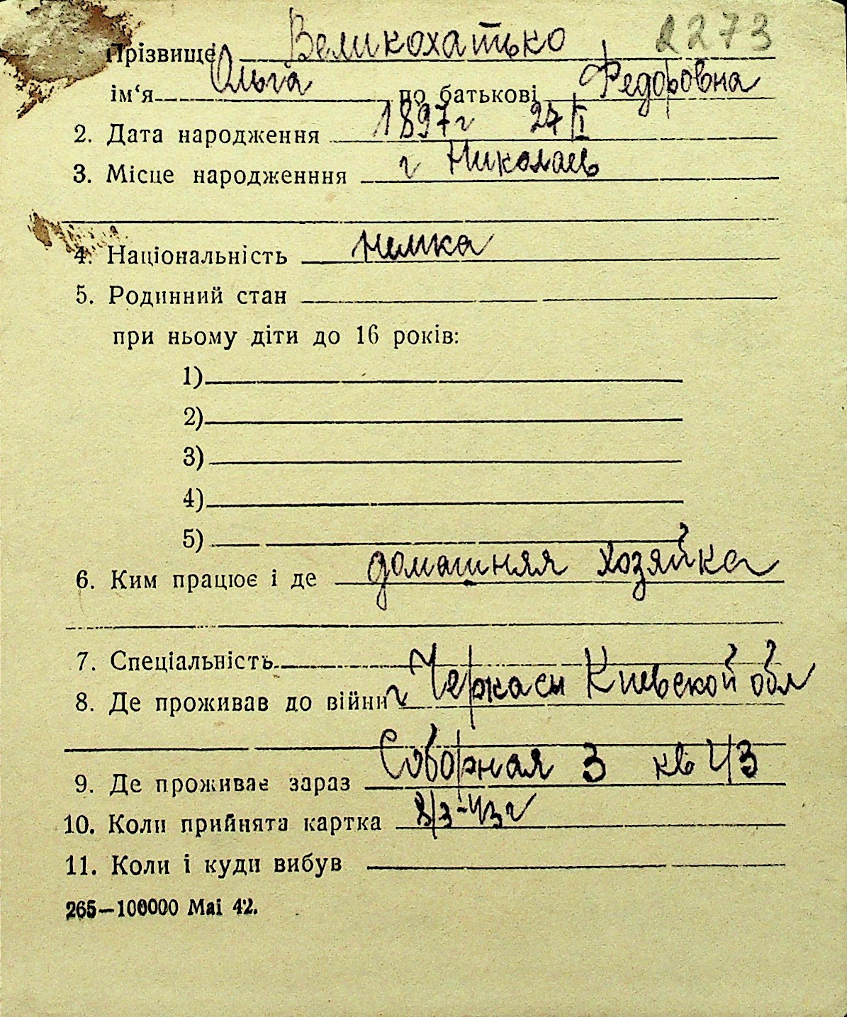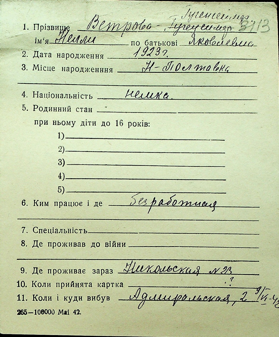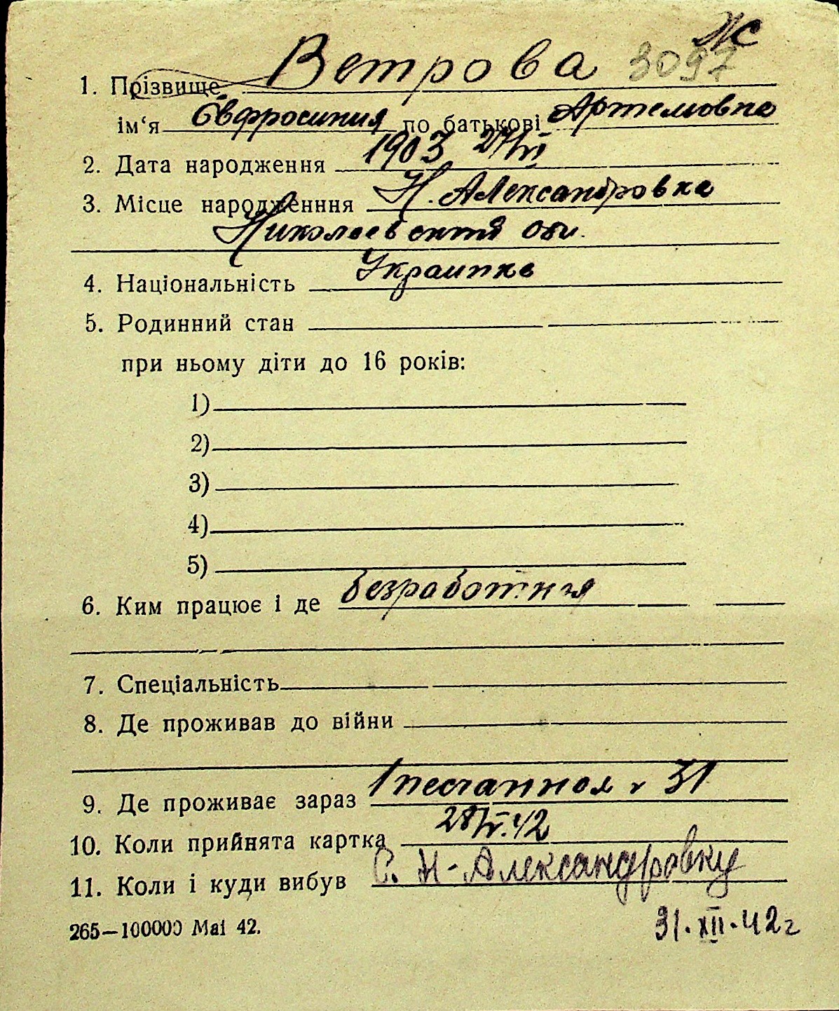 • • Перелік карток до фонду № Н-1016