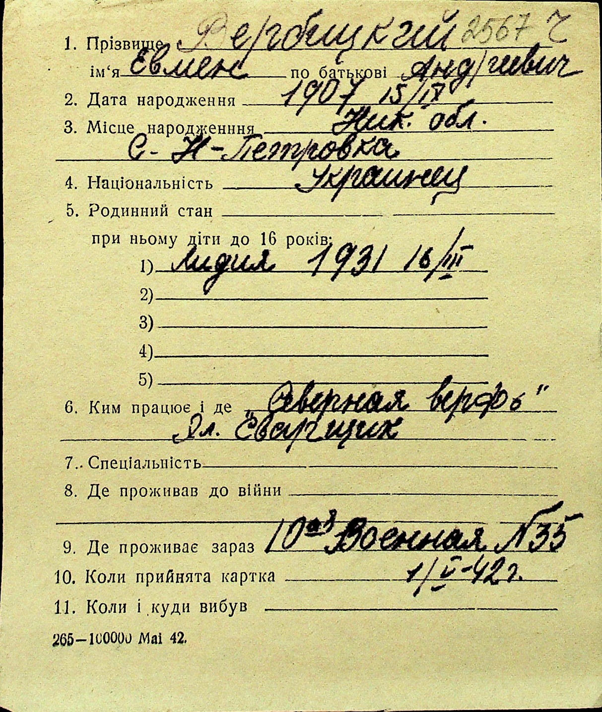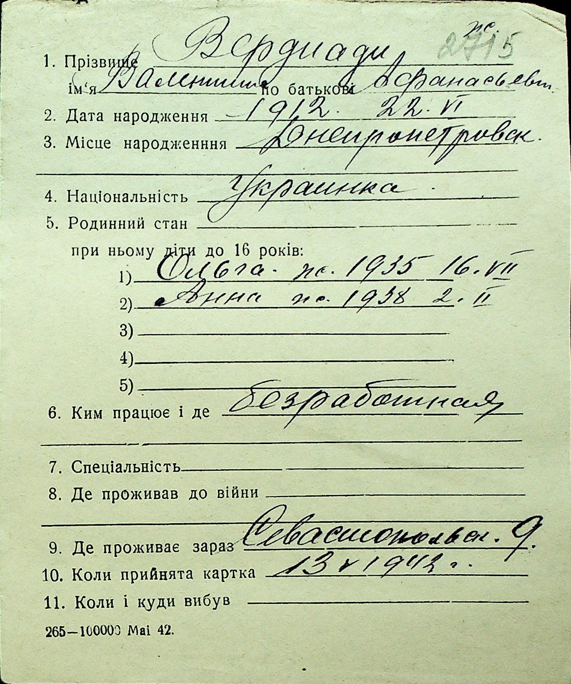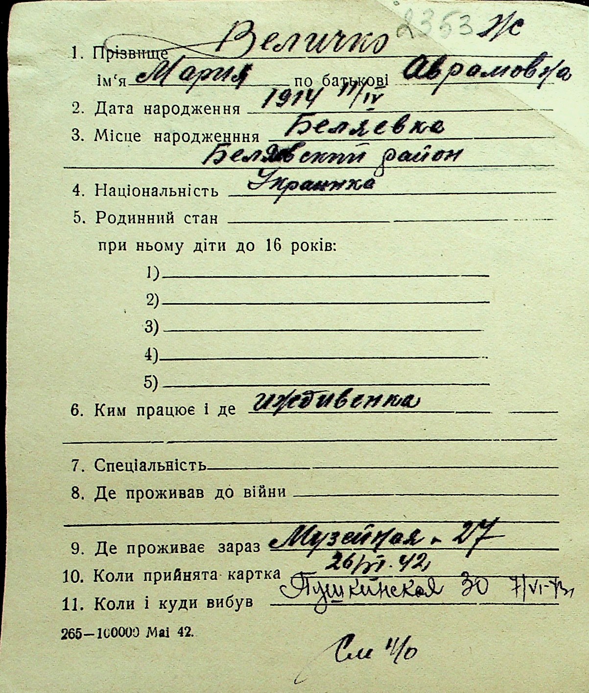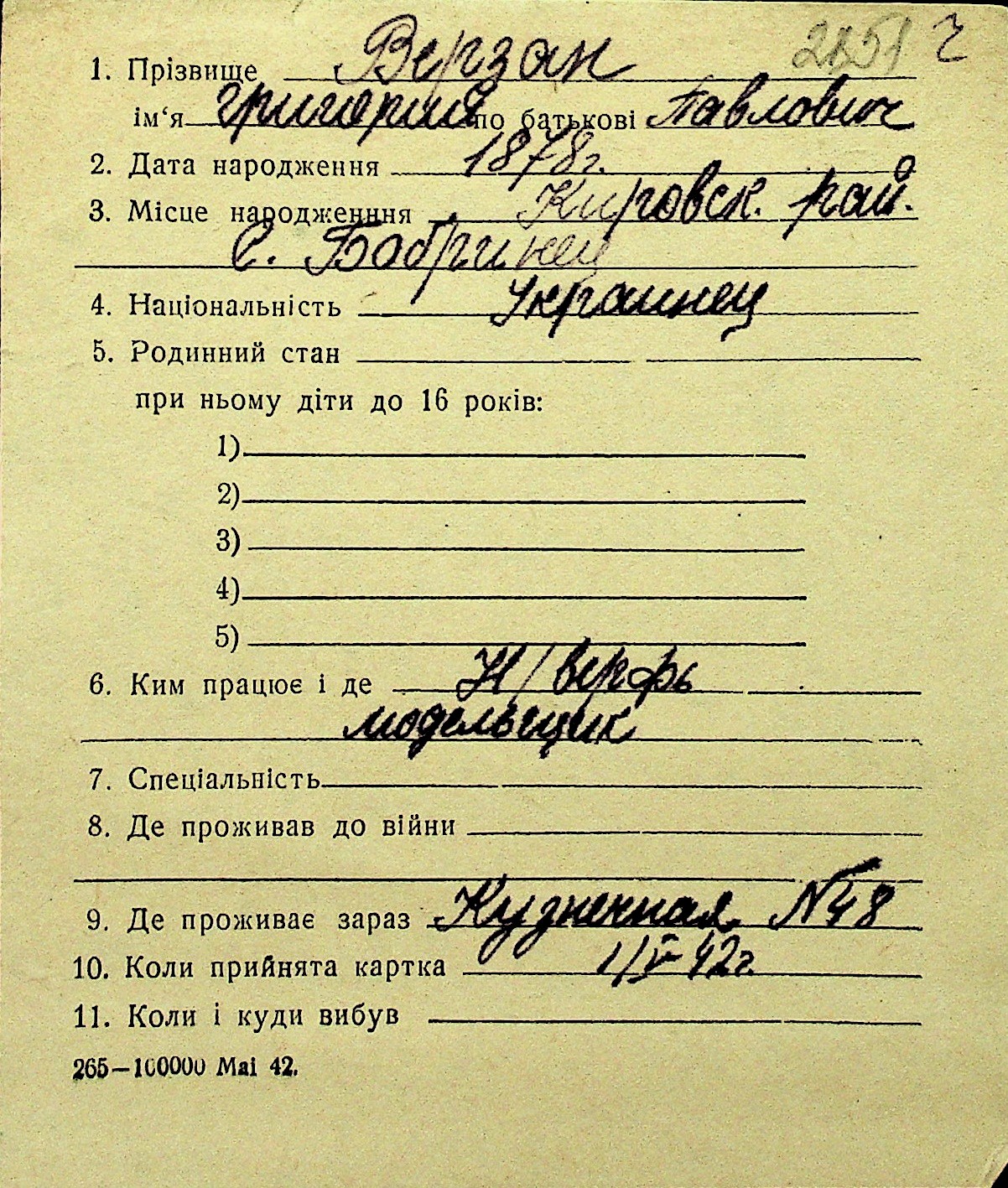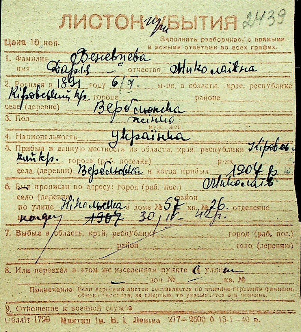 • • Перелік карток до фонду № Н-1016