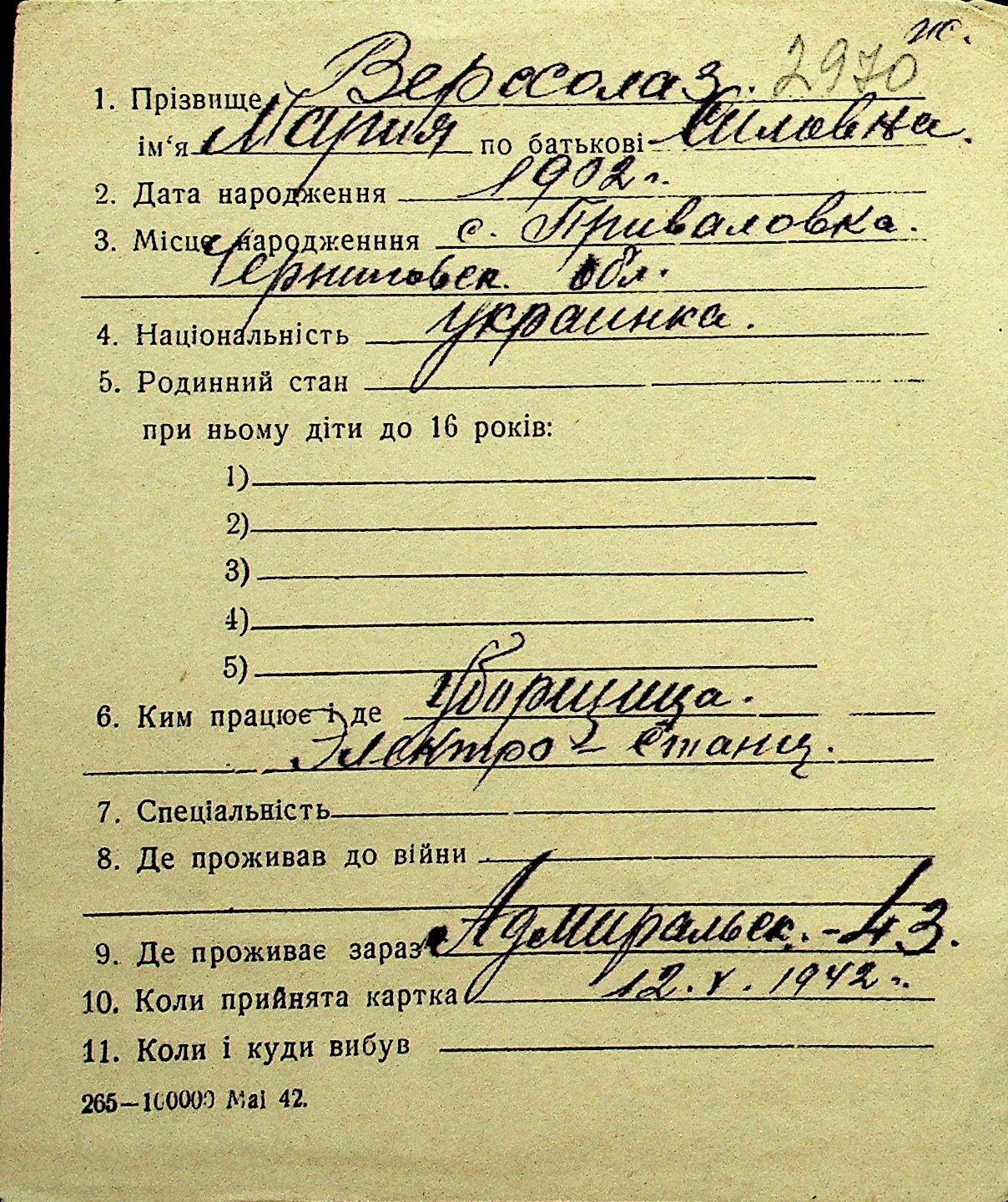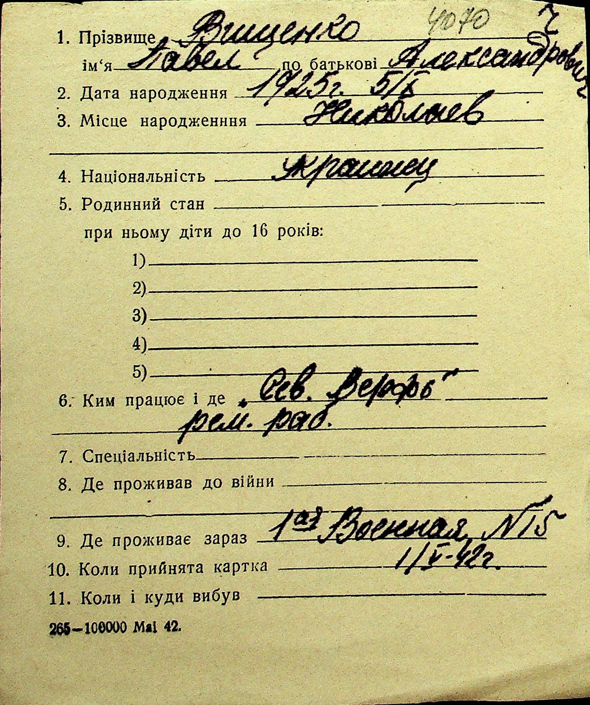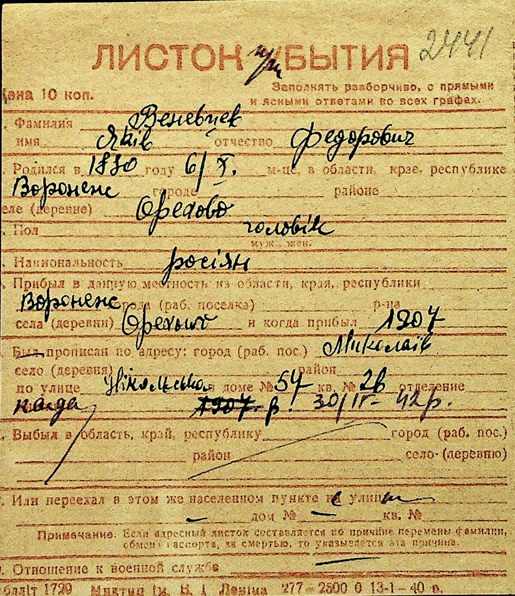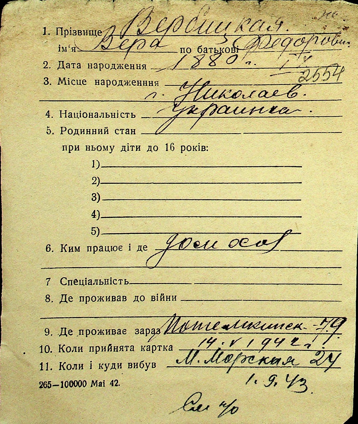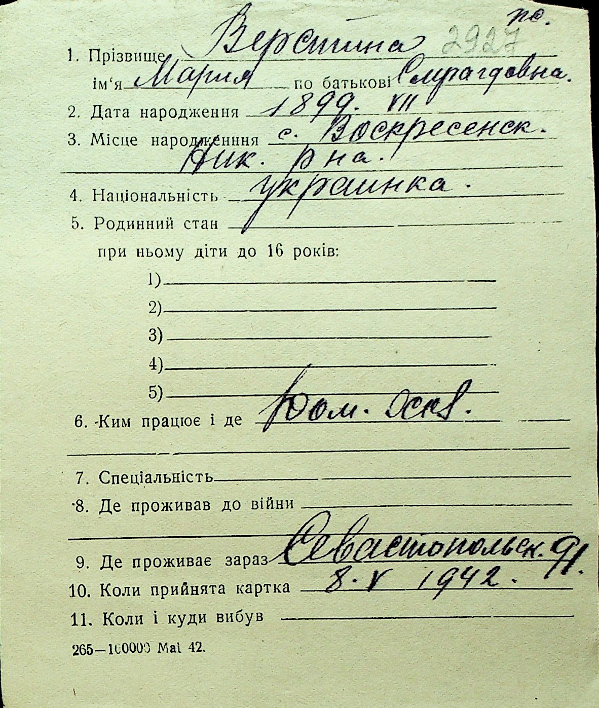 • • Перелік карток до фонду № Н-1016