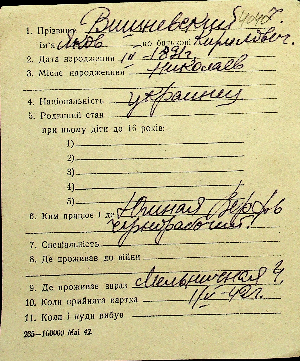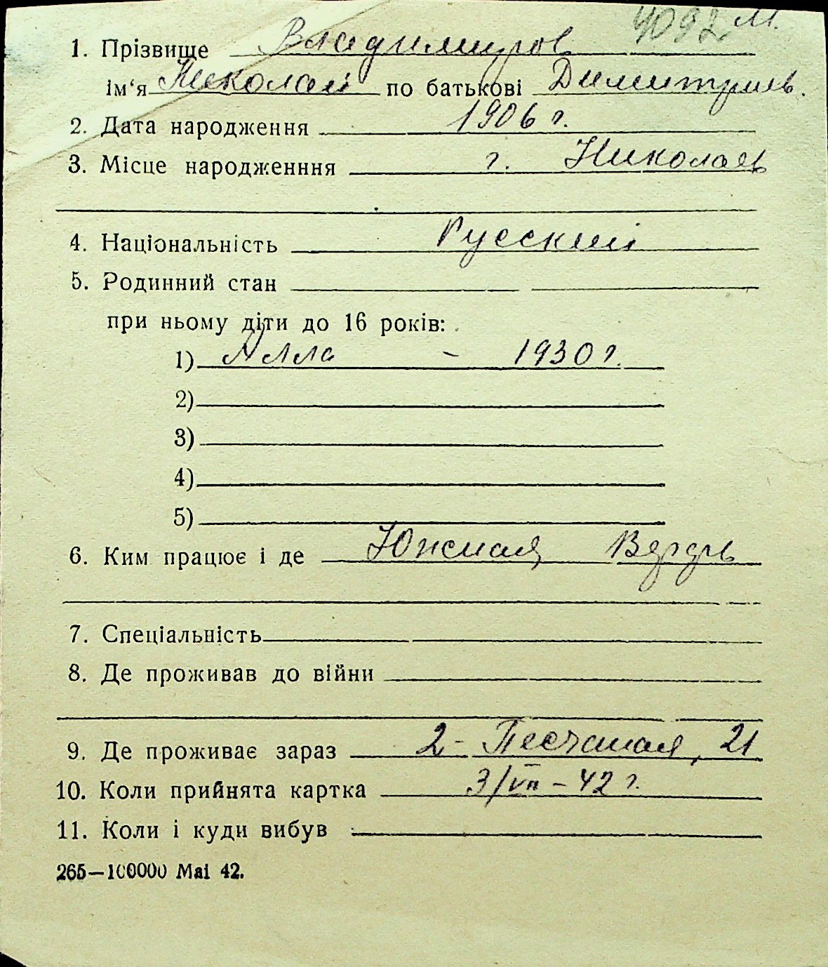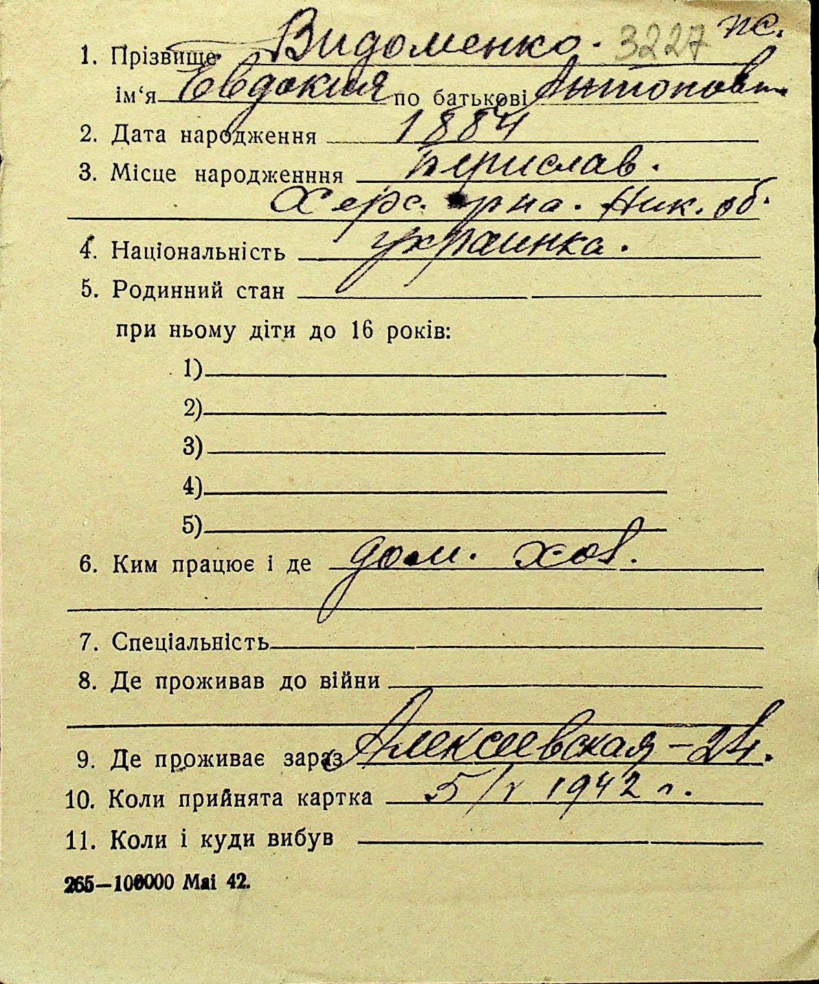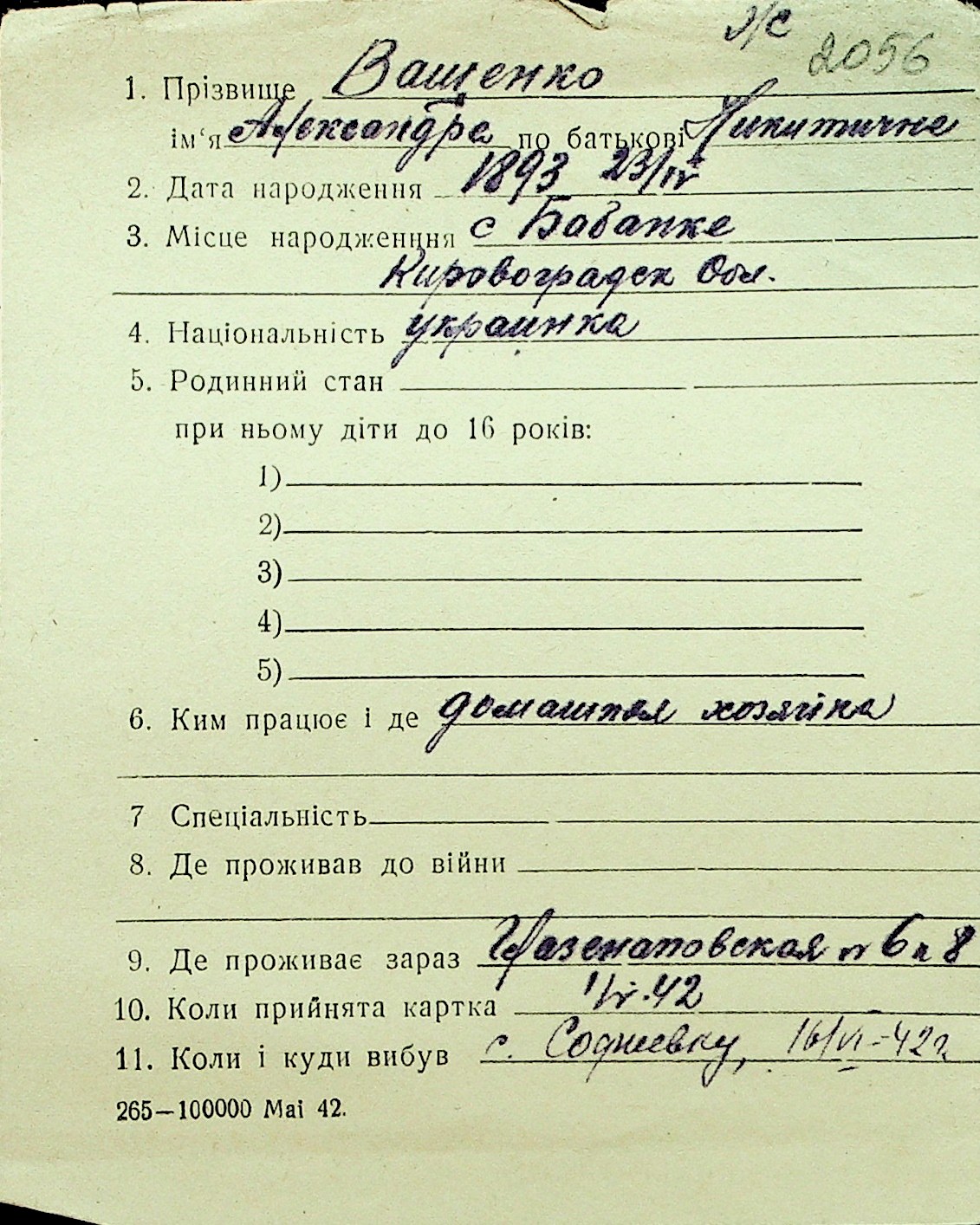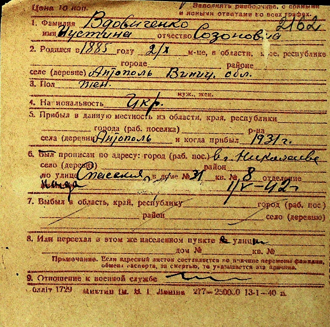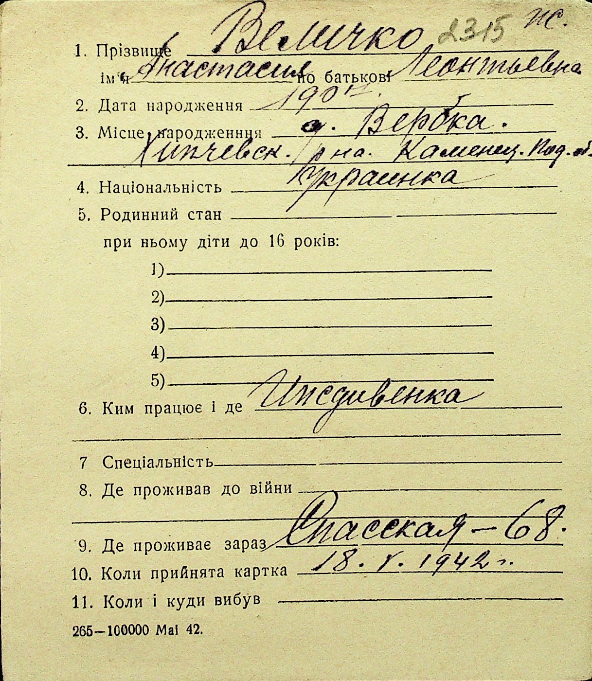 • • Перелік карток до фонду № Н-1016