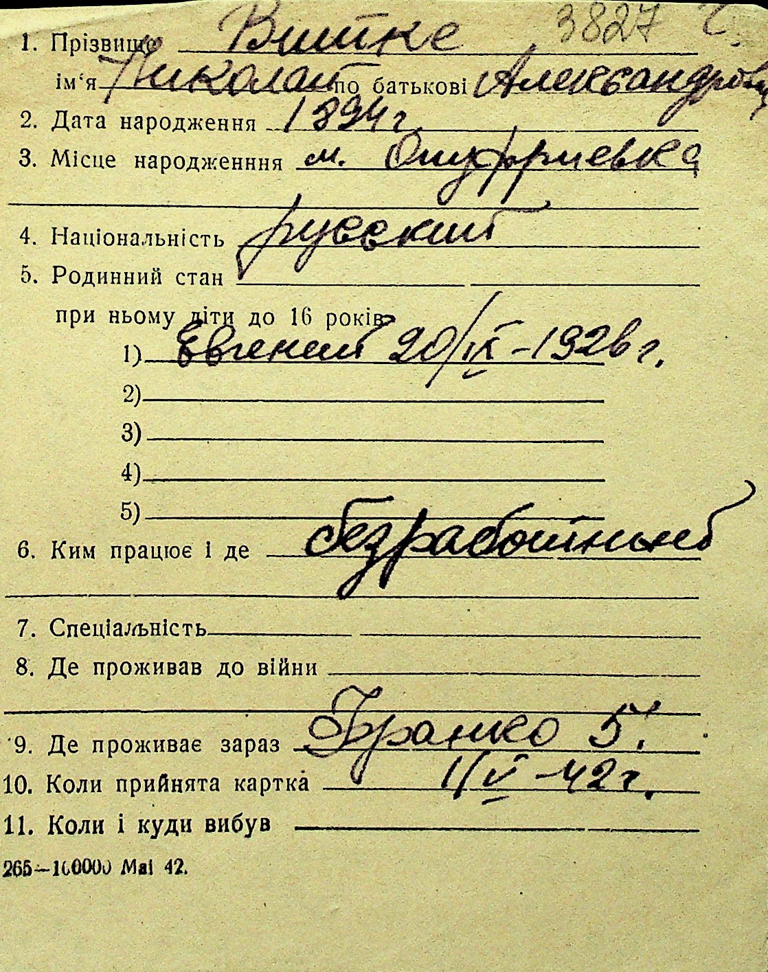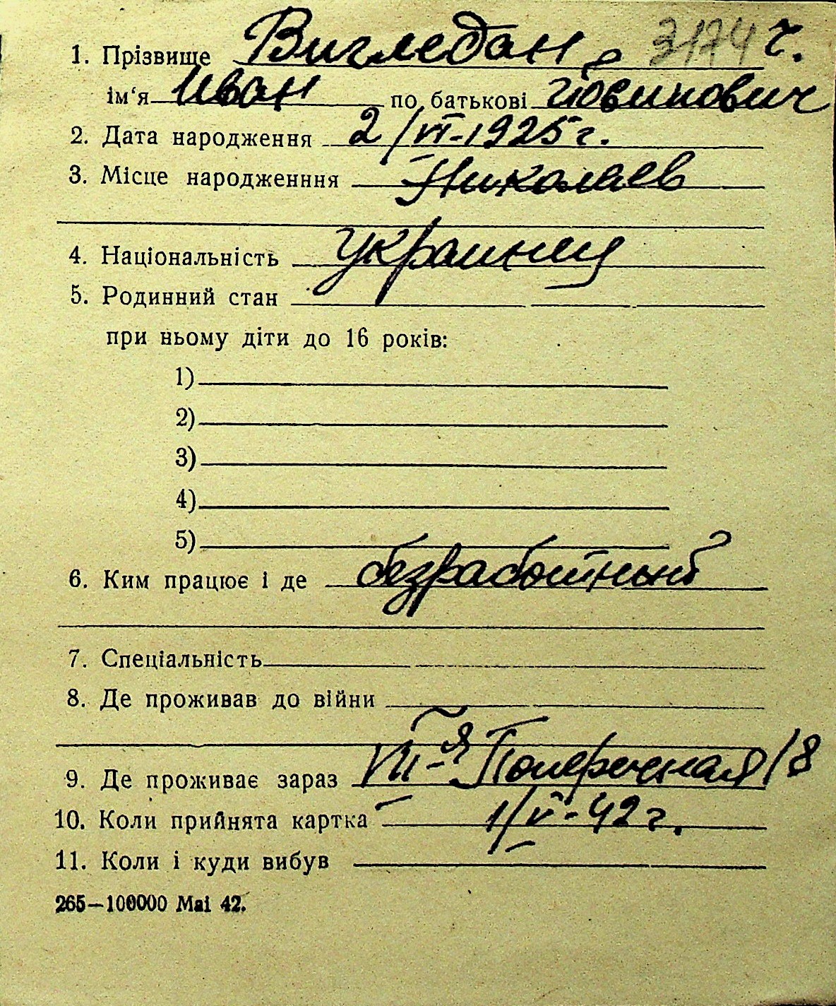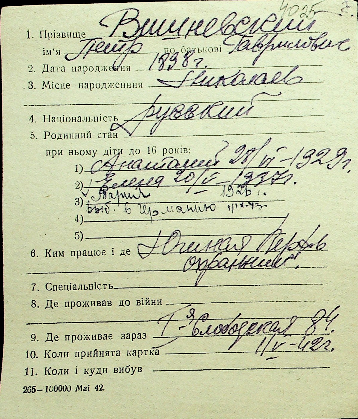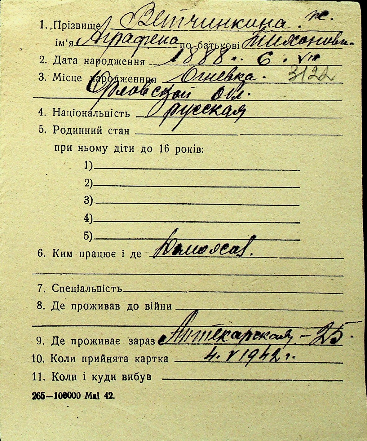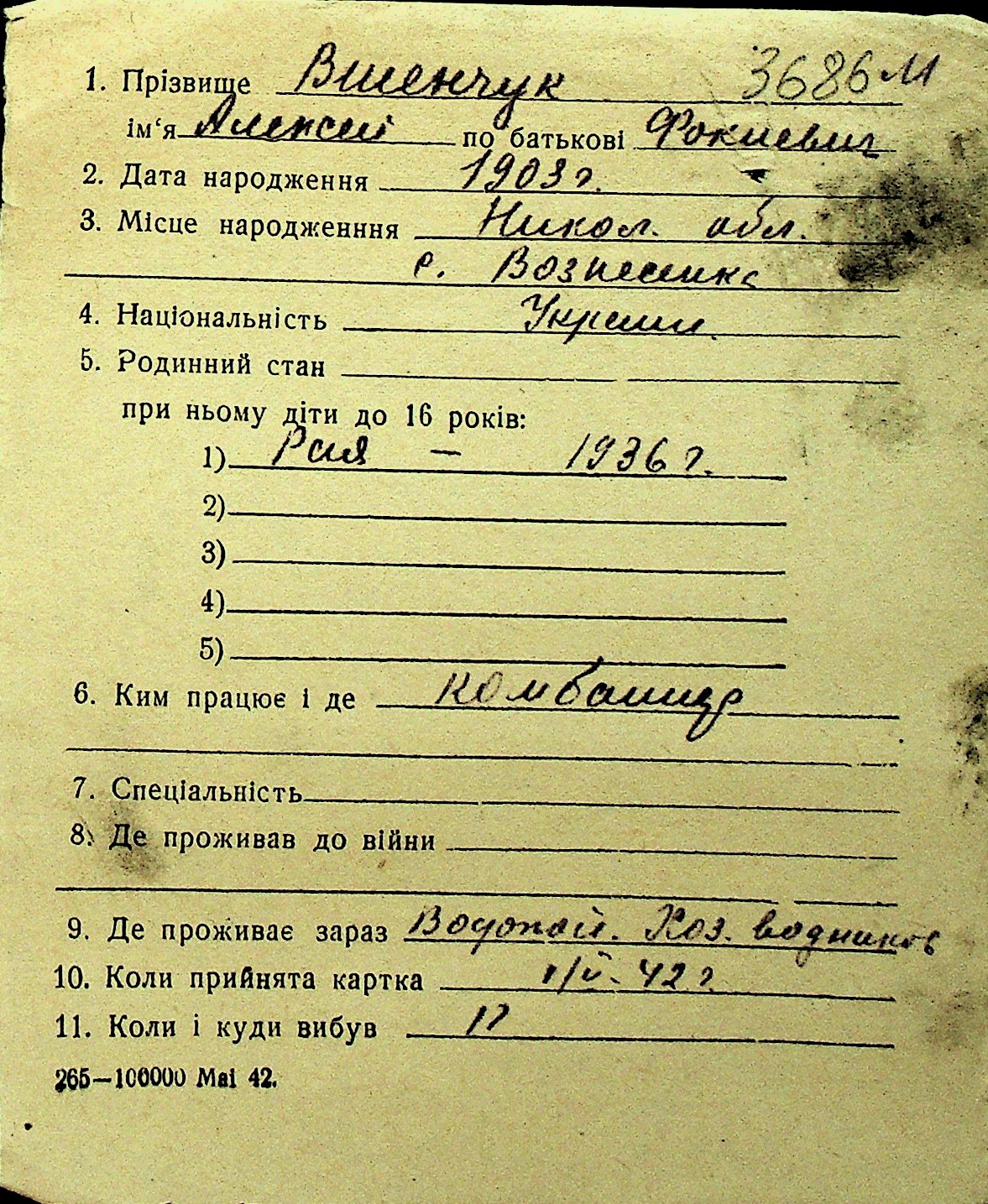 • • Перелік карток до фонду № Н-1016