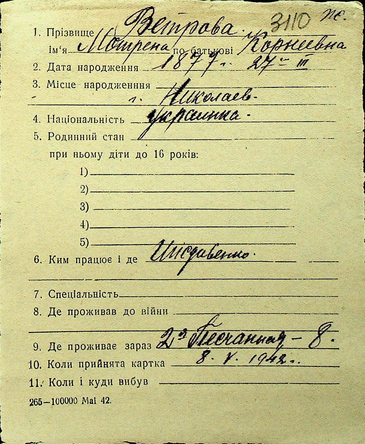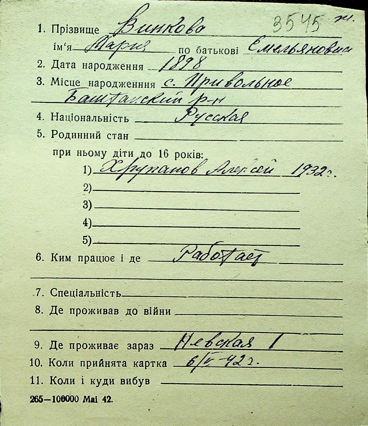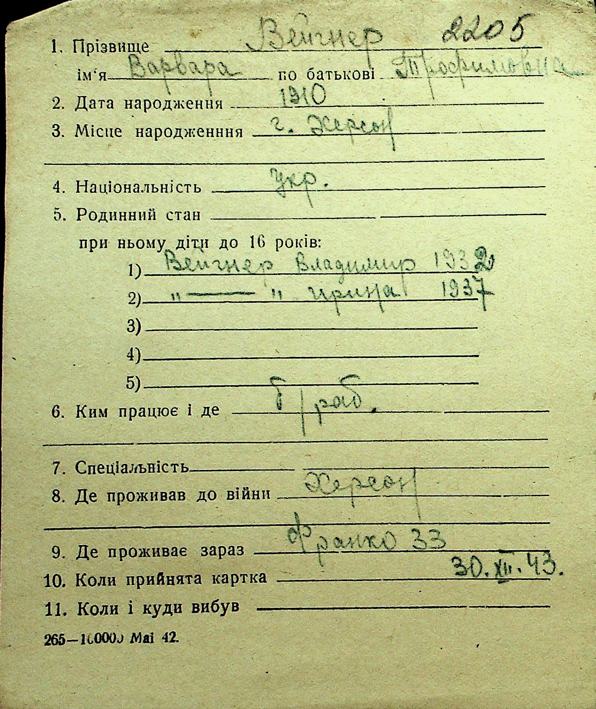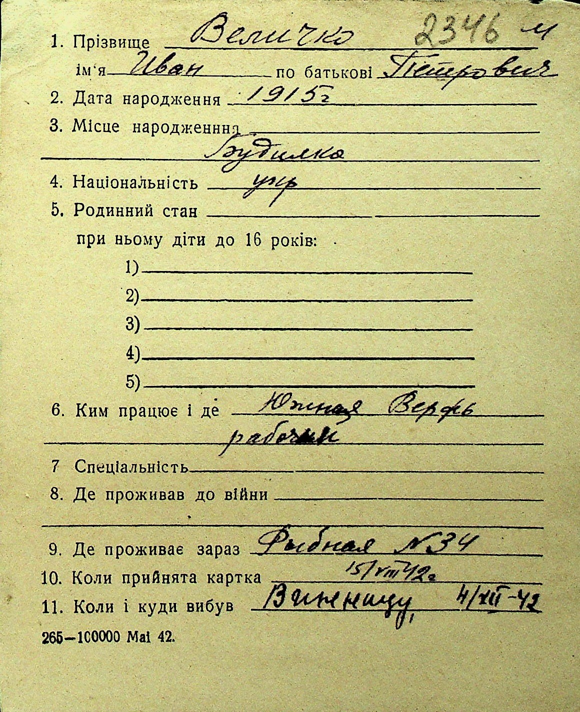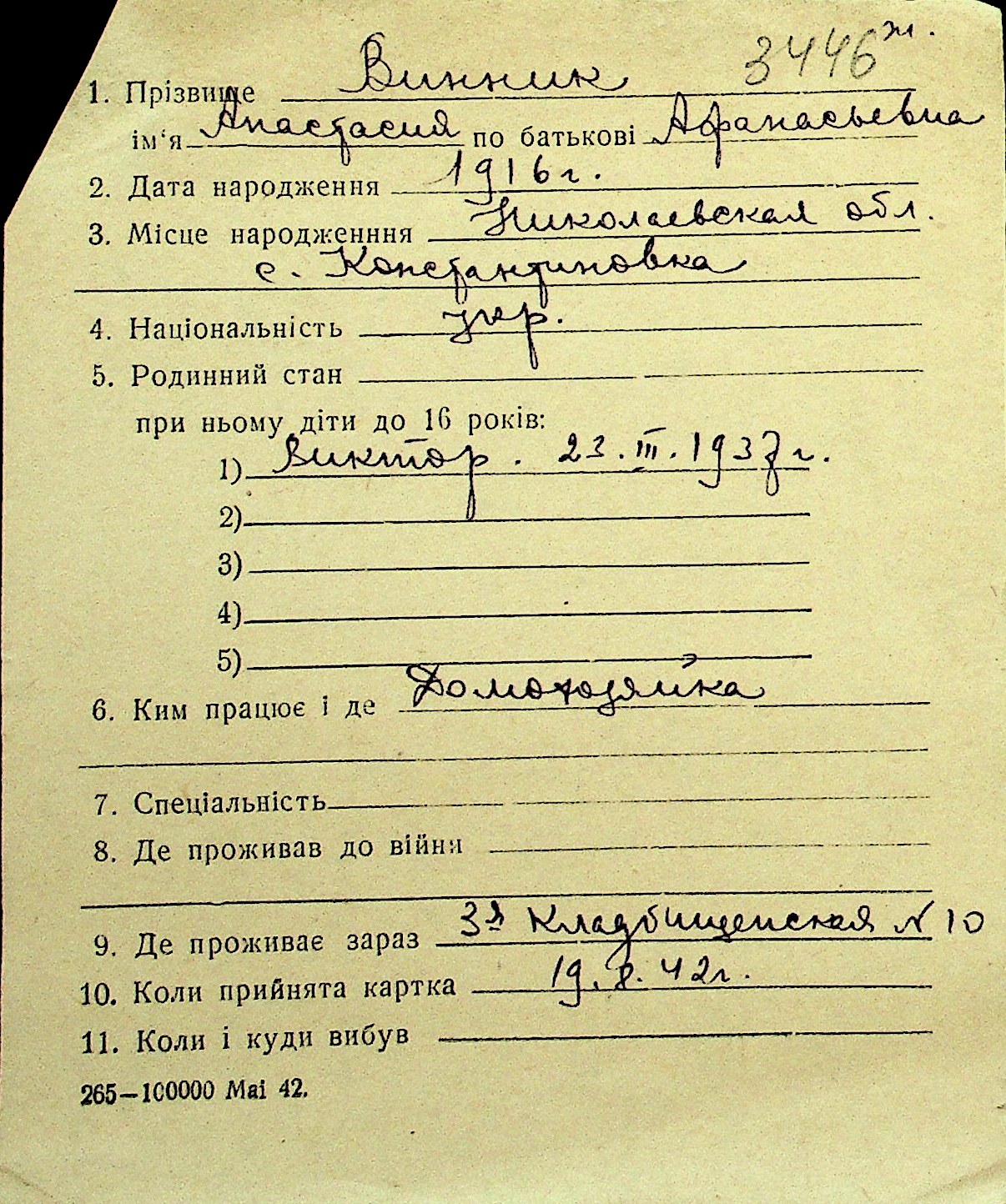 • • Перелік карток до фонду № Н-1016