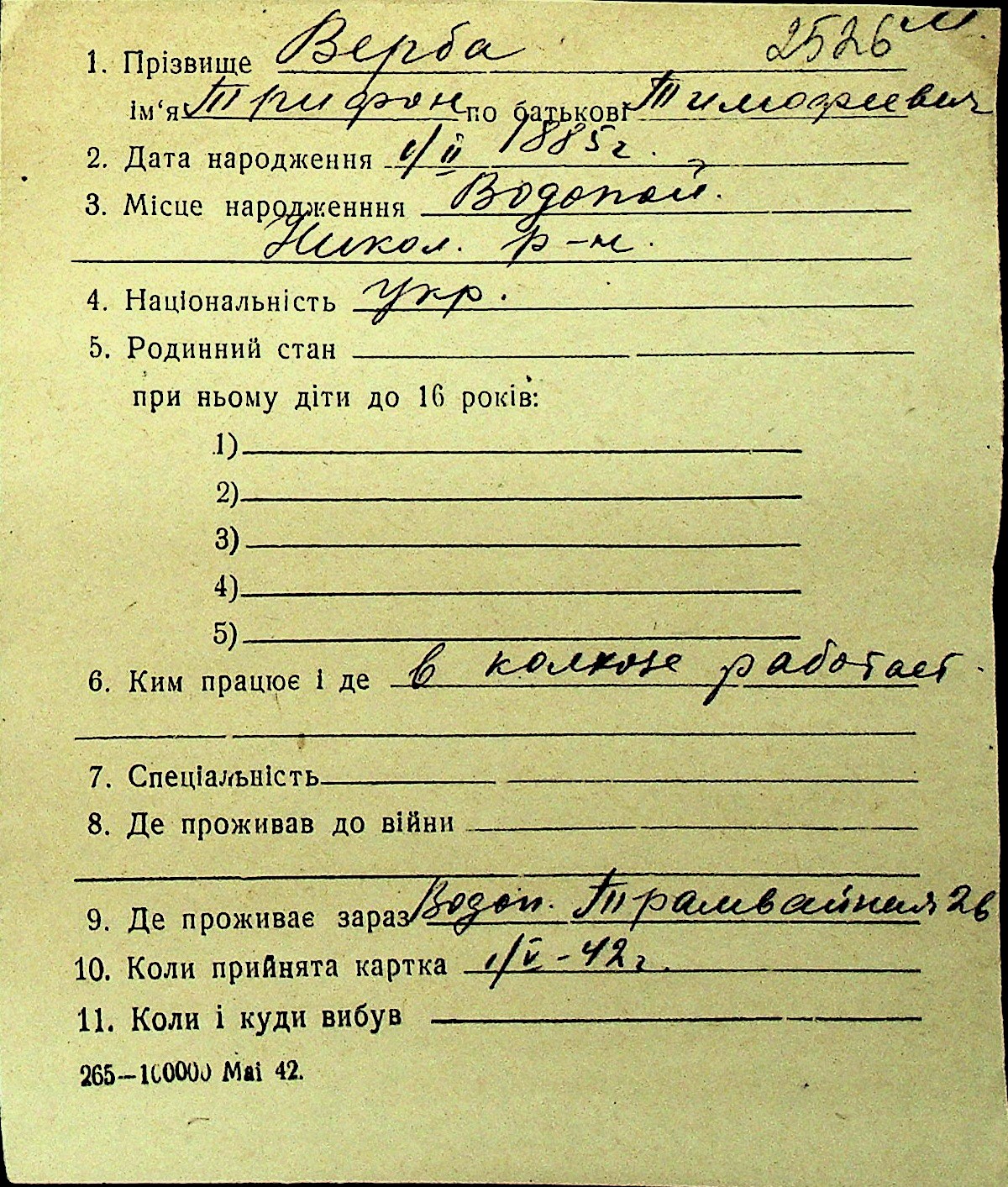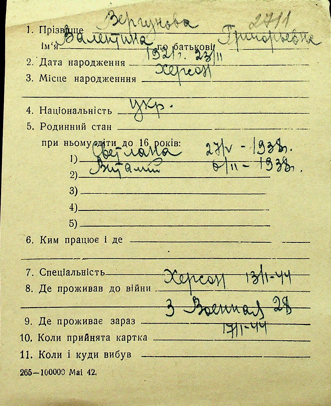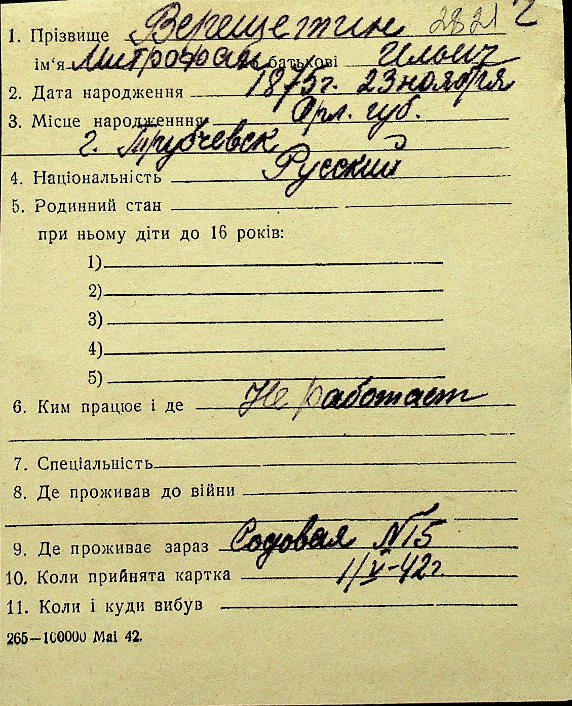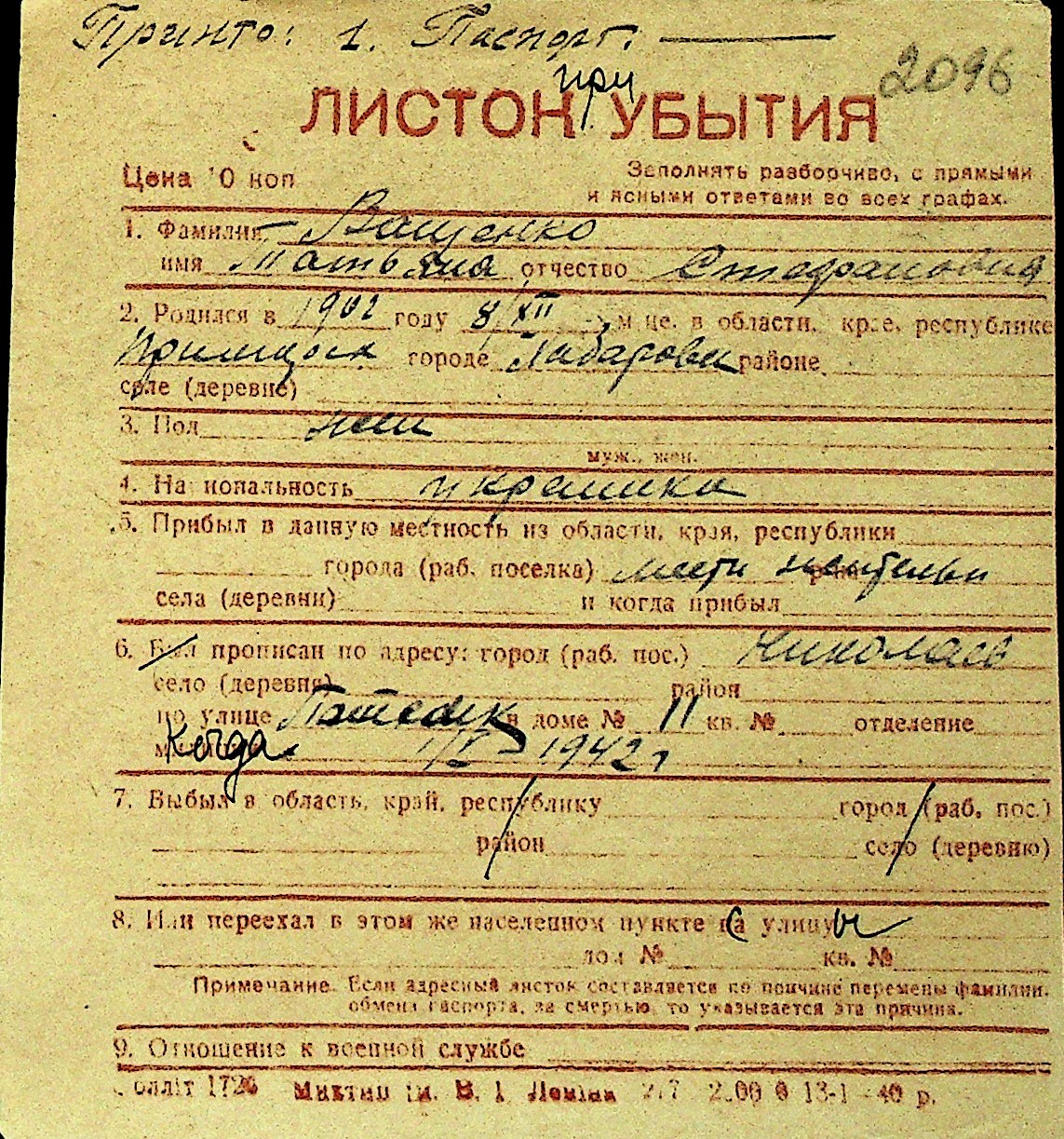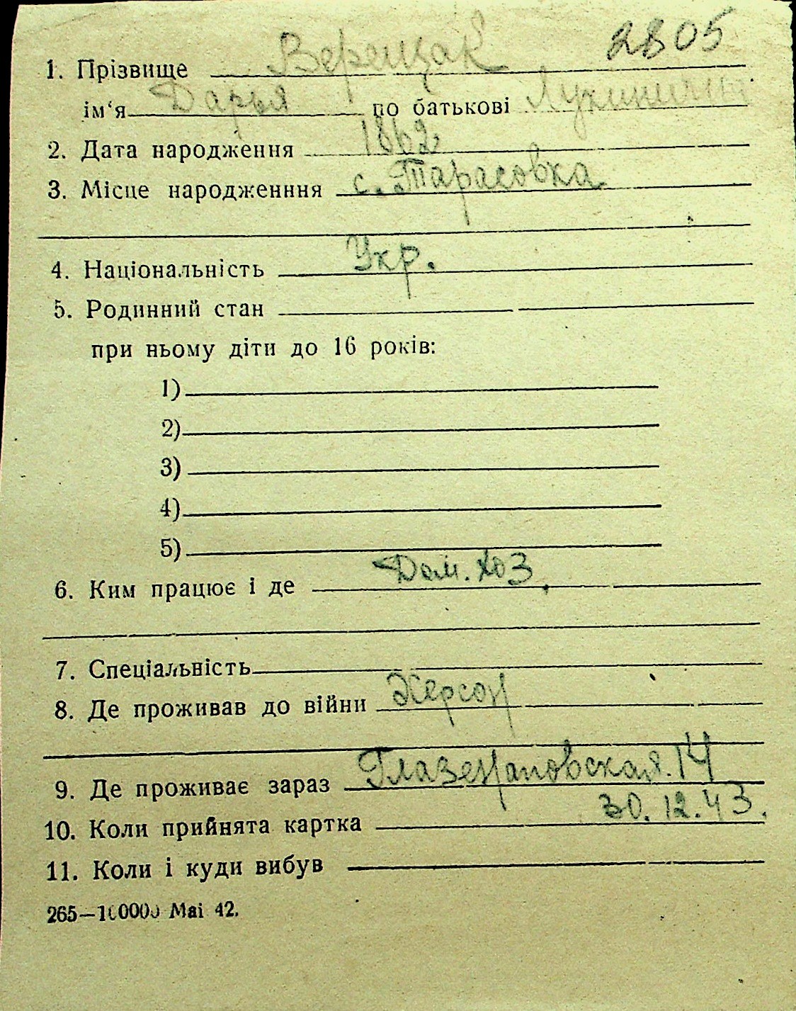 • • Перелік карток до фонду № Н-1016