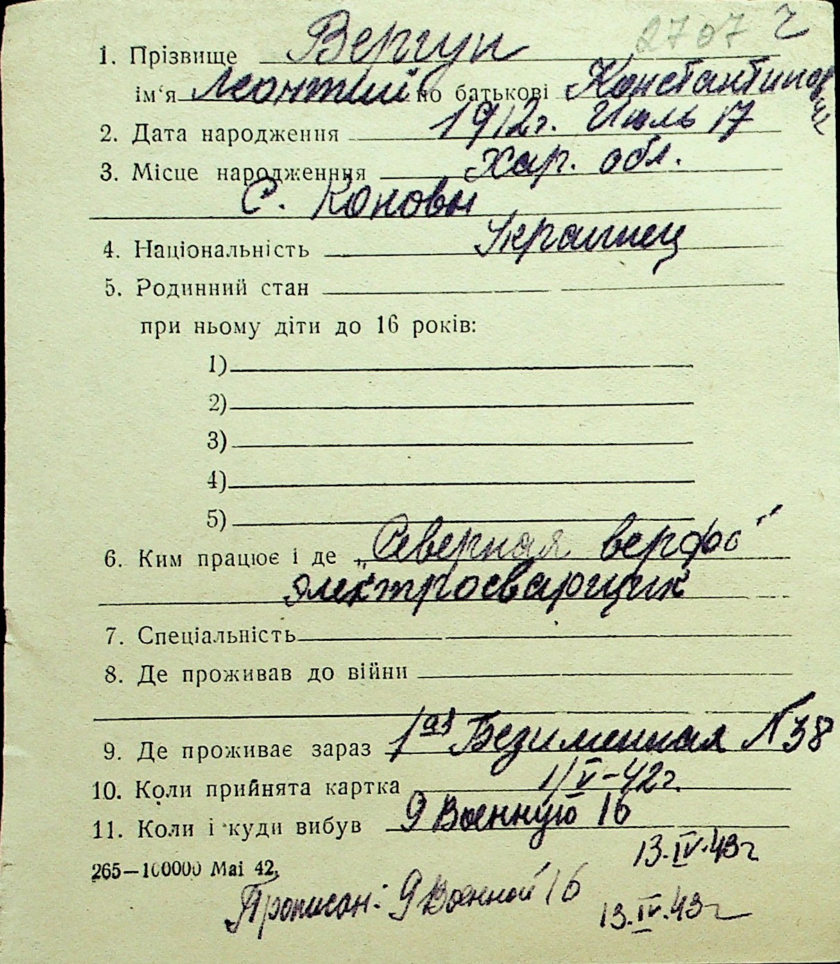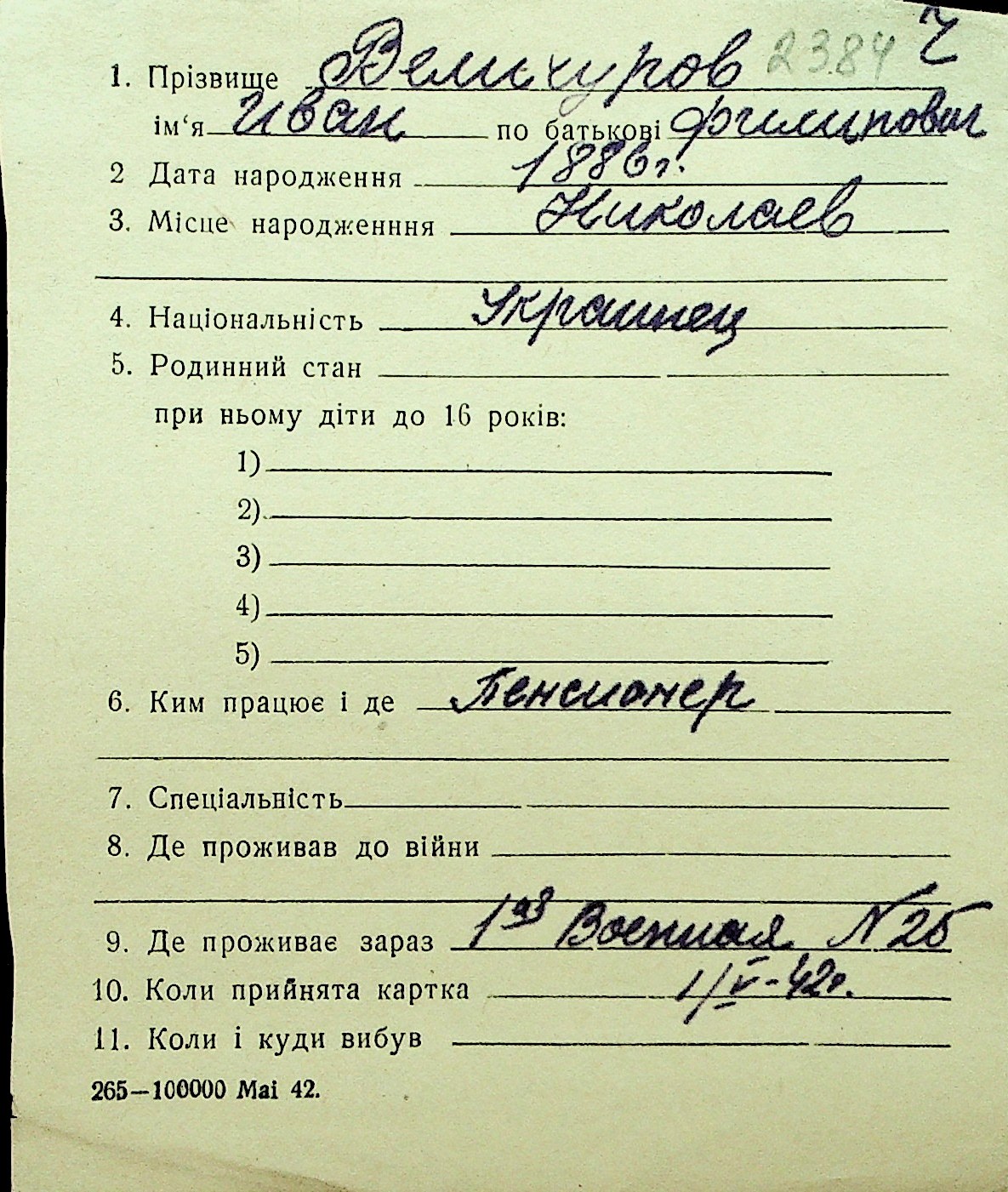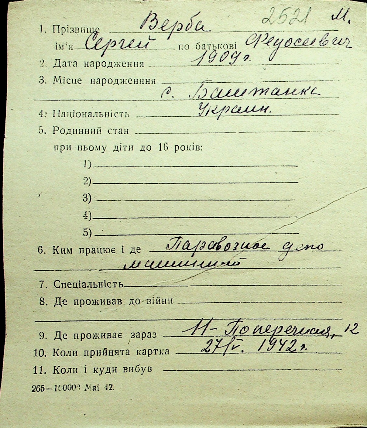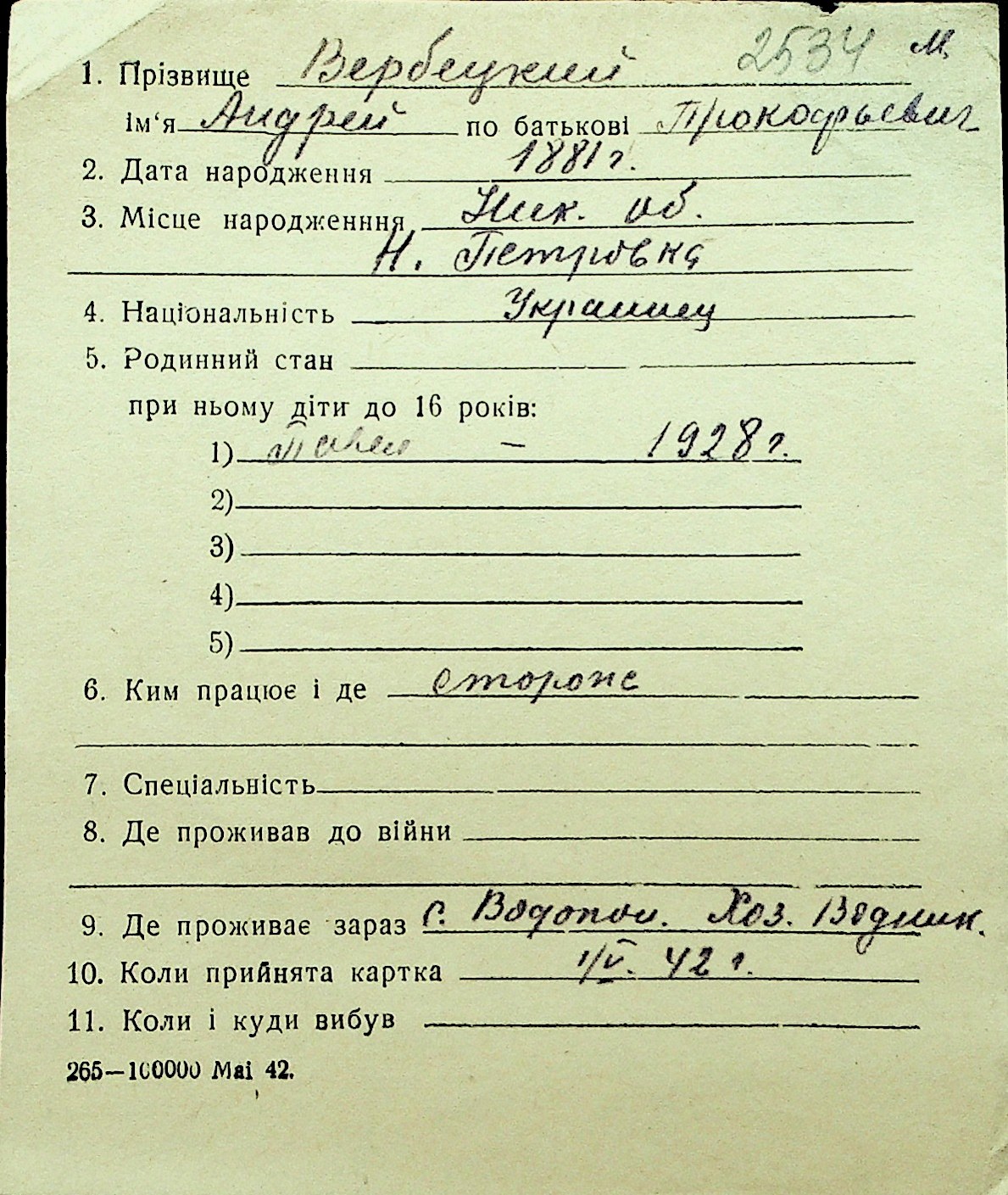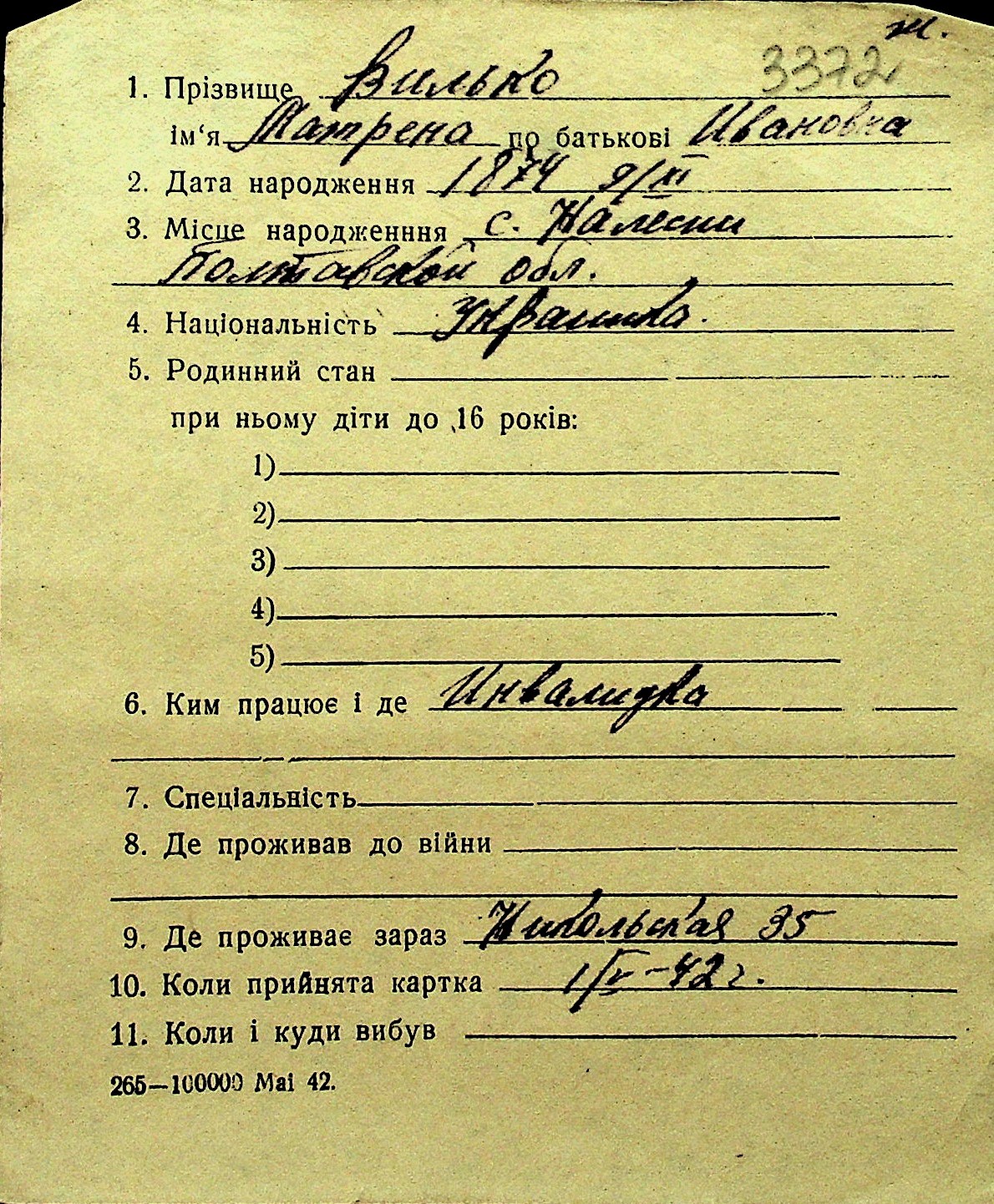 • • Перелік карток до фонду № Н-1016