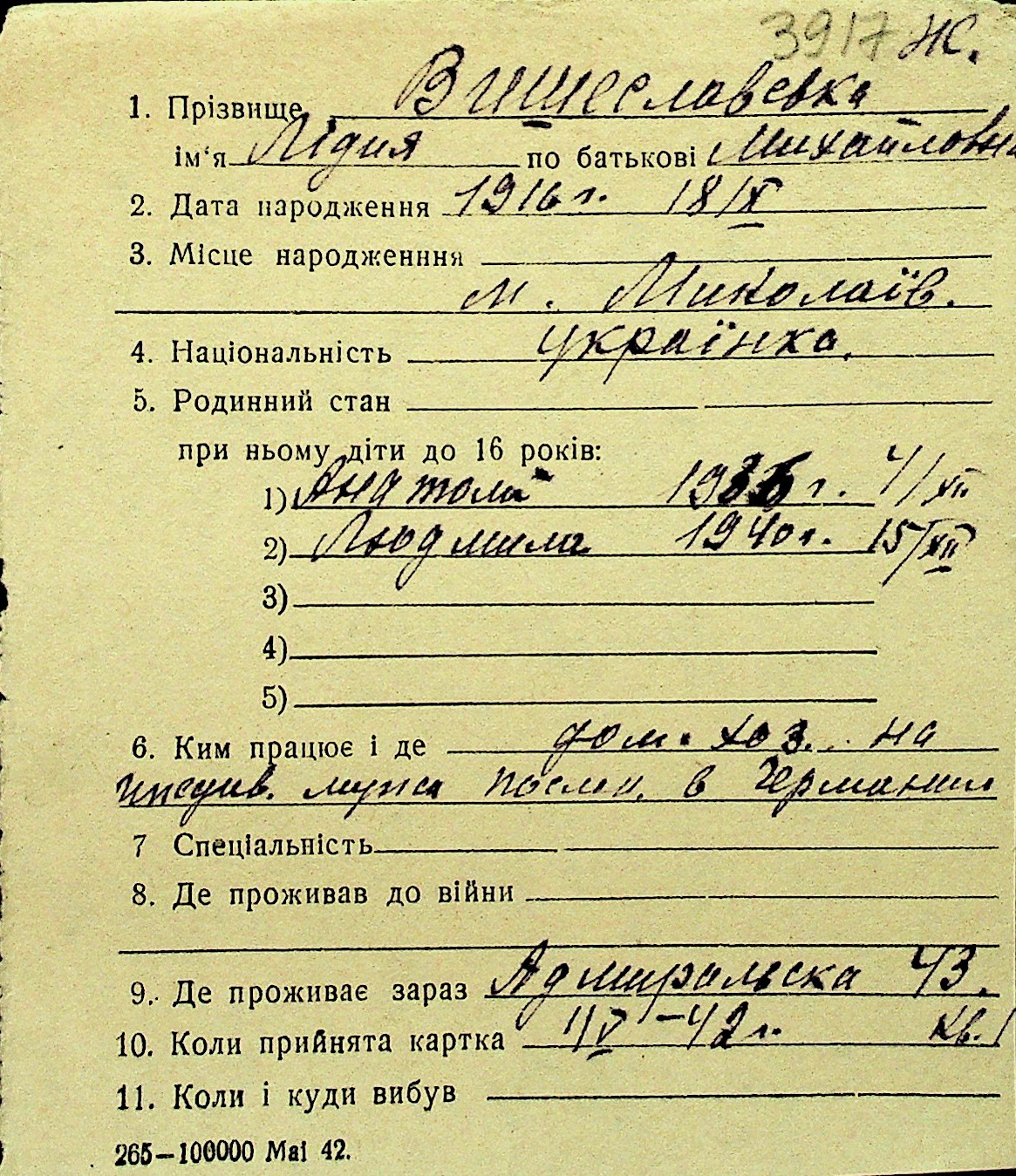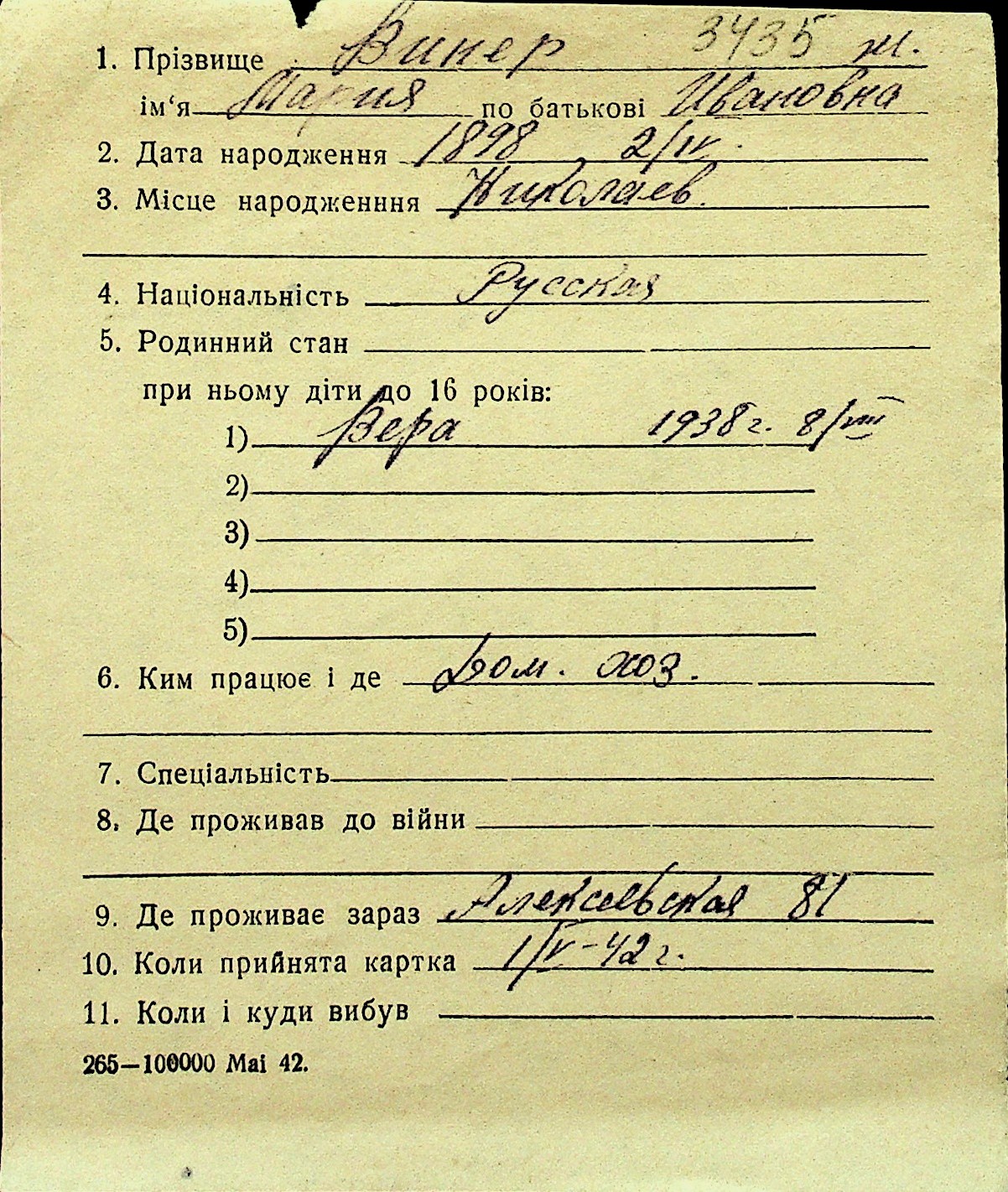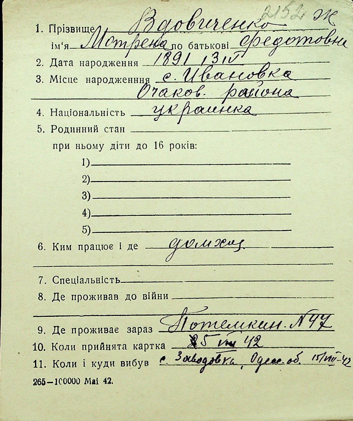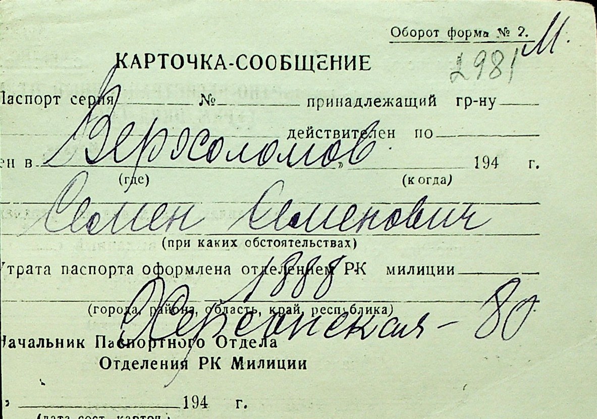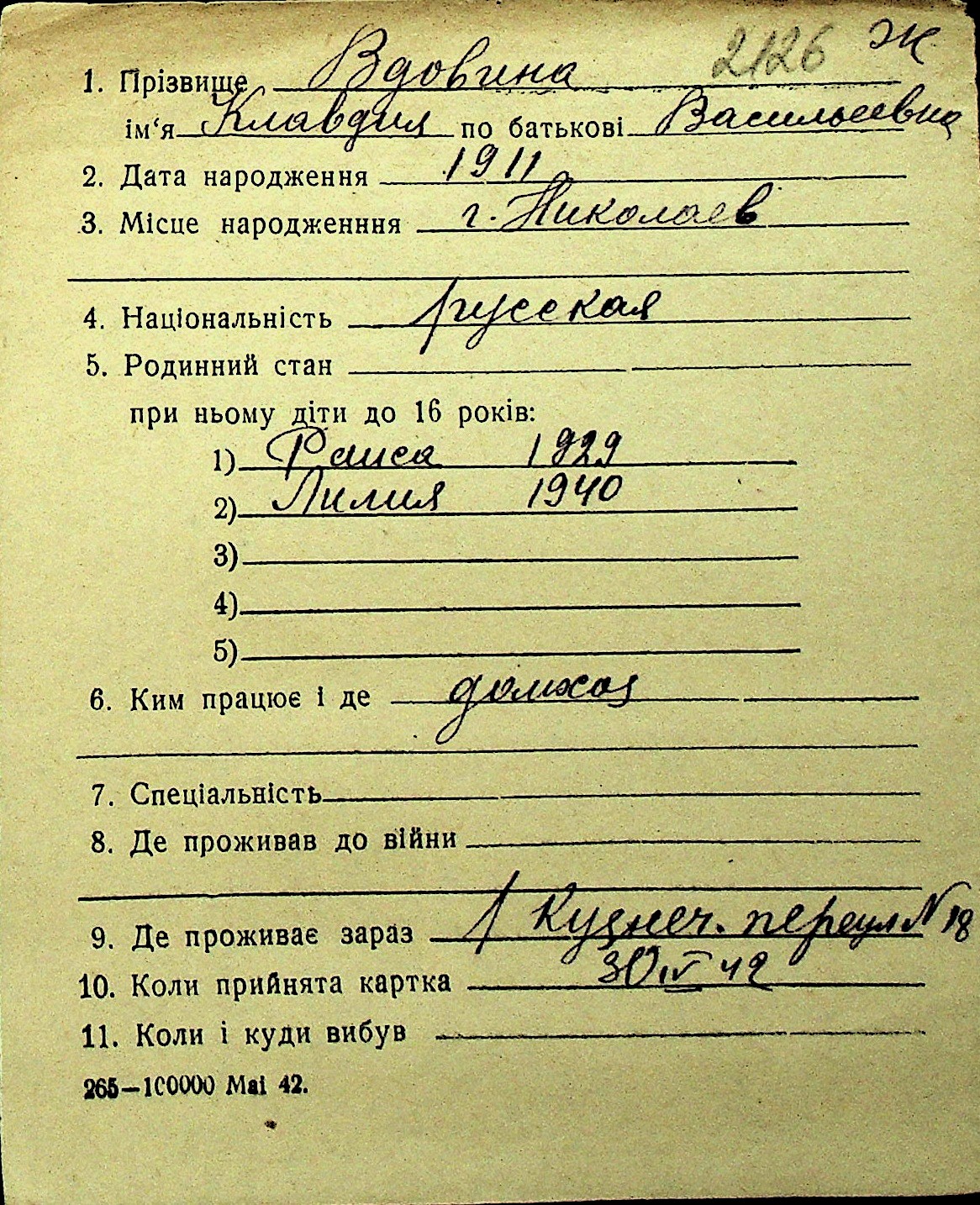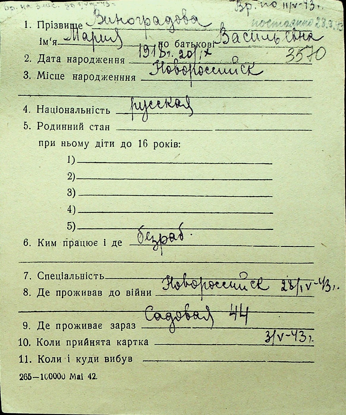 • • Перелік карток до фонду № Н-1016