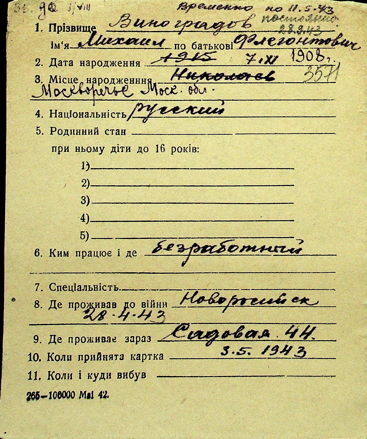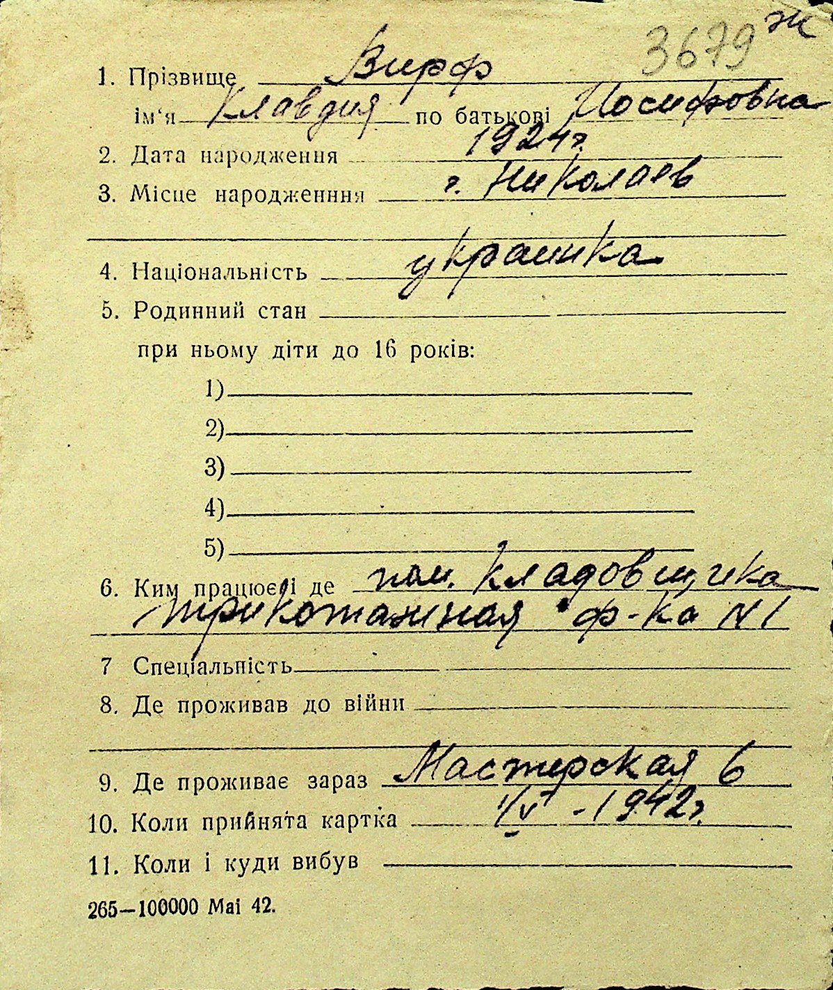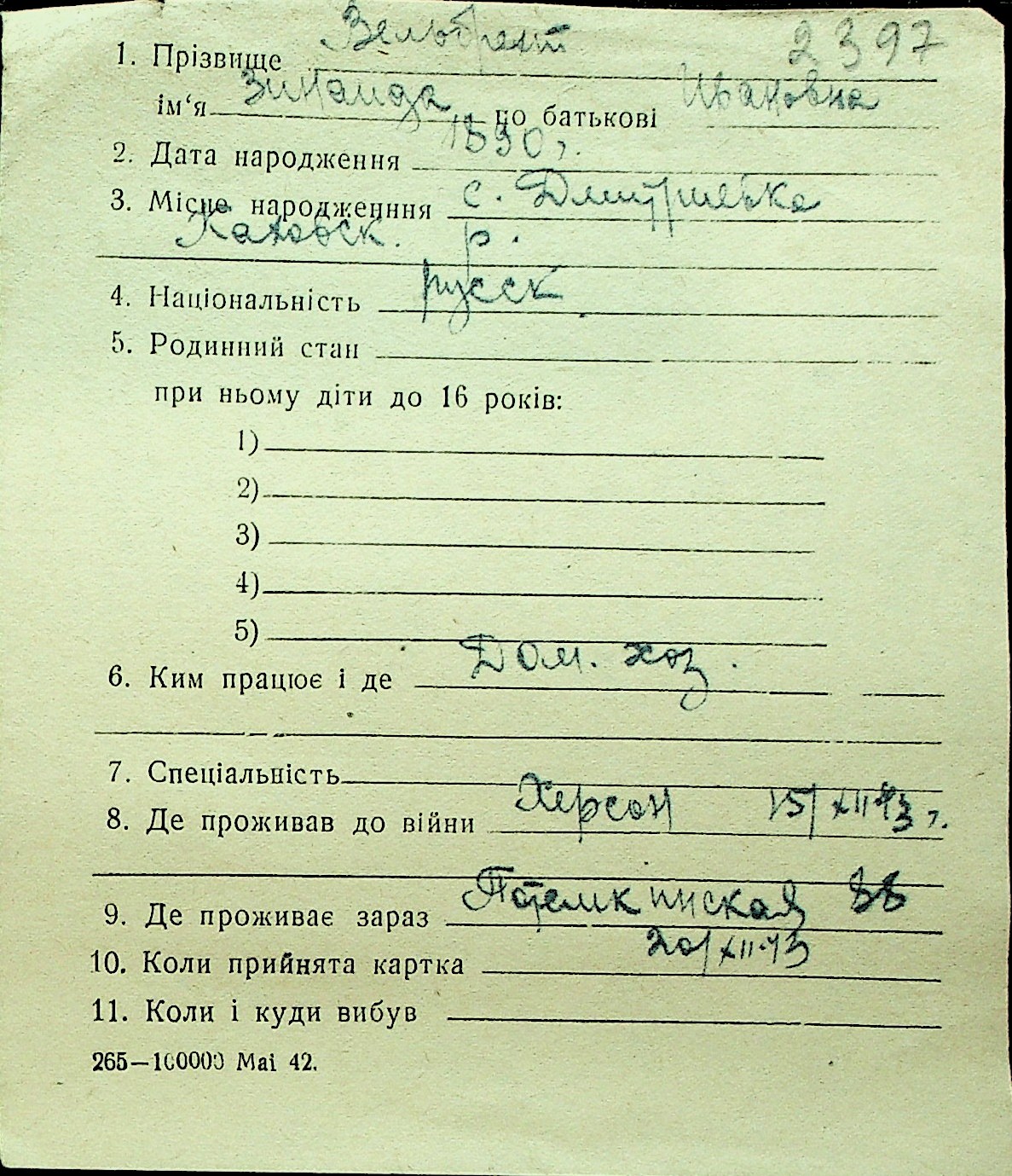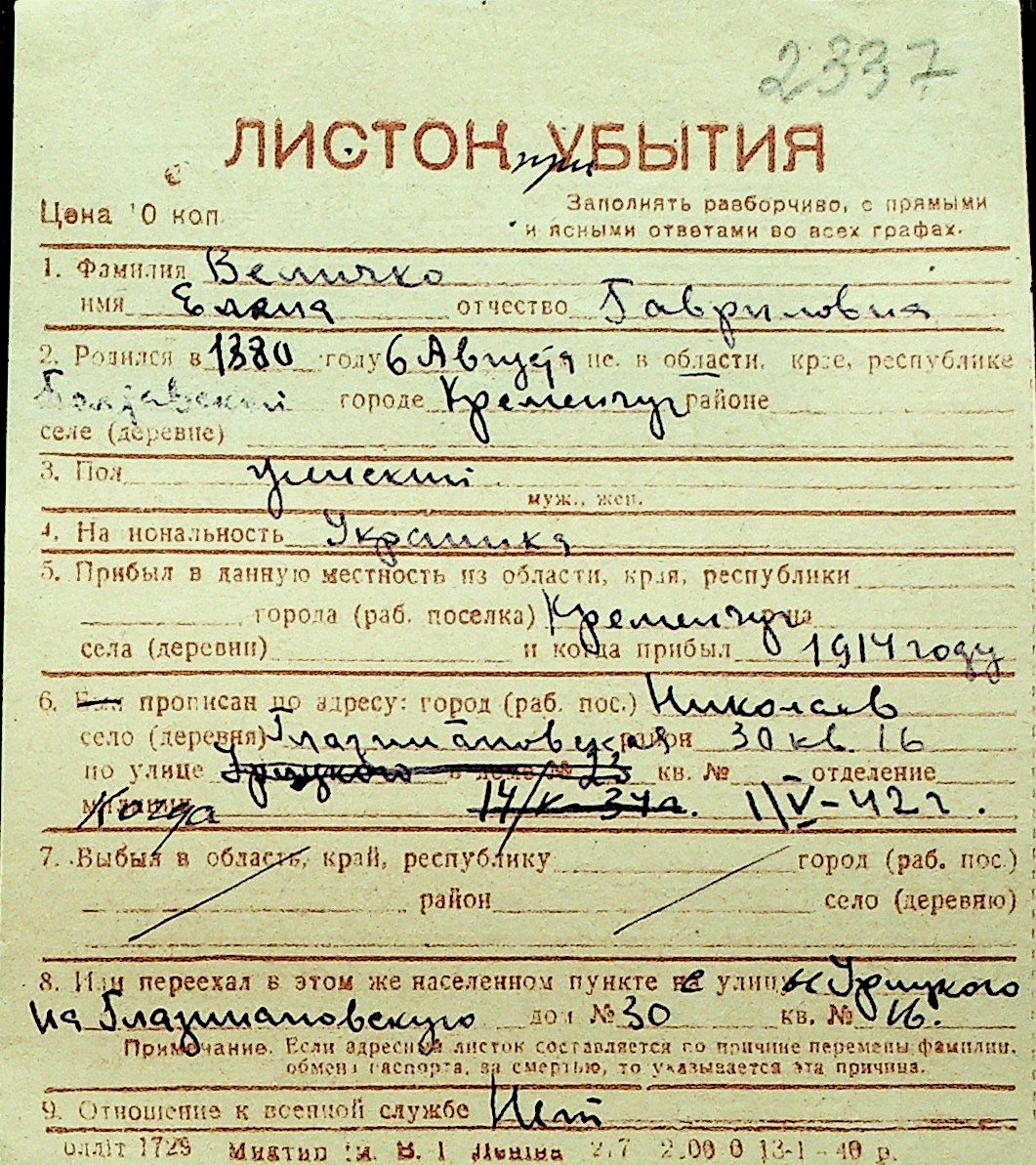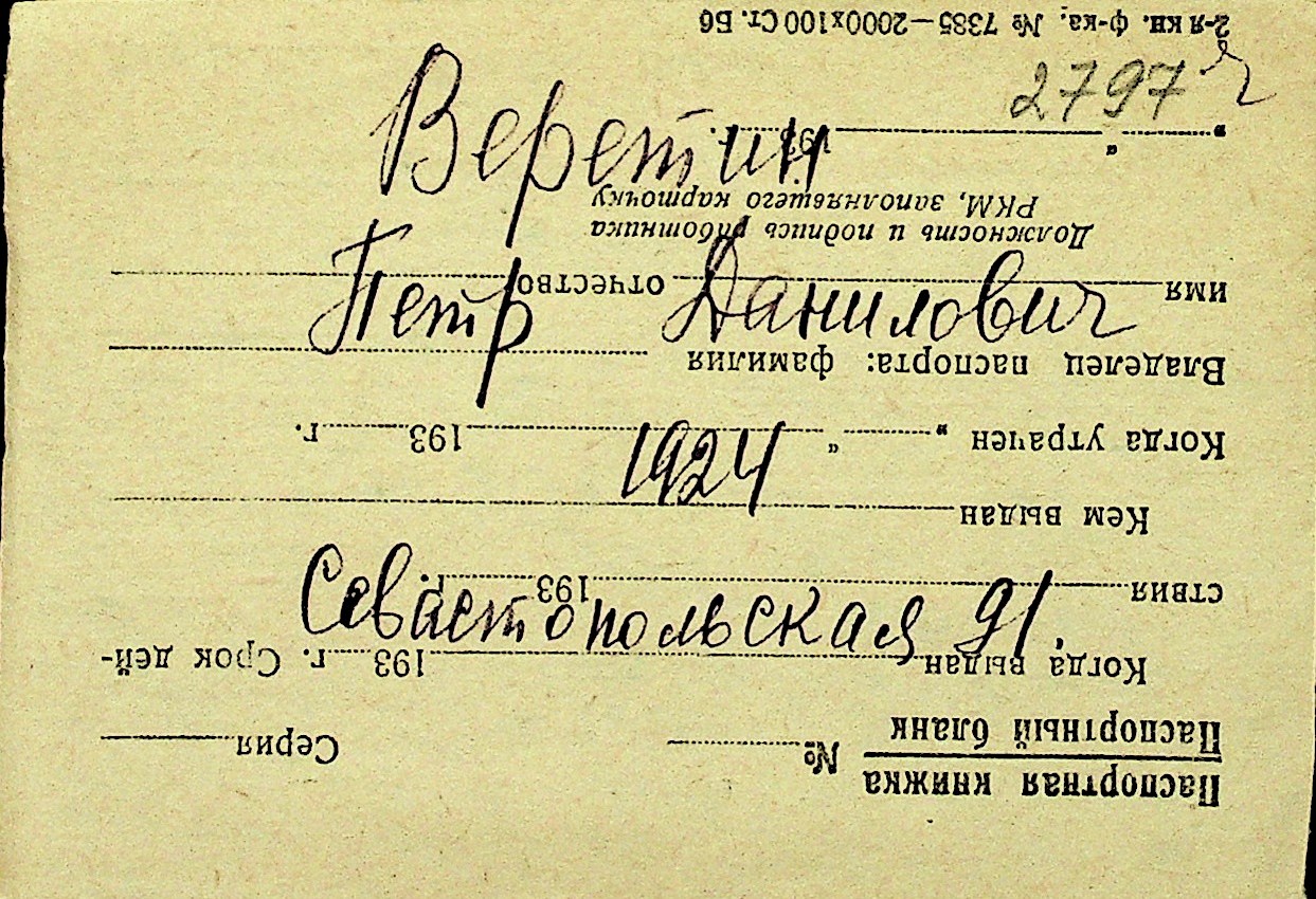 • • Перелік карток до фонду № Н-1016