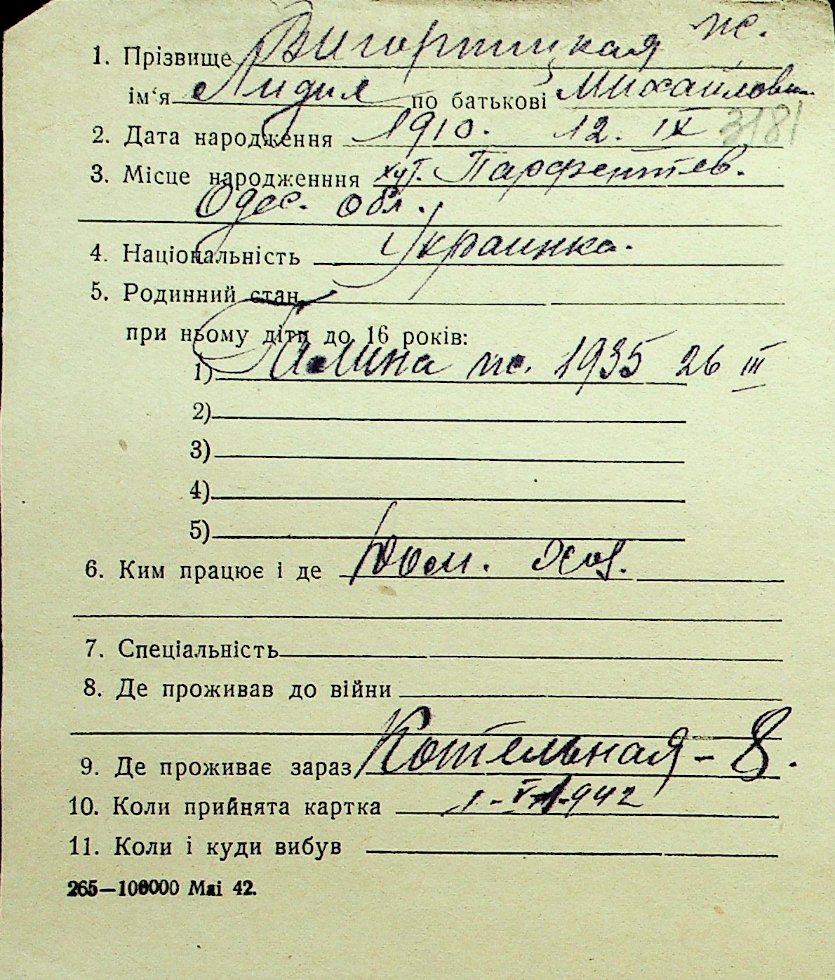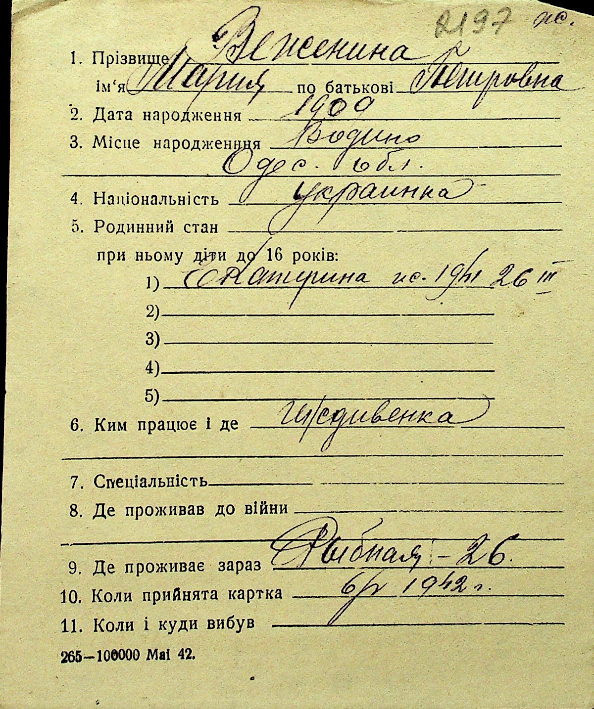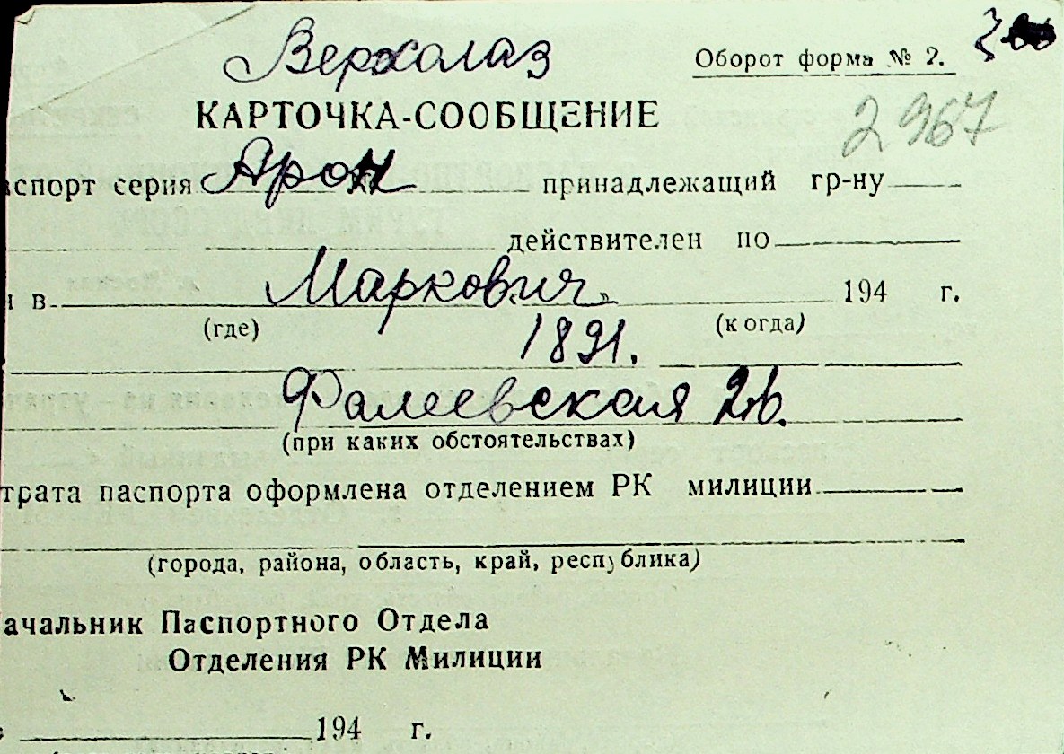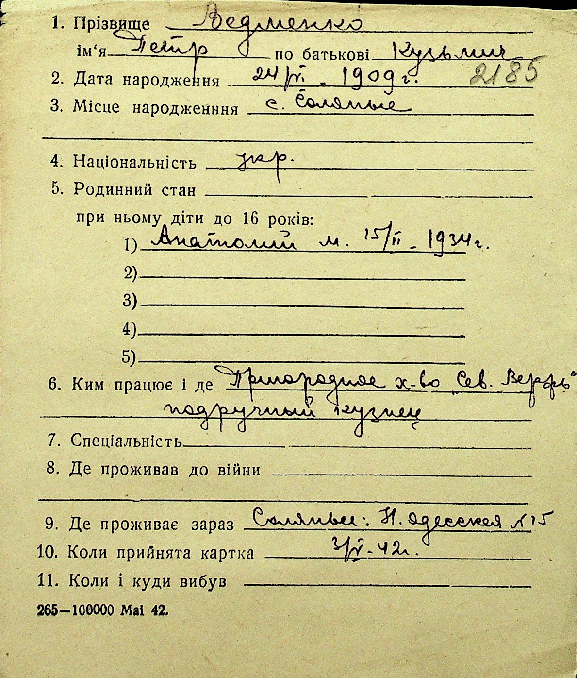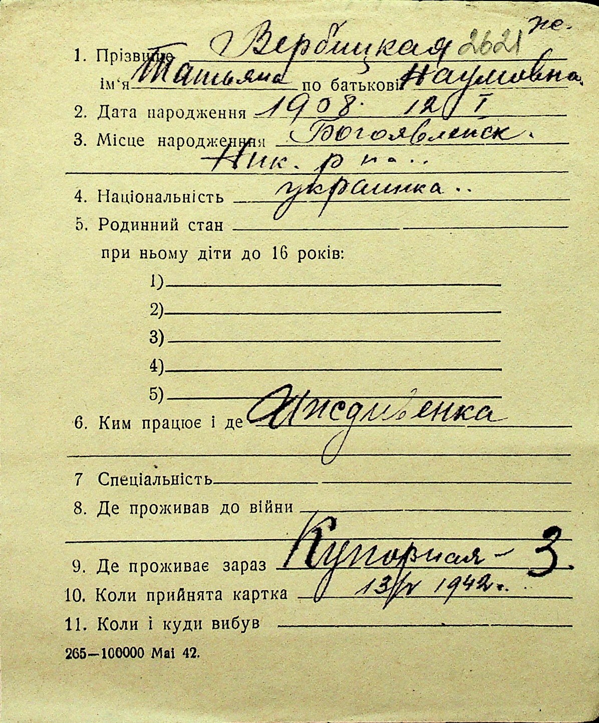 • • Перелік карток до фонду № Н-1016