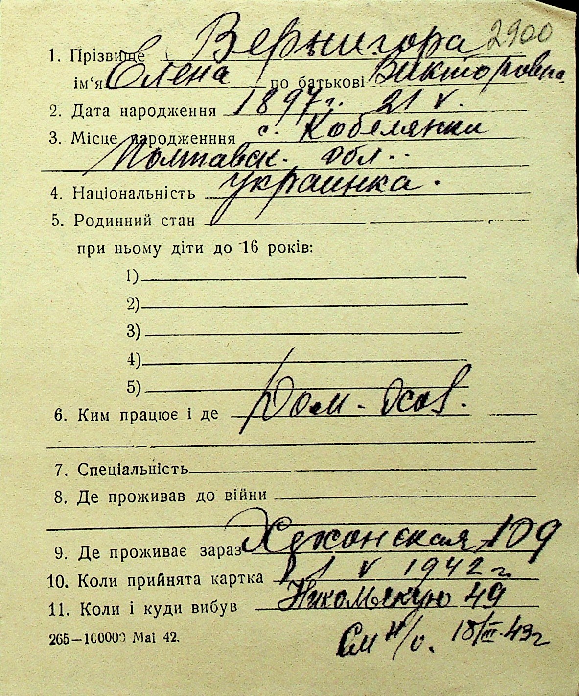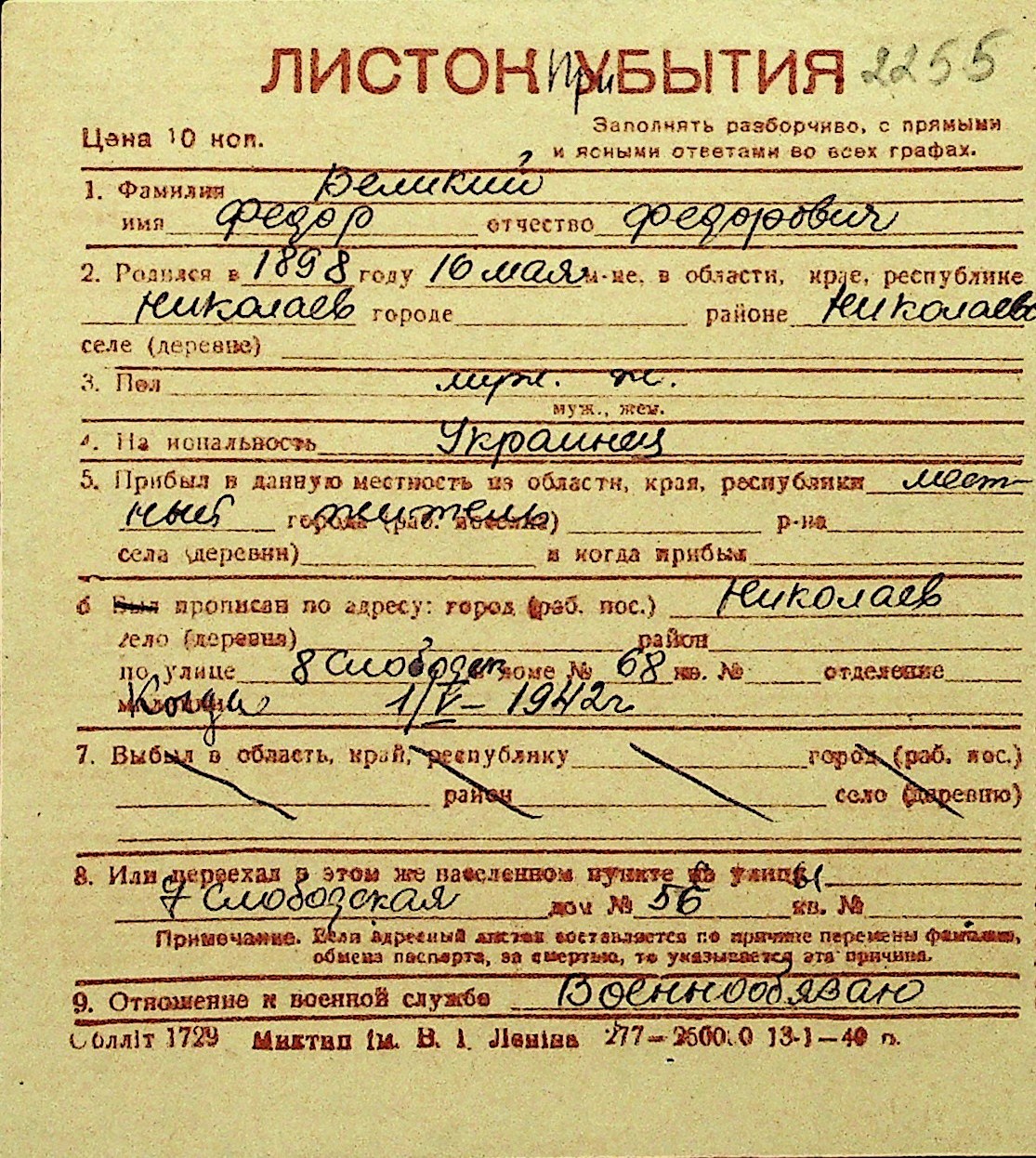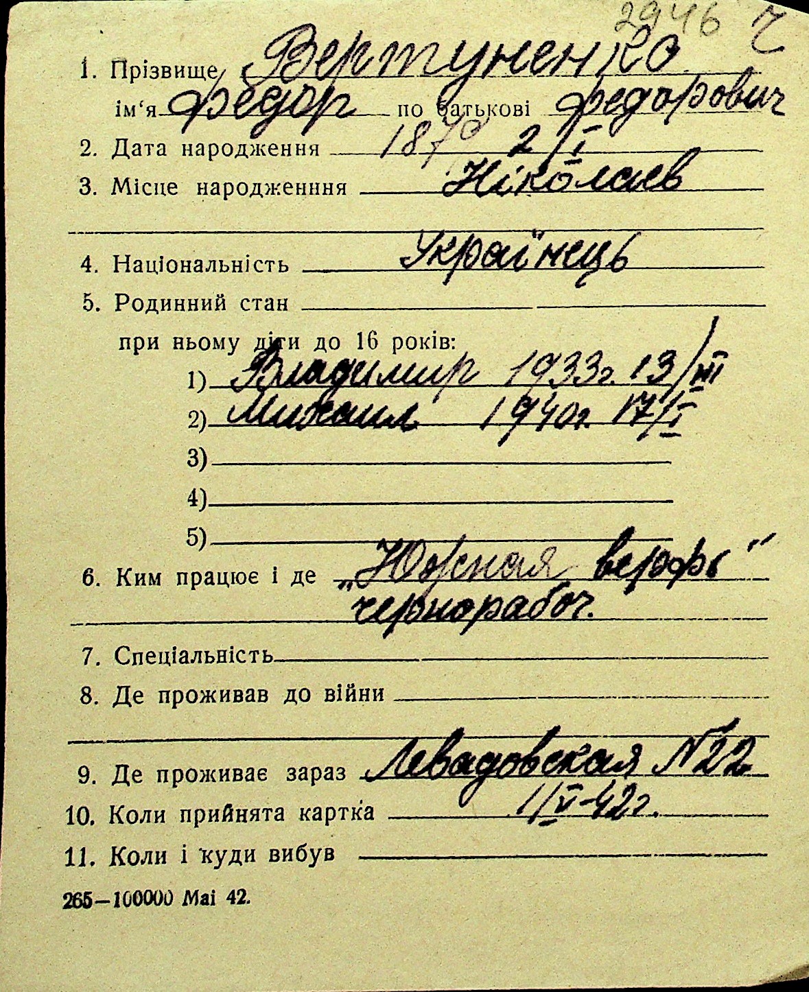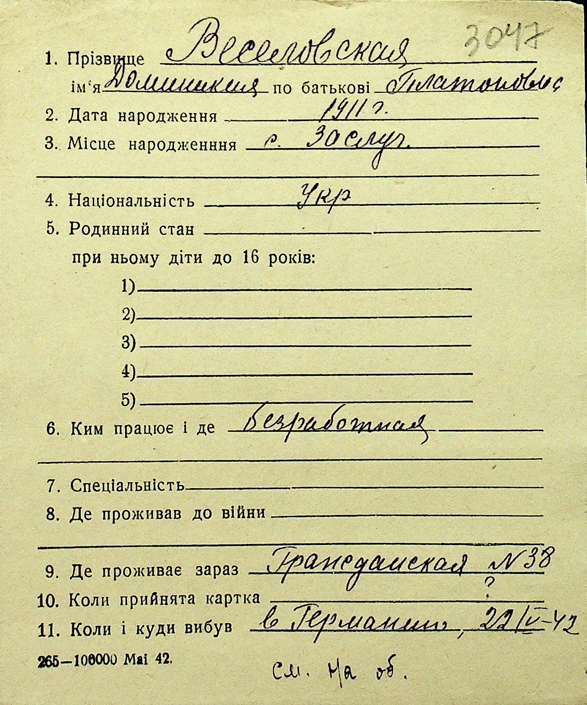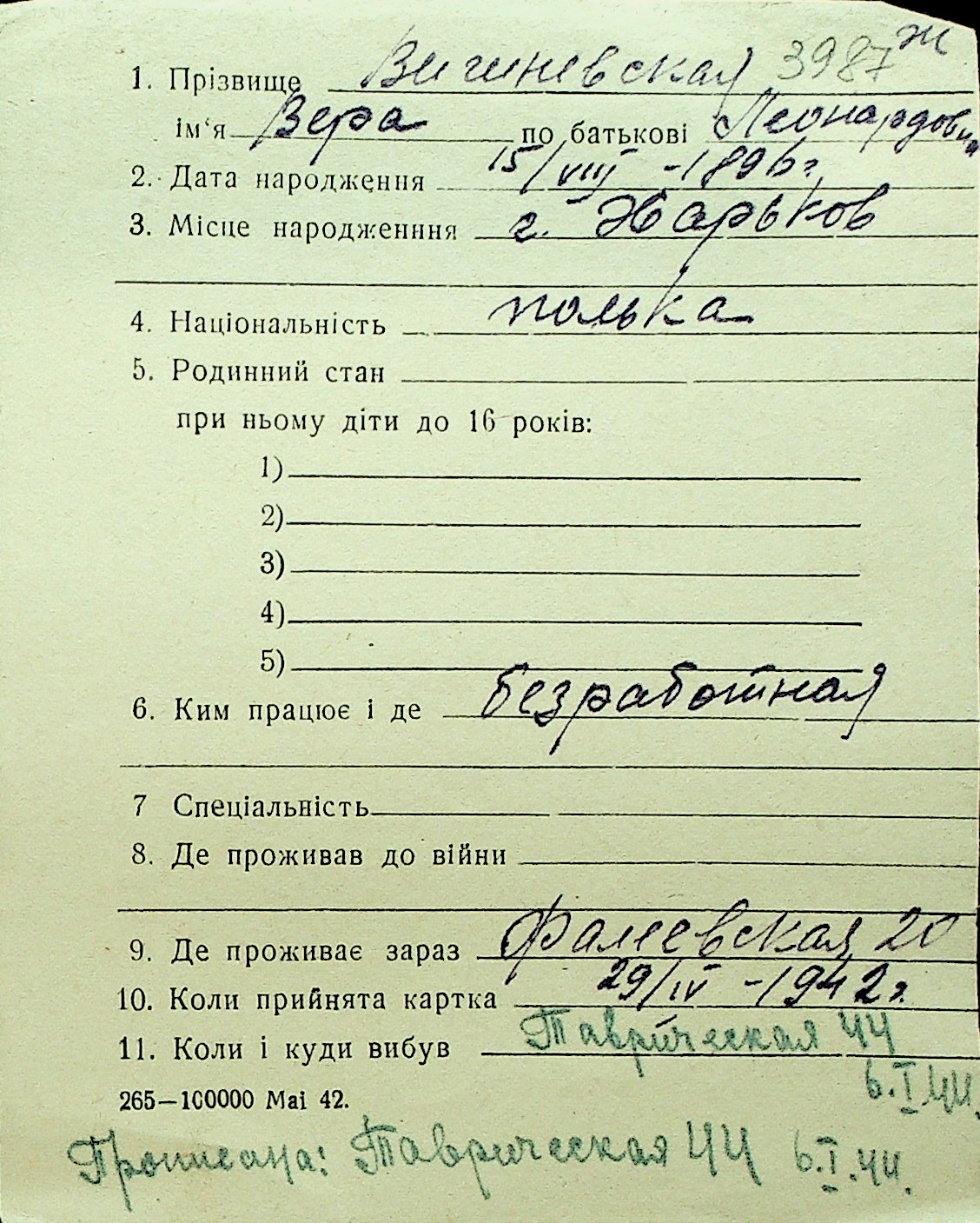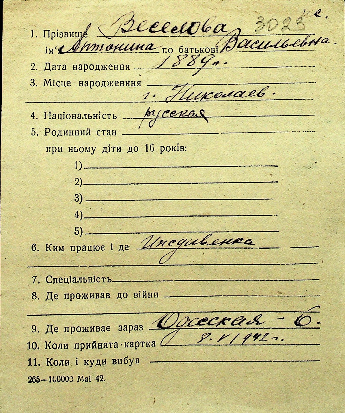 • • Перелік карток до фонду № Н-1016