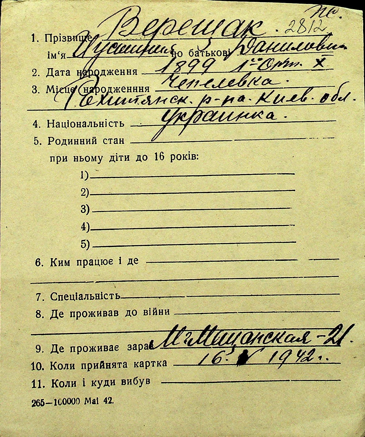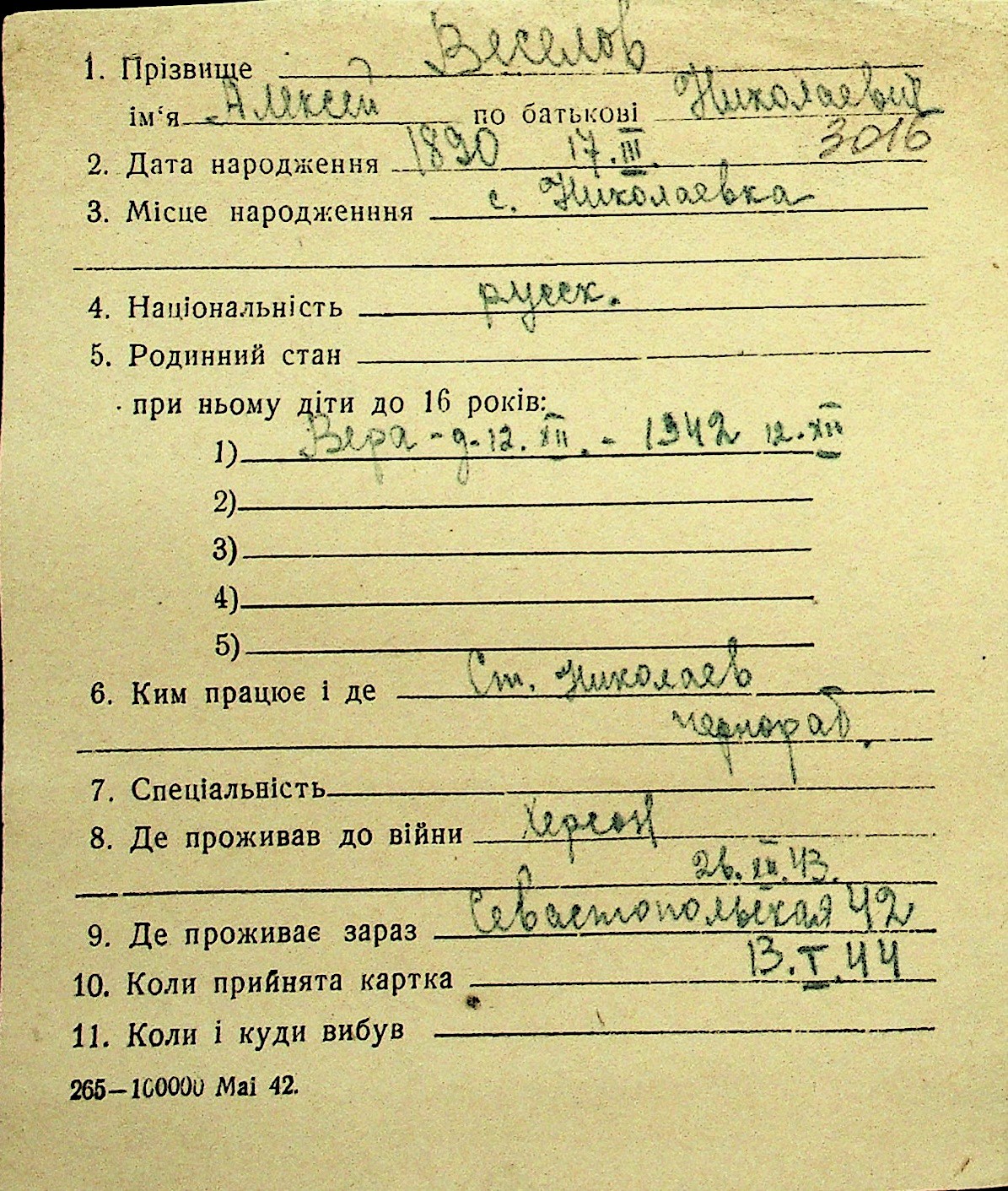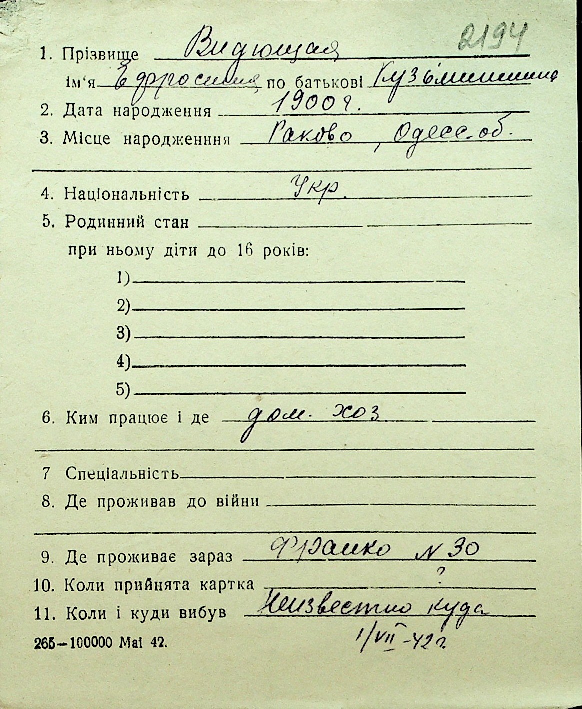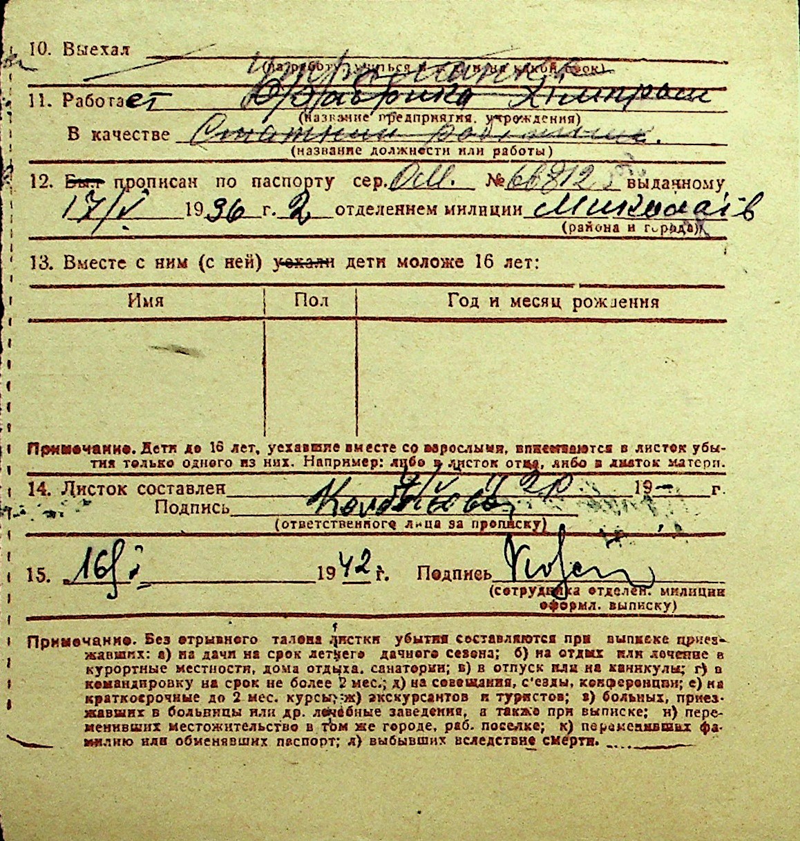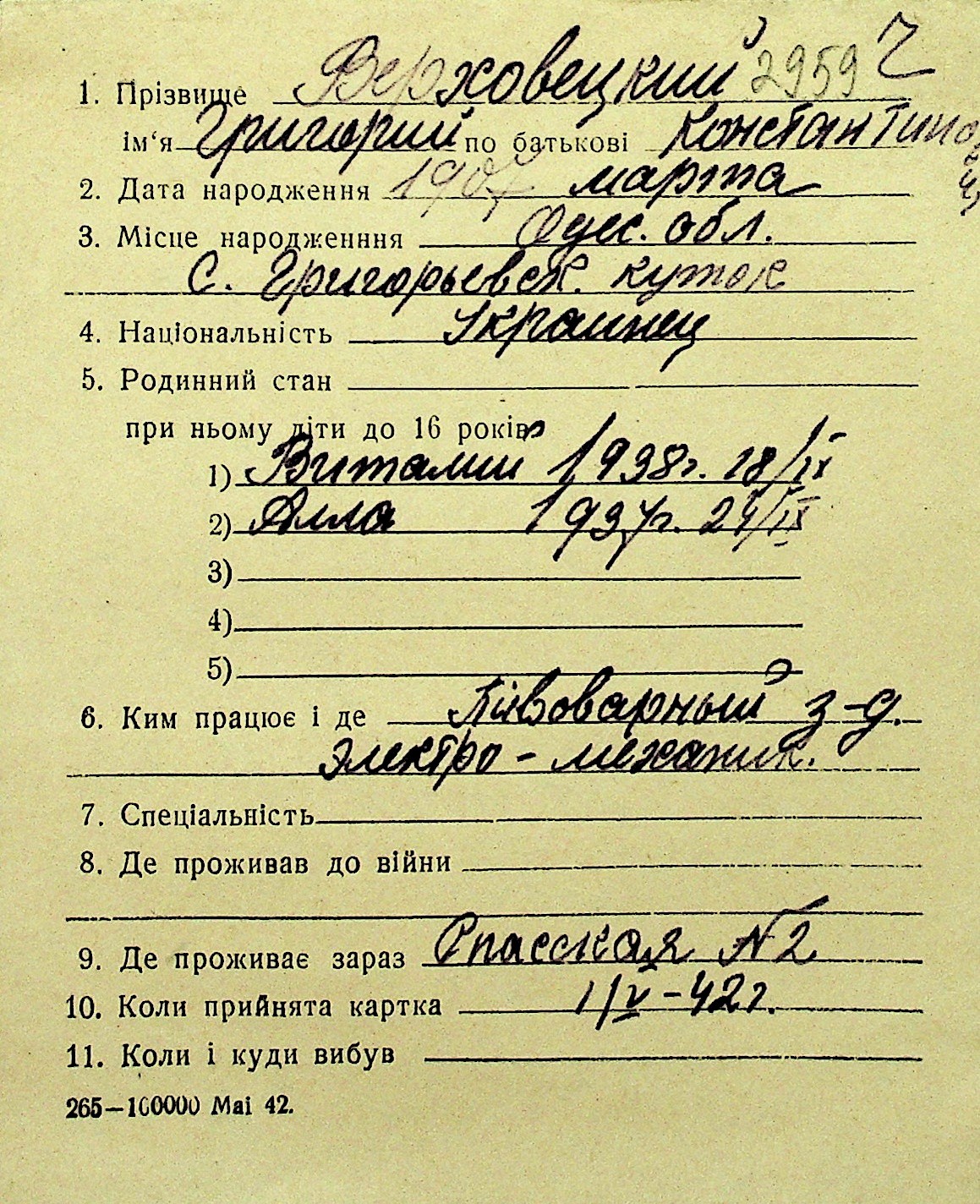 • • Перелік карток до фонду № Н-1016