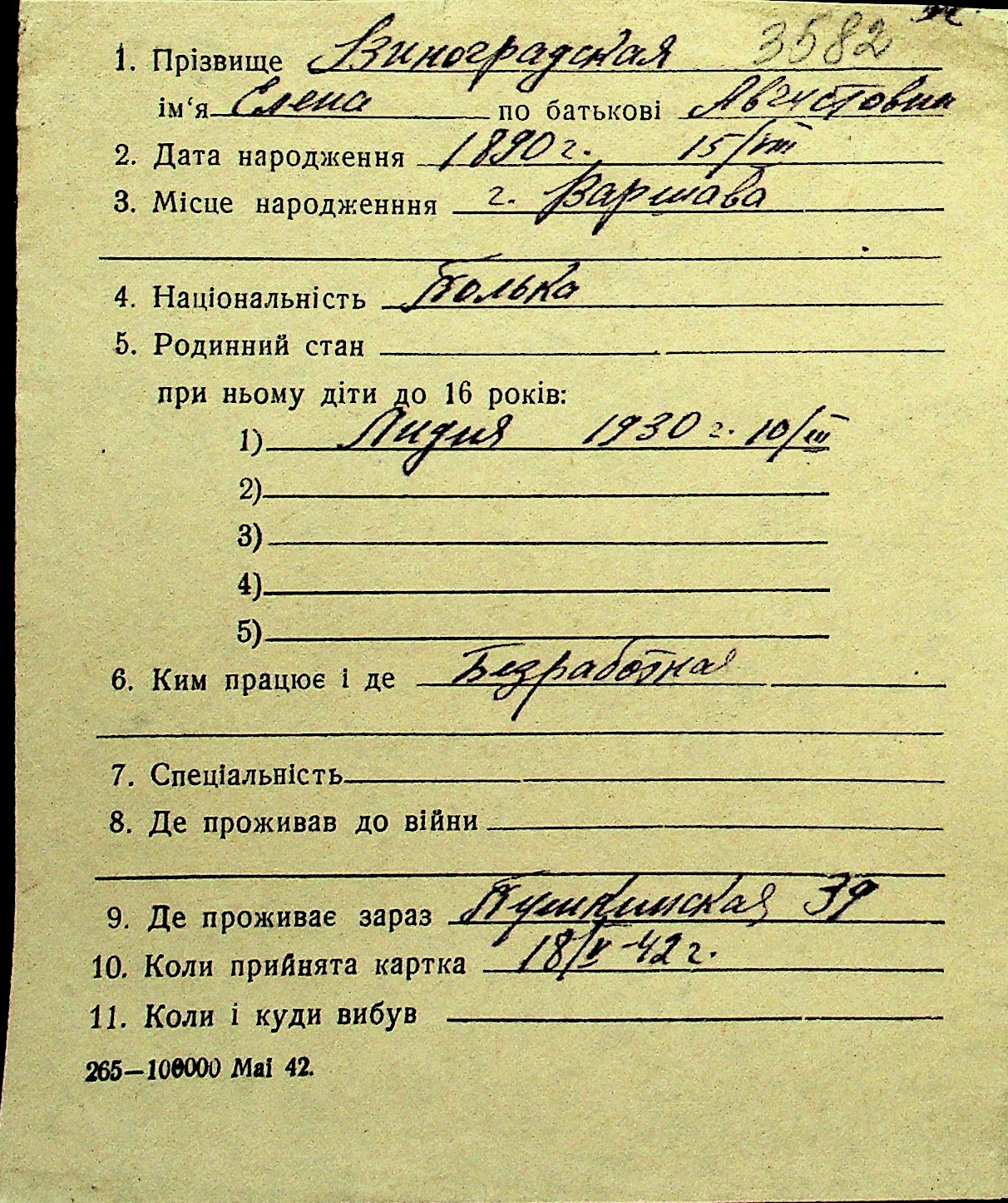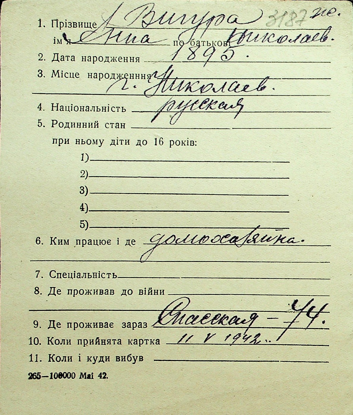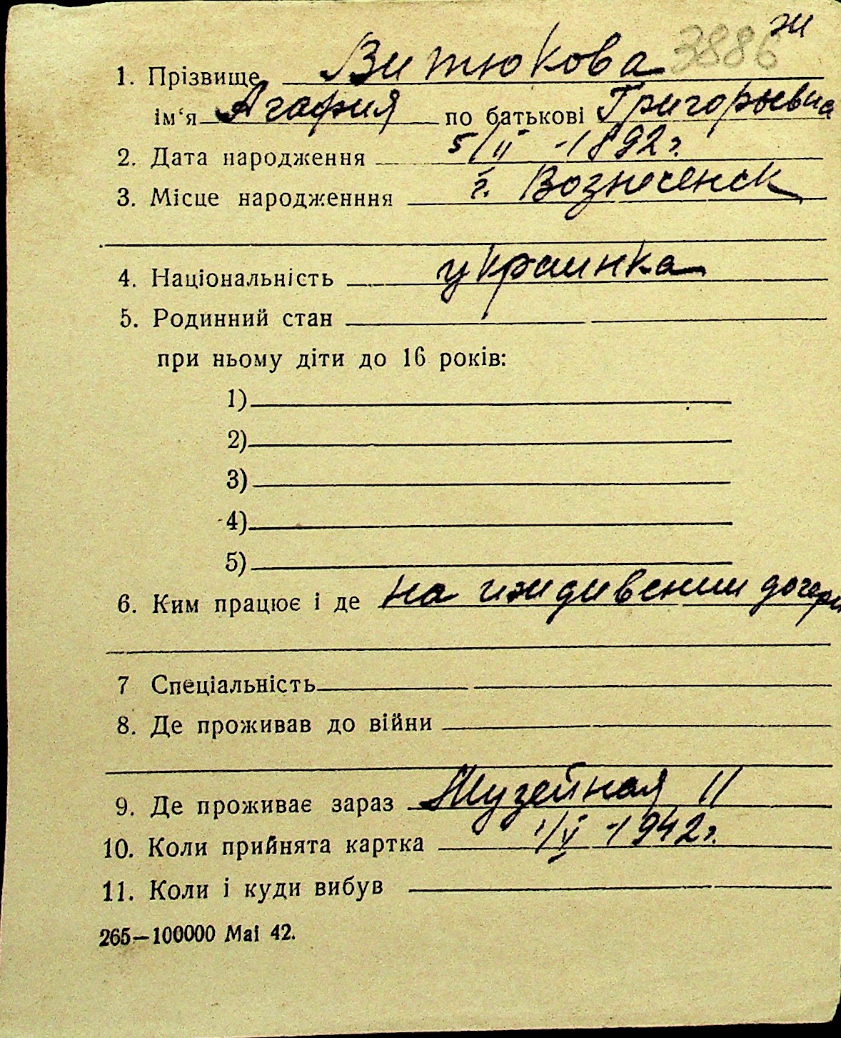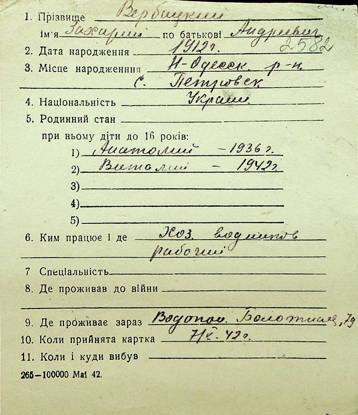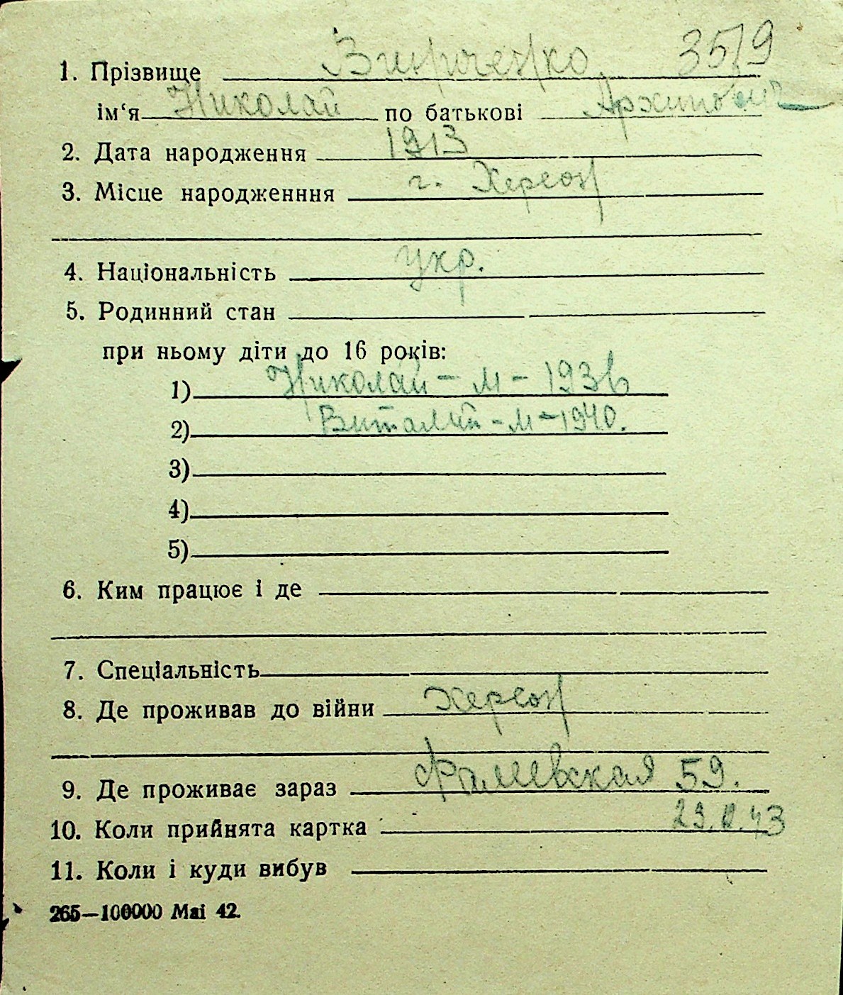 • • Перелік карток до фонду № Н-1016